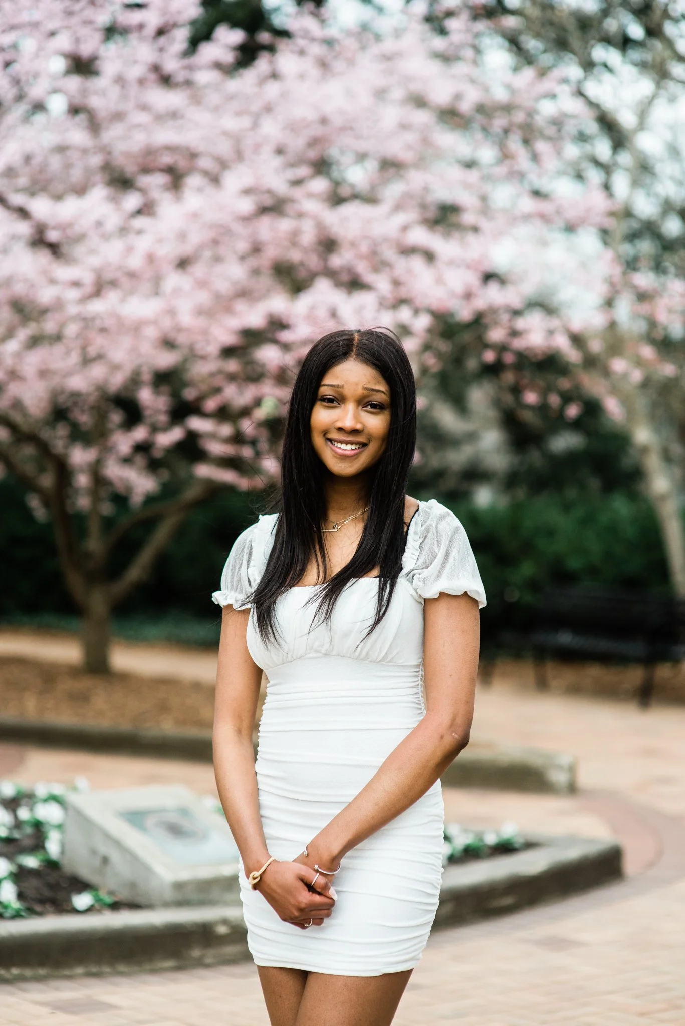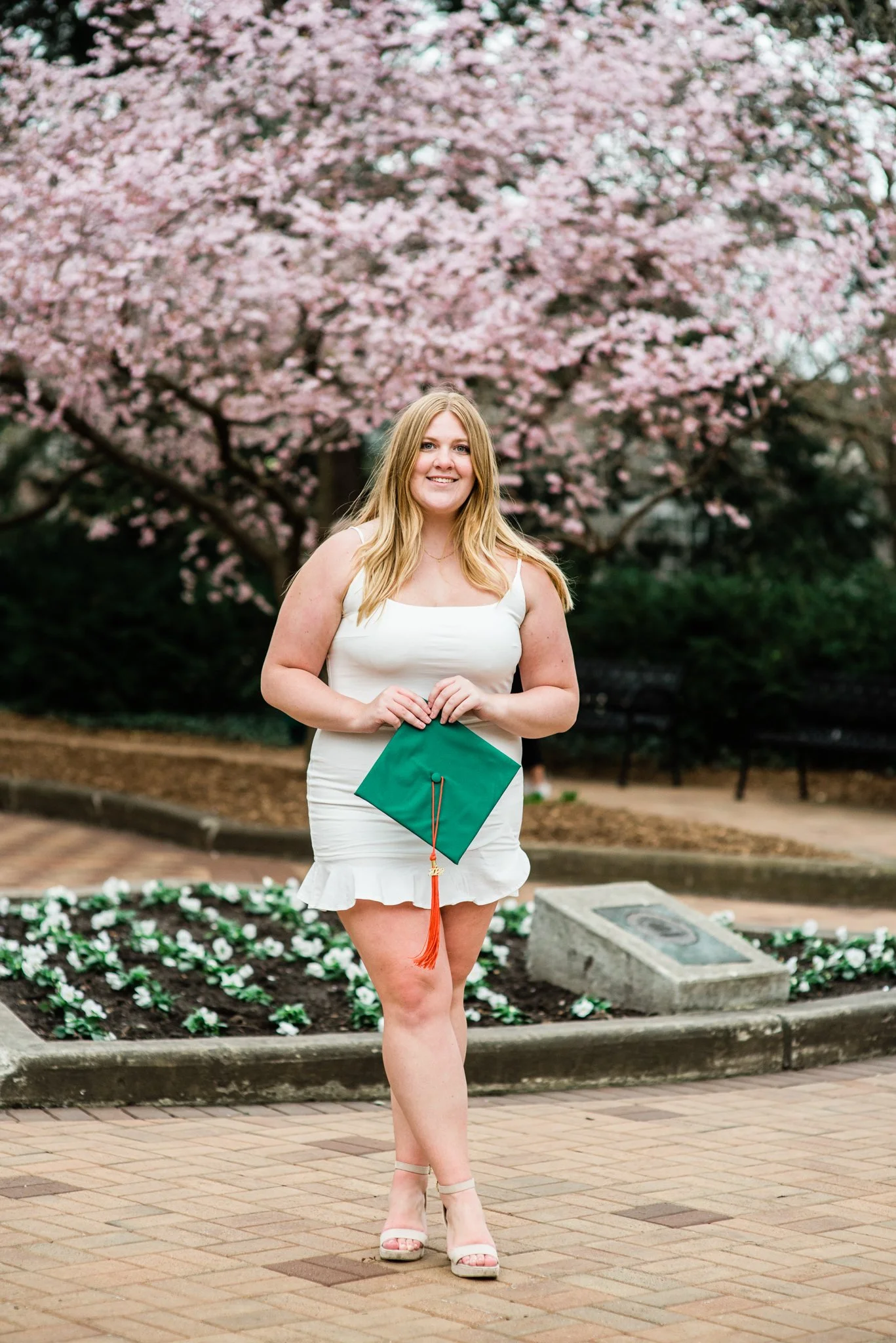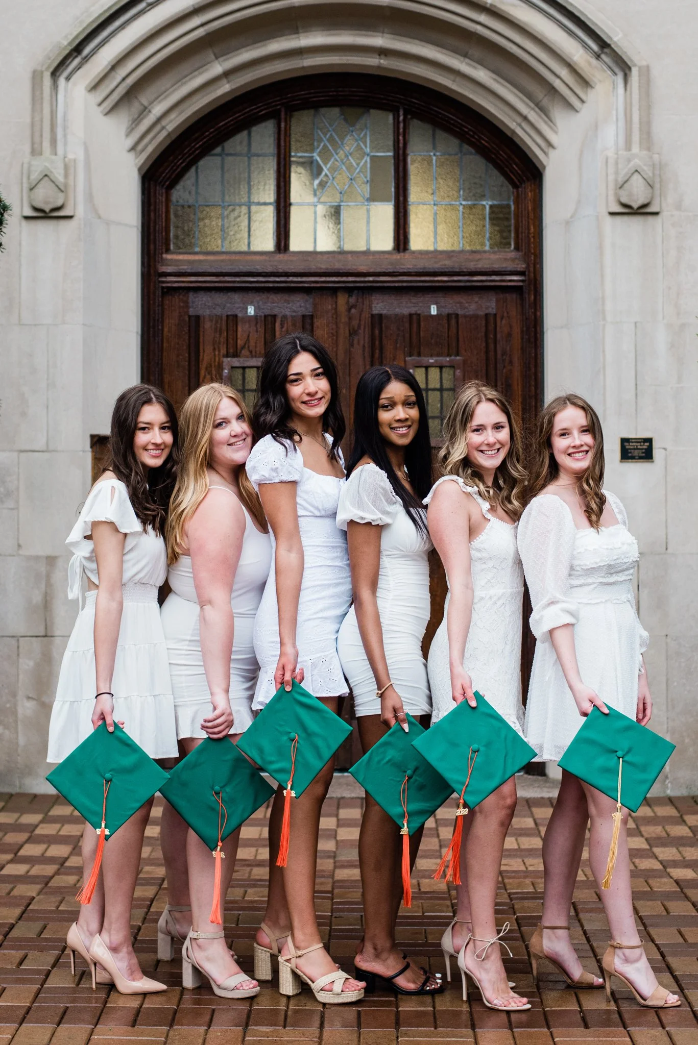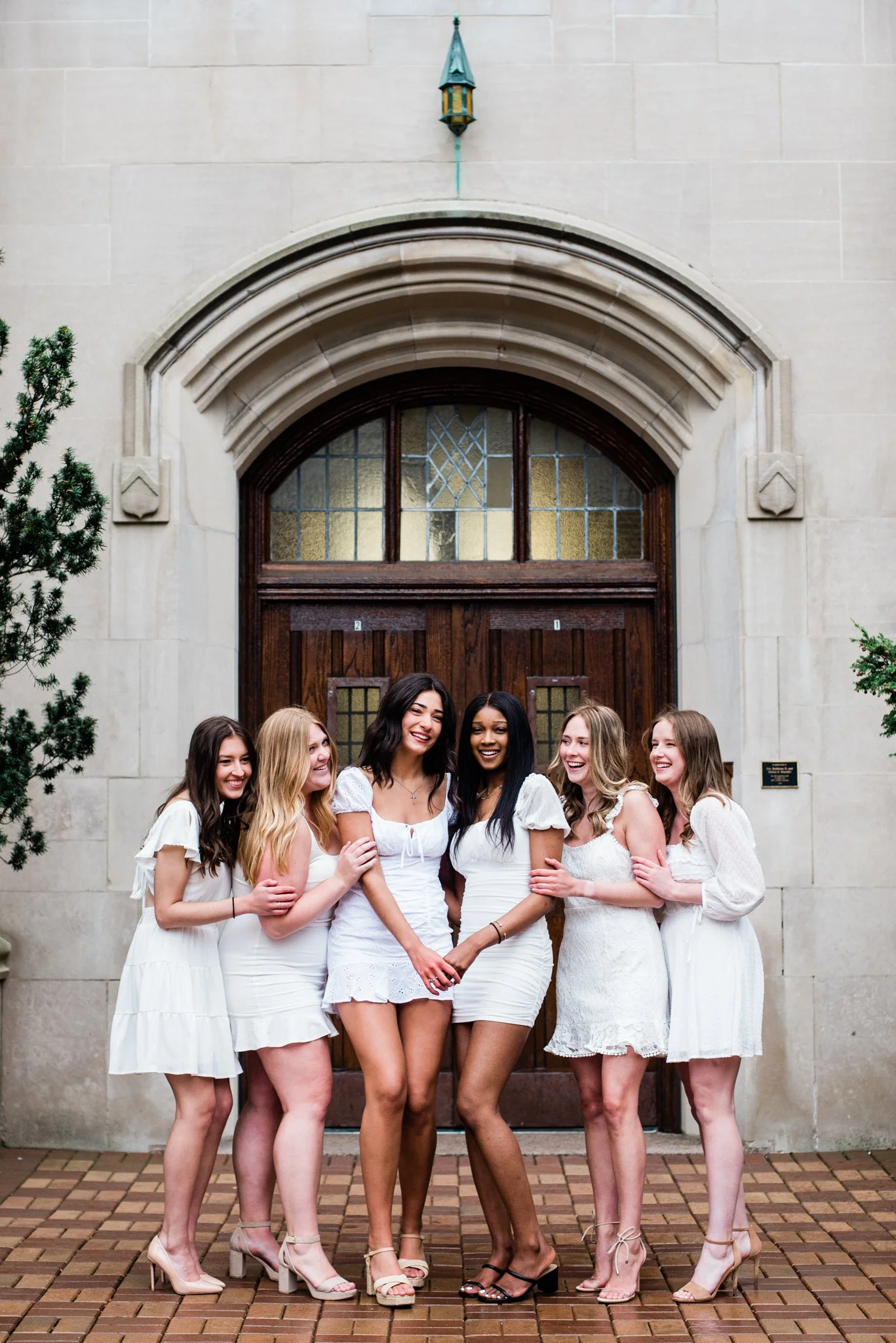 When Julian’s babysitter asked if I could take graduation photos of her and her friends at Michigan State University, of course I said yes! Even though over the weekend it had been 82 degrees, just two days later we were dealt 32 degrees, high winds and even snow! It was seriously crazy. We started at the College of Engineering and then headed over to Beaumont Tower and the bridge for the Spartan sign. We ended by grabbing some individual shots in front of the gorgeous spring blooms that are all over campus. These 6 crazy smart soon-to-be engineers powered through our chilly two hour session in cute dresses and gowns. Here are a few of my favorites!