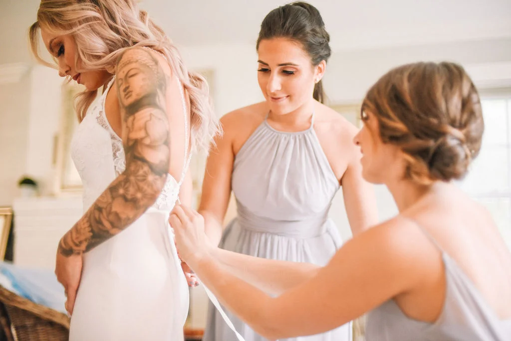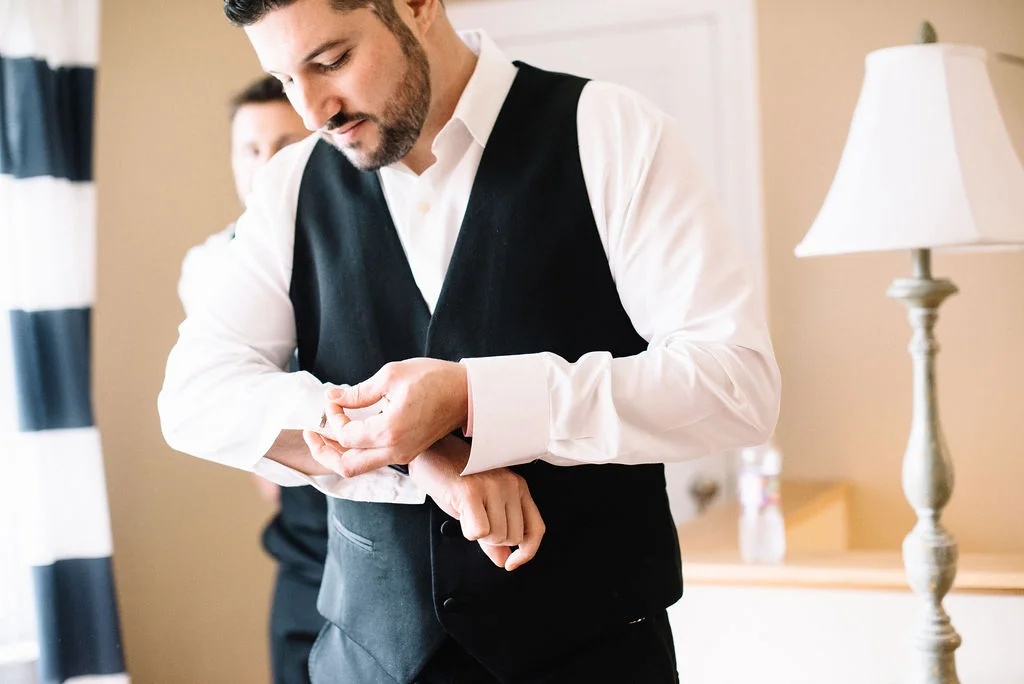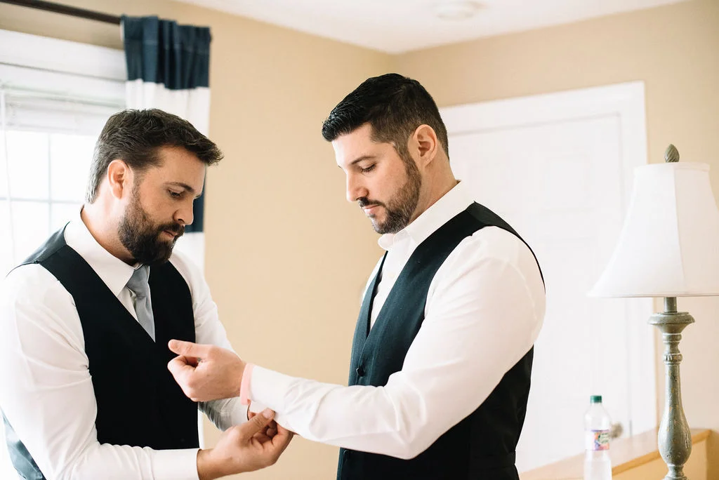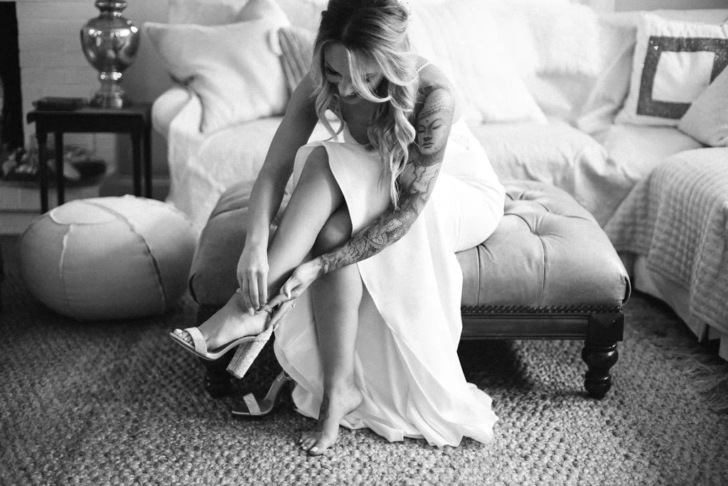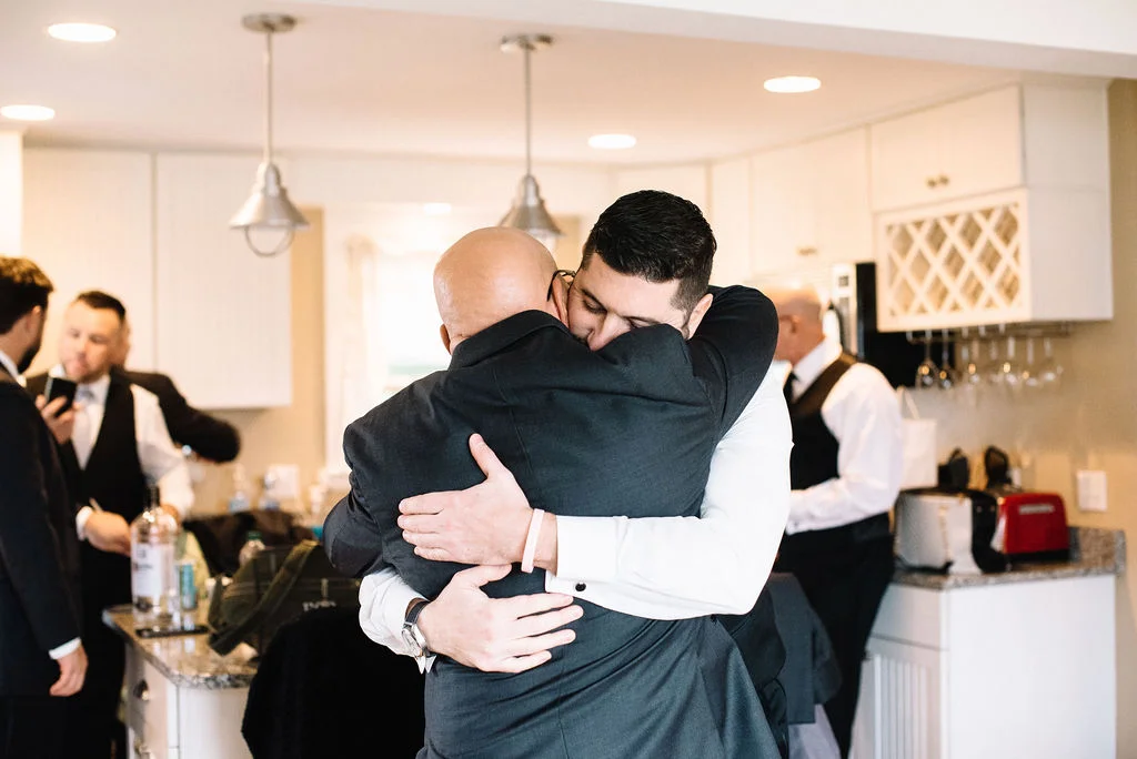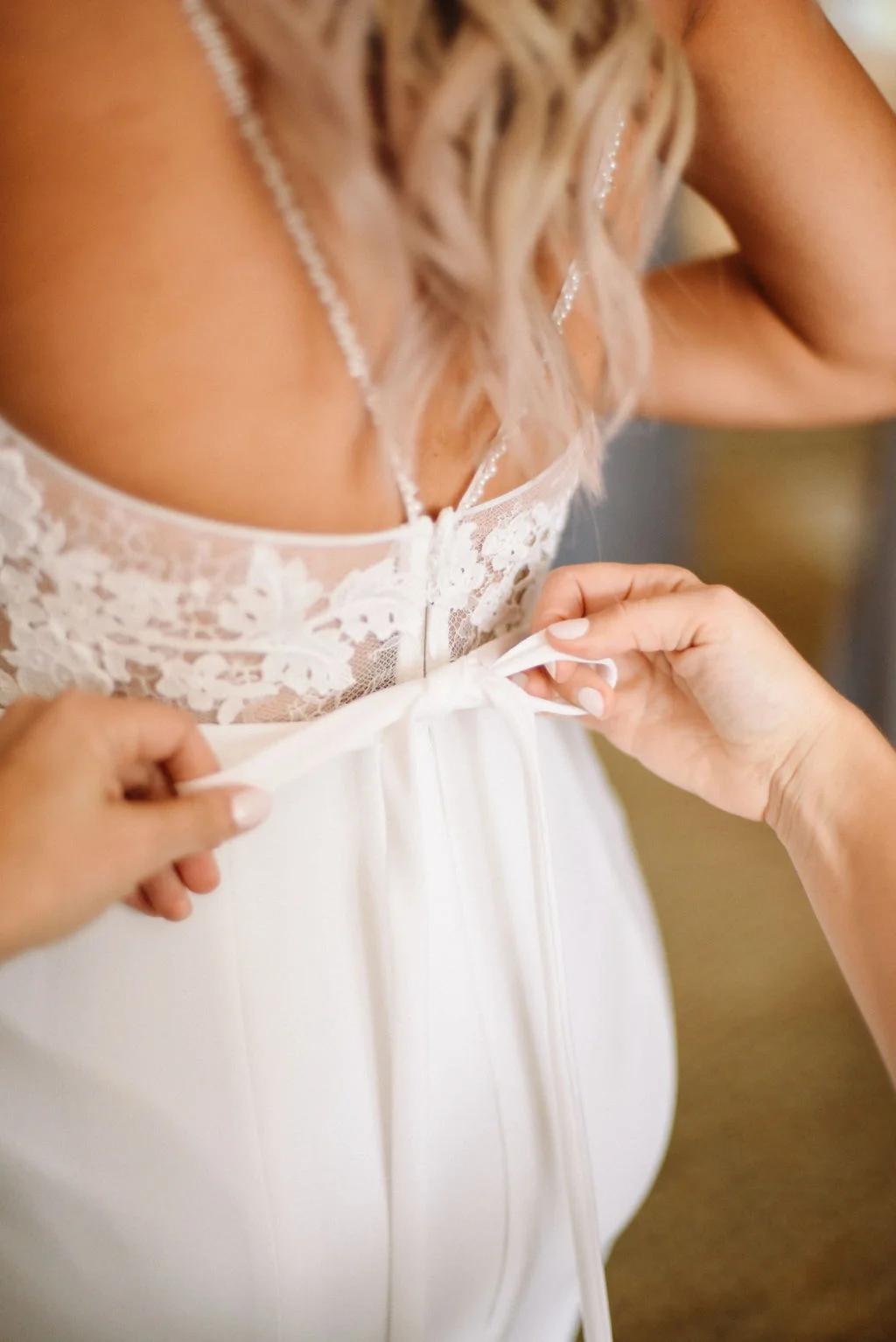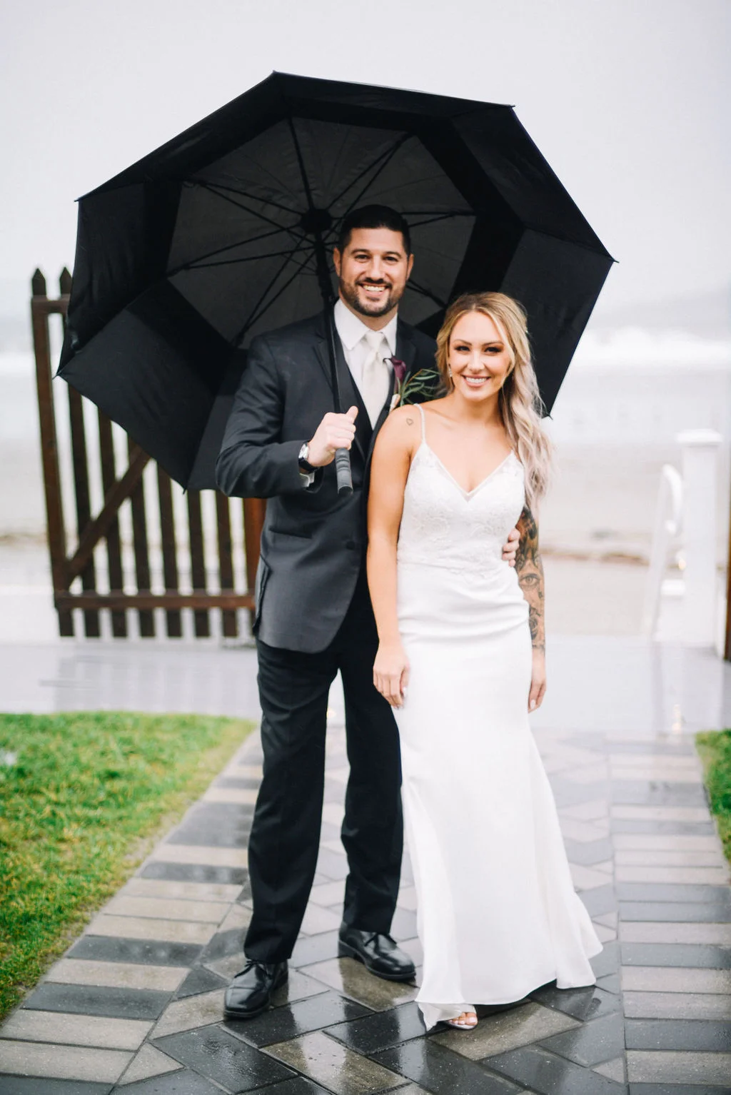 Sometimes when you wake up on your wedding day, it isn’t the sunny, beautiful day you have dreamed about, but rather pouring rain and high speed winds. This was what happened on Nicky + Joey’s wedding day, so when I arrived at the beach home they had rented in Newport, I fully expected some nerves and stress. Rather, I found the opposite. Some of the first words out of Nicky’s mouth were, “I’m so glad we rented an indoor/outdoor venue. I haven’t been stressed out at all.”
