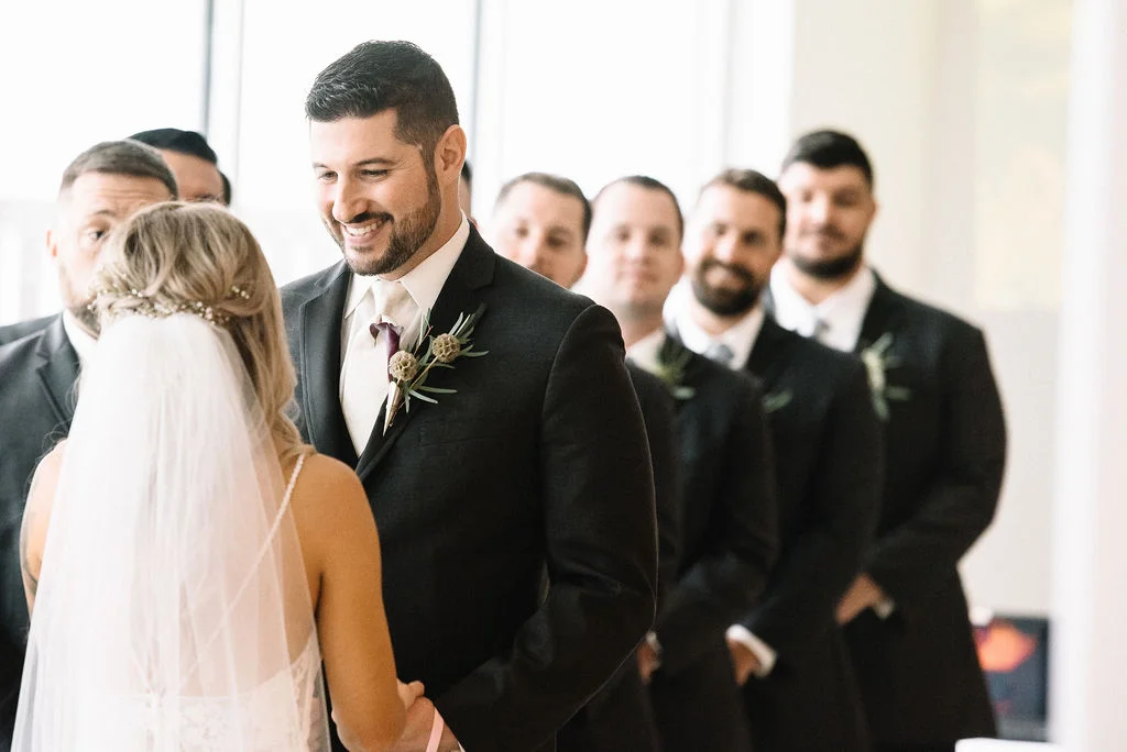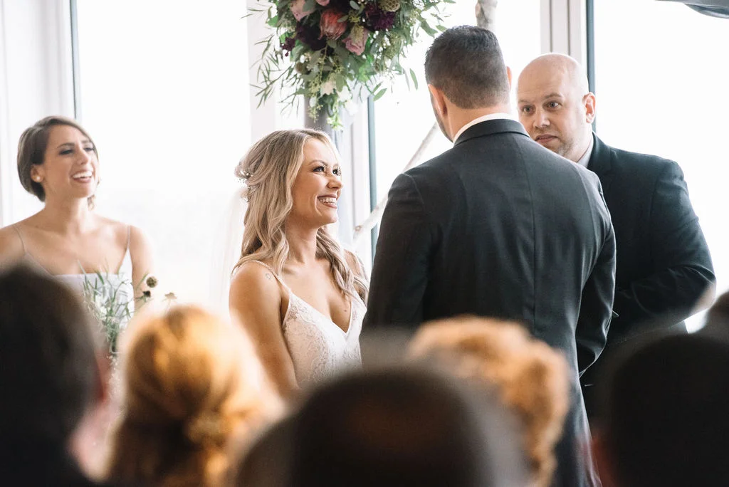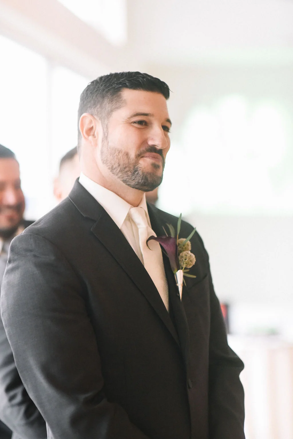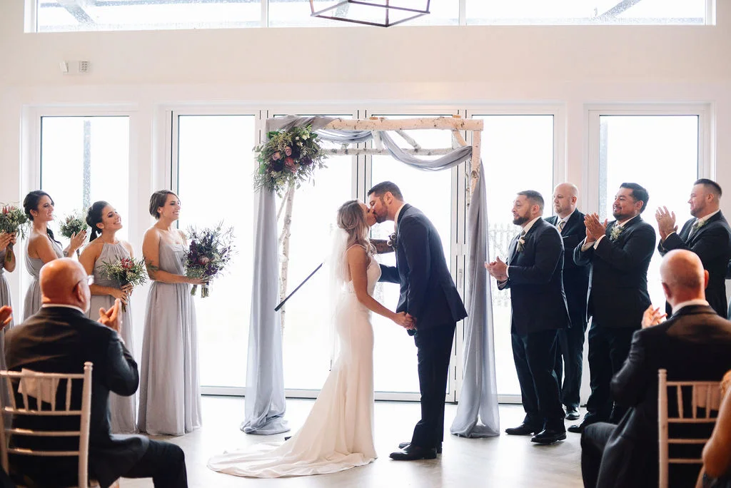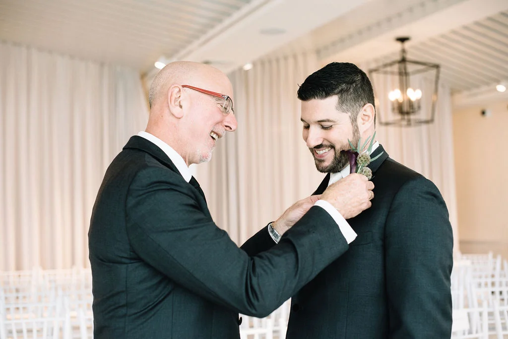By indoor/outdoor venue, Nicky was referring to her venue, The Newport Beach House , which has gorgeous space inside for both ceremony and portraits (as well as outside). It was so nice seeing how relaxed Nicky + Joey were, and we were able to capture some amazing portraits in the newly constructed Oyster Lounge with it’s modern cement floors and walls full of windows.