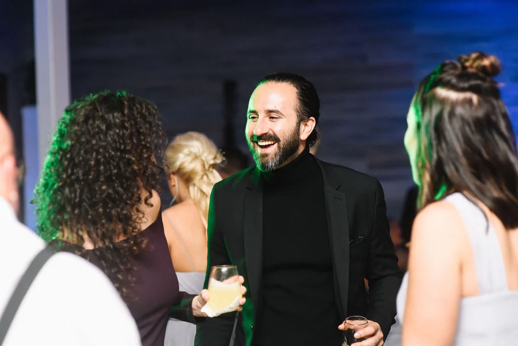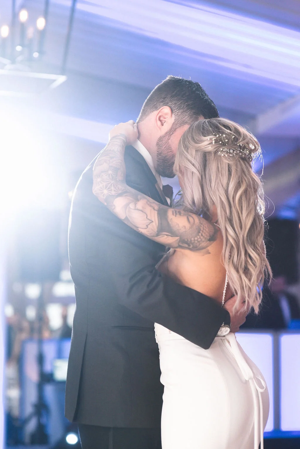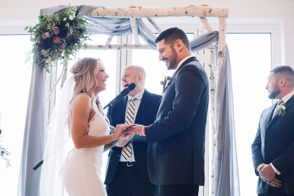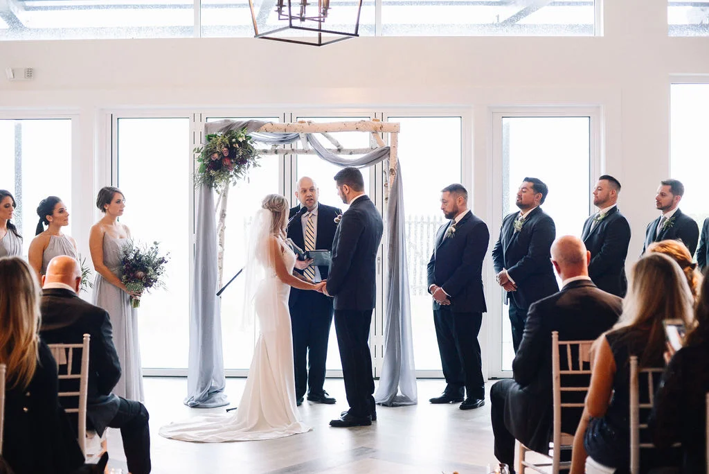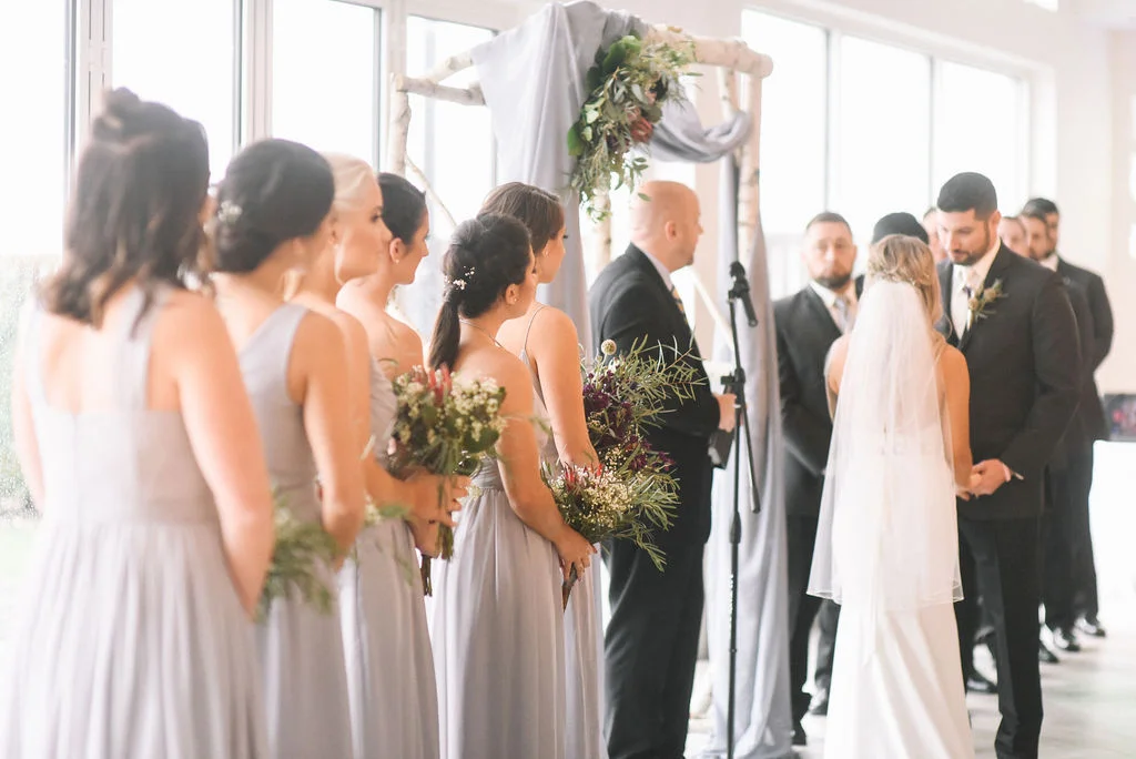 By indoor/outdoor venue, Nicky was referring to her venue, The Newport Beach House , which has gorgeous space inside for both ceremony and portraits (as well as outside). It was so nice seeing how relaxed Nicky + Joey were, and we were able to capture some amazing portraits in the newly constructed Oyster Lounge with it’s modern cement floors and walls full of windows.