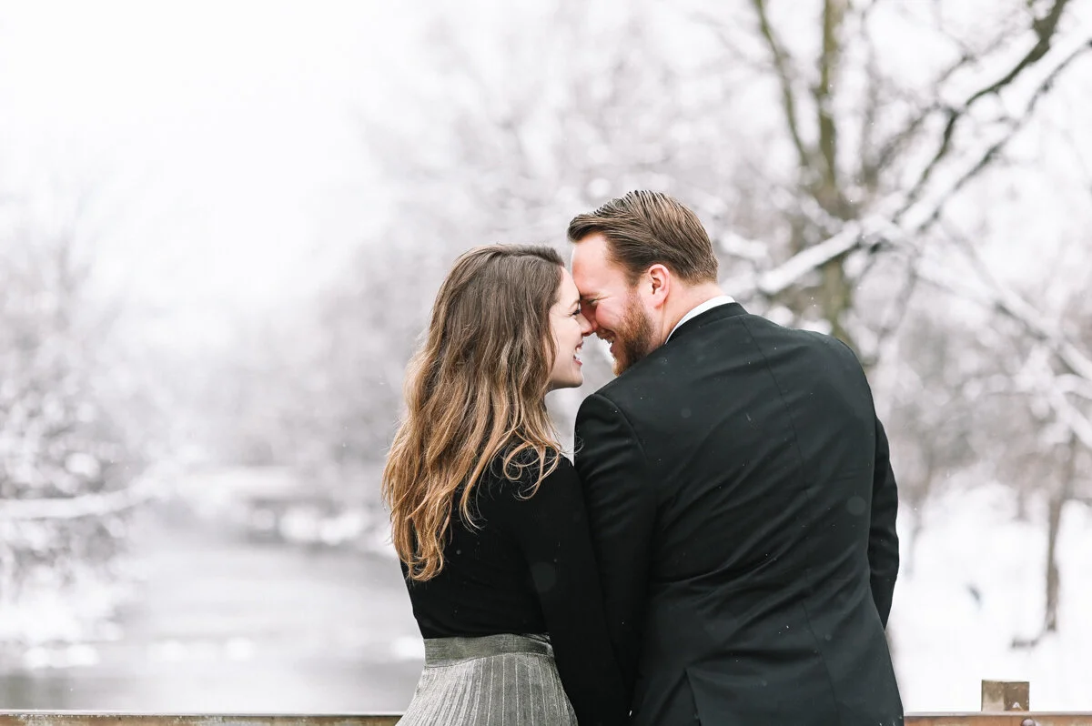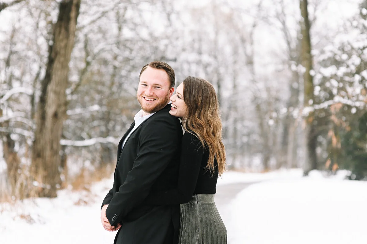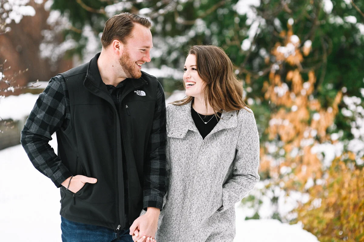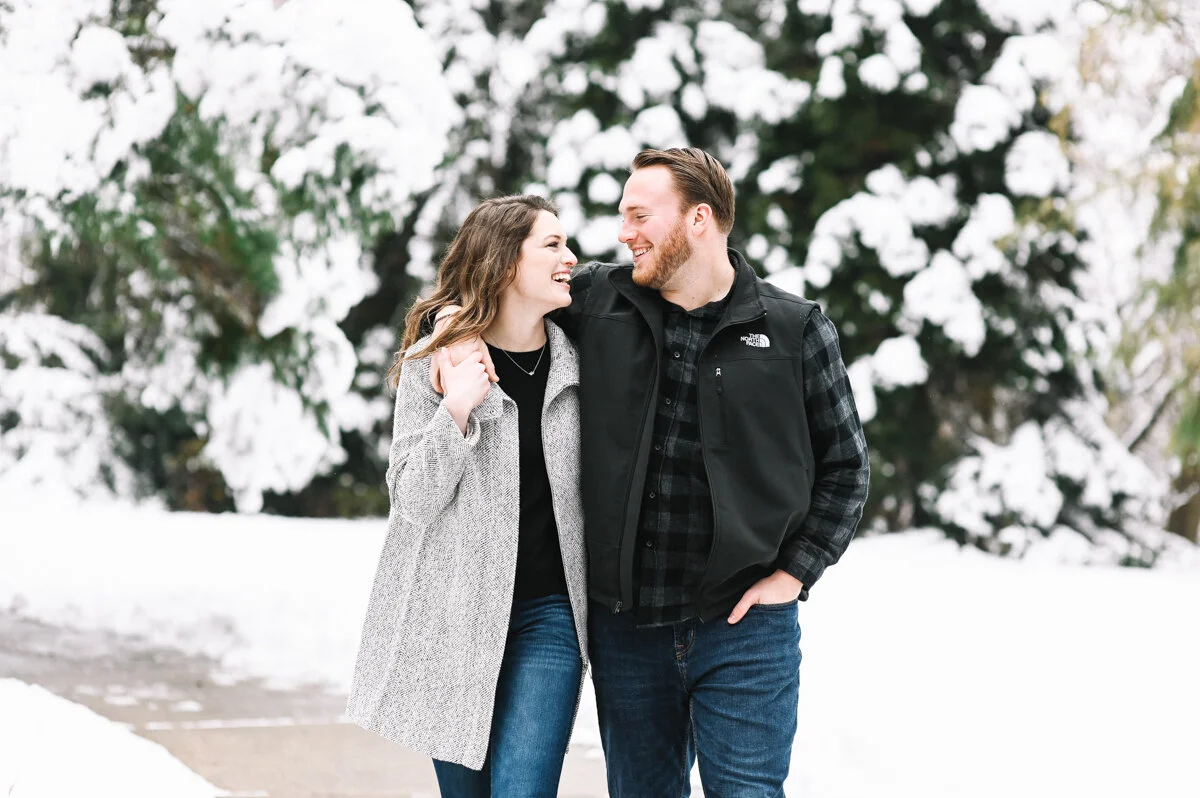 Happy New Year! I kicked off 2021 (and aren’t we ALLLL glad it’s finally 2021?!) with Olivia + Mark’s winter engagement session at MSU in East Lansing. Typically, when I think of winter engagement sessions, I think of bitter cold and dreary. But we had the most beautiful winter day! There was fresh snow and it continued with flurries, giving us possibly my favorite winter engagement photos ever. If you’re newly engaged and thinking of snowy engagement photos- let’s do it! Get in touch and we can watch the weather for some wintery MSU engagement pics!