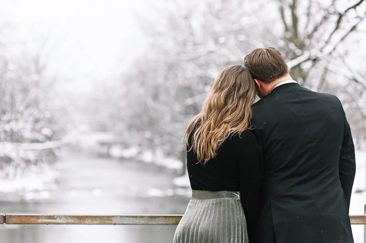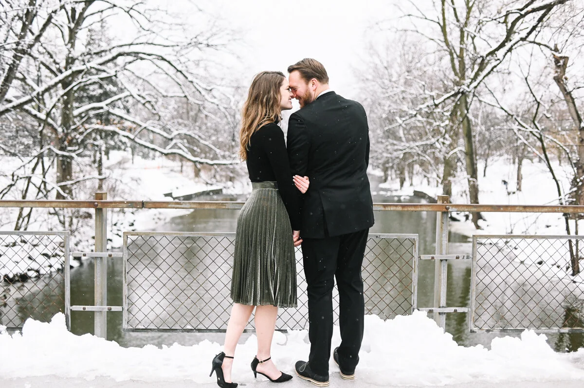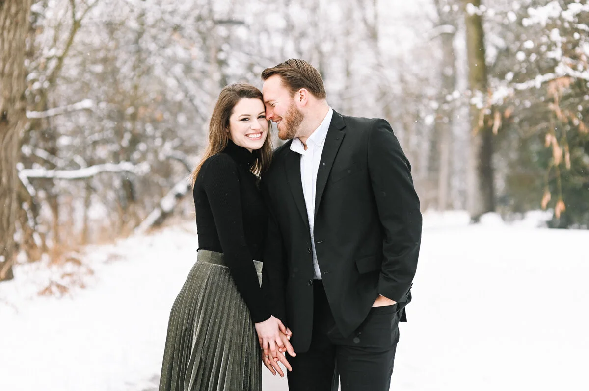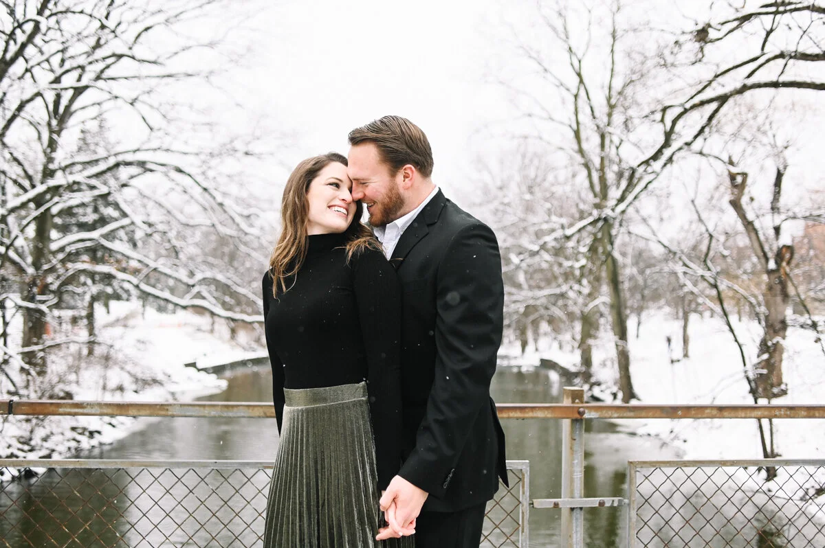 Happy New Year! I kicked off 2021 (and aren’t we ALLLL glad it’s finally 2021?!) with Olivia + Mark’s winter engagement session at MSU in East Lansing. Typically, when I think of winter engagement sessions, I think of bitter cold and dreary. But we had the most beautiful winter day! There was fresh snow and it continued with flurries, giving us possibly my favorite winter engagement photos ever. If you’re newly engaged and thinking of snowy engagement photos- let’s do it! Get in touch and we can watch the weather for some wintery MSU engagement pics!