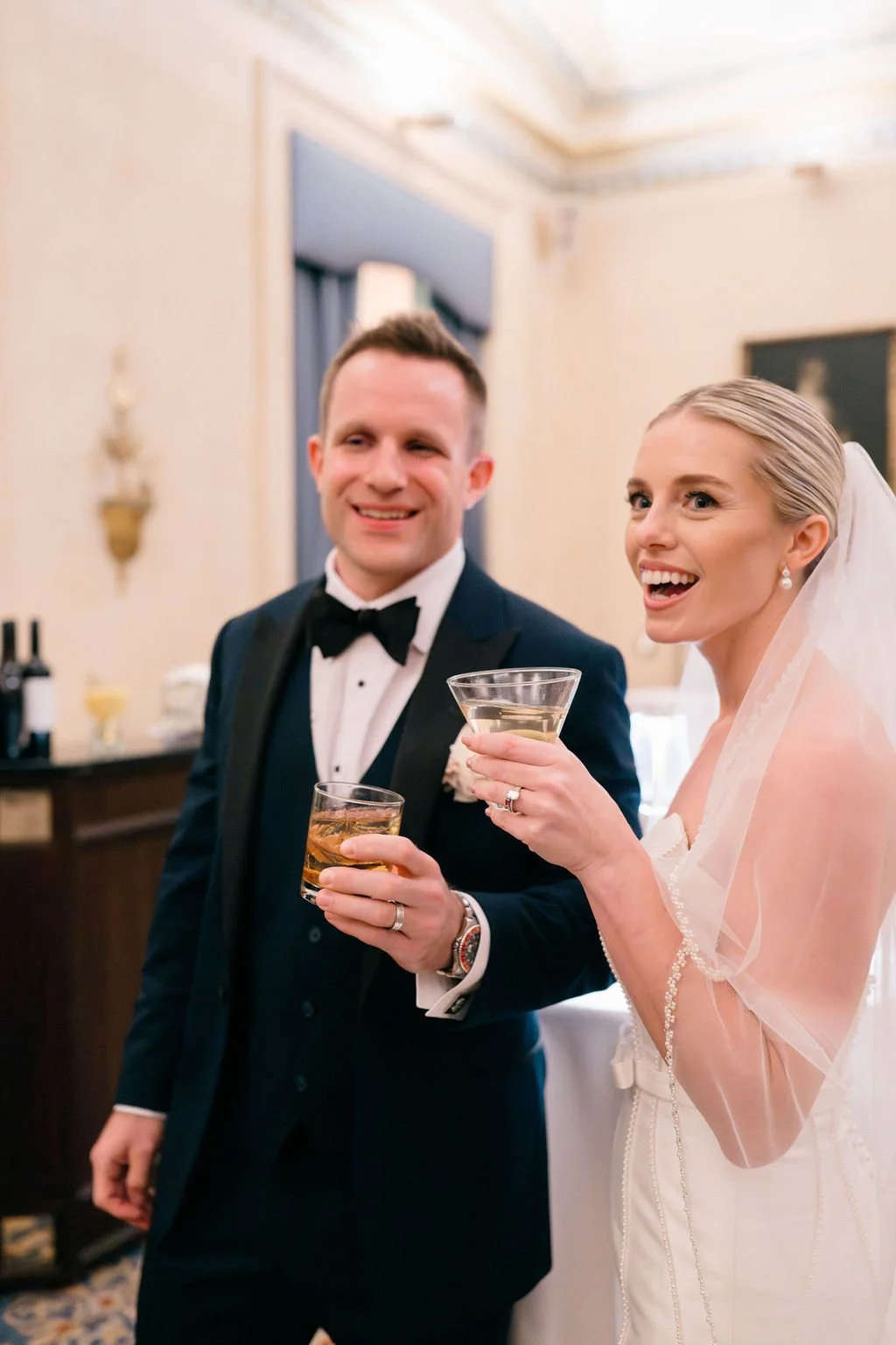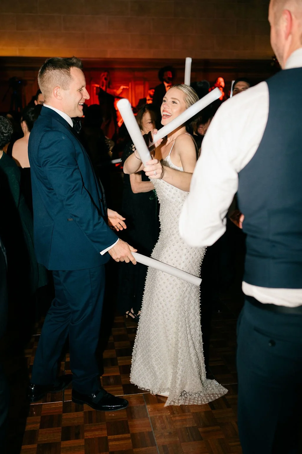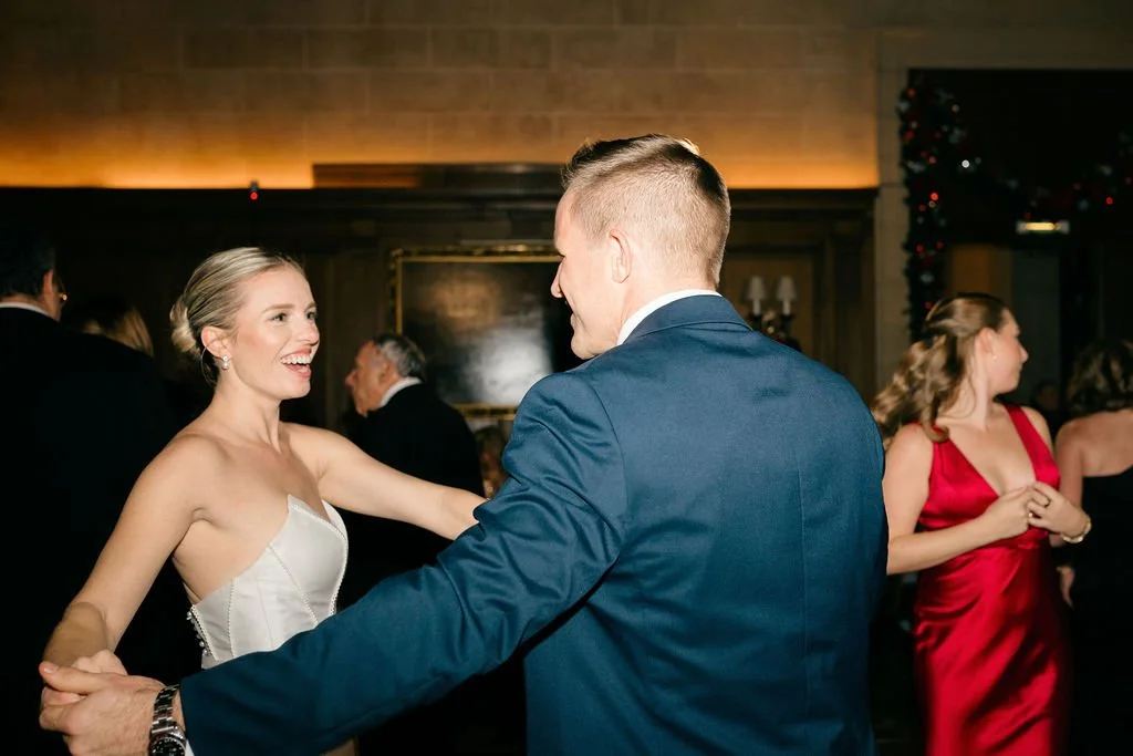 Once the reception begins, the Detroit Athletic Club transforms into a lively and elegant party. Guests gather for dinner, toasts, and dancing in a space that feels both classic and energetic.