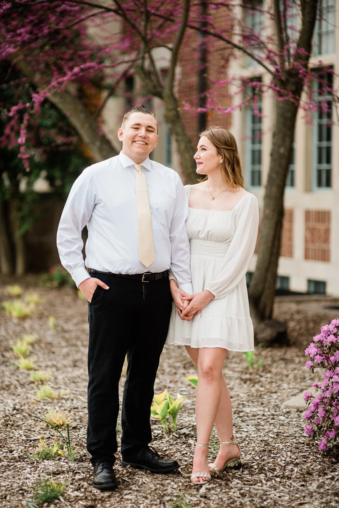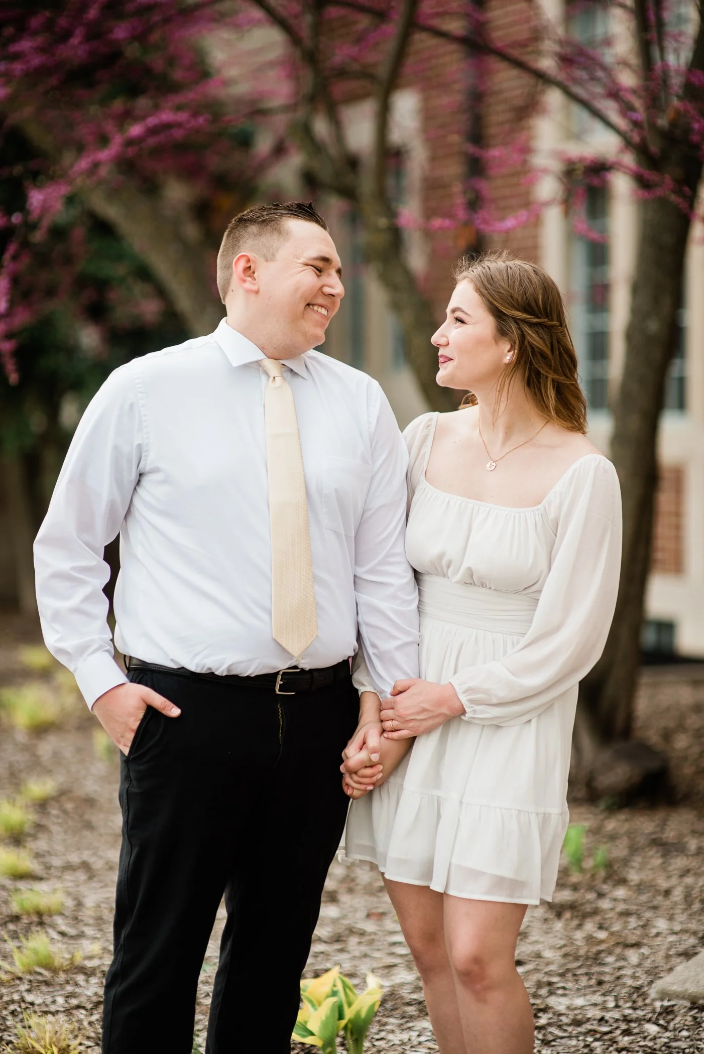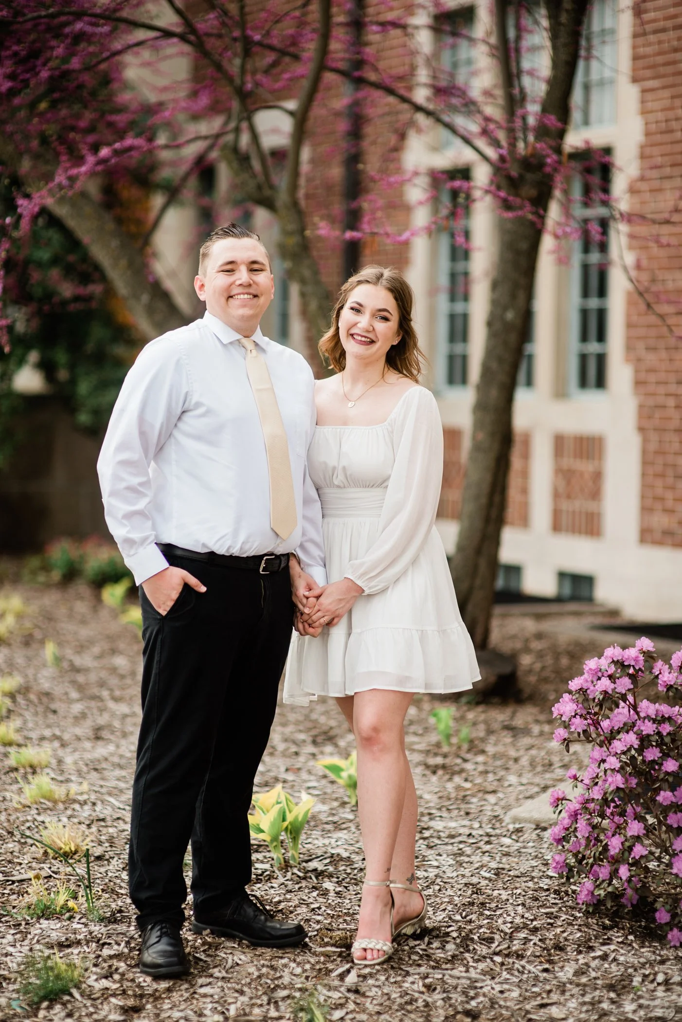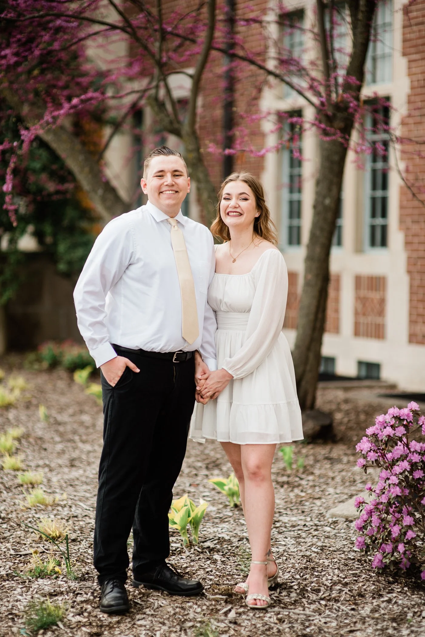 I loved getting to know Mikayla and Macken! These two are headed to Belfast for graduate school in the fall, and I’m so jealous! They will get to hop around Europe in their free time! What an incredible next step. We were lucky all of the spring blooms came early this year and we were able to walk around the campus of MSU snapping photos with them in the background. I love how the photos turned out! Congrats again, you two!