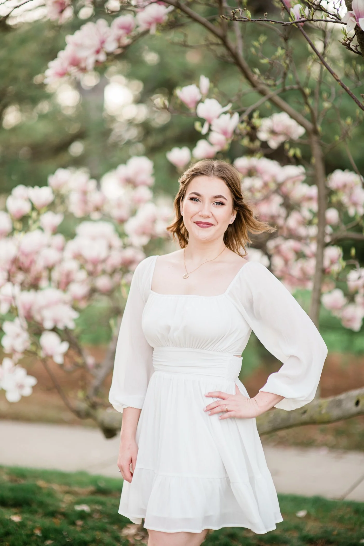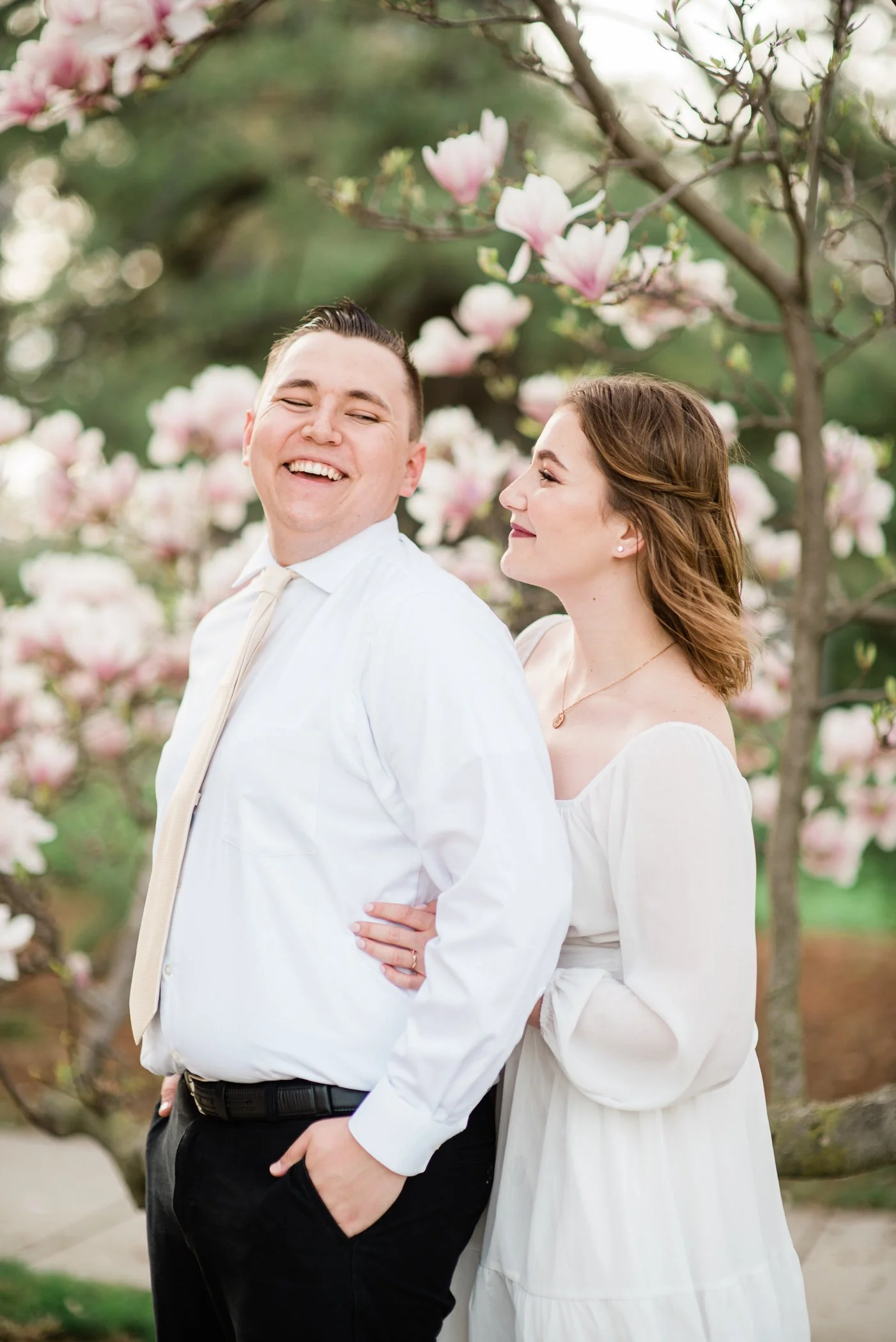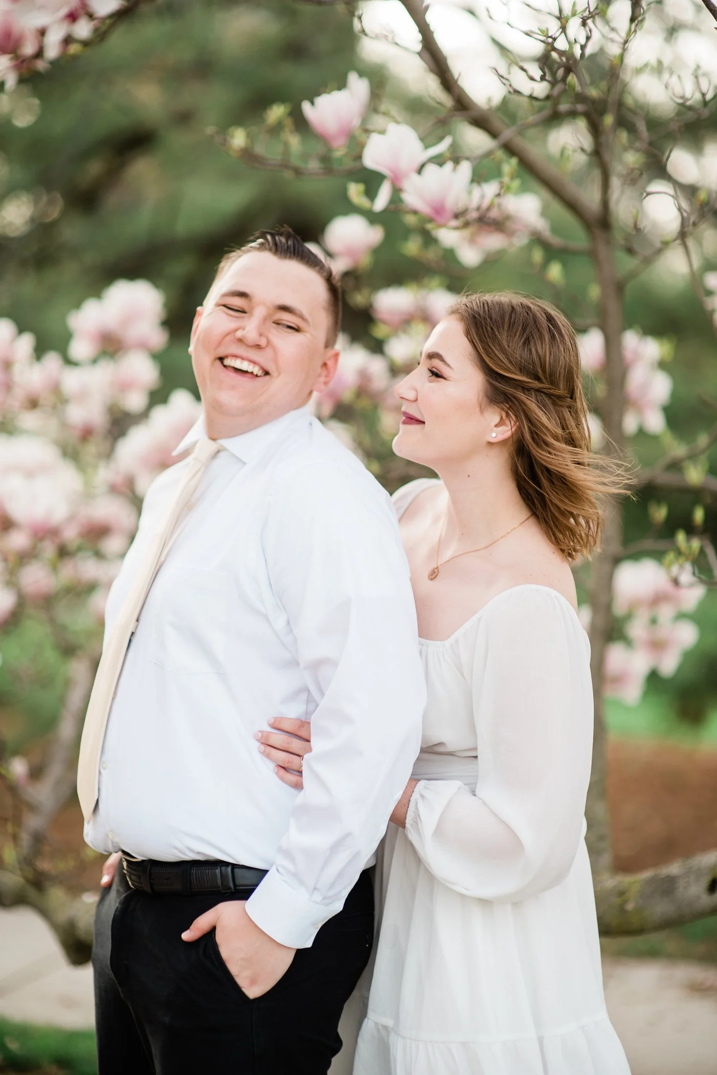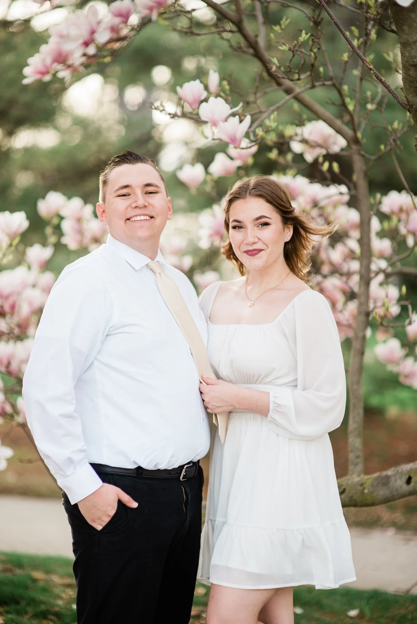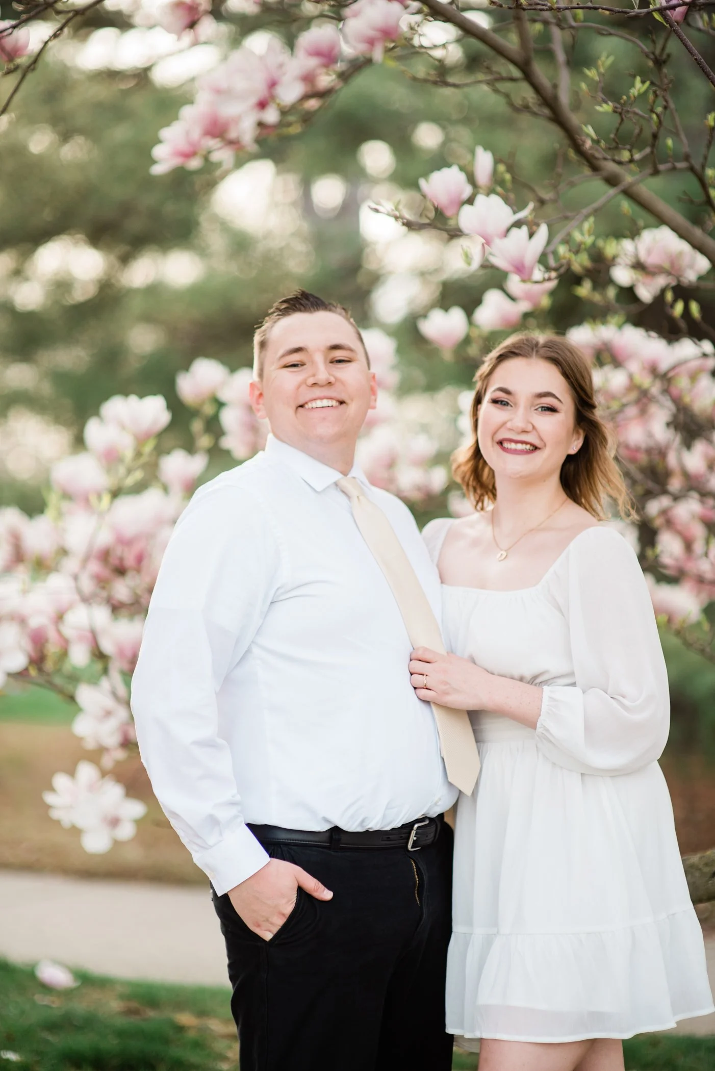 I loved getting to know Mikayla and Macken! These two are headed to Belfast for graduate school in the fall, and I’m so jealous! They will get to hop around Europe in their free time! What an incredible next step. We were lucky all of the spring blooms came early this year and we were able to walk around the campus of MSU snapping photos with them in the background. I love how the photos turned out! Congrats again, you two!