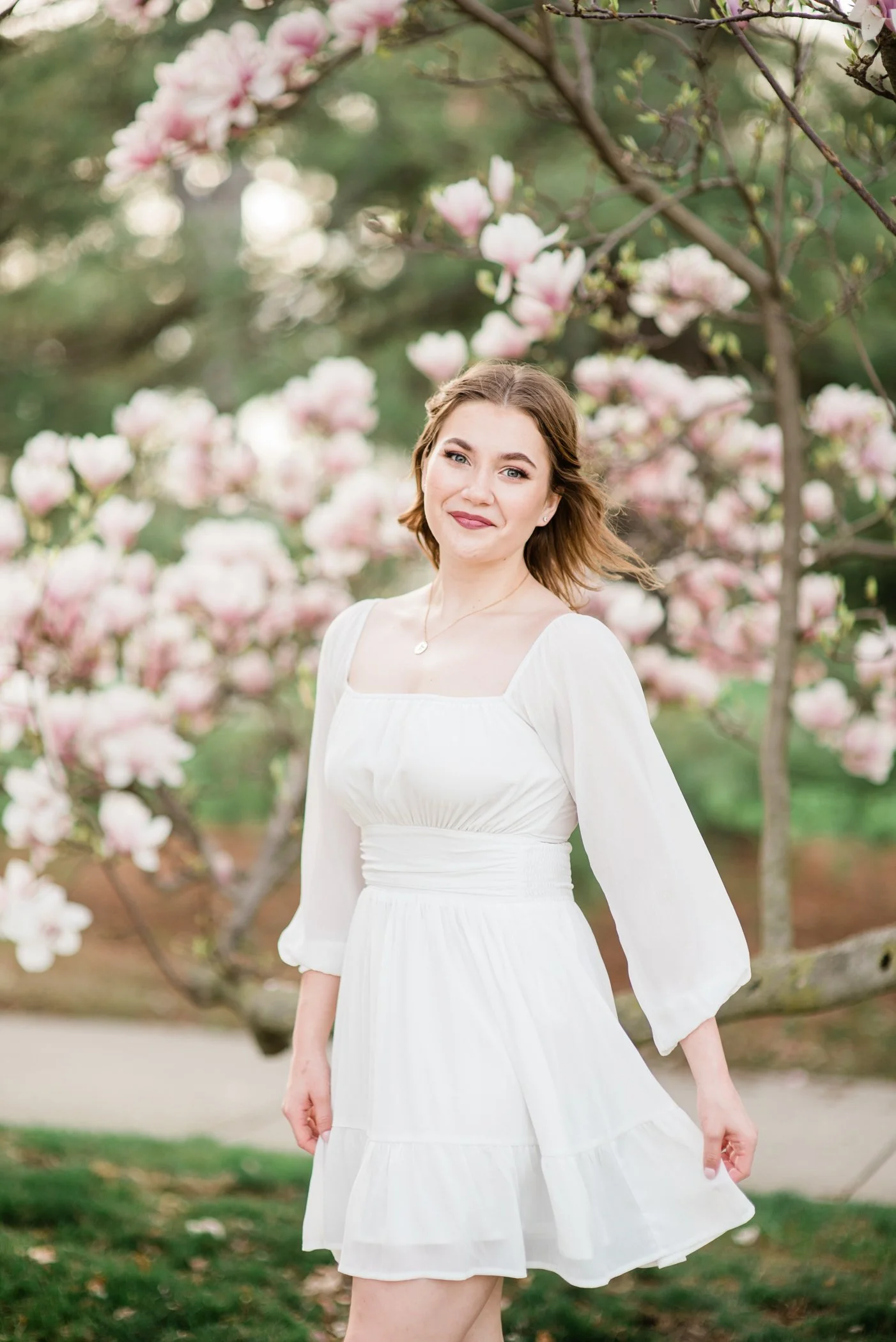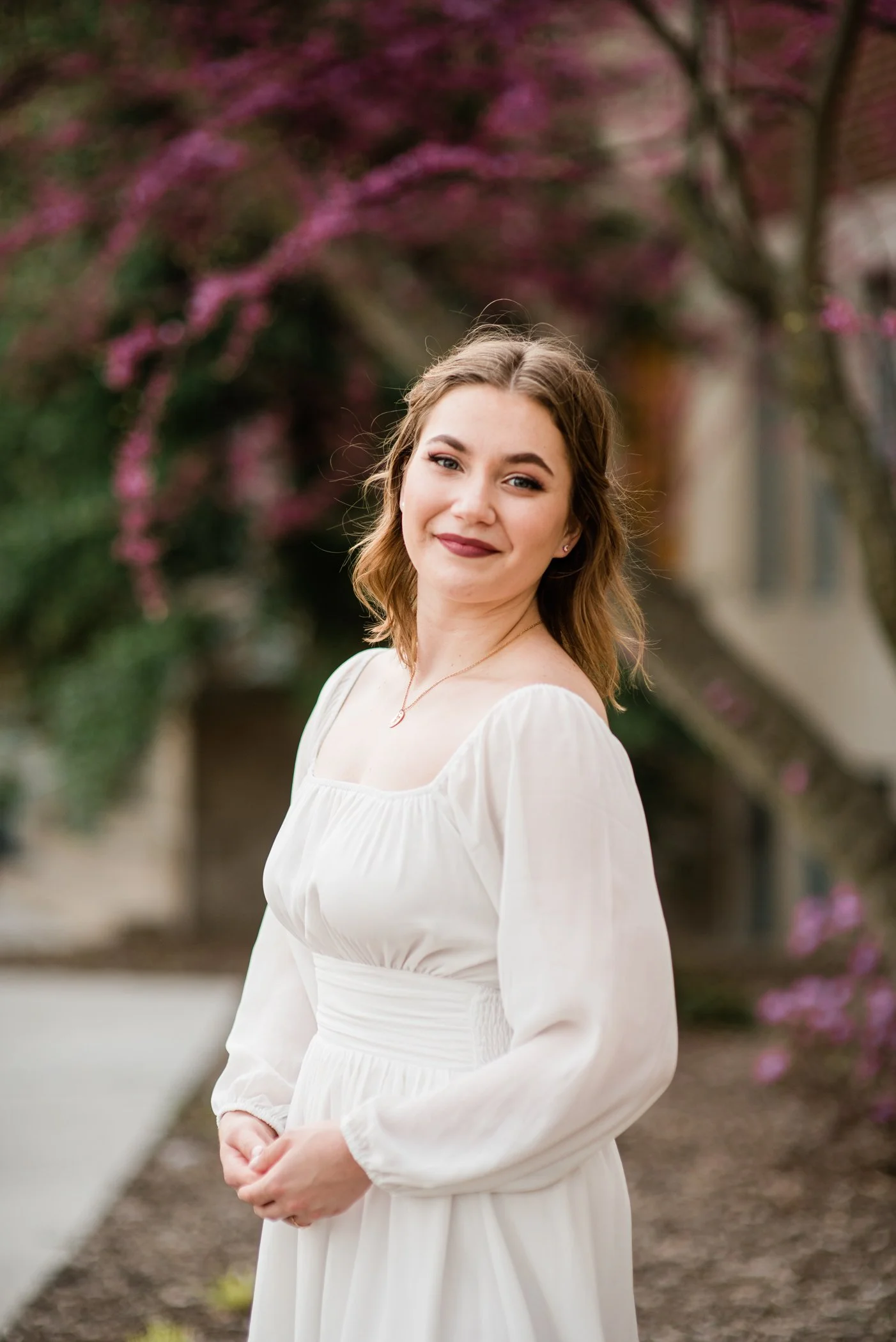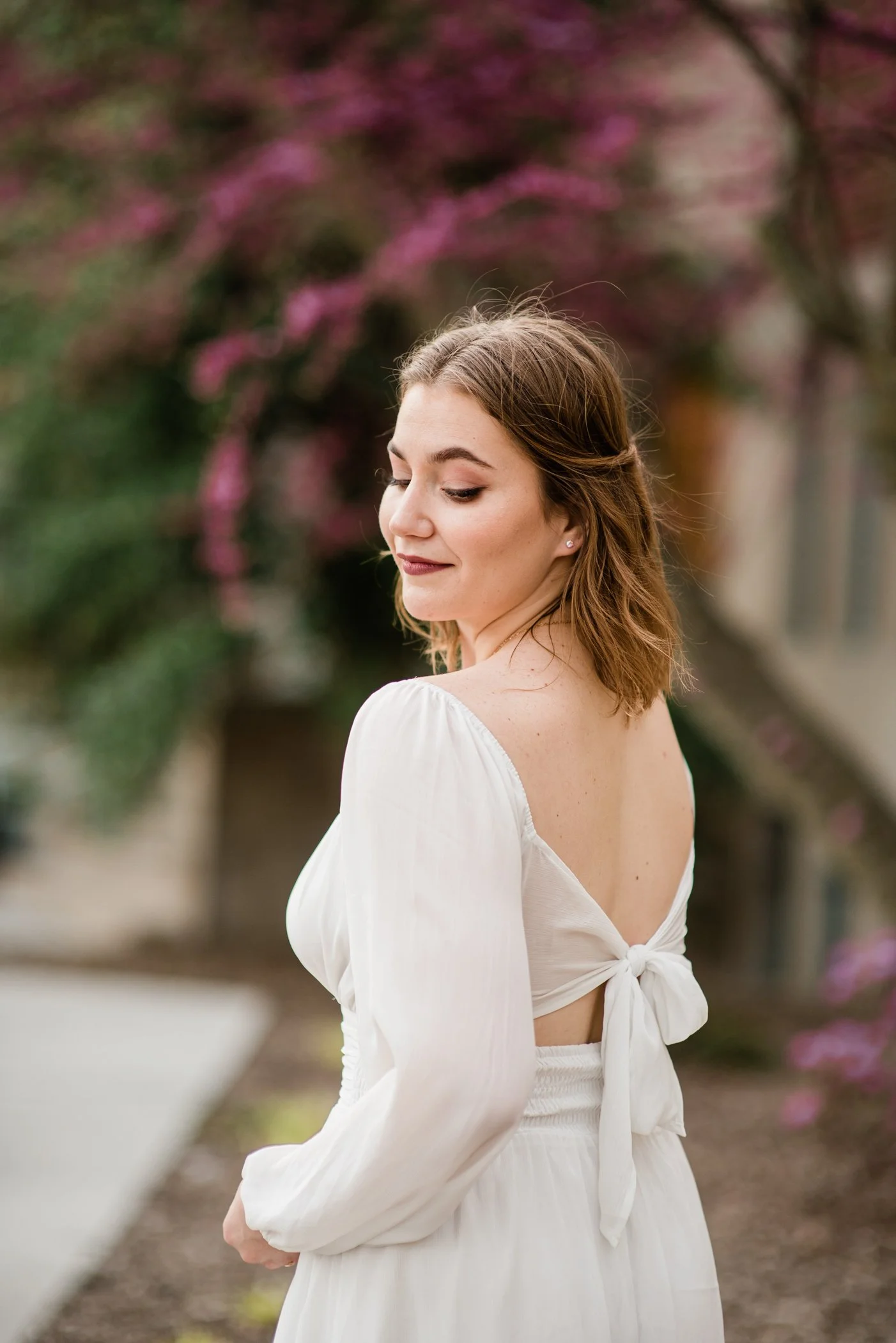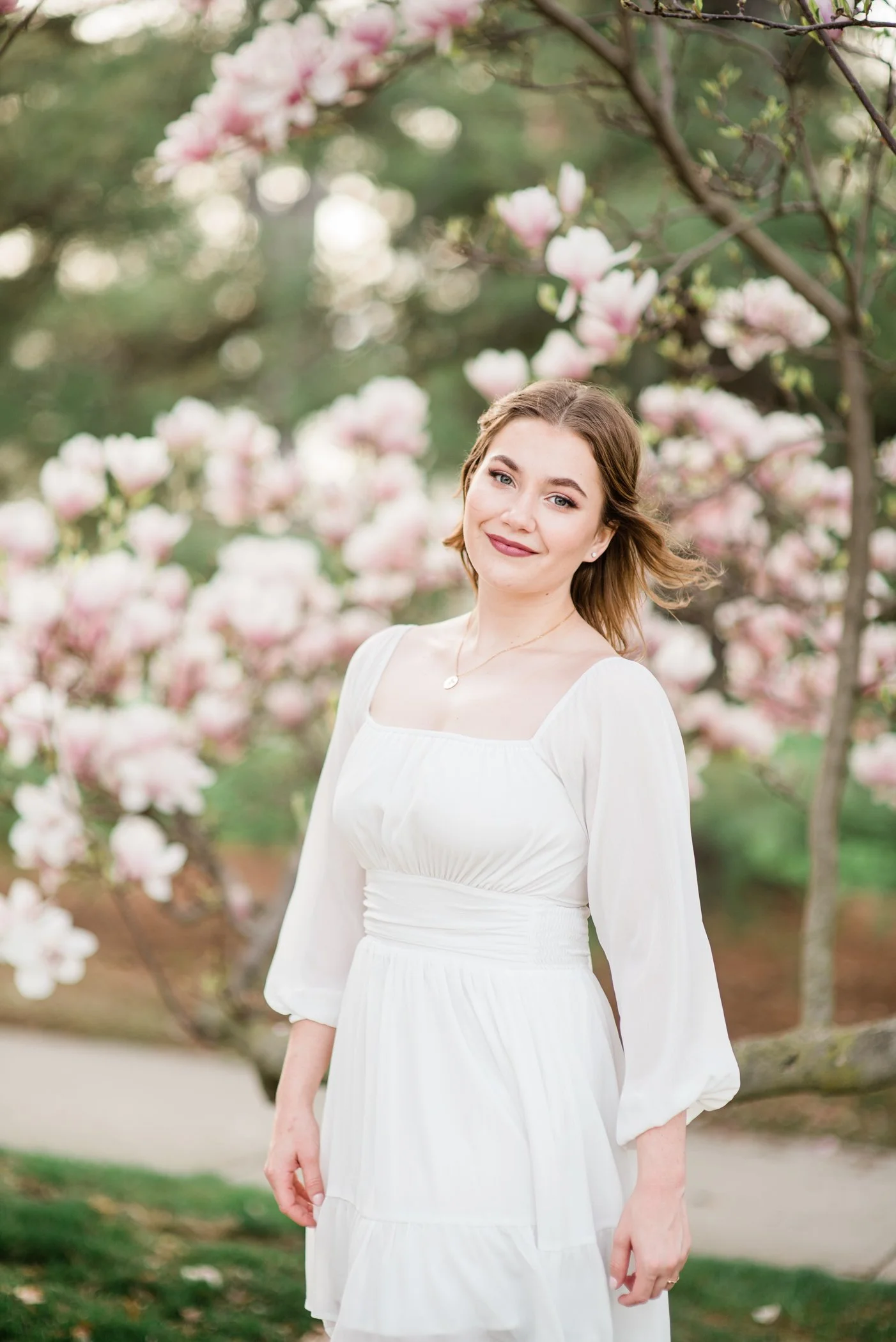 I loved getting to know Mikayla and Macken! These two are headed to Belfast for graduate school in the fall, and I’m so jealous! They will get to hop around Europe in their free time! What an incredible next step. We were lucky all of the spring blooms came early this year and we were able to walk around the campus of MSU snapping photos with them in the background. I love how the photos turned out! Congrats again, you two!