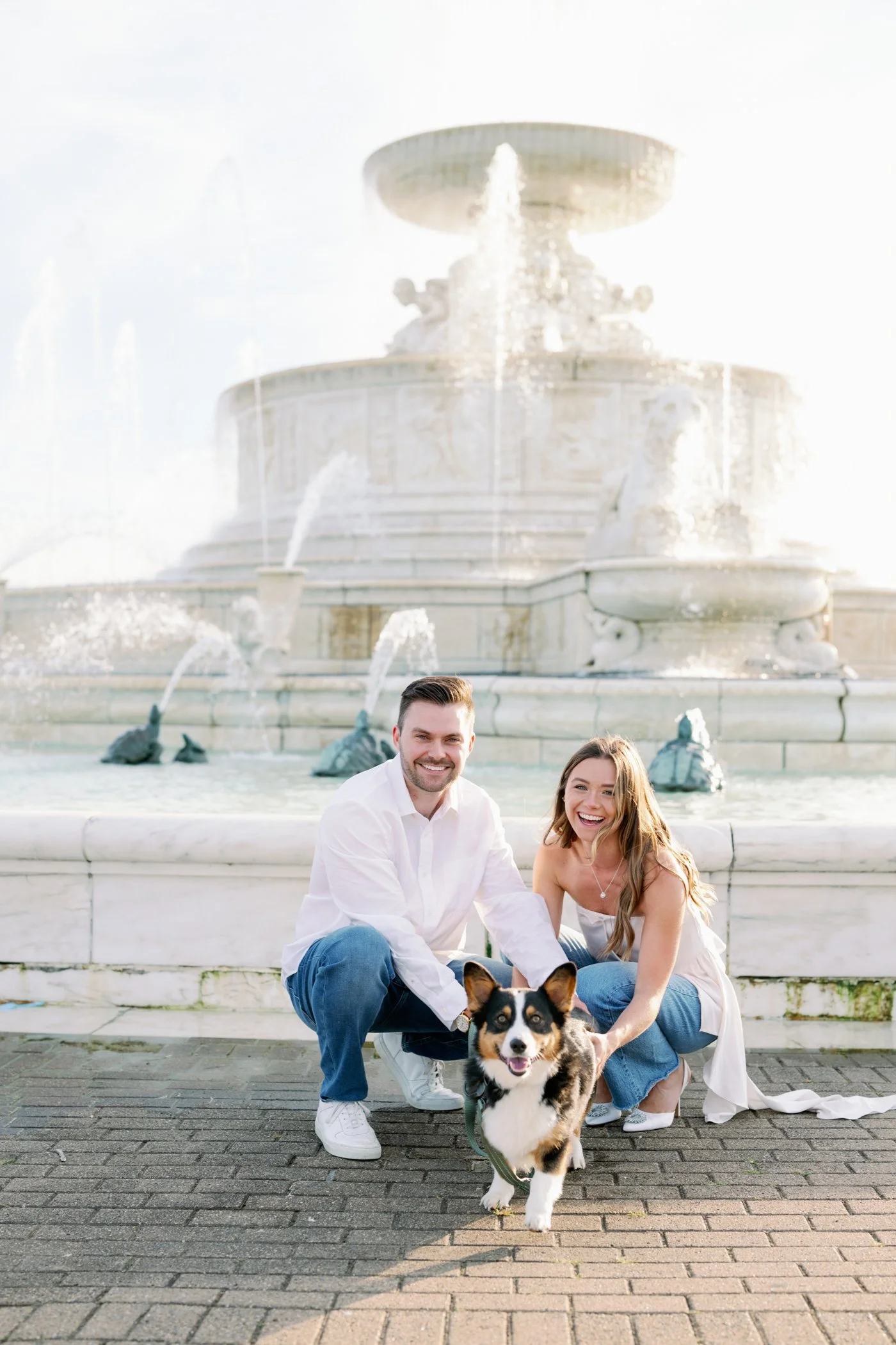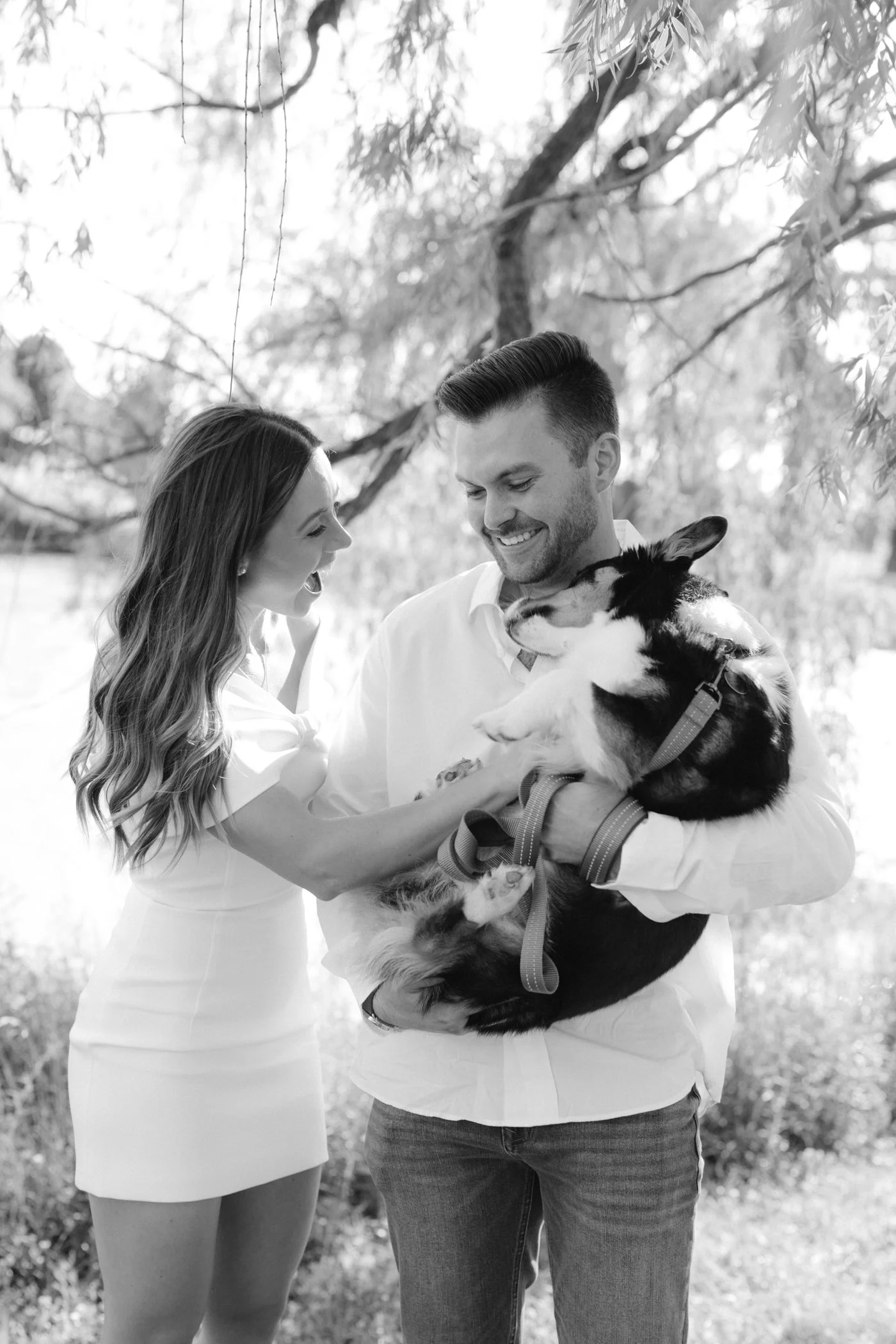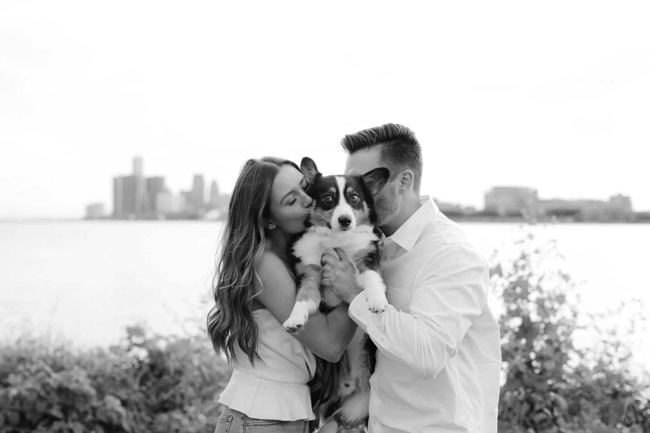 One of the cutest accessories a couple can bring to their engagement session is their puppy! Last summer, I spent an evening on beautiful Belle Isle in Detroit with these two and their corgi! They hugged him, cuddled him, kissed him, and those big corgi eyes gave me some of my favorite photos ever! I’m super excited to photograph S + N’s wedding at the Book Tower in Detroit next month! Come back to check out some of those favorites soon, but for now, here are my favorites from their engagement session!