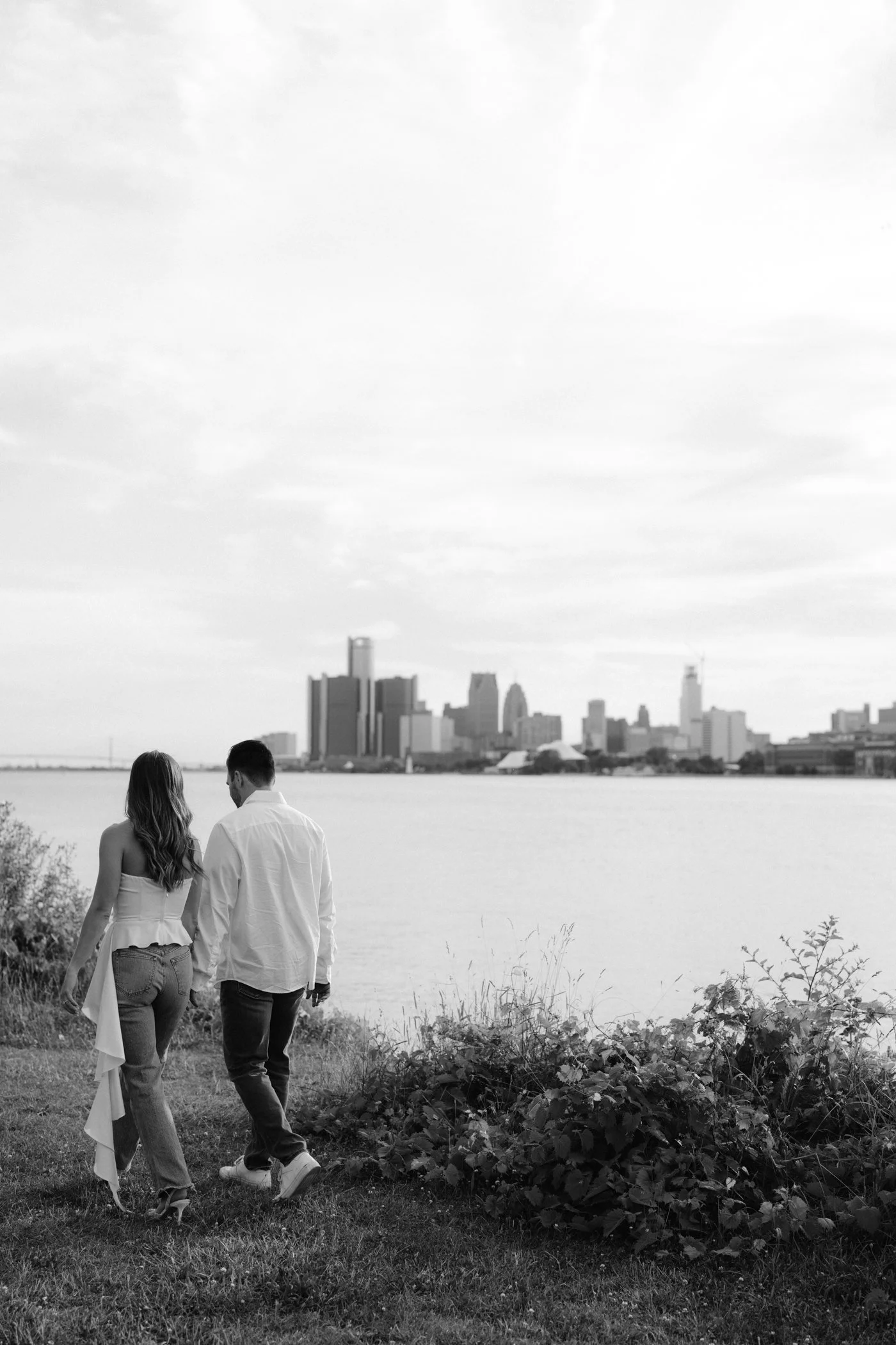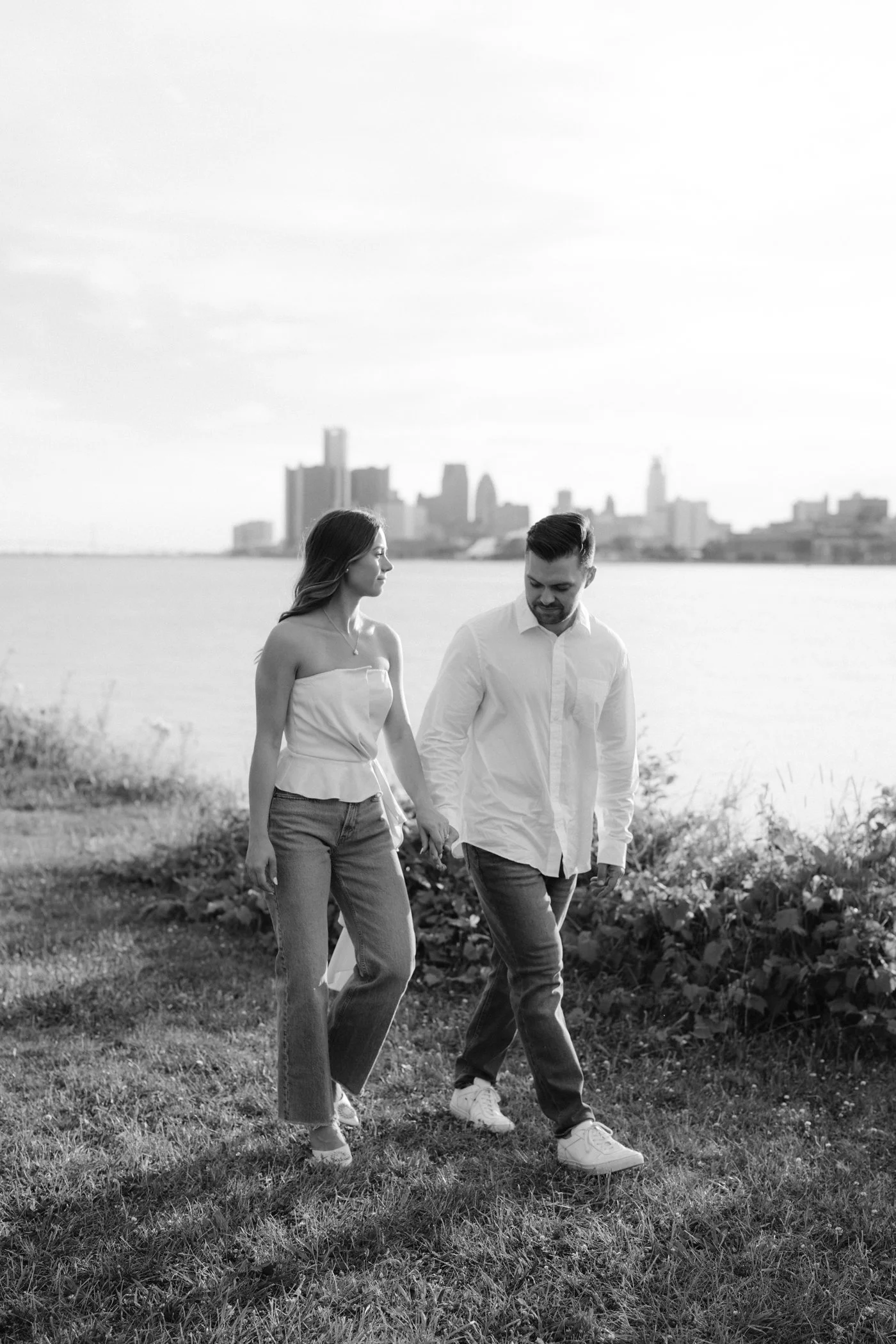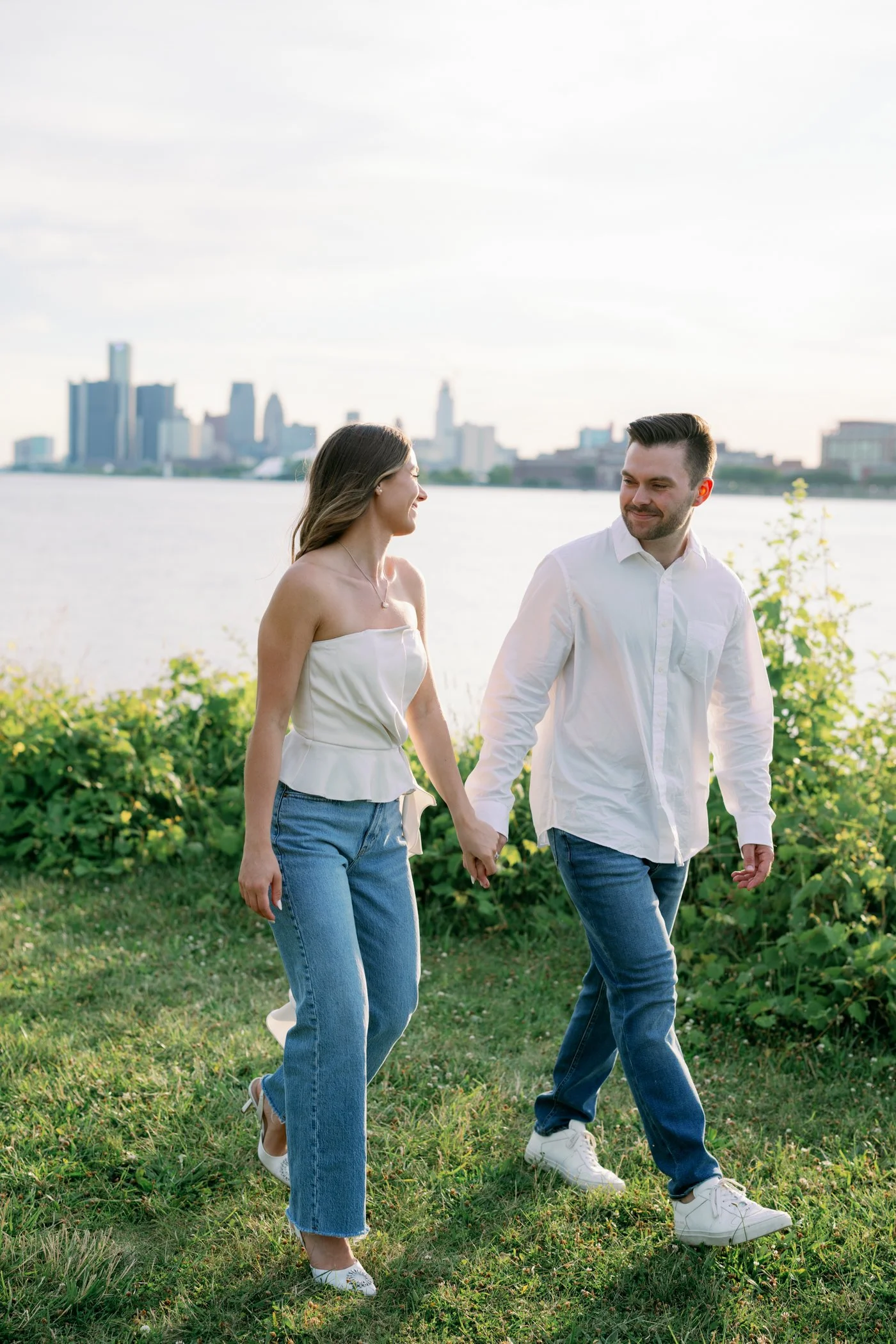 One of the cutest accessories a couple can bring to their engagement session is their puppy! Last summer, I spent an evening on beautiful Belle Isle in Detroit with these two and their corgi! They hugged him, cuddled him, kissed him, and those big corgi eyes gave me some of my favorite photos ever! I’m super excited to photograph S + N’s wedding at the Book Tower in Detroit next month! Come back to check out some of those favorites soon, but for now, here are my favorites from their engagement session!