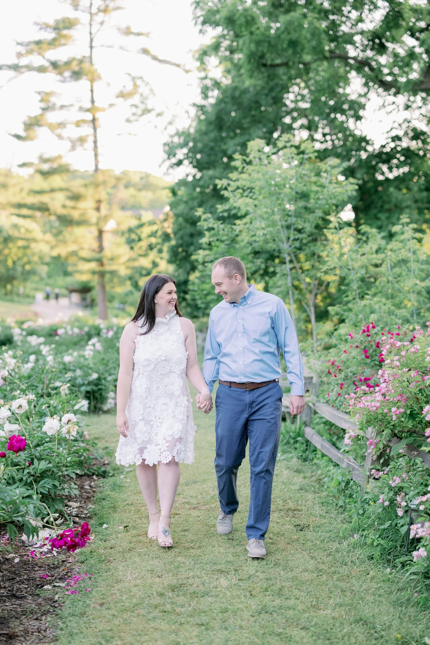 I’m not sure if there is anything prettier in Ann Arbor than the peony gardens at the Arb when they are in full bloom. They only bloom for two weeks of the year, the last week of May into the first week of June. Whenever a couple inquiries with me for an engagement session in Ann Arbor, I always say, if you can do one of these two weeks, choose the peony gardens for your engagement photos! It’s a unique setting that very few couples are able to have, and the results are so so stunning. Here are some of my favorites from a session there last year!