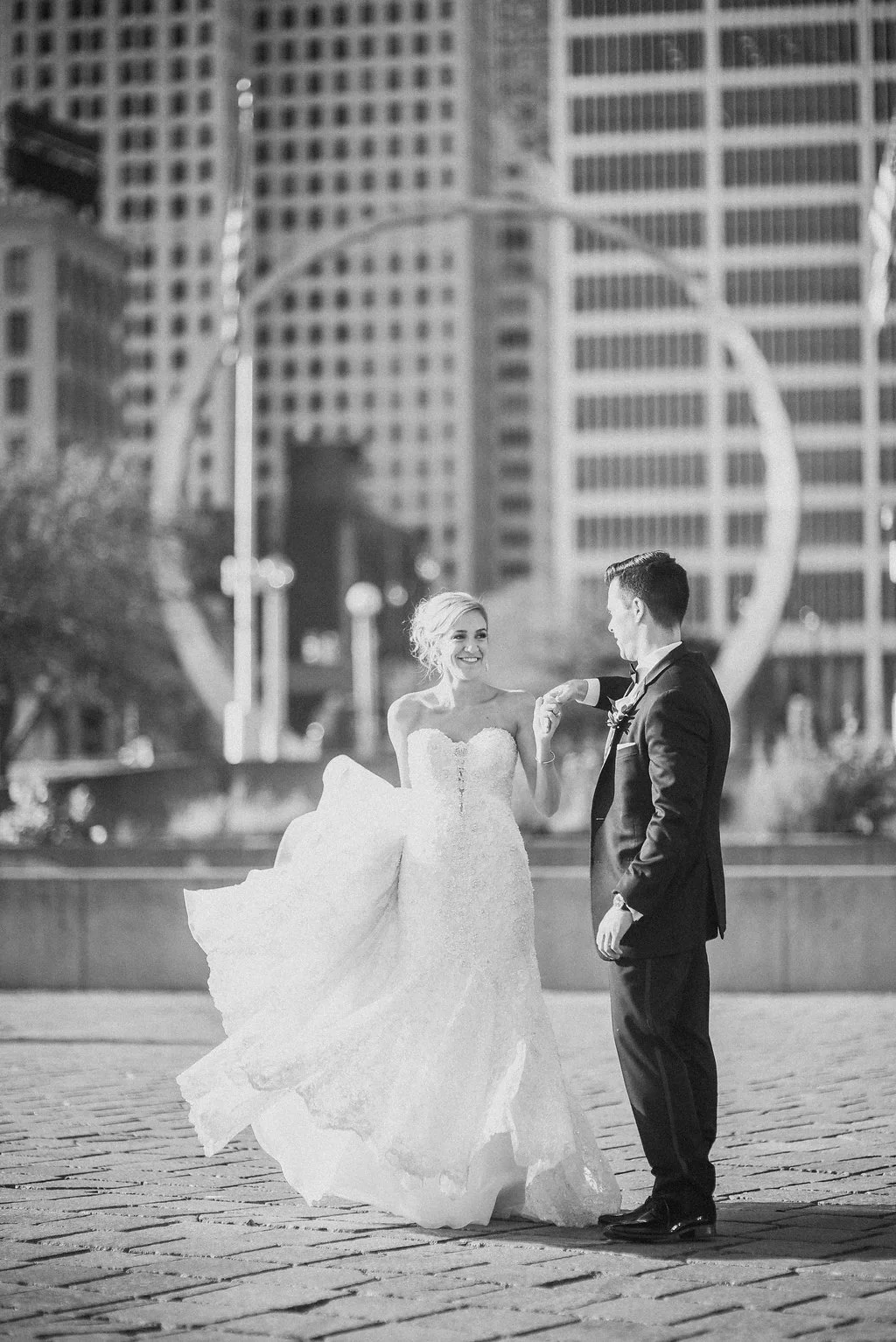 When their wedding finally came, I was so excited. It was my first wedding in downtown Detroit and I was nervous! I had location scouted to select photo locations to help prepare, and Alyssa had arranged transportation for me so that all I had to focus on were the photos. Their wedding at Old St. Mary’s and reception at the Palazzo Grande were stunning. The church was one of the prettiest I have ever shot in and the Palazzo Grande had some of the best food I’ve ever had at a wedding. On top of great food, Alyssa + Phil sat us at a table with guests so that we were able to enjoy the multiple course meal along with their guests. We felt like family!