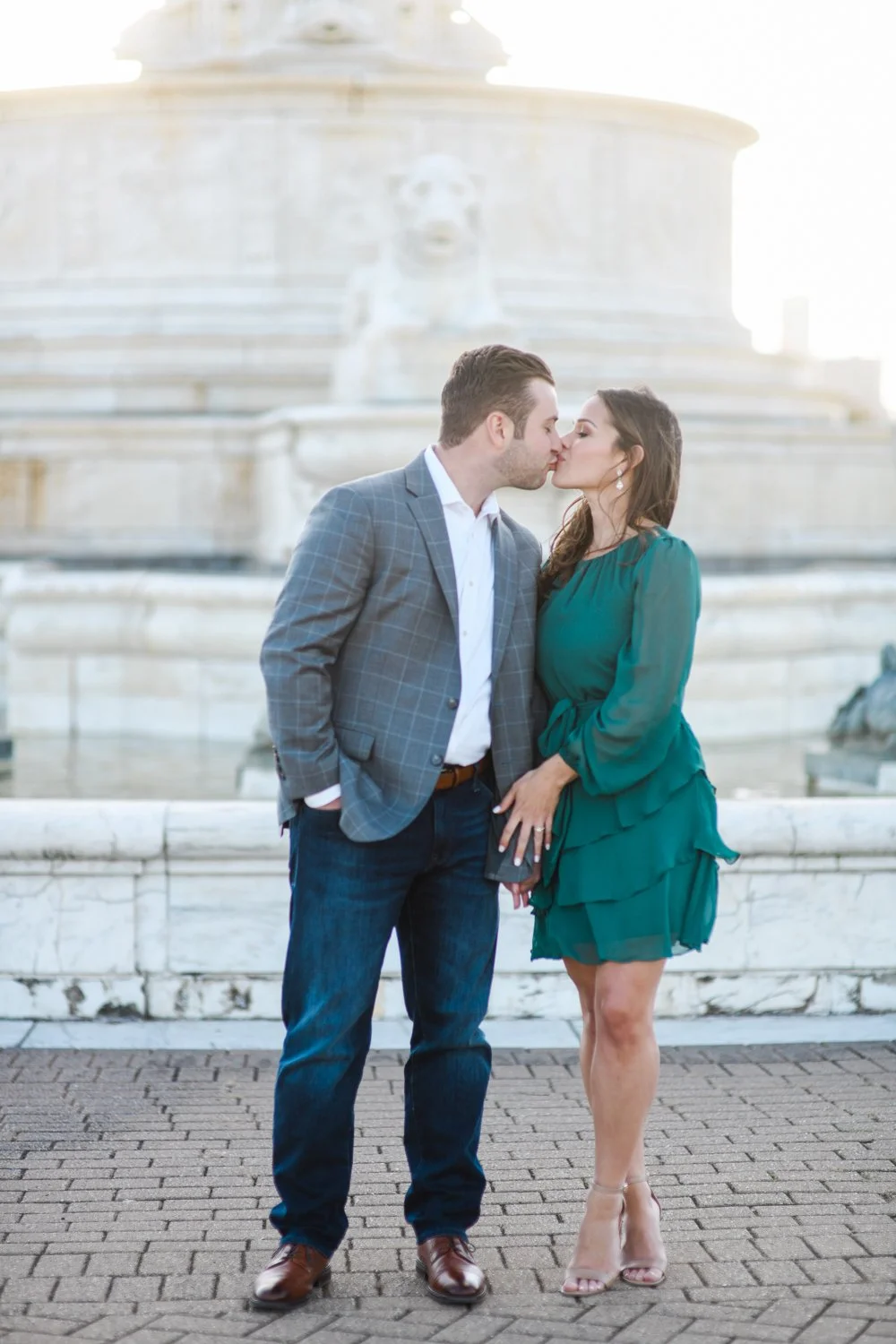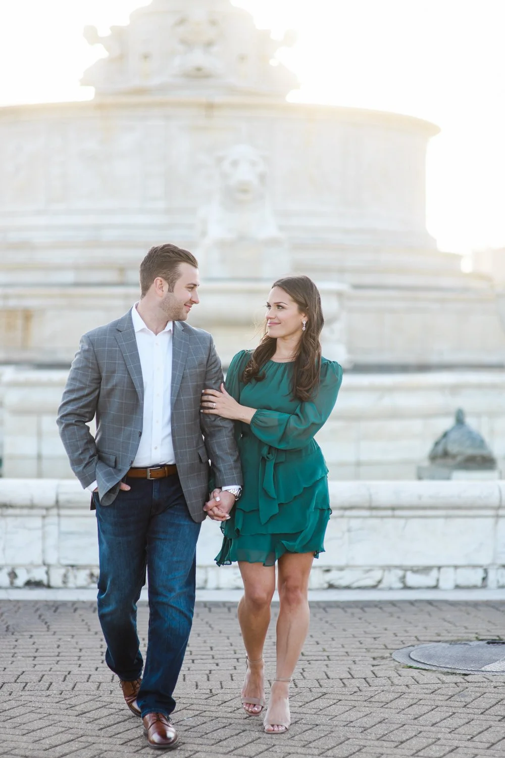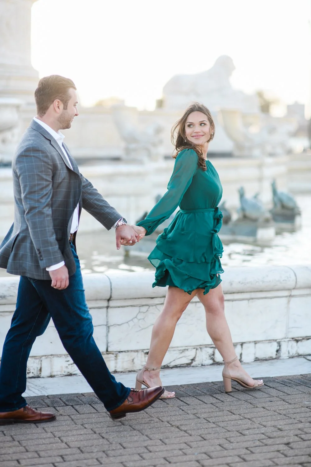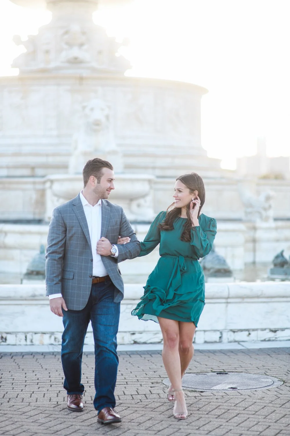 The fountain is gorgeous architecturally, and with string lights hanging over, make such pretty light. End here after walking through the city streets for photos. Casual or formal, but wear comfy shoes. No bathrooms.