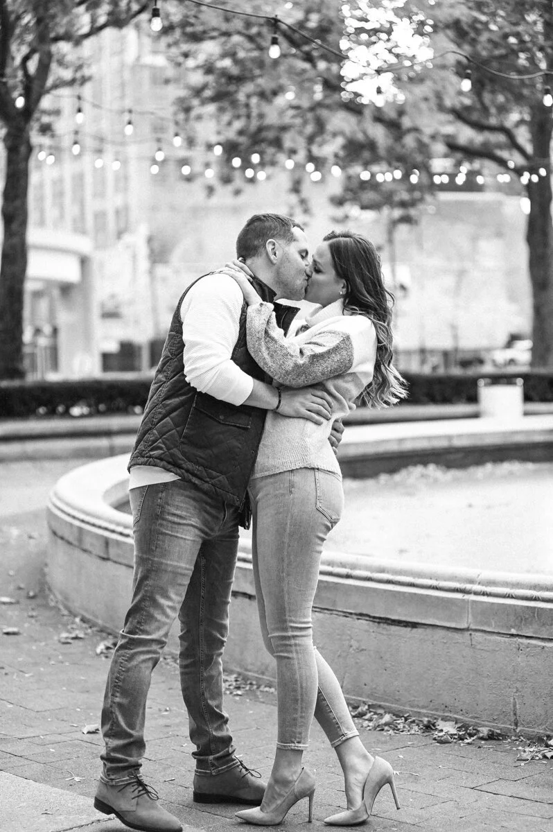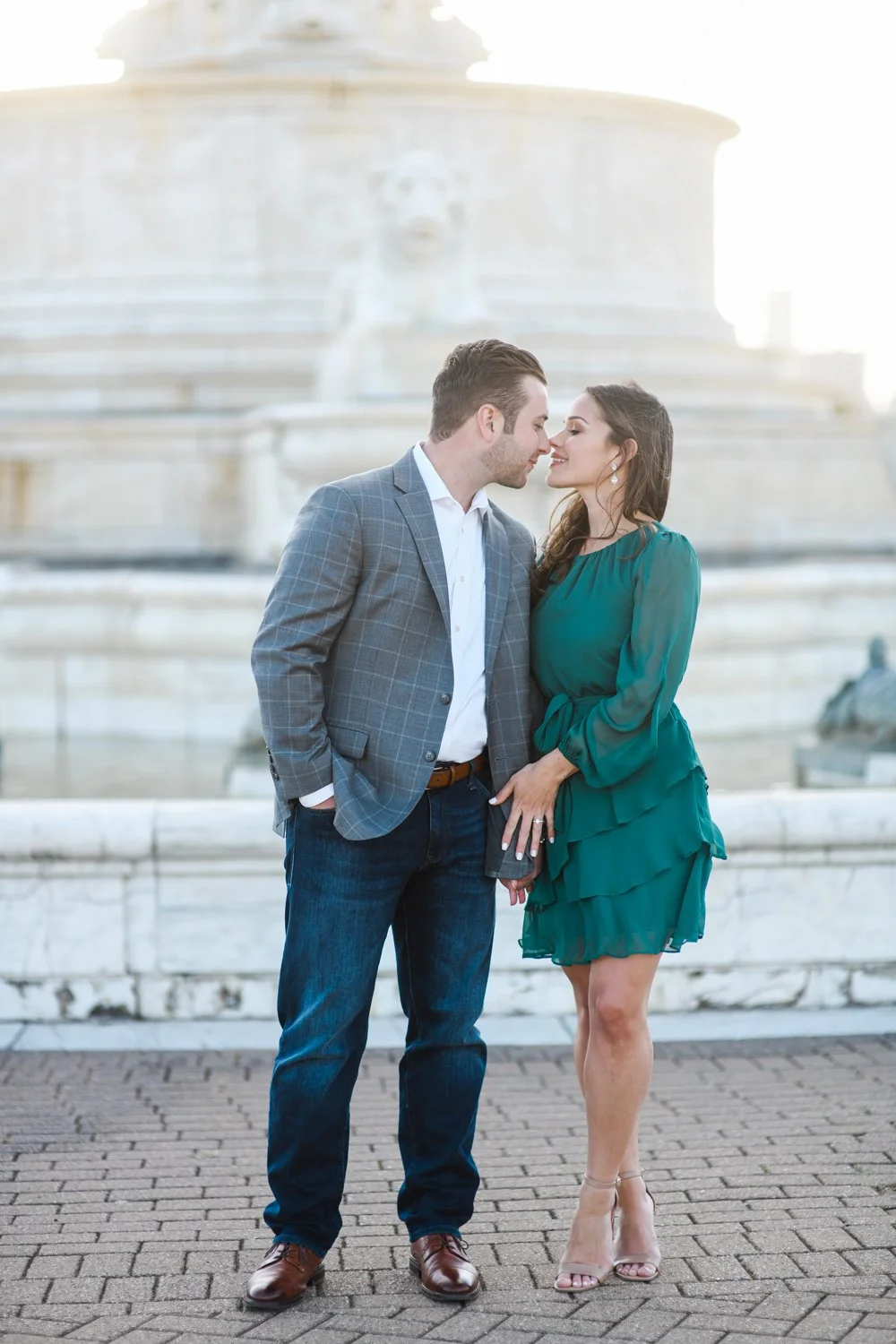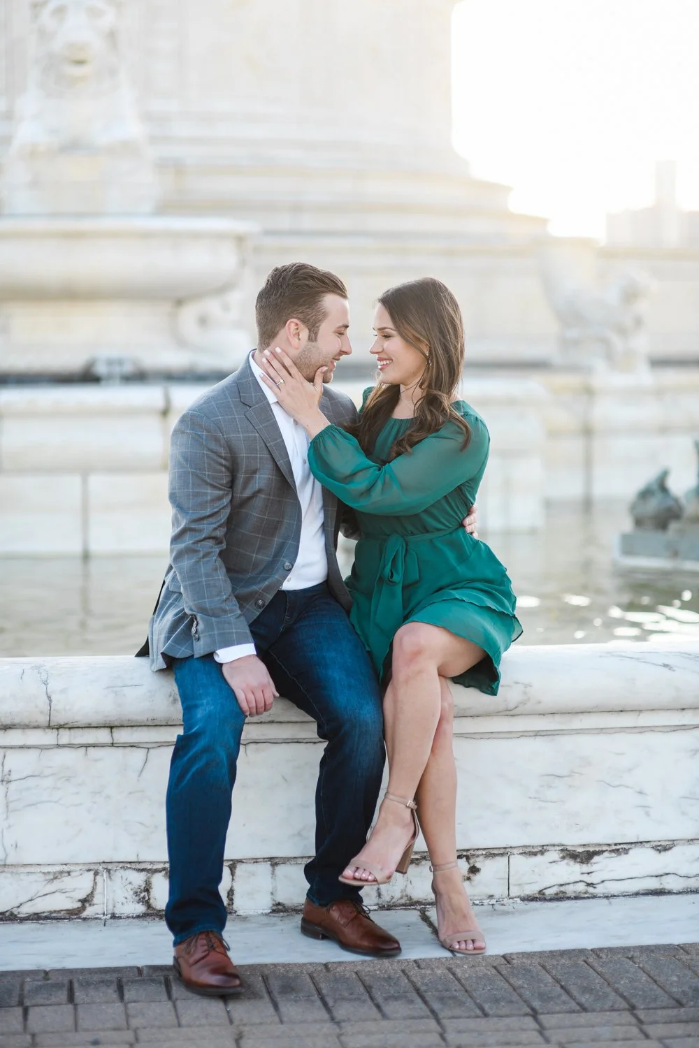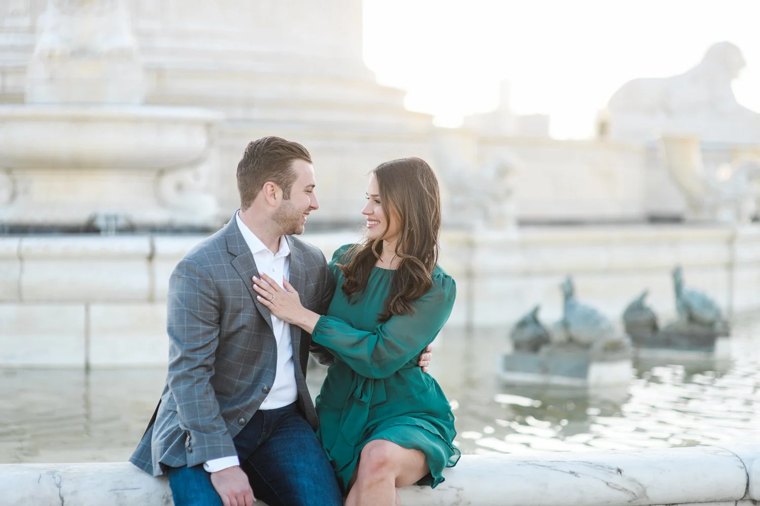 The fountain is gorgeous architecturally, and with string lights hanging over, make such pretty light. End here after walking through the city streets for photos. Casual or formal, but wear comfy shoes. No bathrooms.