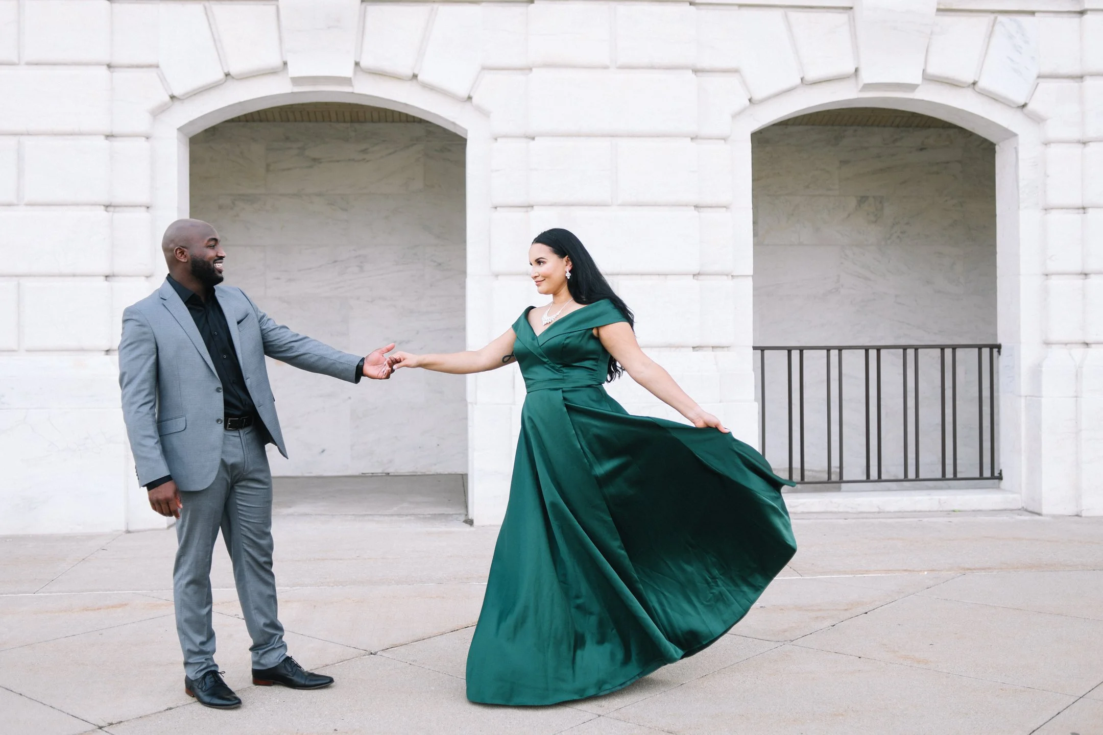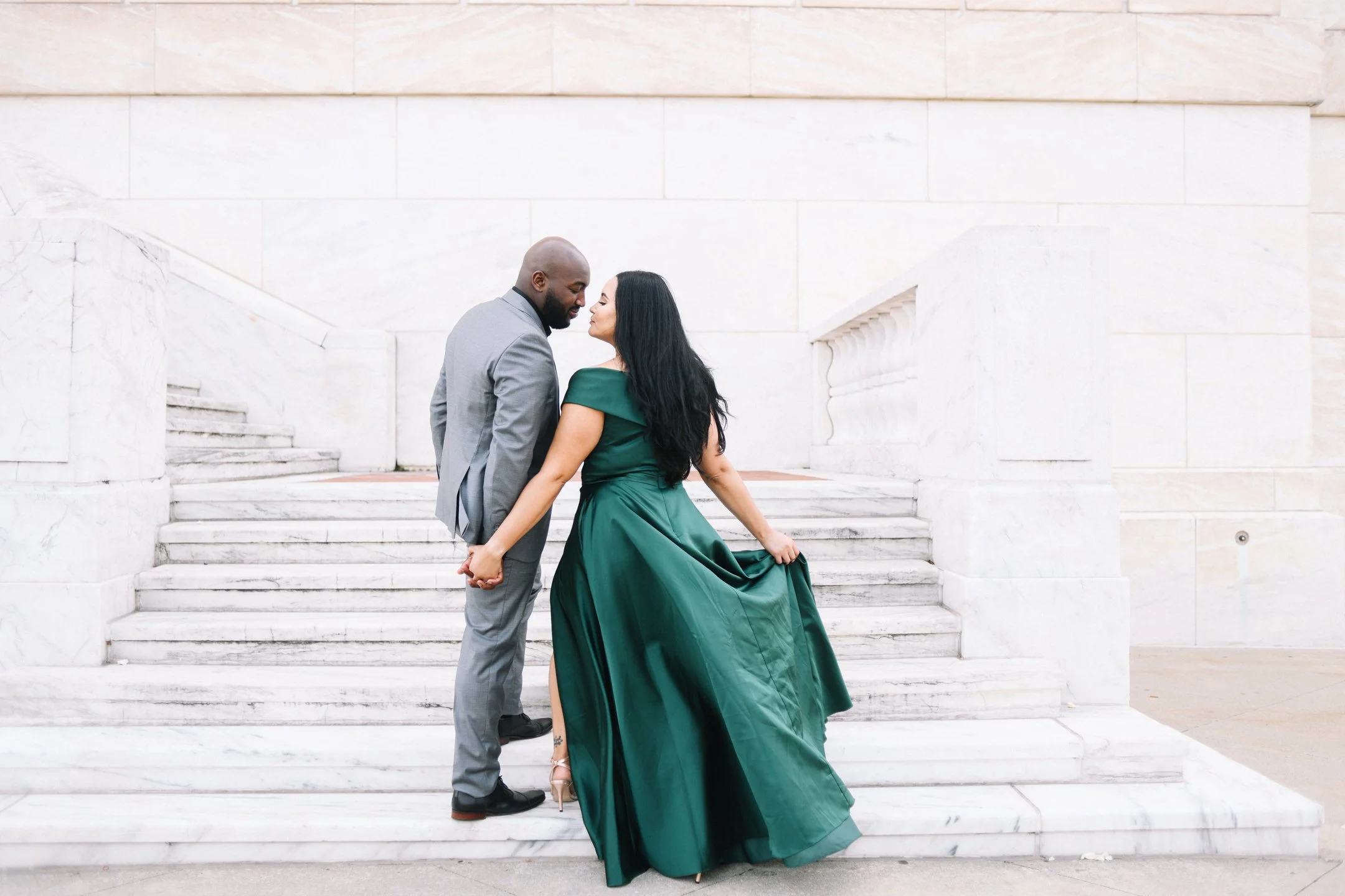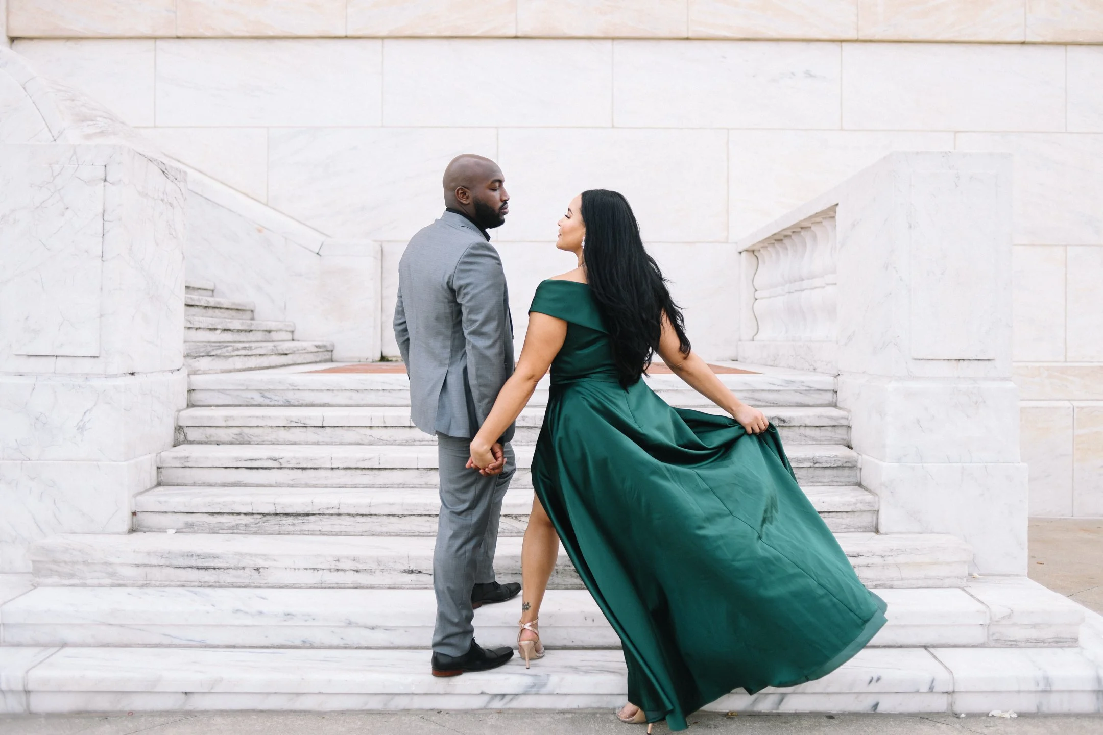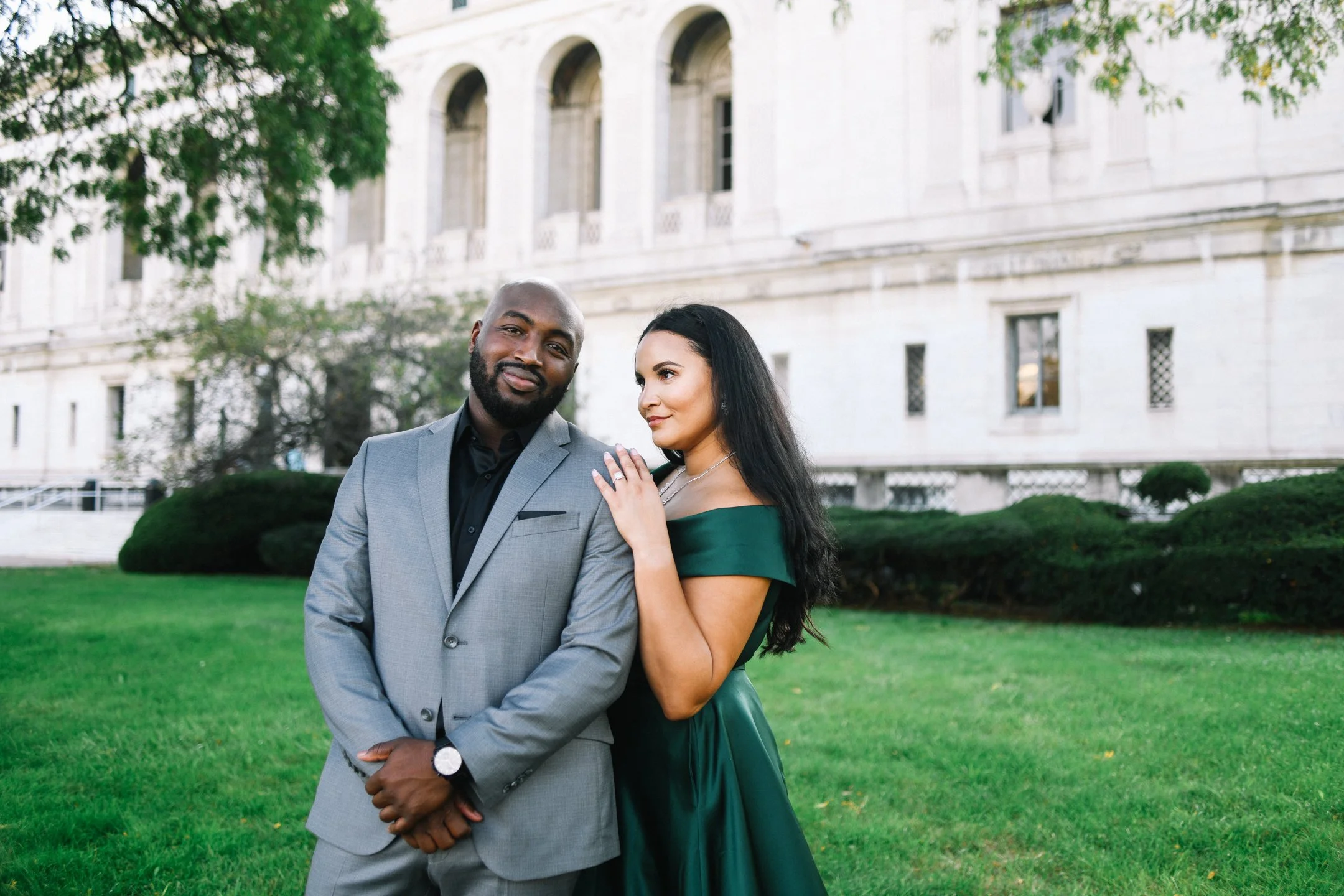The DIA is a super popular spot for photos! It’s probably the most requested session location I get for Detroit. It has the most beautiful architecture, so is a great spot for photos in any season. It’s across the street from the Detroit Public Library so both locations are easy accessible during one shoot. This is definitely an elegant look, so dresses and sport jackets look best. Parking is on the street, but Sundays it’s free and not too bad. Expect to wait in line as it’s a popular location not just for engagements, but for weddings, families and seniors. No bathrooms.