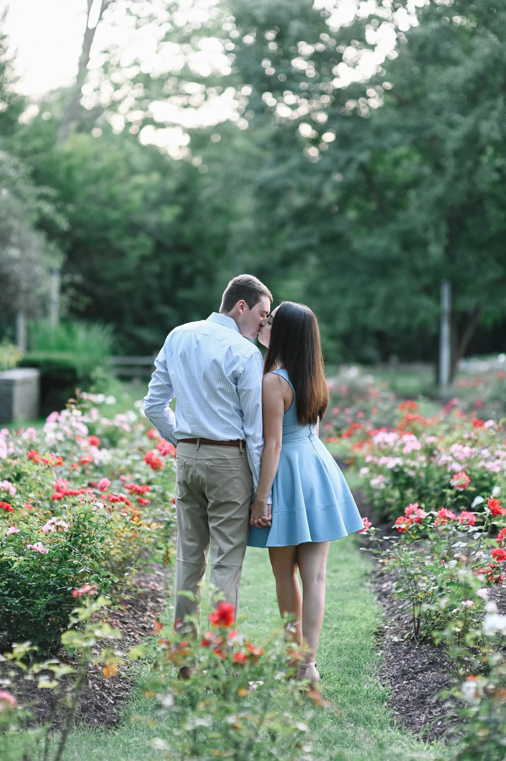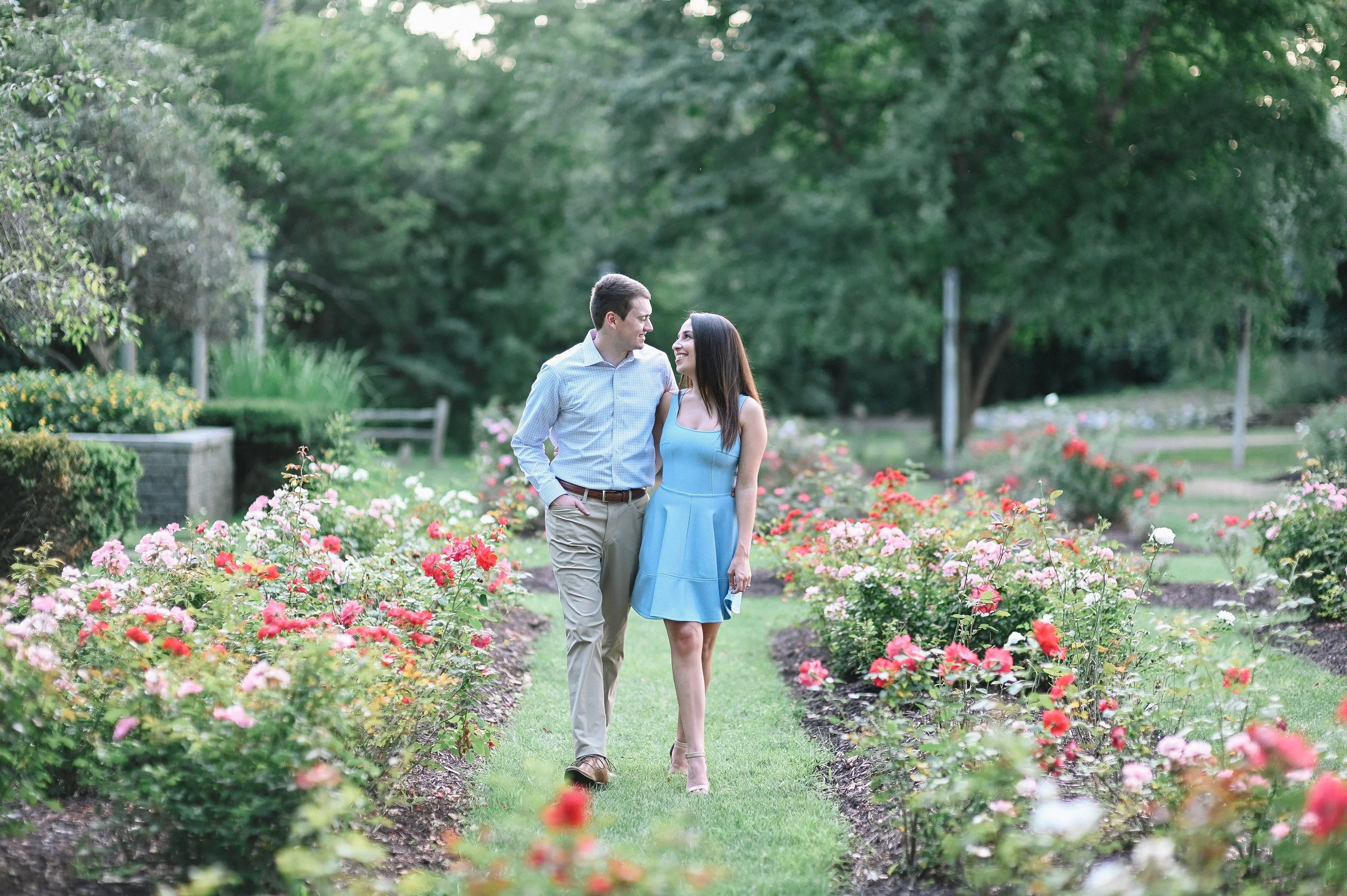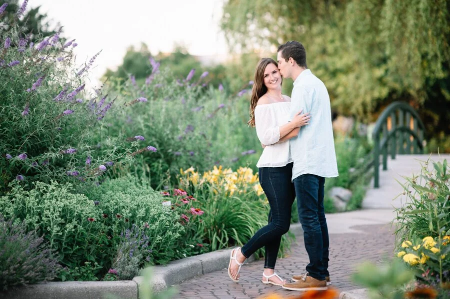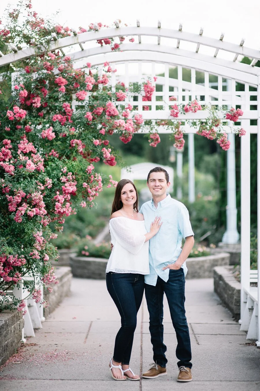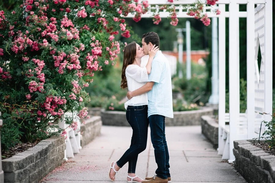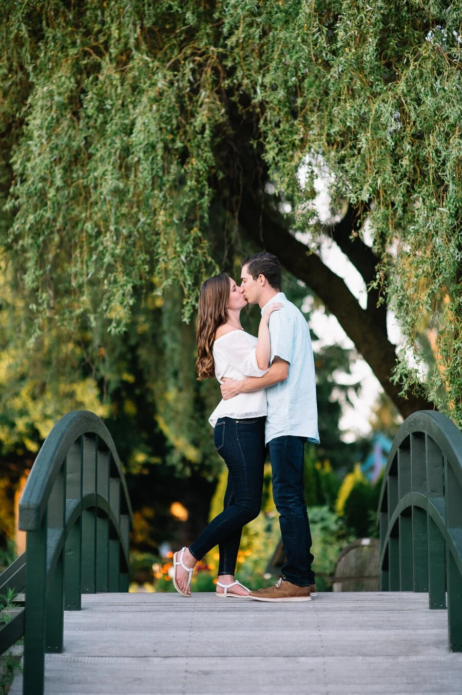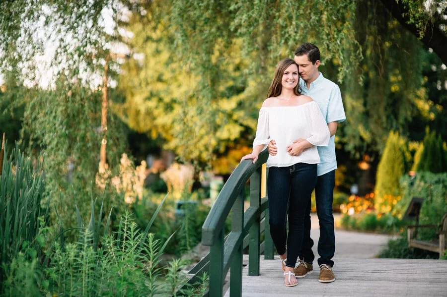 These gardens are so beautiful in summer! There isn’t any shade, so shooting at sunset is imperative, and the roses are in bloom in summer only. There is a cute little bridge and pond, a red brick path, hanging flower baskets, and beautiful roses everywhere. It’s a great summer spot for a session. Parking is super easy right on site but unfortunately no bathrooms.