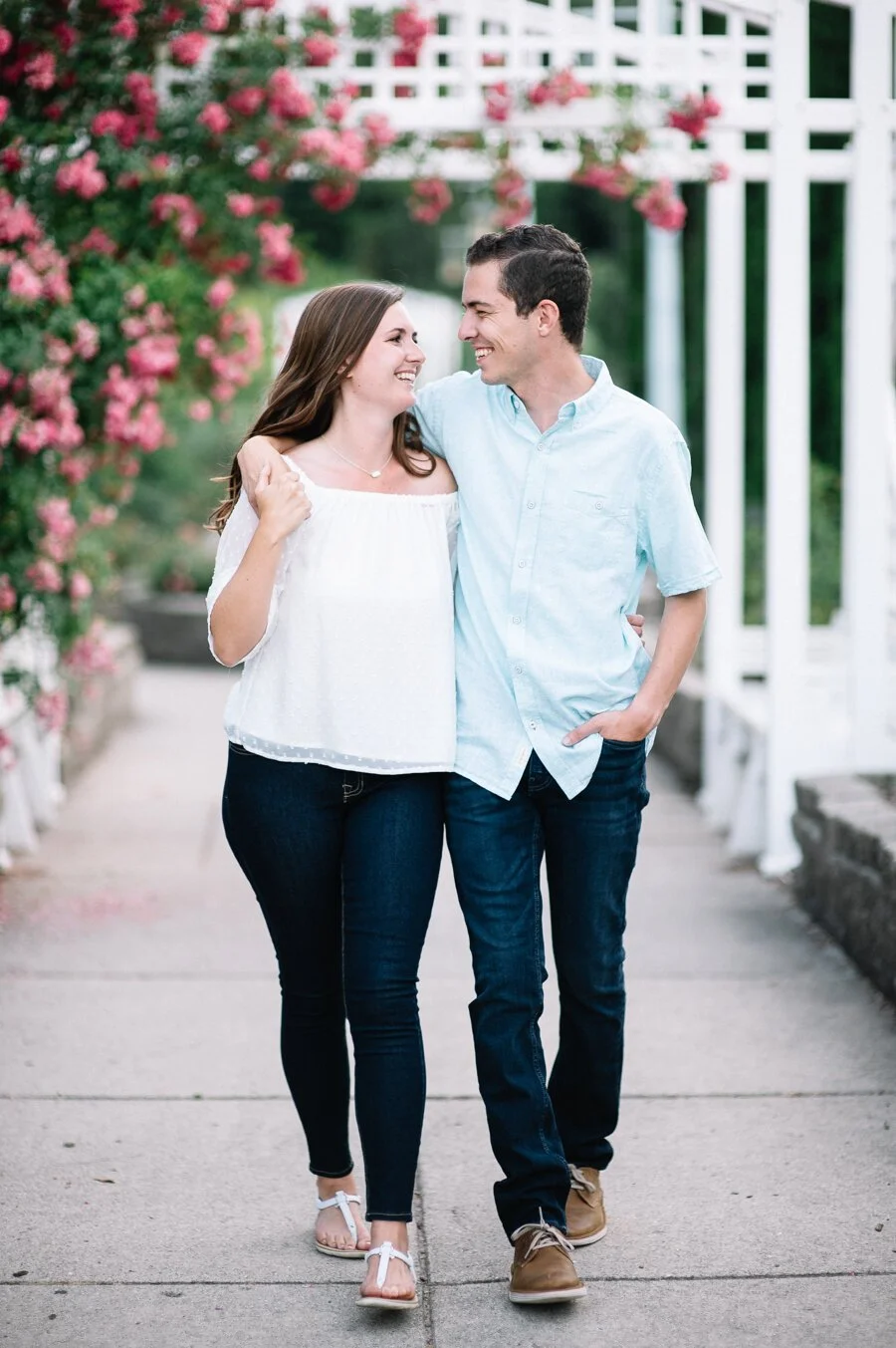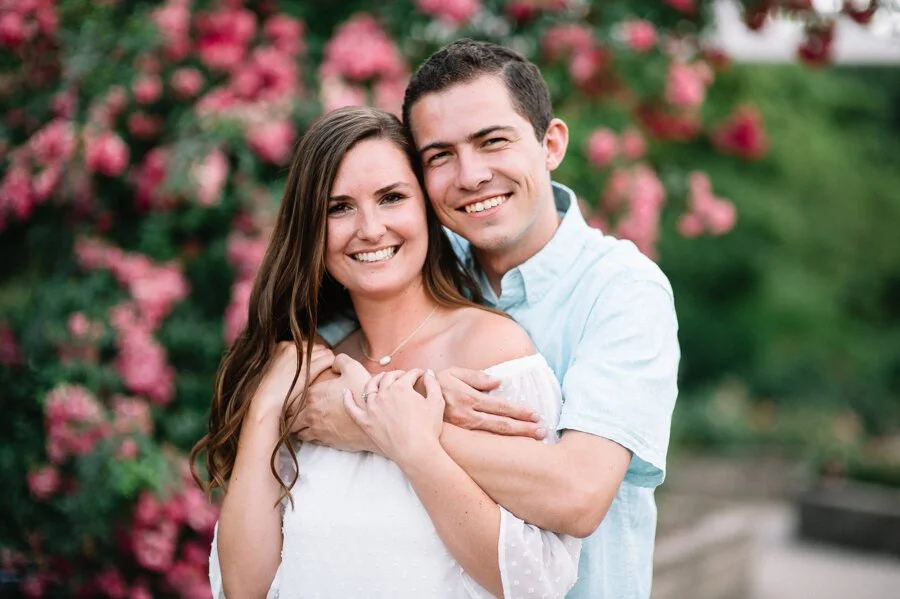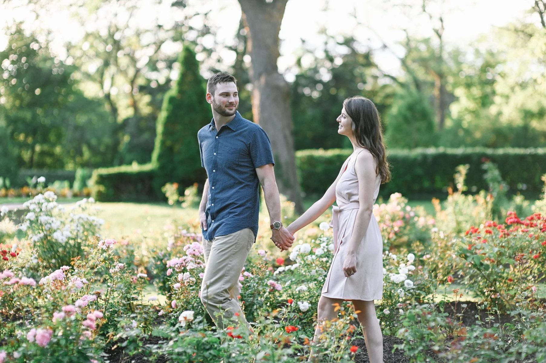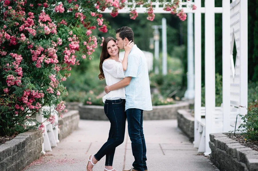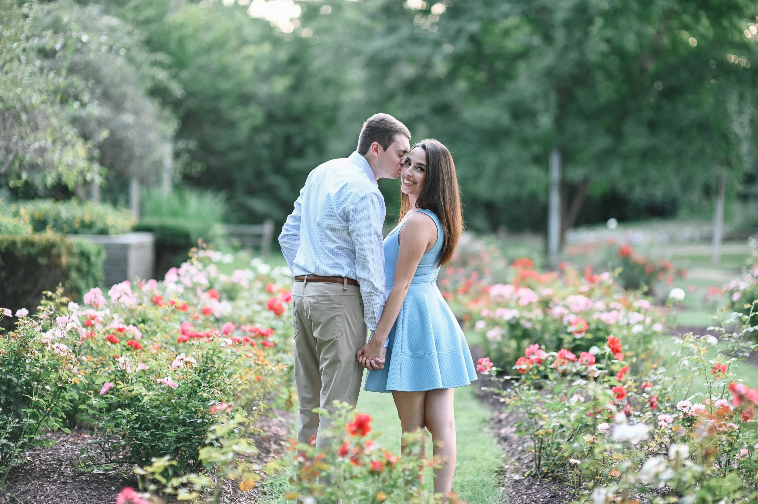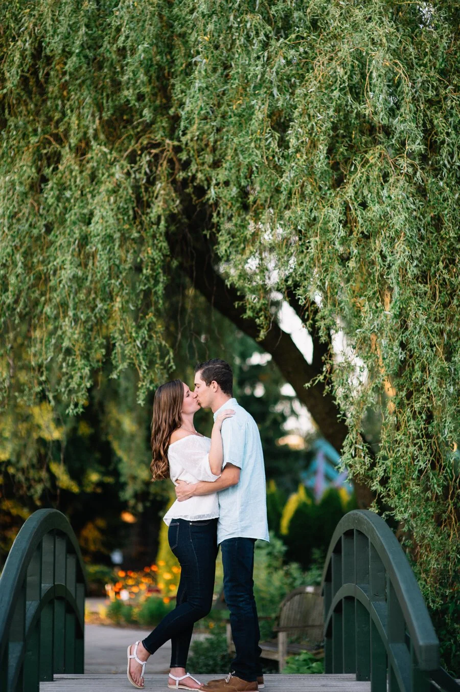 These gardens are so beautiful in summer! There isn’t any shade, so shooting at sunset is imperative, and the roses are in bloom in summer only. There is a cute little bridge and pond, a red brick path, hanging flower baskets, and beautiful roses everywhere. It’s a great summer spot for a session. Parking is super easy right on site but unfortunately no bathrooms.