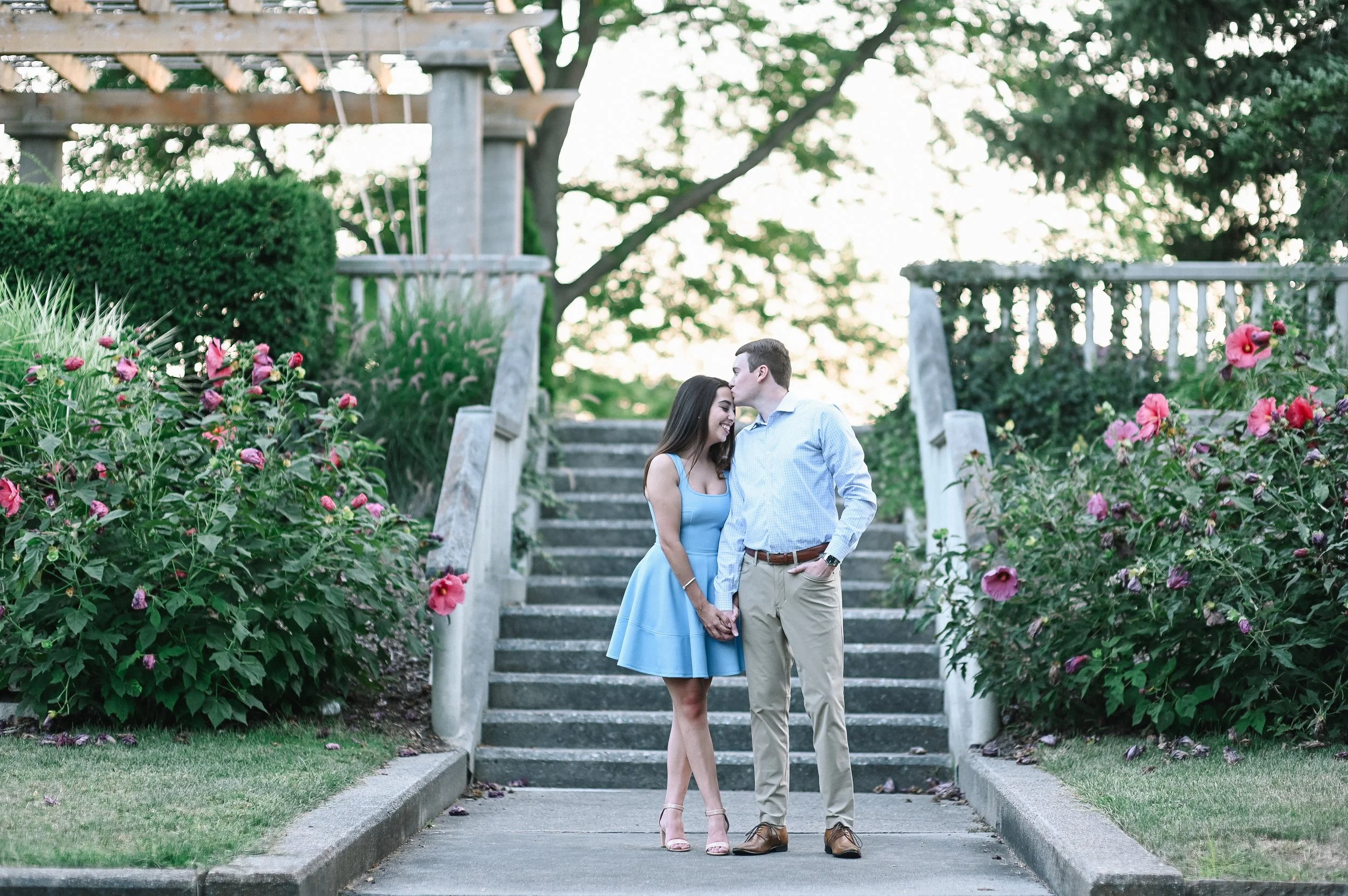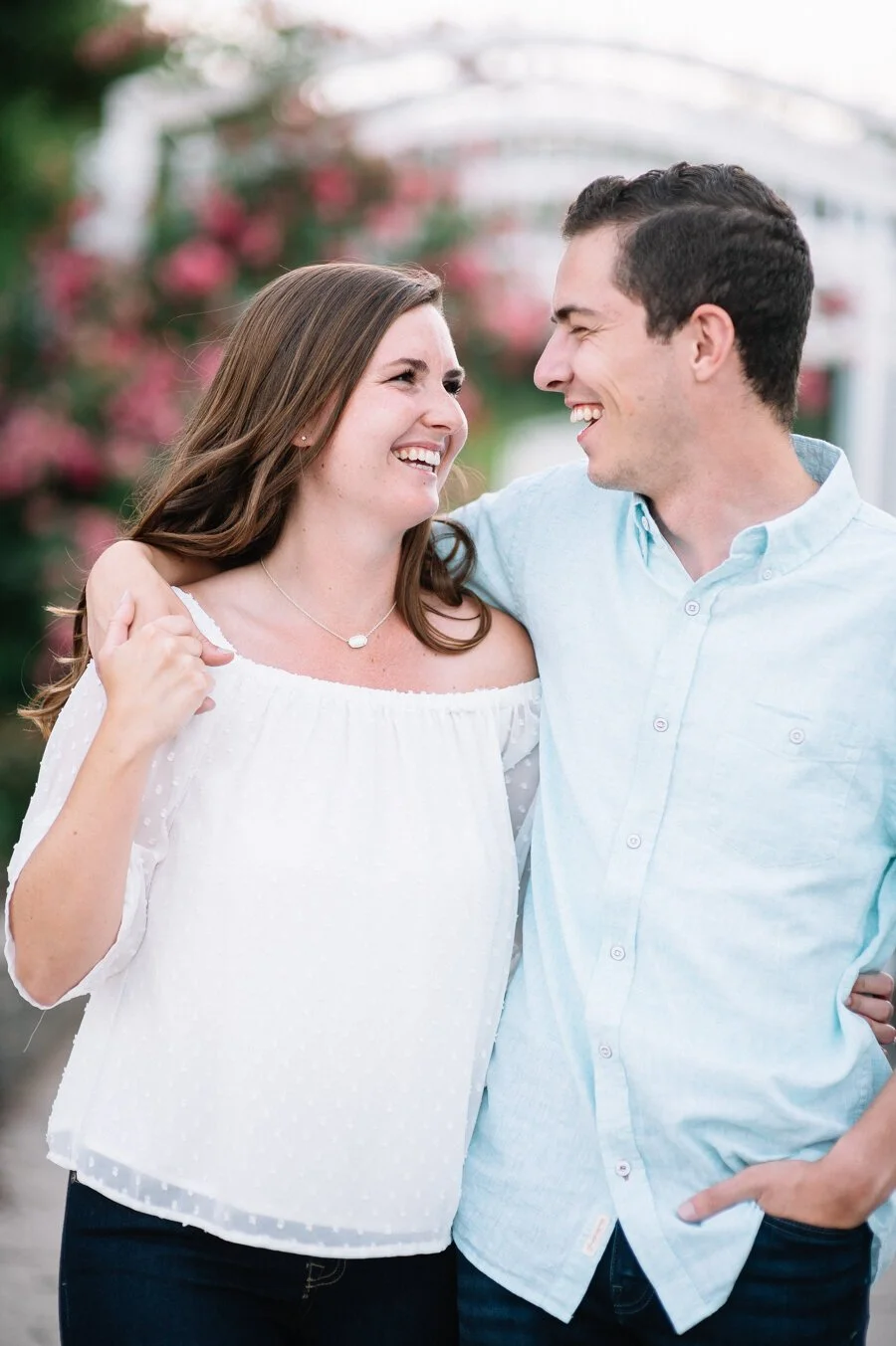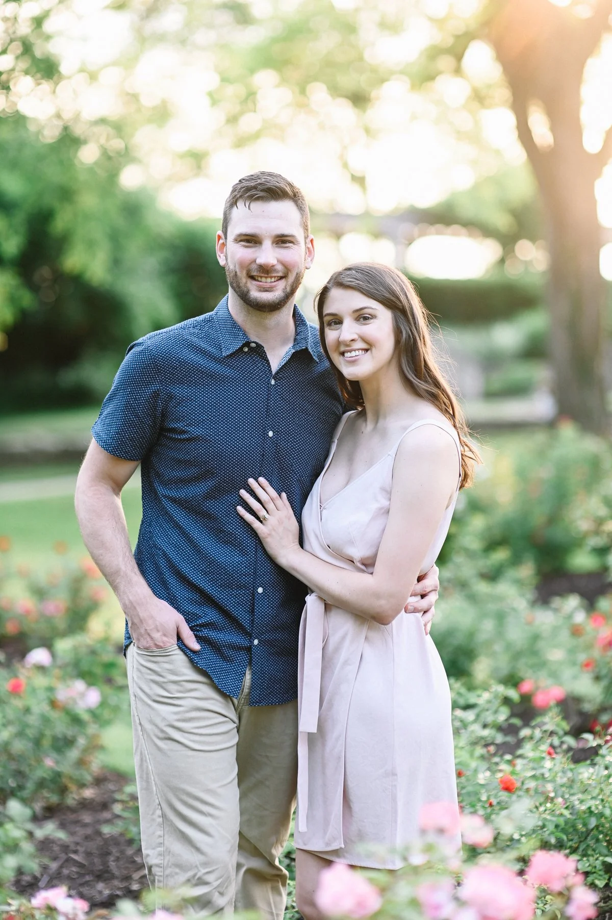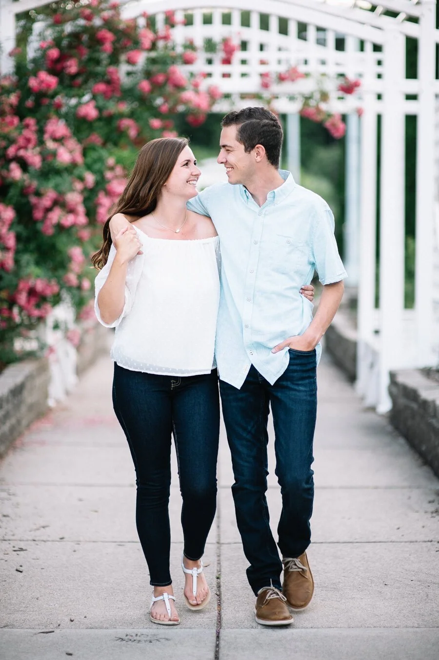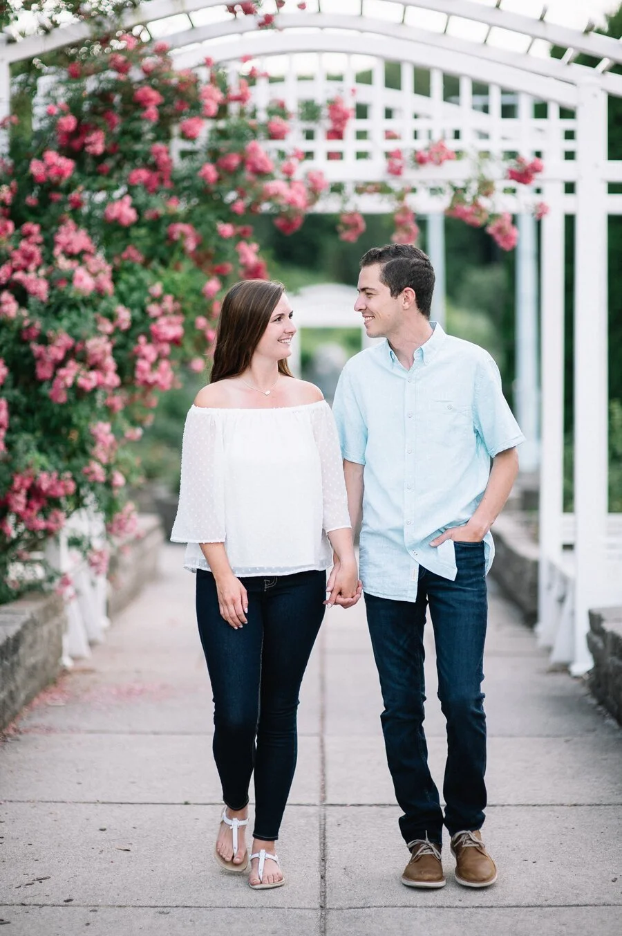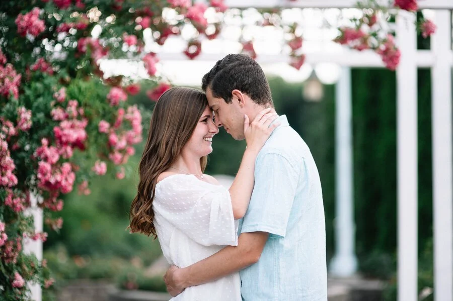 These gardens are so beautiful in summer! There isn’t any shade, so shooting at sunset is imperative, and the roses are in bloom in summer only. There is a cute little bridge and pond, a red brick path, hanging flower baskets, and beautiful roses everywhere. It’s a great summer spot for a session. Parking is super easy right on site but unfortunately no bathrooms.