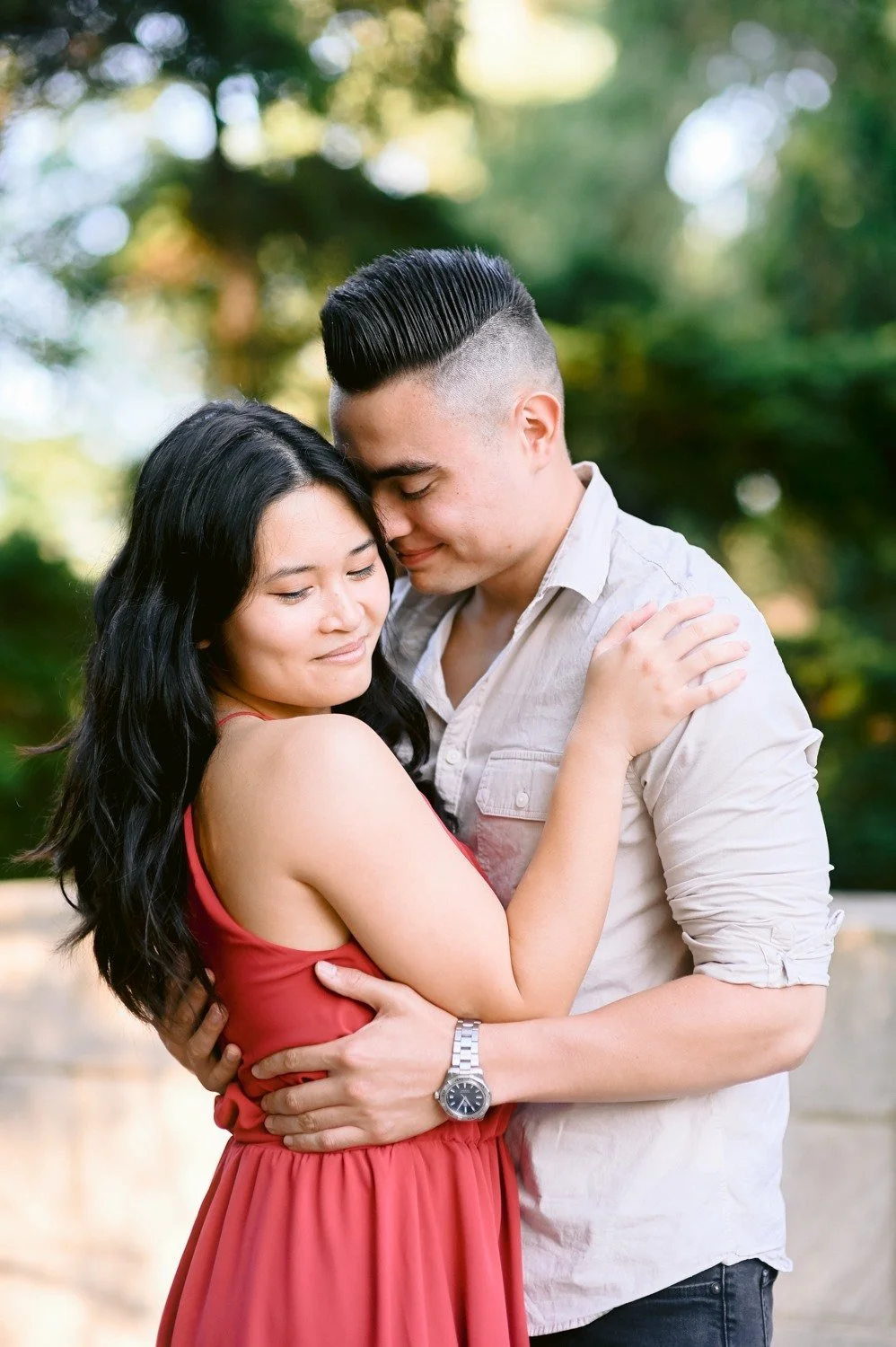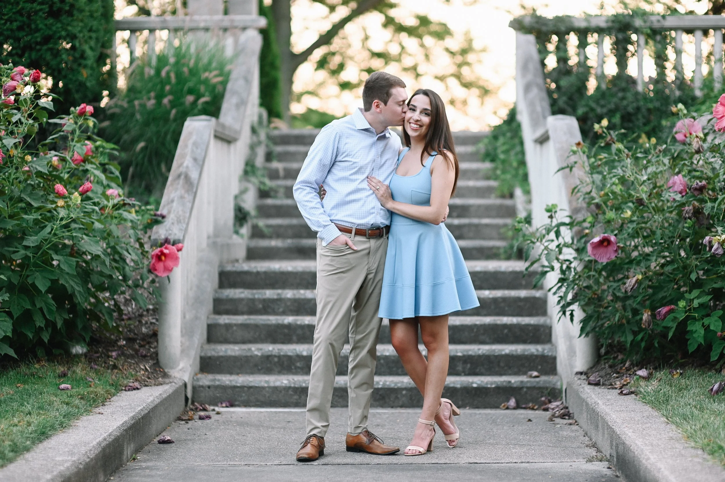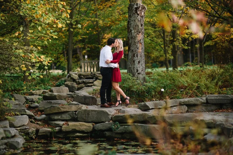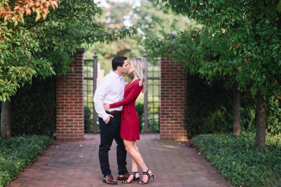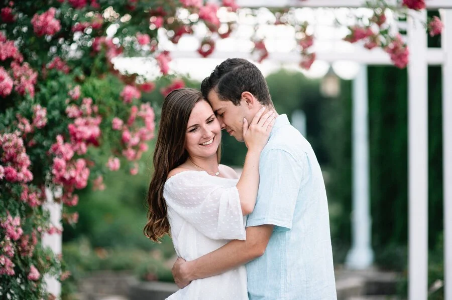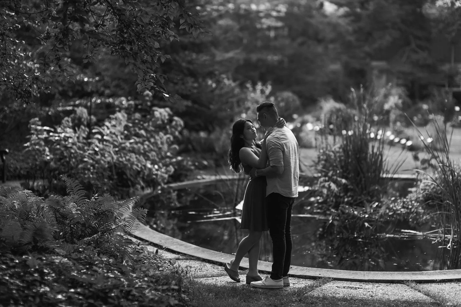 These gardens are so beautiful in summer! There isn’t any shade, so shooting at sunset is imperative, and the roses are in bloom in summer only. There is a cute little bridge and pond, a red brick path, hanging flower baskets, and beautiful roses everywhere. It’s a great summer spot for a session. Parking is super easy right on site but unfortunately no bathrooms.