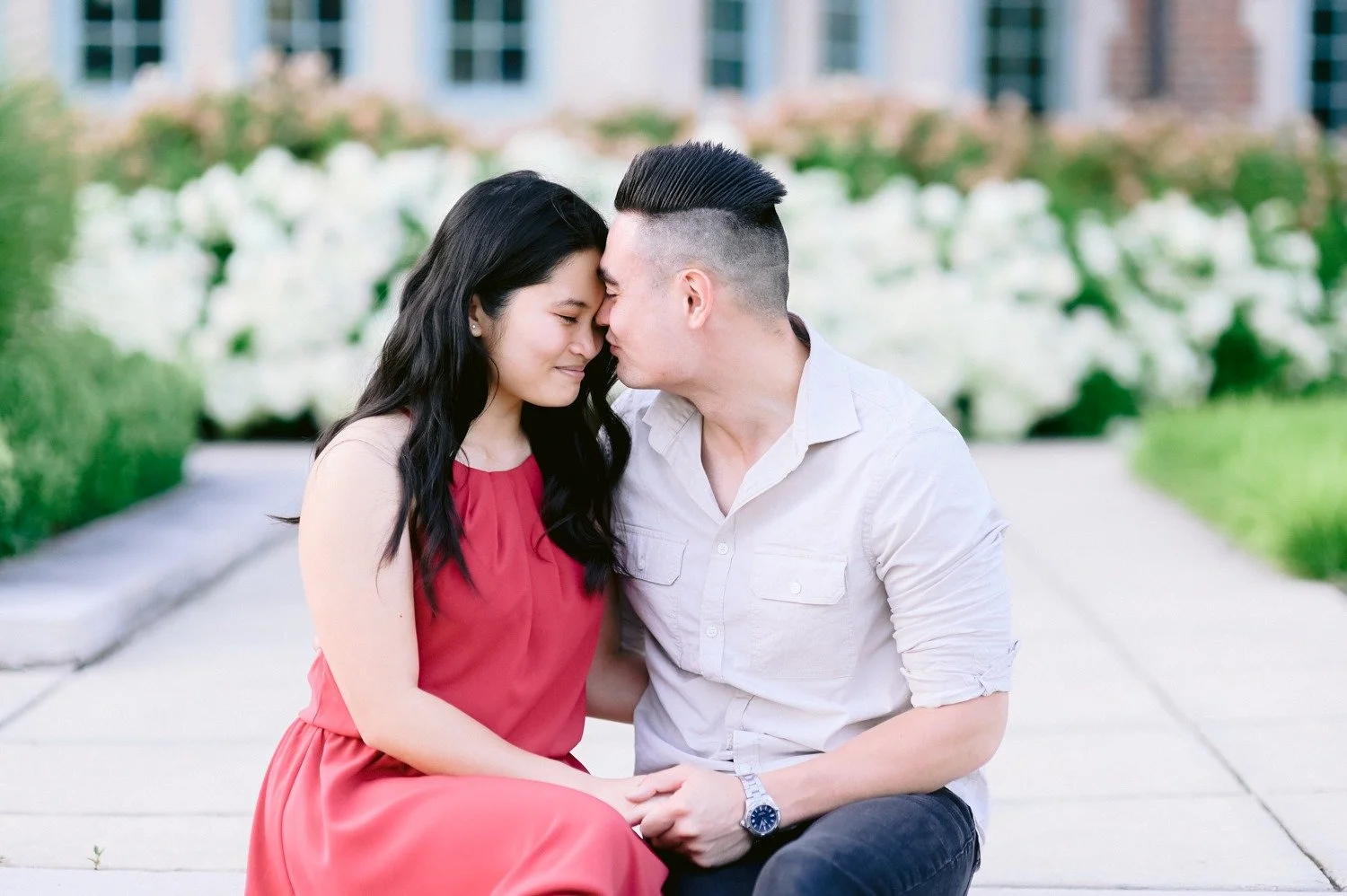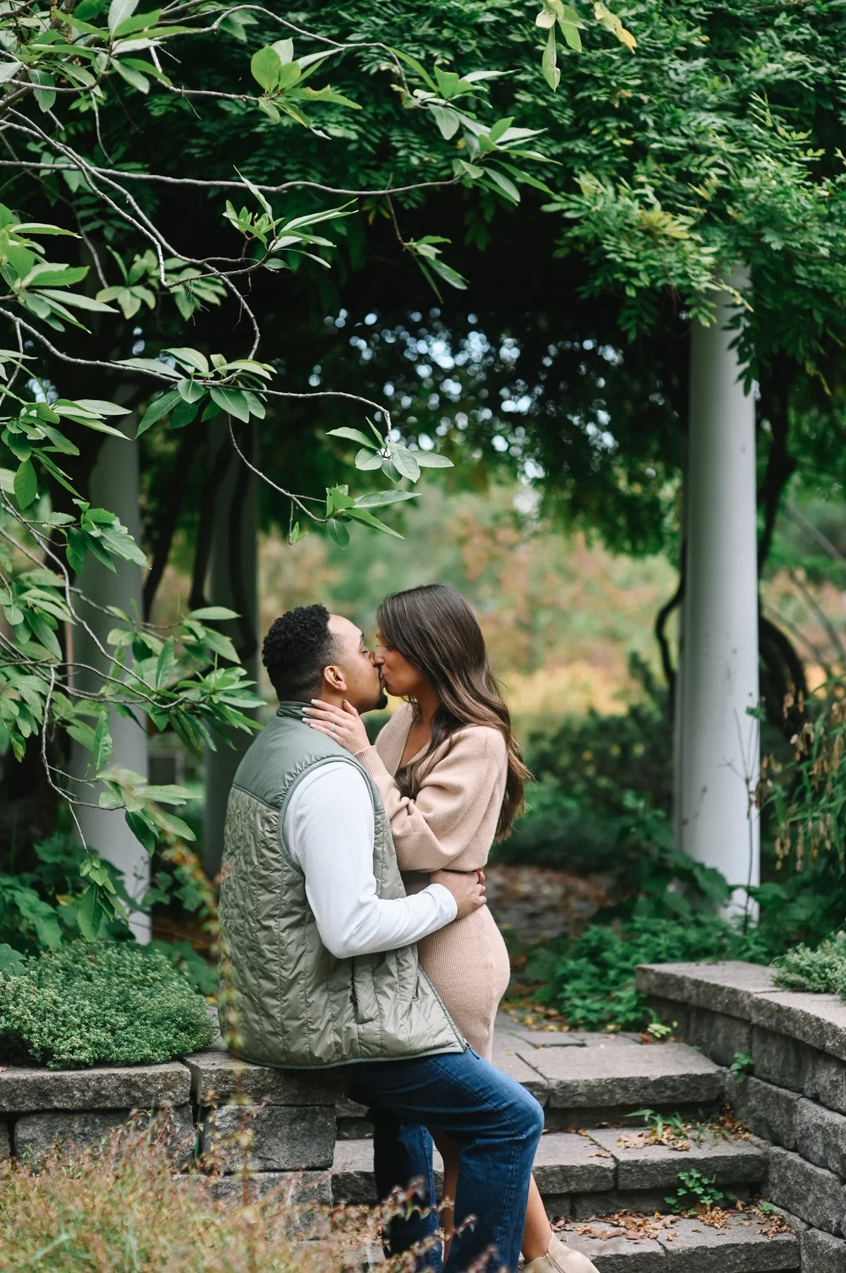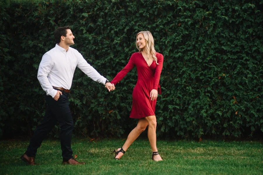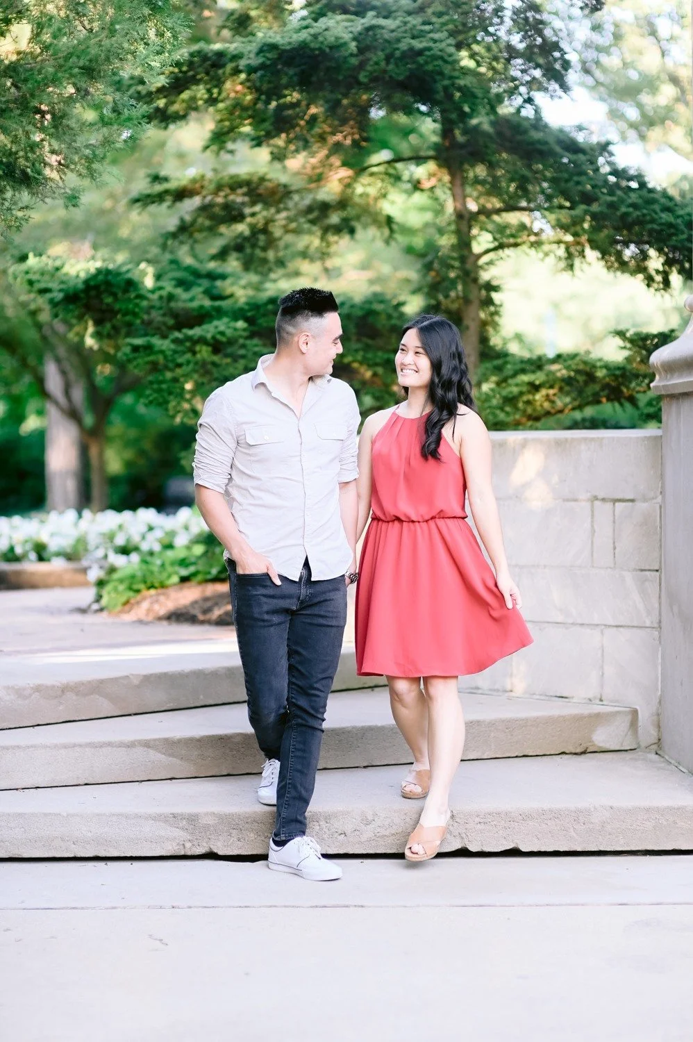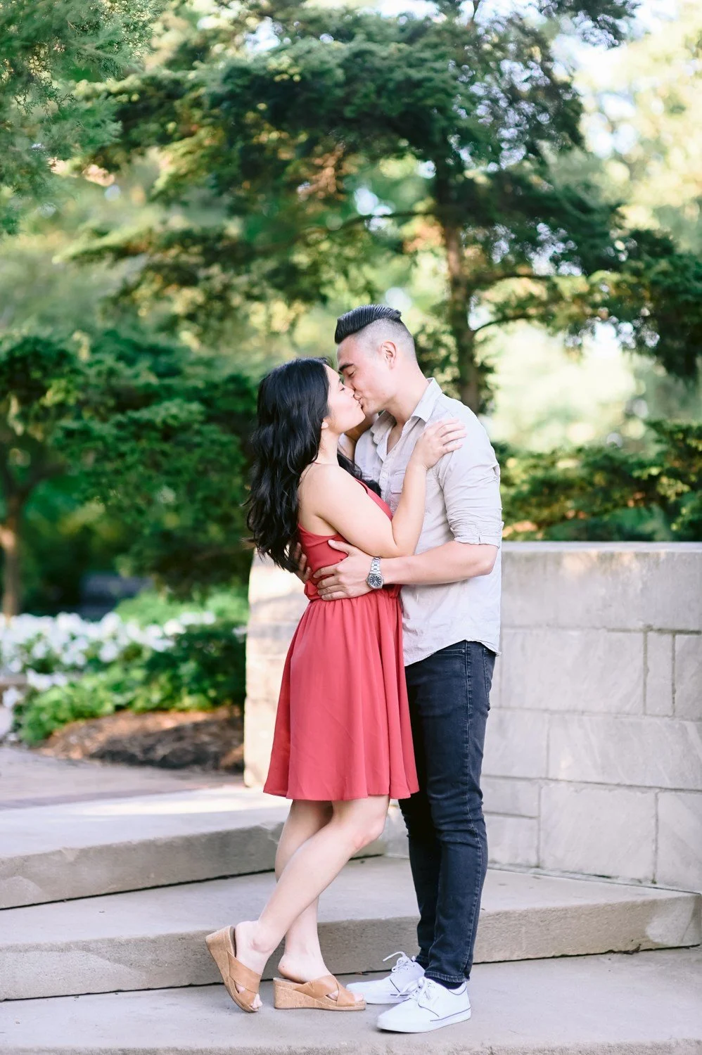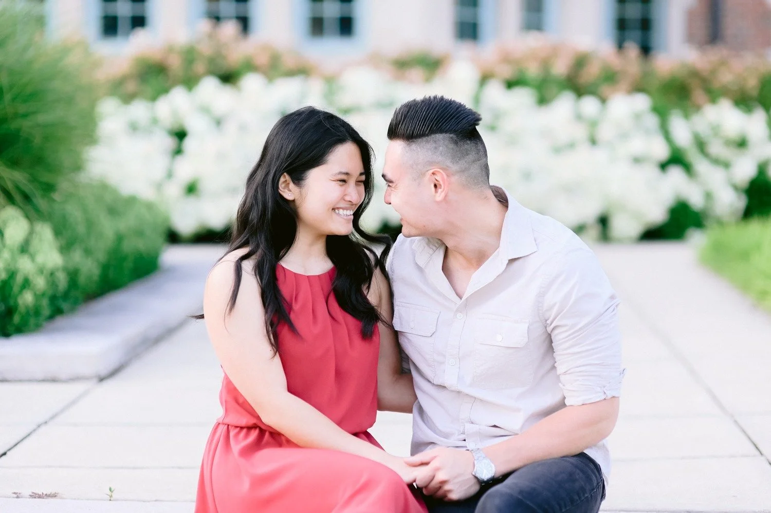 These gardens are so beautiful in summer! There isn’t any shade, so shooting at sunset is imperative, and the roses are in bloom in summer only. There is a cute little bridge and pond, a red brick path, hanging flower baskets, and beautiful roses everywhere. It’s a great summer spot for a session. Parking is super easy right on site but unfortunately no bathrooms.