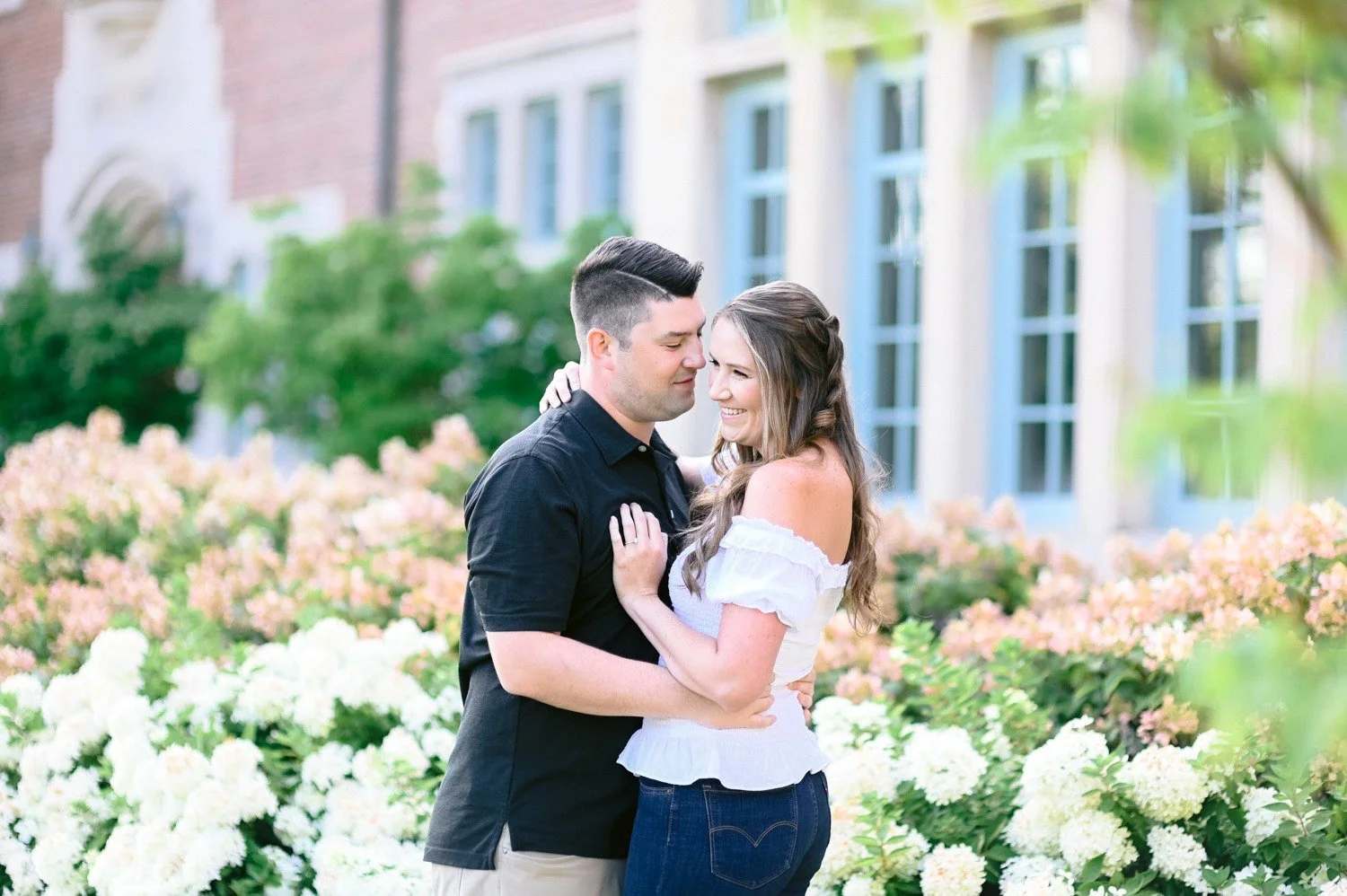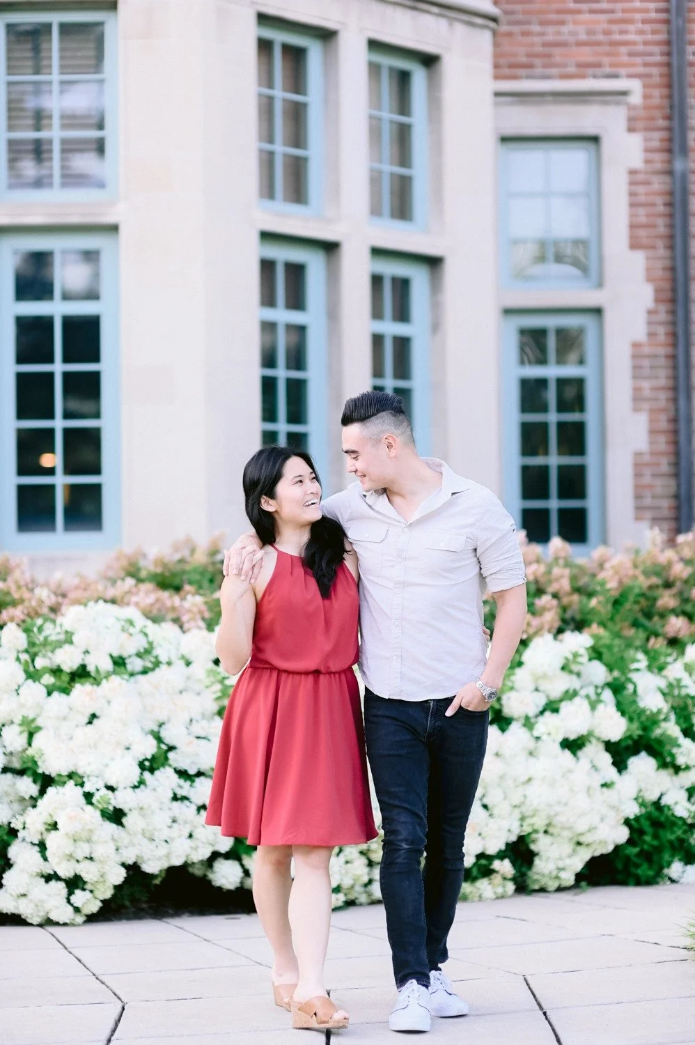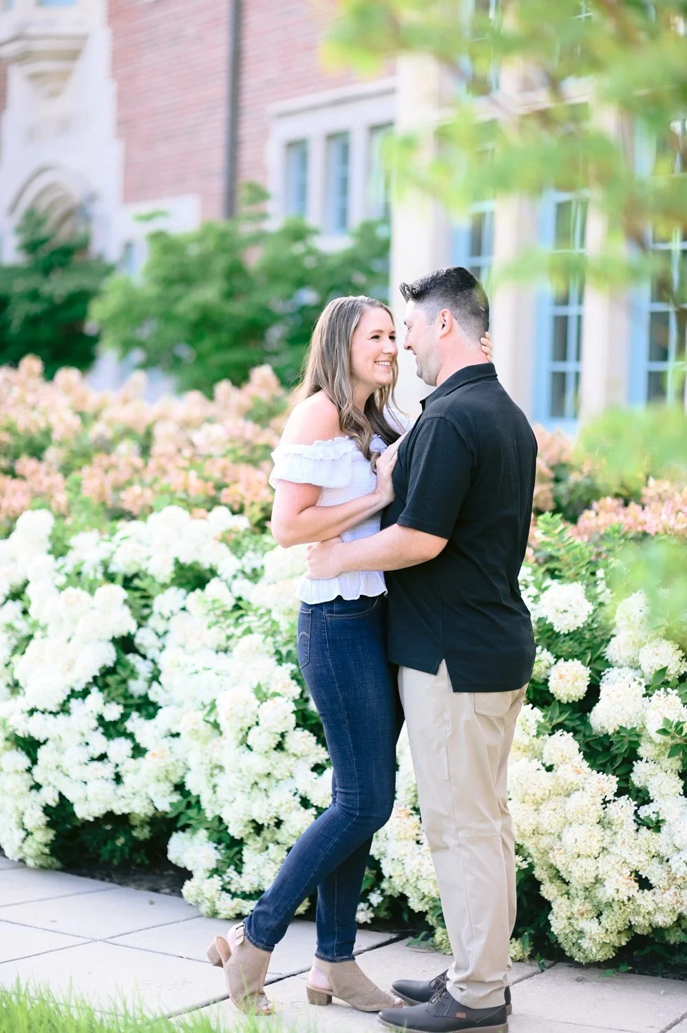 Located on the south of MSU’s campus are possibly my favorite gardens in all of Michigan. In spring, summer and fall, the gardens bloom with dahlias, hydrangeas, roses and more. There is an English garden, a pergola, a few ponds, and a mini apple orchard and vineyard. You can get so many different looks in just this one garden! Bonus is there is a tiny parking lot right on site, so you don’t have to walk far to the location. Only down side is there are no bathrooms anywhere nearby so if you are doing an outfit change, it has to be in your car. This garden rivals other gardens in the Detroit area that charge hundreds of dollars in fees. There are no logos or Sparty statues around, so it even works for non-Spartan alum 🙂 . There is no shade at this garden, so it only works for golden hour sessions or on cloudy days.