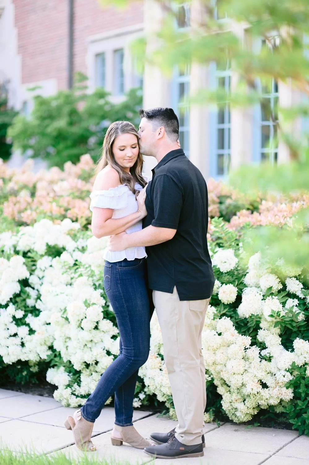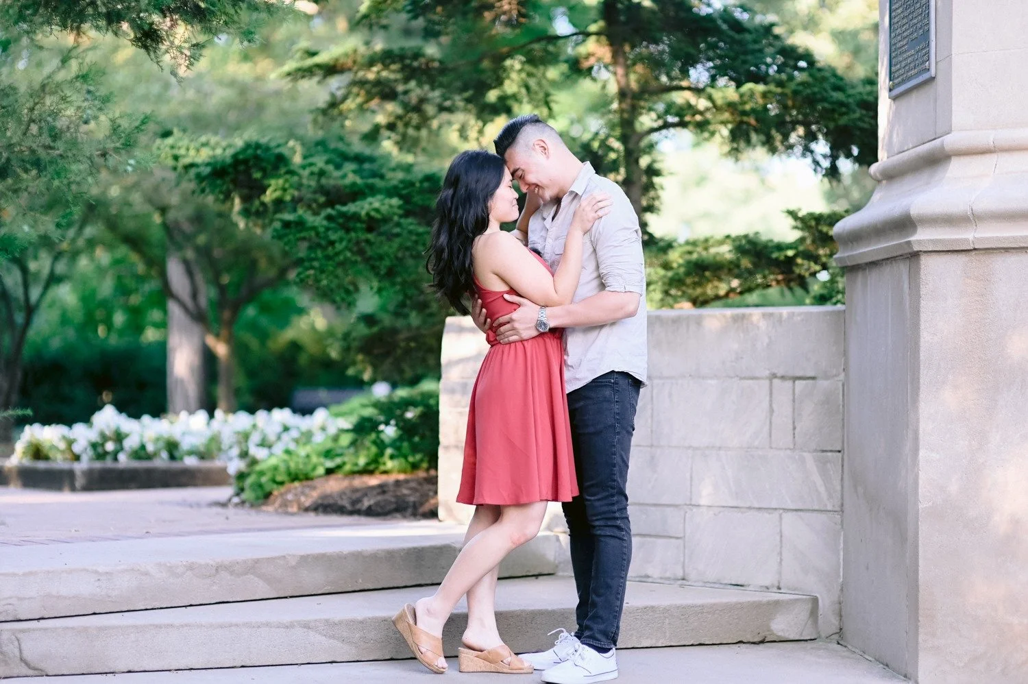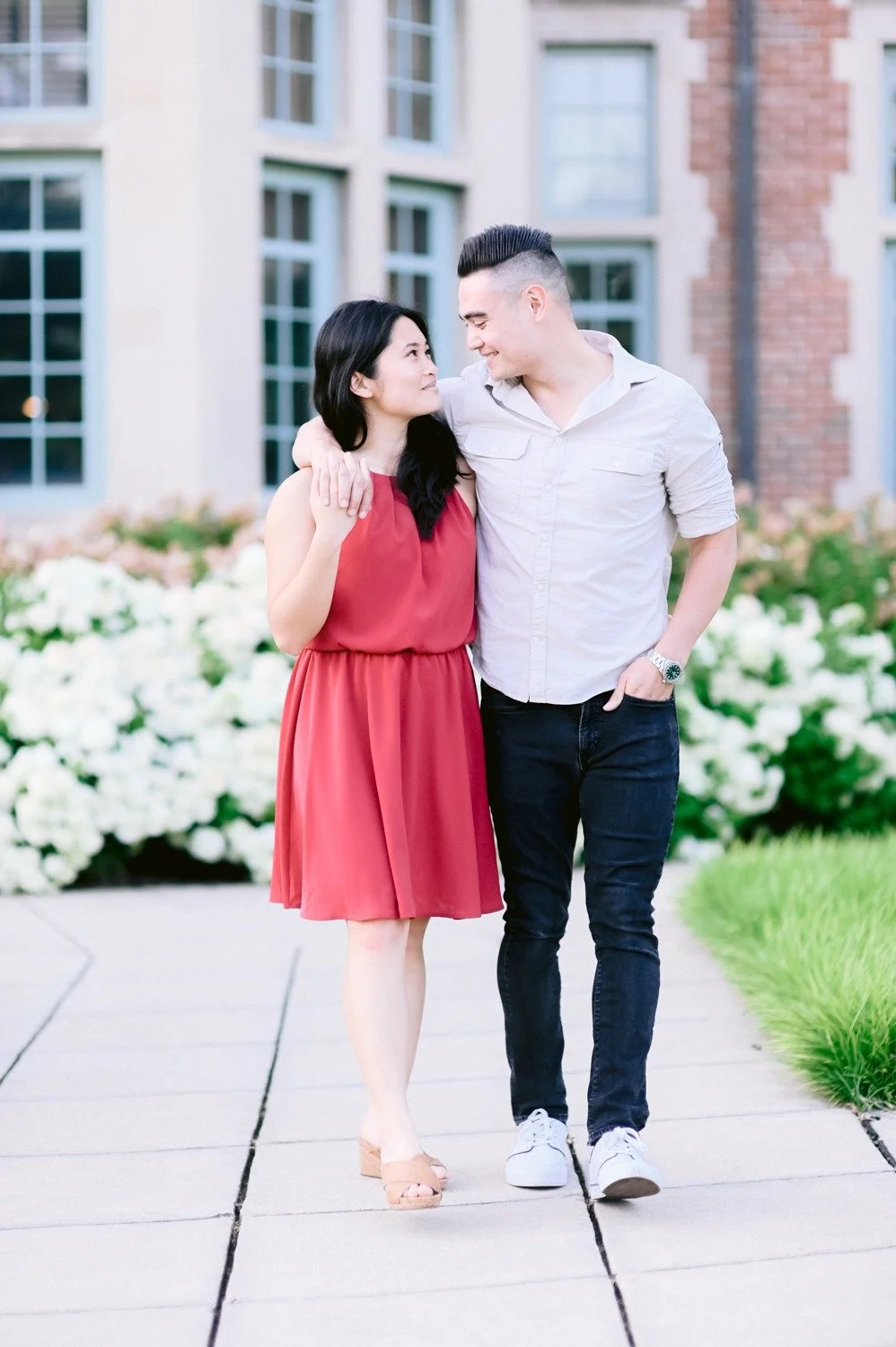 Located on the south of MSU’s campus are possibly my favorite gardens in all of Michigan. In spring, summer and fall, the gardens bloom with dahlias, hydrangeas, roses and more. There is an English garden, a pergola, a few ponds, and a mini apple orchard and vineyard. You can get so many different looks in just this one garden! Bonus is there is a tiny parking lot right on site, so you don’t have to walk far to the location. Only down side is there are no bathrooms anywhere nearby so if you are doing an outfit change, it has to be in your car. This garden rivals other gardens in the Detroit area that charge hundreds of dollars in fees. There are no logos or Sparty statues around, so it even works for non-Spartan alum 🙂 . There is no shade at this garden, so it only works for golden hour sessions or on cloudy days.