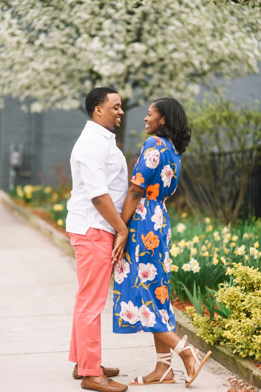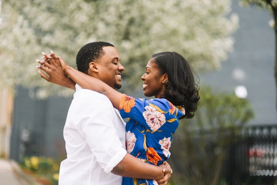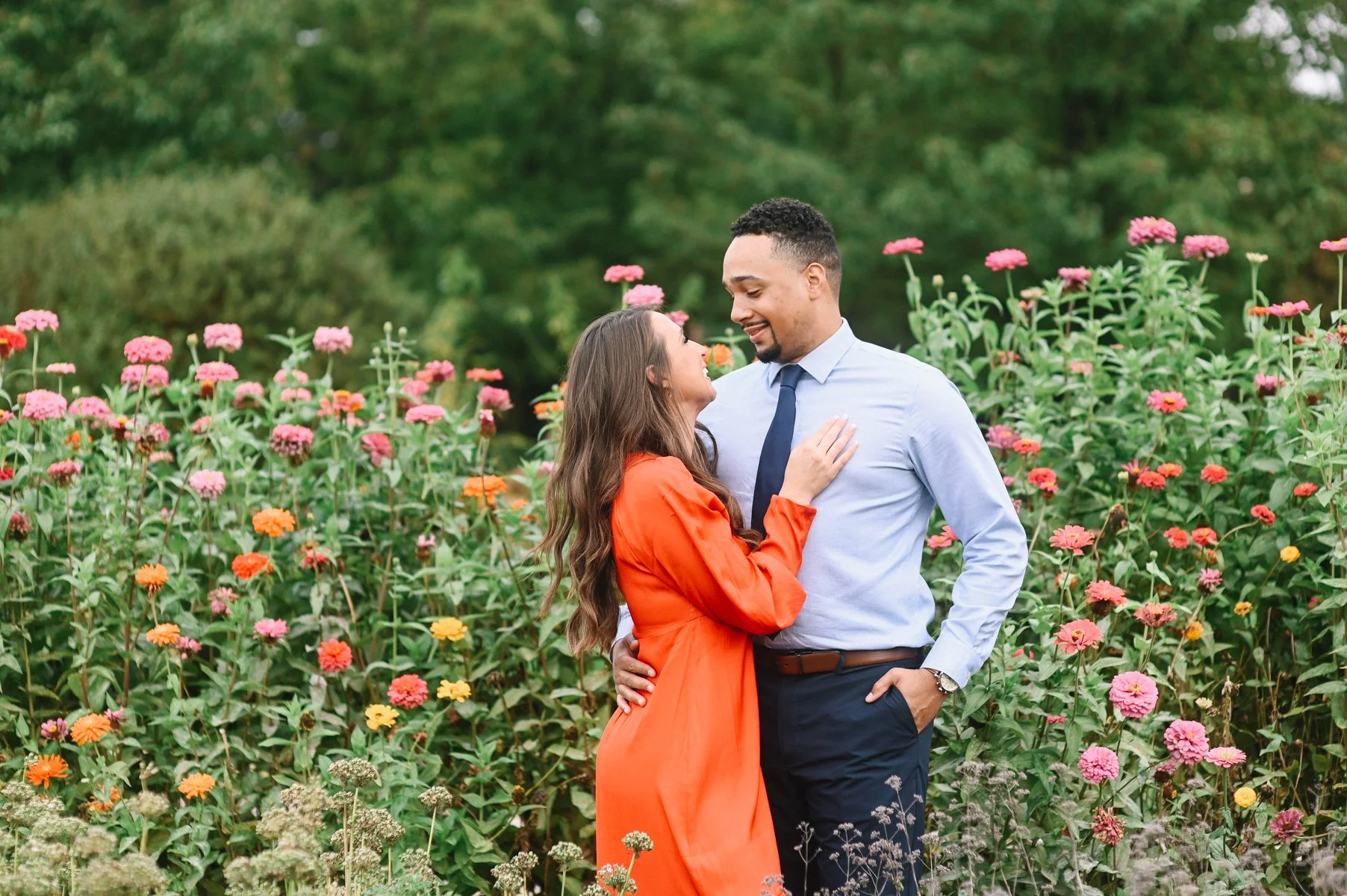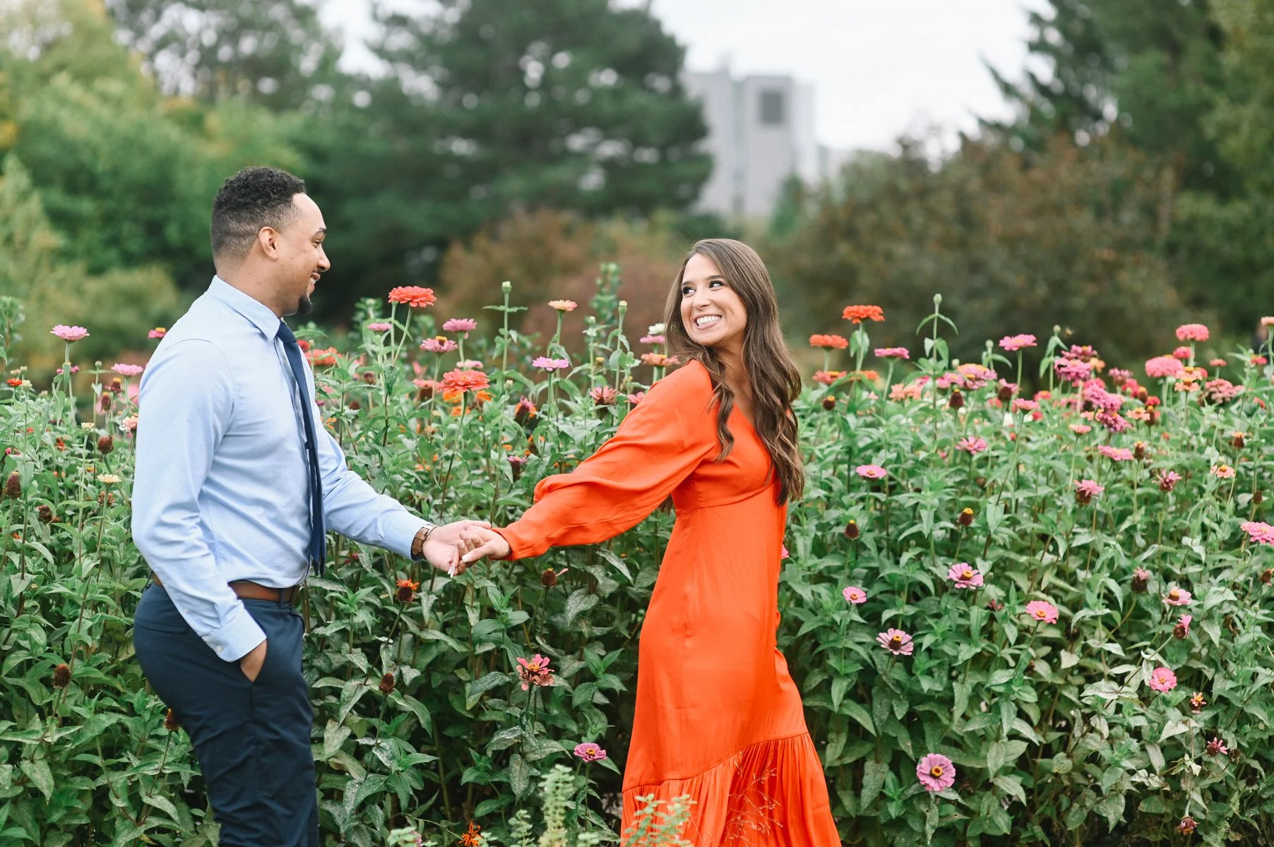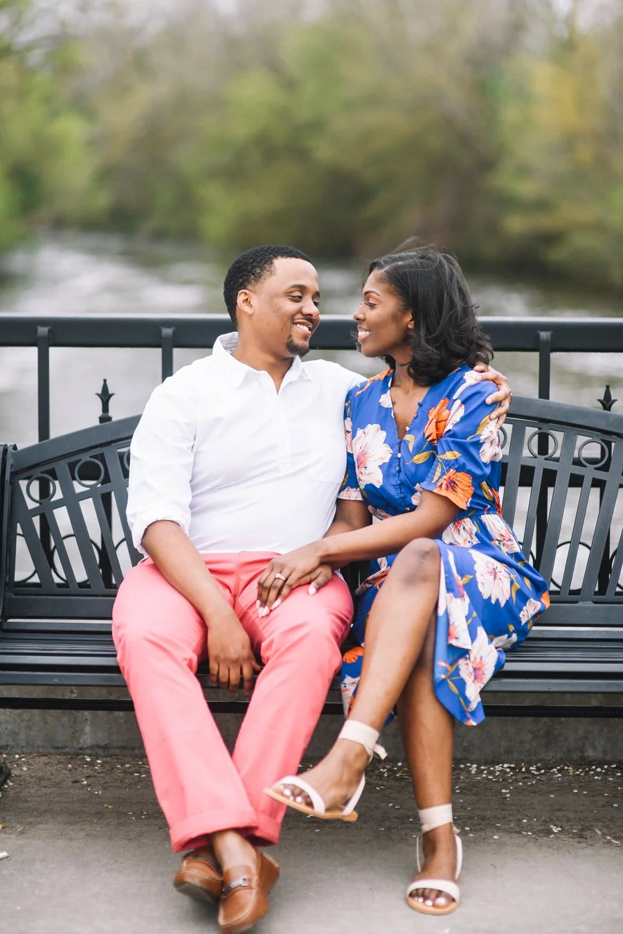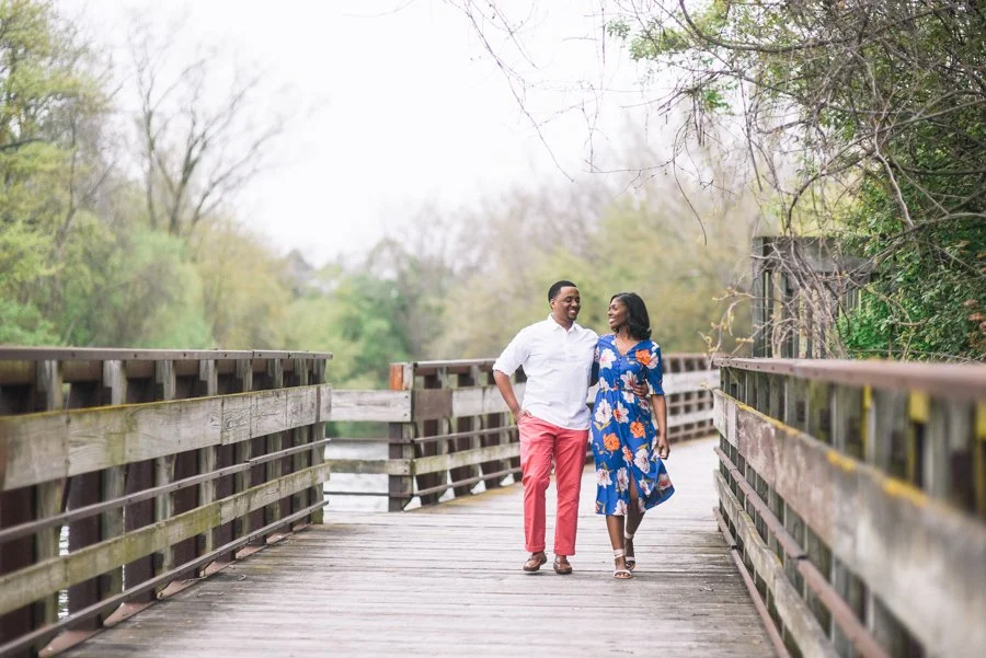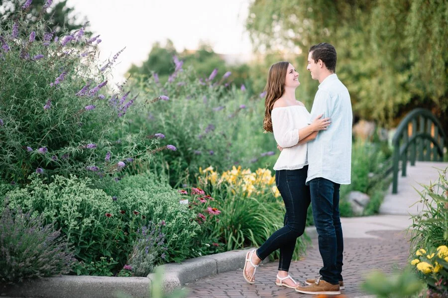 For couples wanting a spot with a lot of color and a cute downtown vibe mixed in with a bit of nature, Old Town is perfect. Brightly colored buildings and the river trail make for fun photos. There aren’t many flowers, but the colorful buildings give the images a pop. There isn’t any shade, so golden hour or a cloudy day work best. Parking is easy (there’s a large lot on site) but no bathrooms for changing.