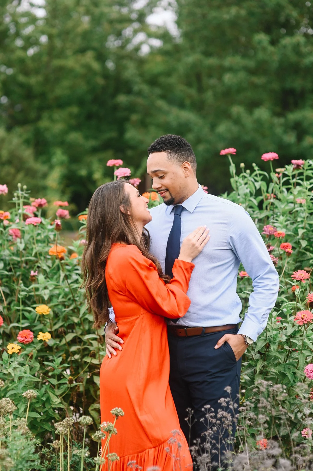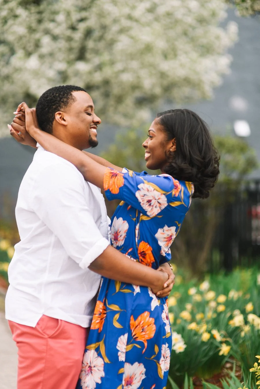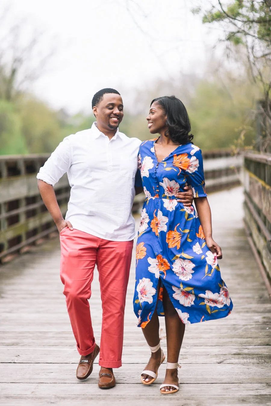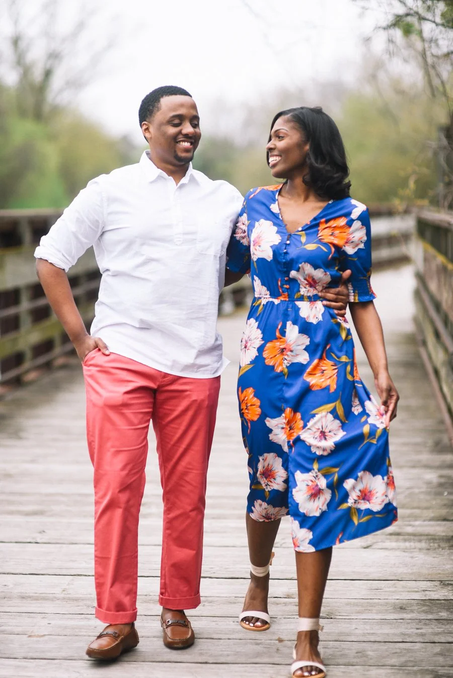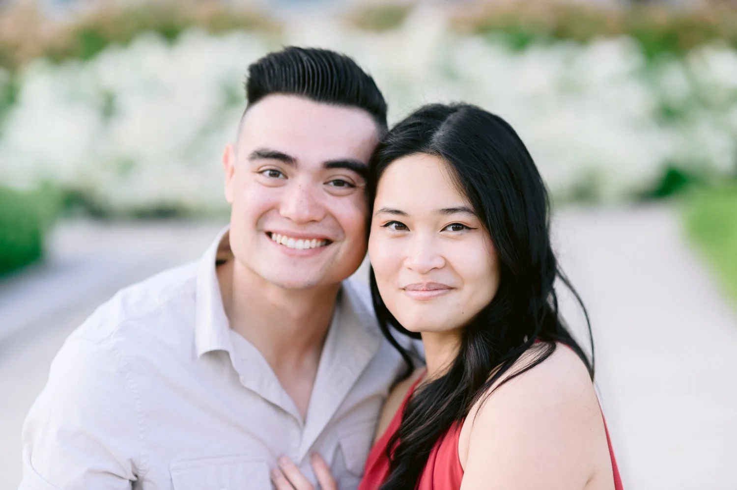 For couples wanting a spot with a lot of color and a cute downtown vibe mixed in with a bit of nature, Old Town is perfect. Brightly colored buildings and the river trail make for fun photos. There aren’t many flowers, but the colorful buildings give the images a pop. There isn’t any shade, so golden hour or a cloudy day work best. Parking is easy (there’s a large lot on site) but no bathrooms for changing.
