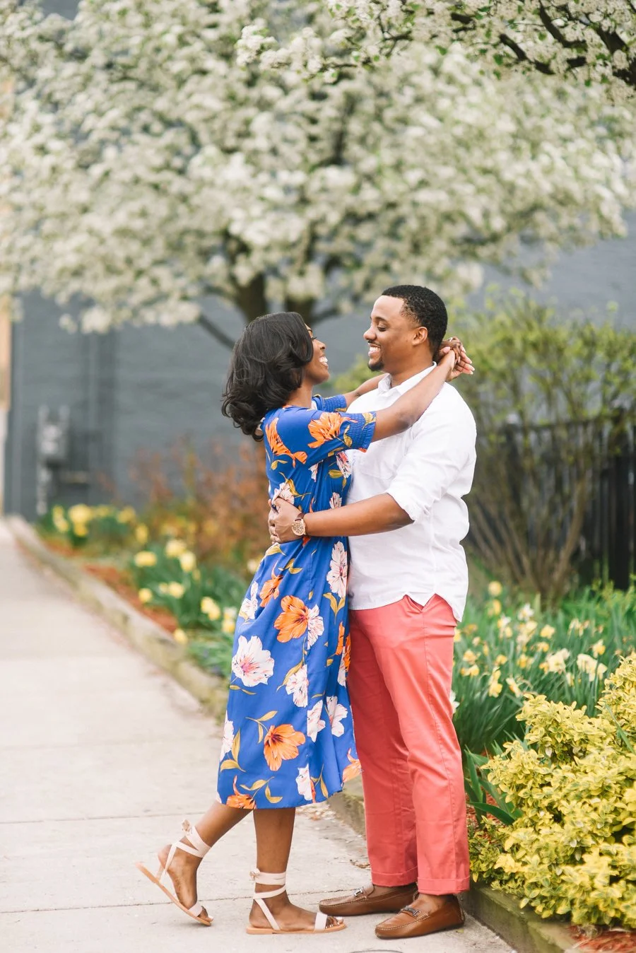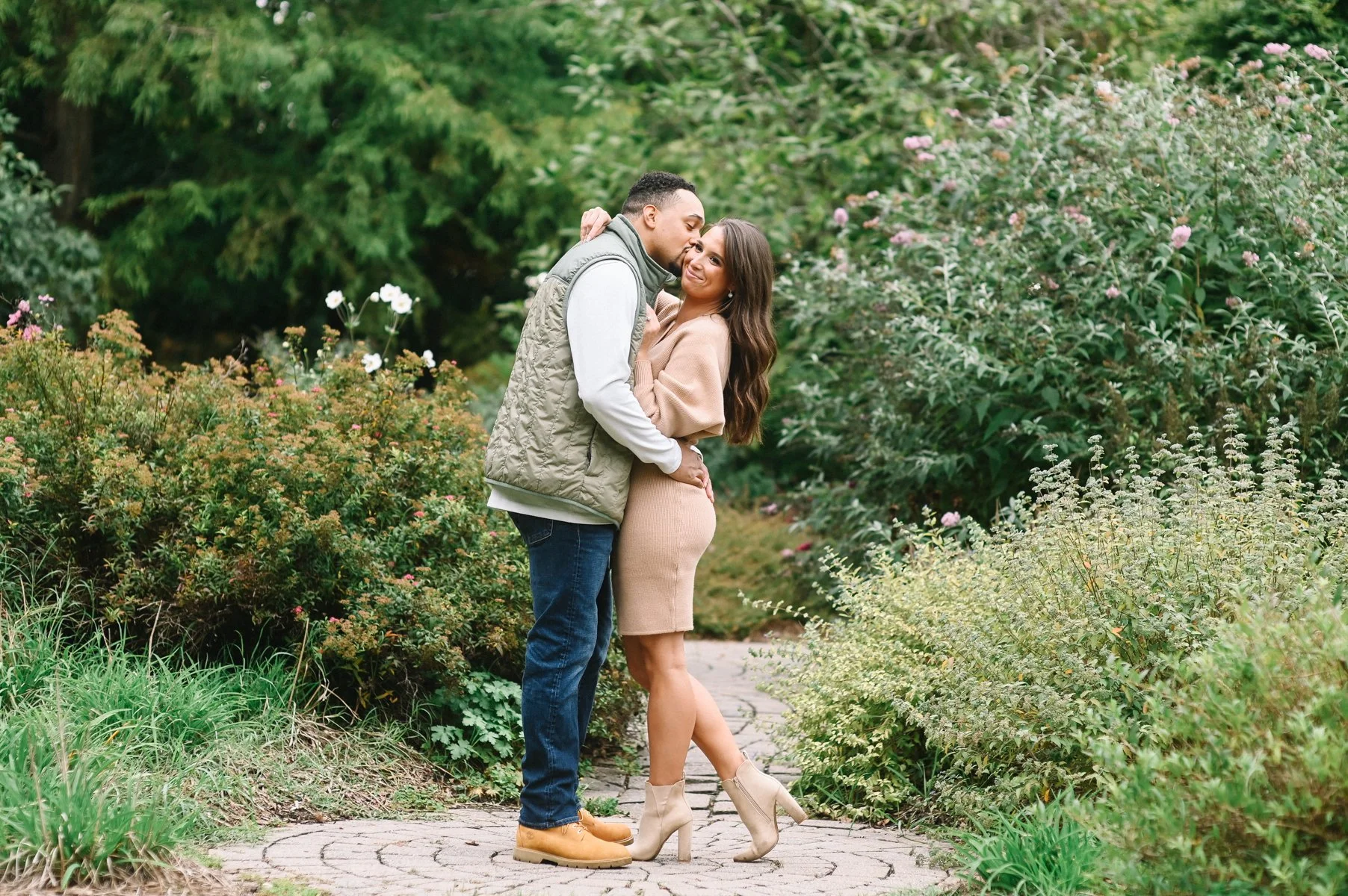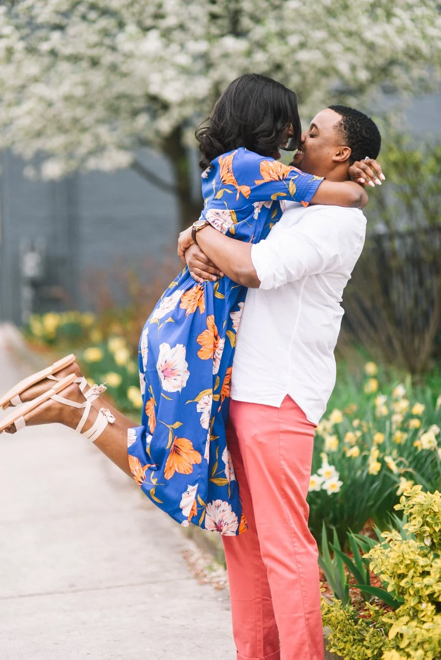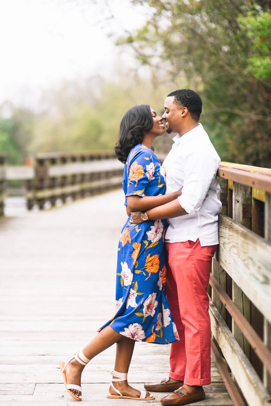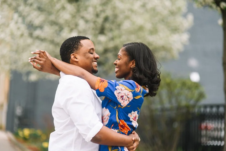 For couples wanting a spot with a lot of color and a cute downtown vibe mixed in with a bit of nature, Old Town is perfect. Brightly colored buildings and the river trail make for fun photos. There aren’t many flowers, but the colorful buildings give the images a pop. There isn’t any shade, so golden hour or a cloudy day work best. Parking is easy (there’s a large lot on site) but no bathrooms for changing.