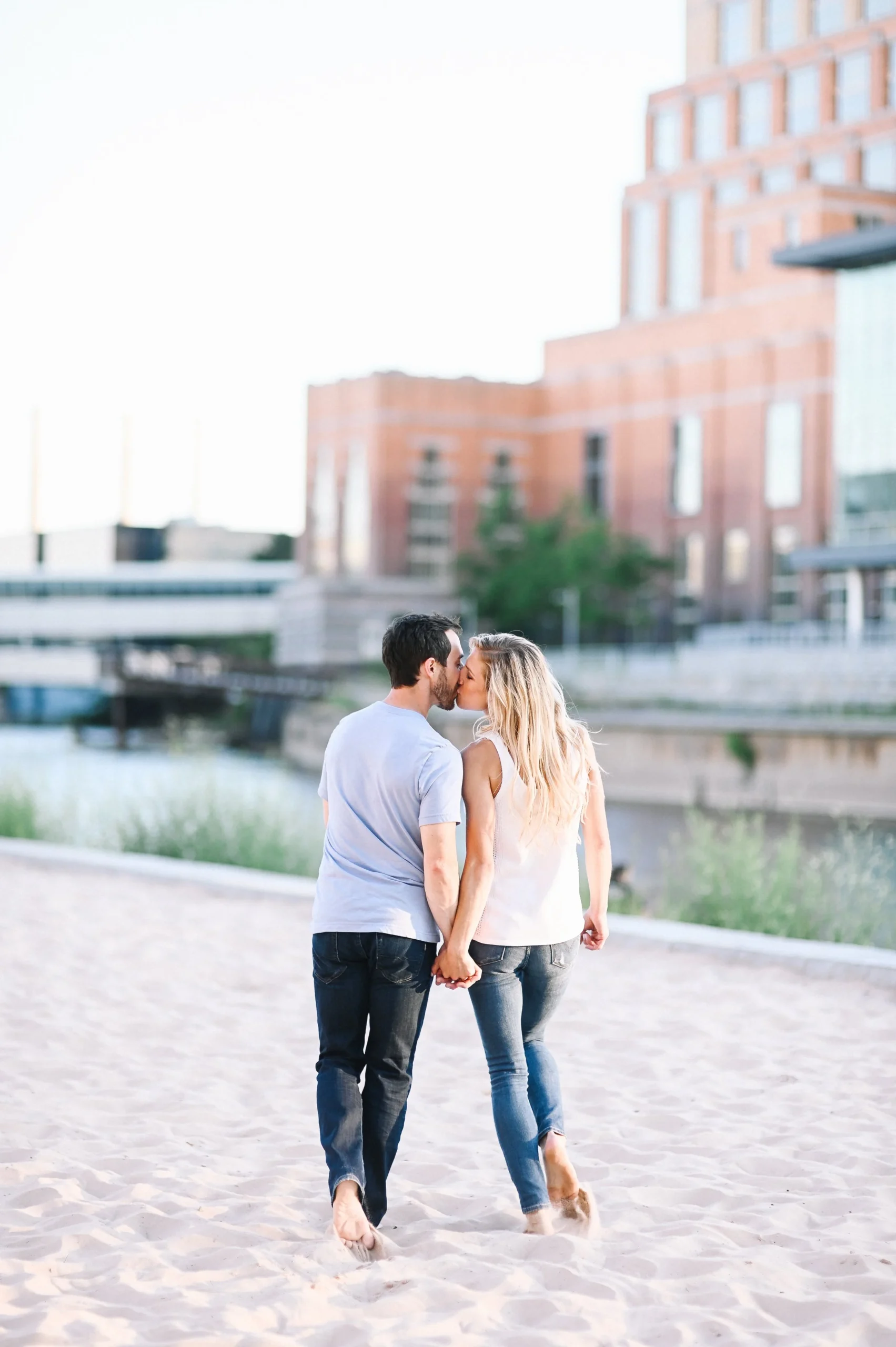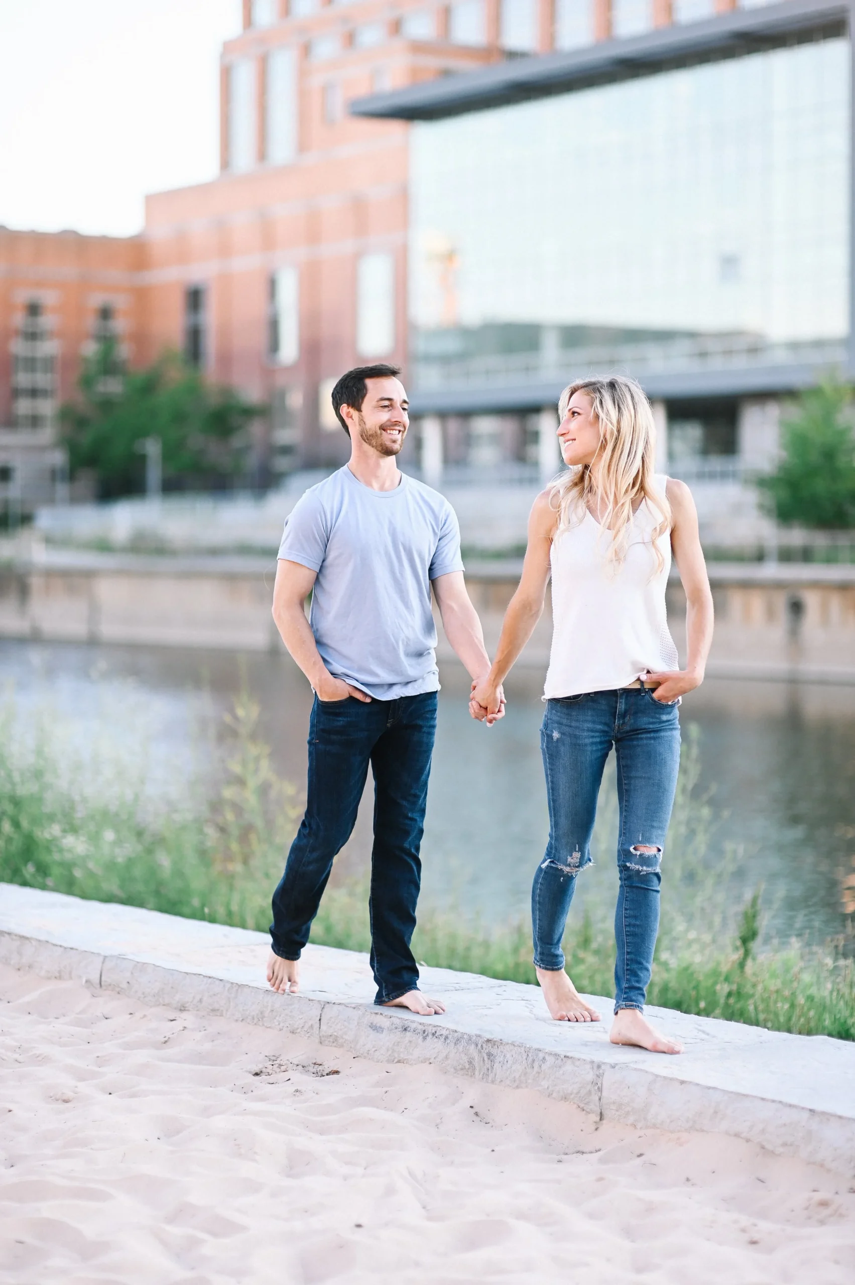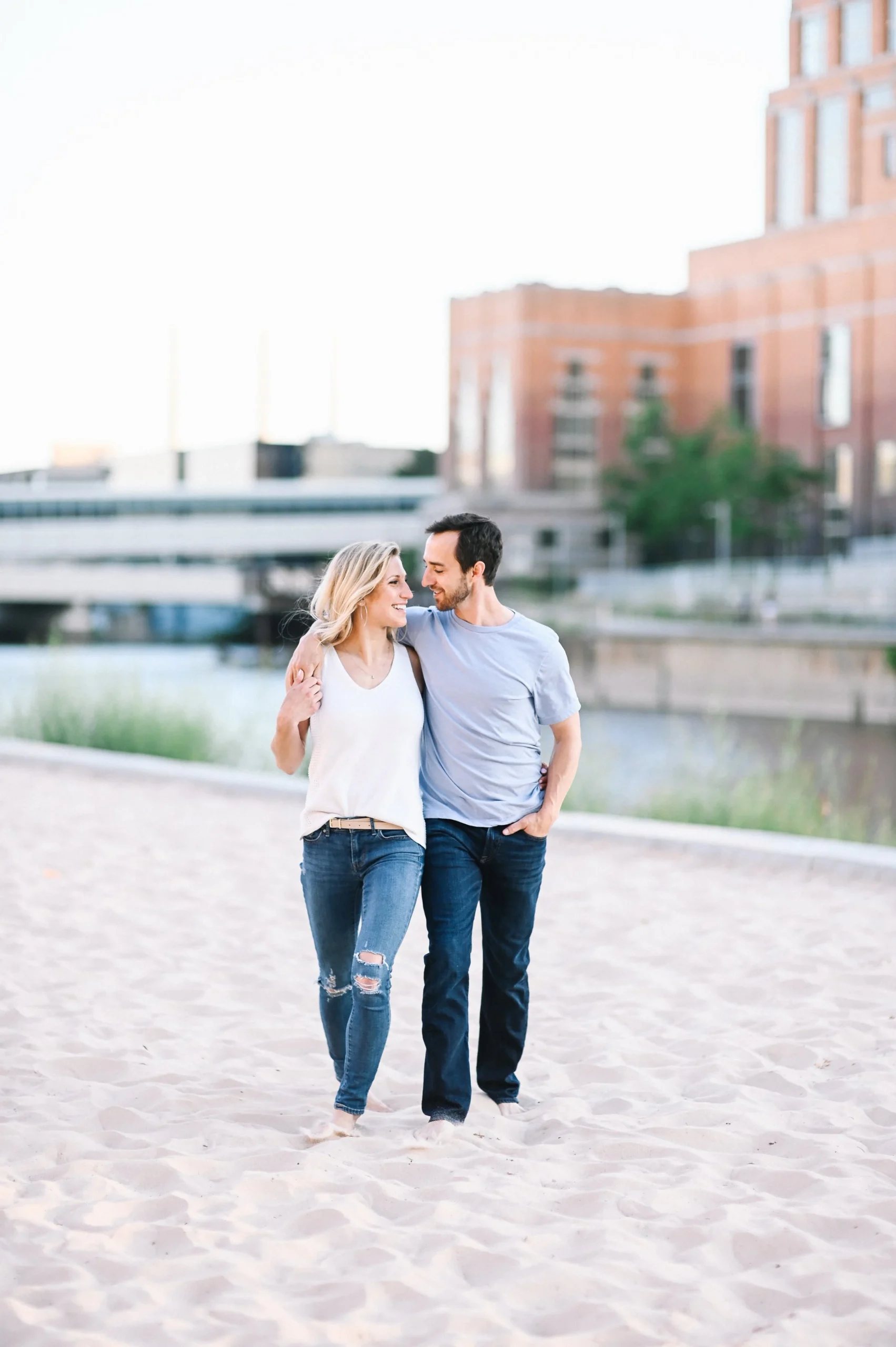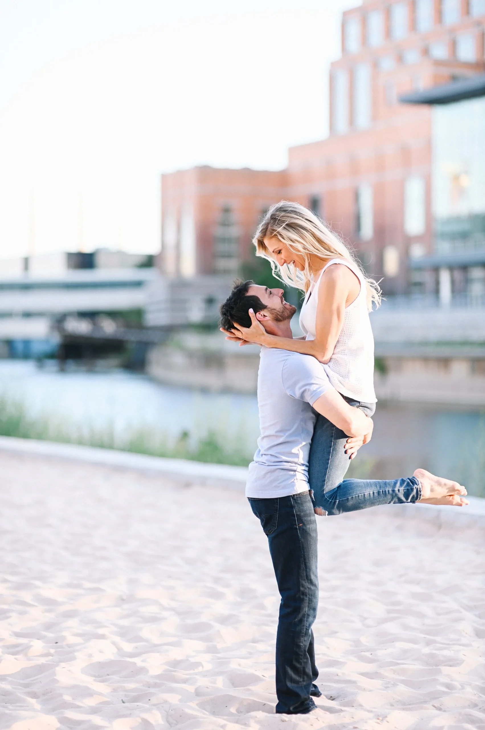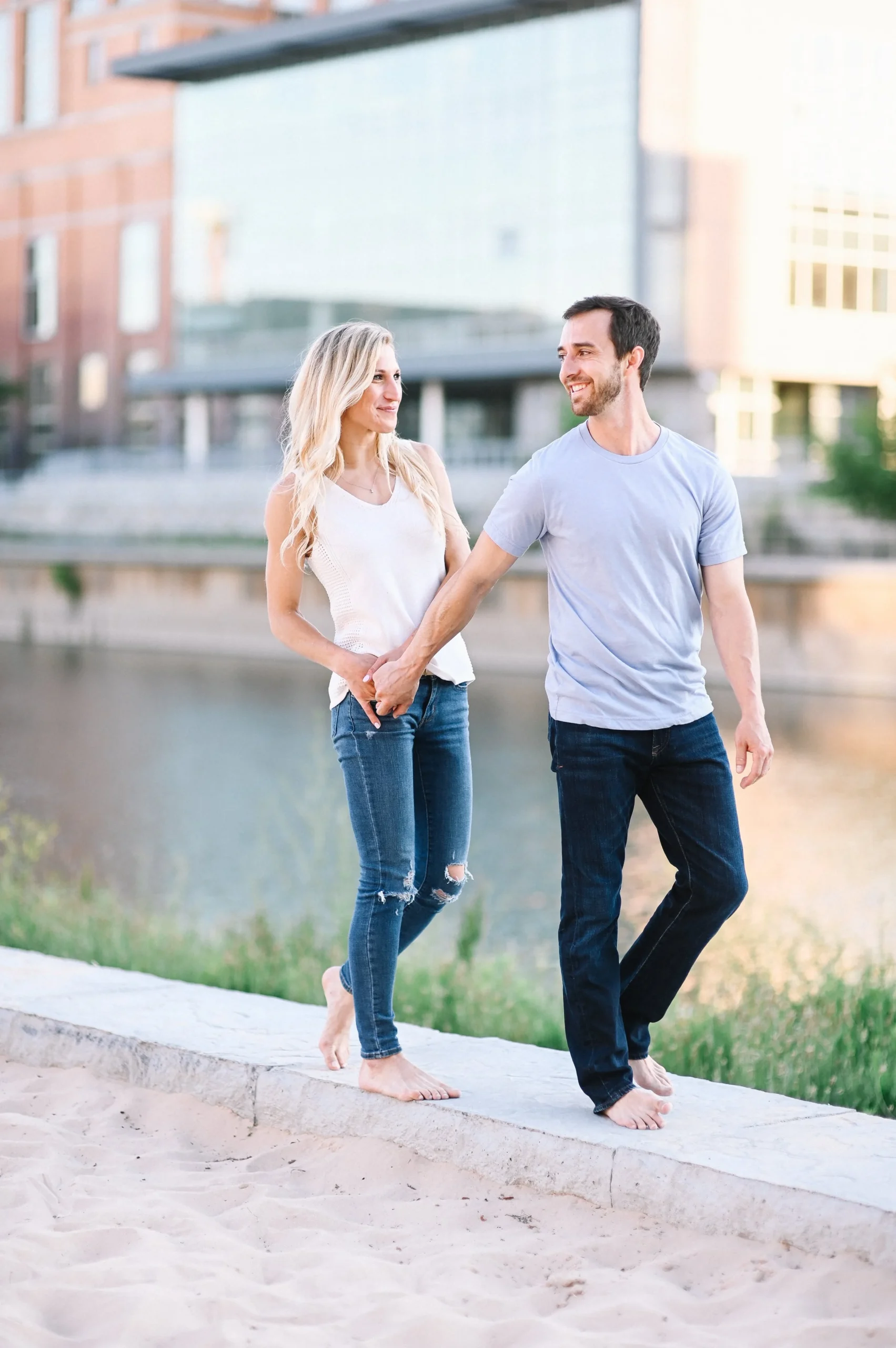 If you are looking for a beach/water summery vibe, but don’t want to drive to a lake, Rotary Park in downtown Lansing has a beach along the river! It gets a great sunset and I love how the photos turn out. It’s right on the river trail so there are lots of little nooks and a cool bridge to use too. Parking is super simple but unfortunately there aren’t public bathrooms for changing. This spot can be combined with shots at the Capitol building/downtown Lansing. Couples often start with a formal look a the Capitol and change into a casual one for the beach.