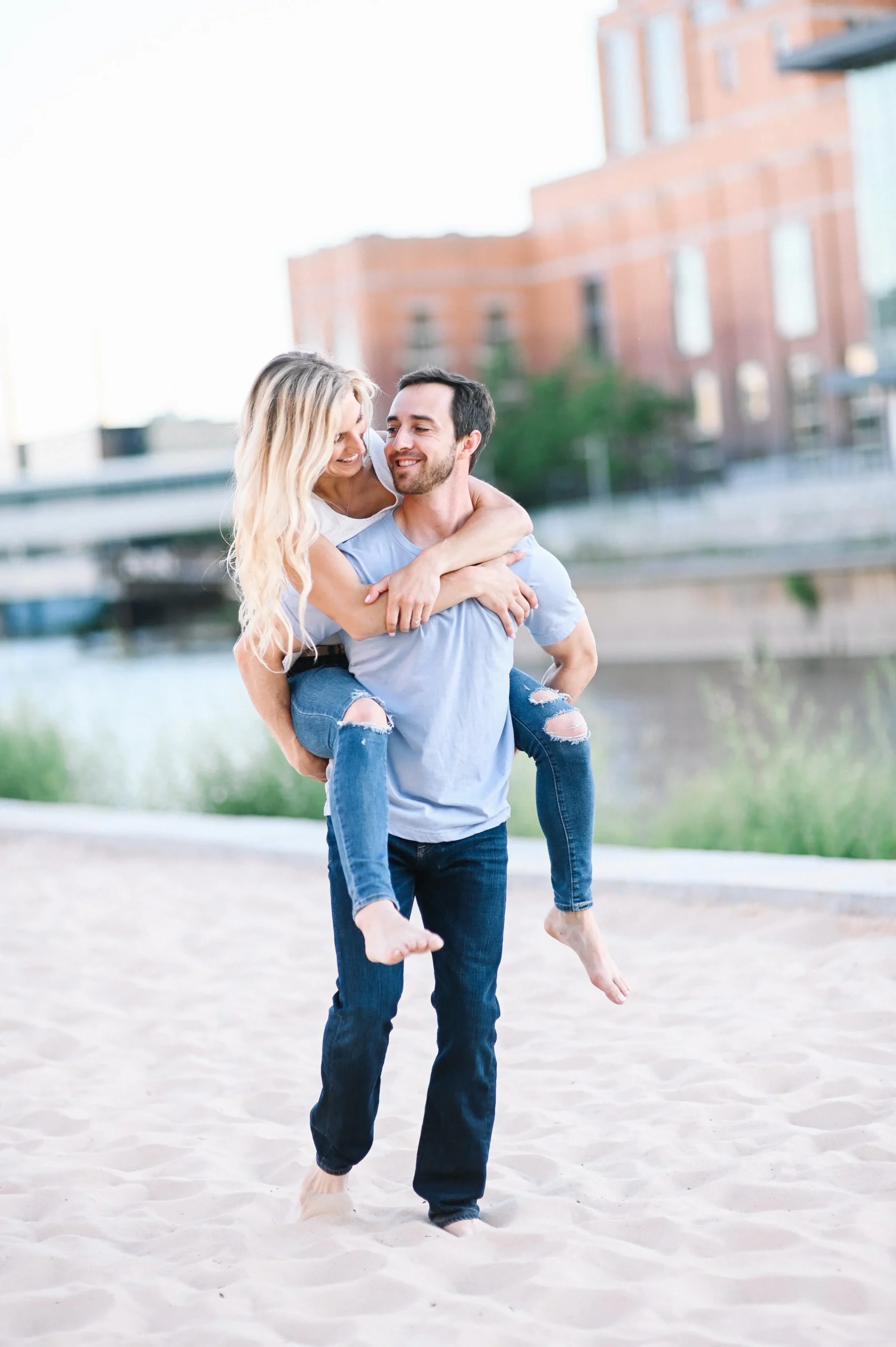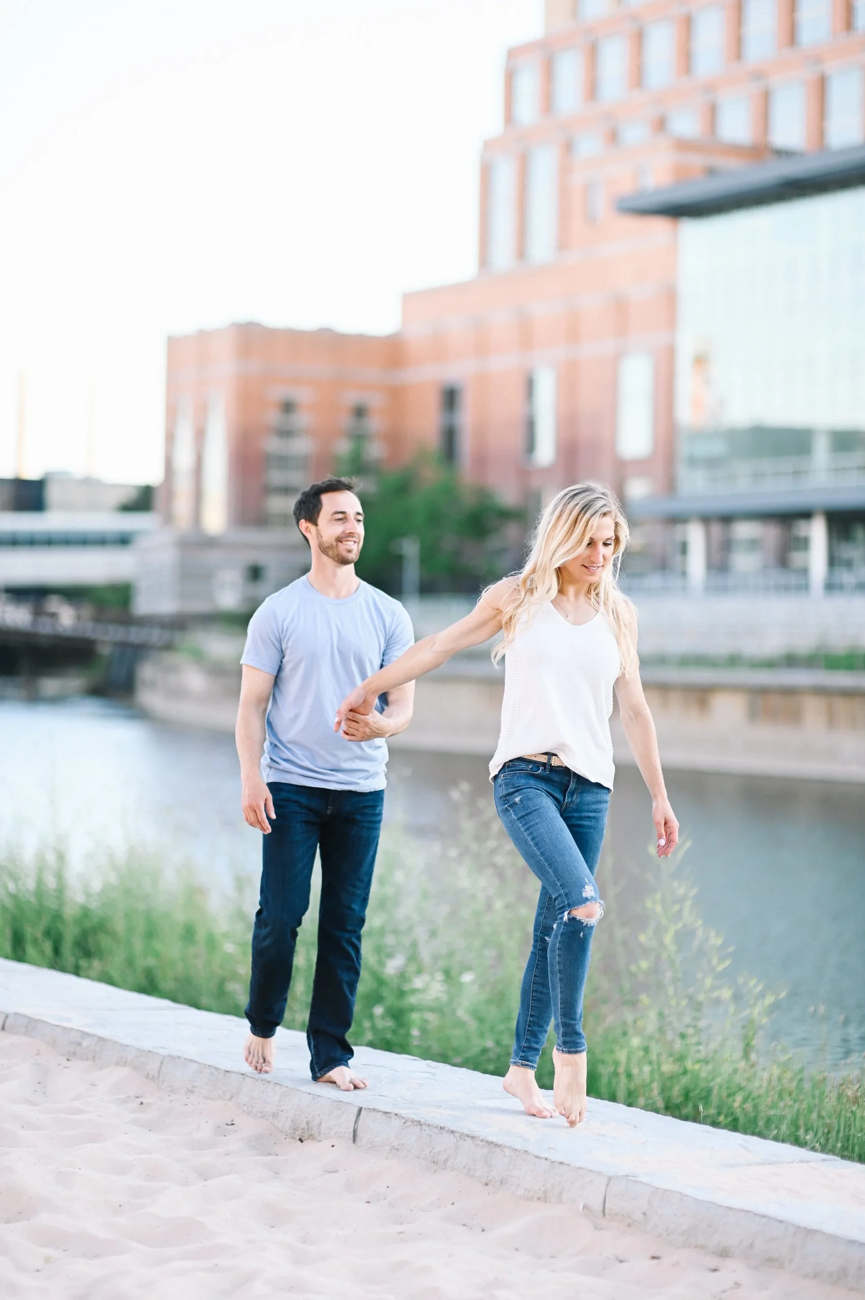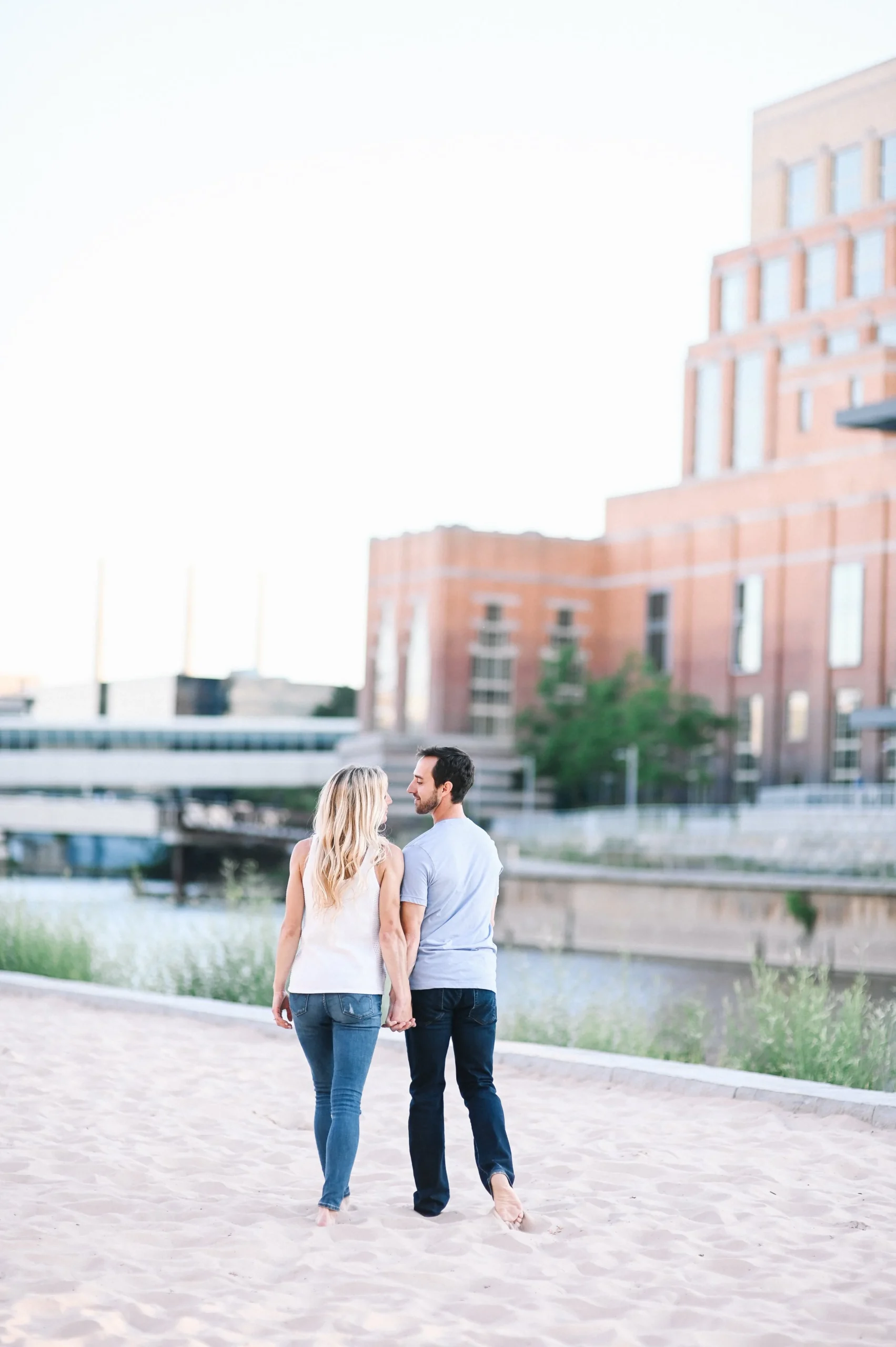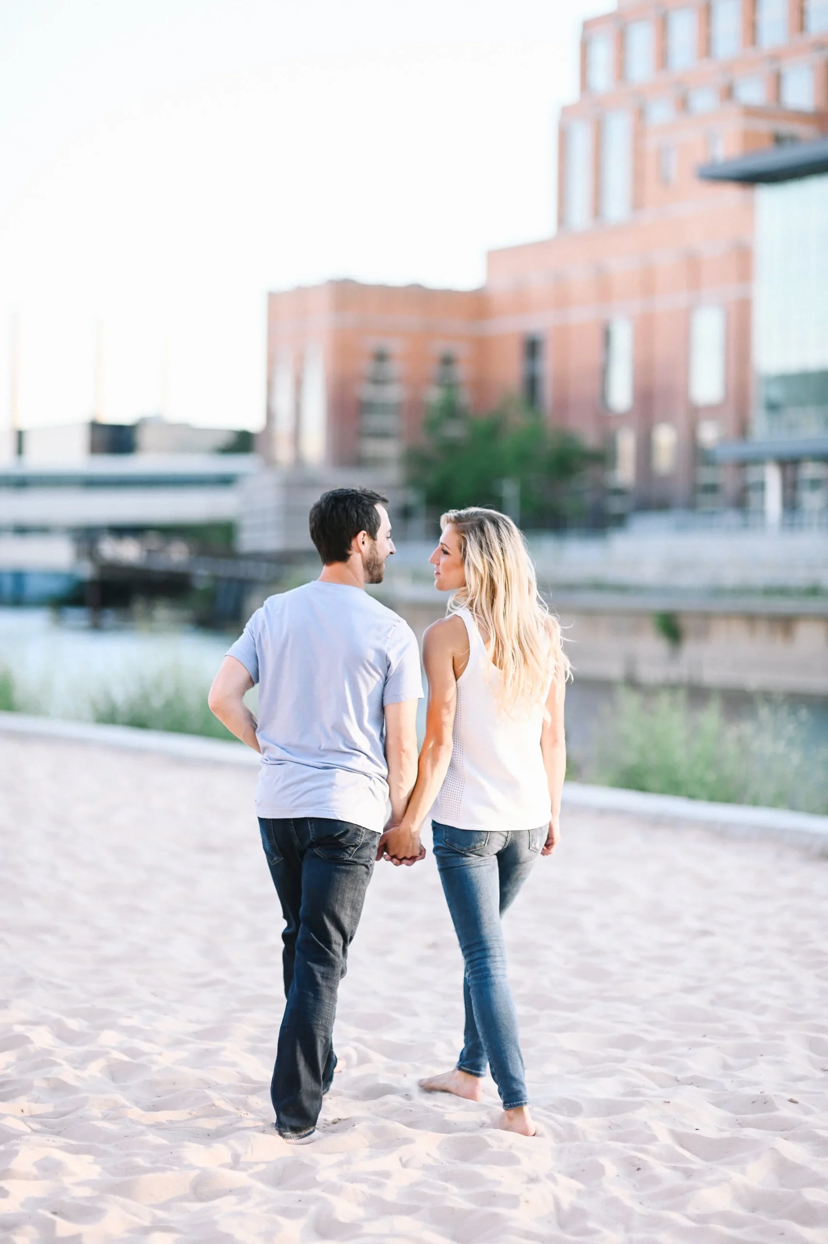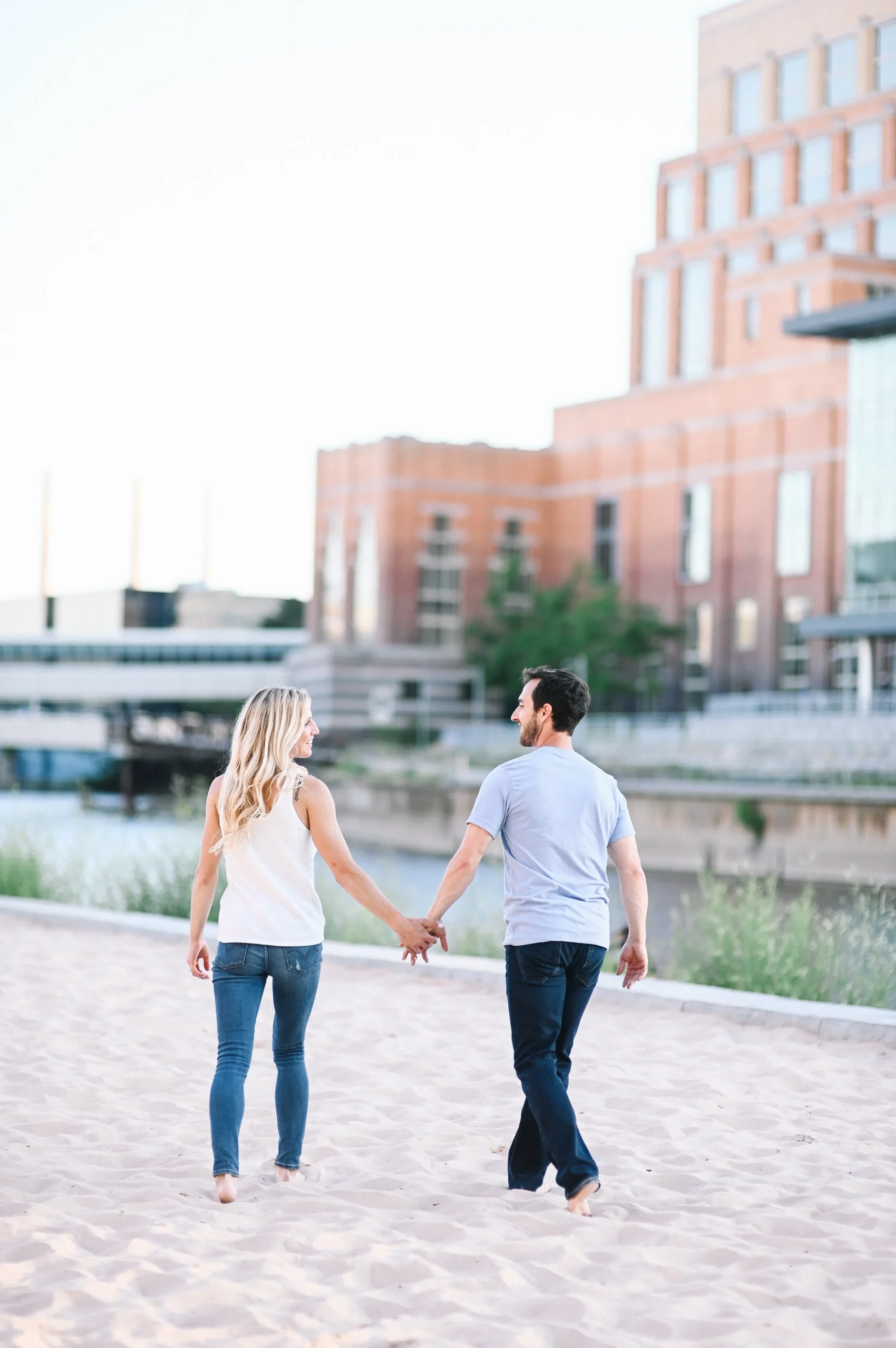 If you are looking for a beach/water summery vibe, but don’t want to drive to a lake, Rotary Park in downtown Lansing has a beach along the river! It gets a great sunset and I love how the photos turn out. It’s right on the river trail so there are lots of little nooks and a cool bridge to use too. Parking is super simple but unfortunately there aren’t public bathrooms for changing. This spot can be combined with shots at the Capitol building/downtown Lansing. Couples often start with a formal look a the Capitol and change into a casual one for the beach.