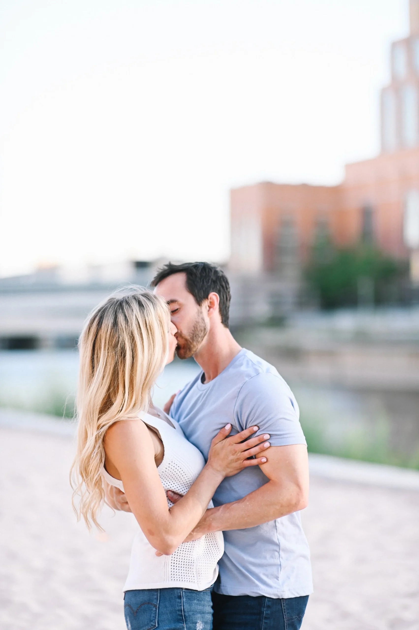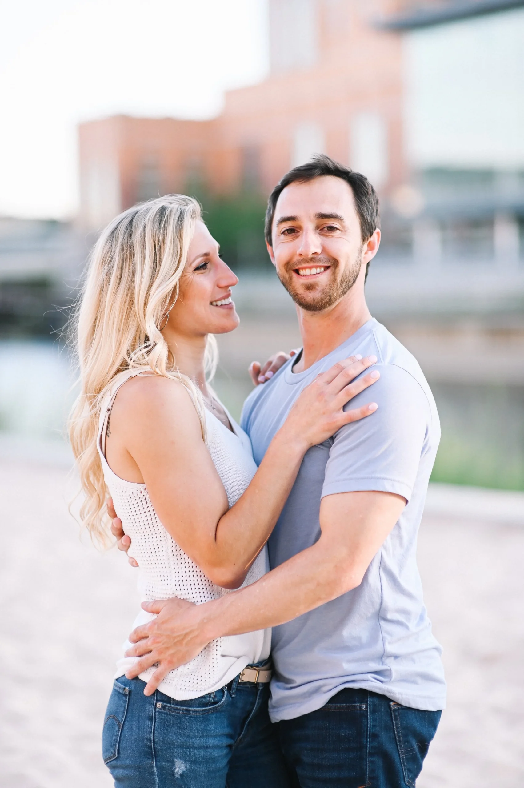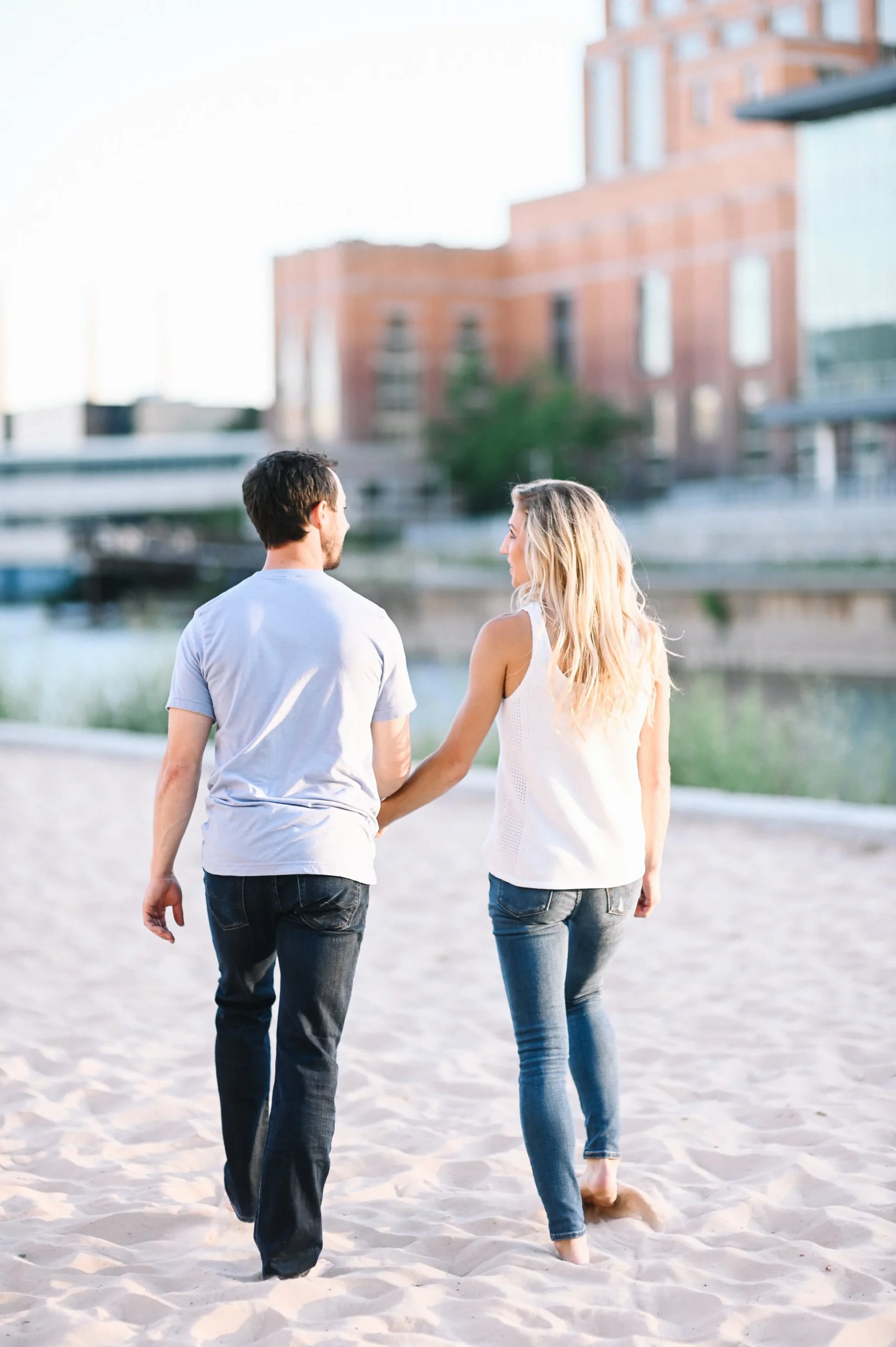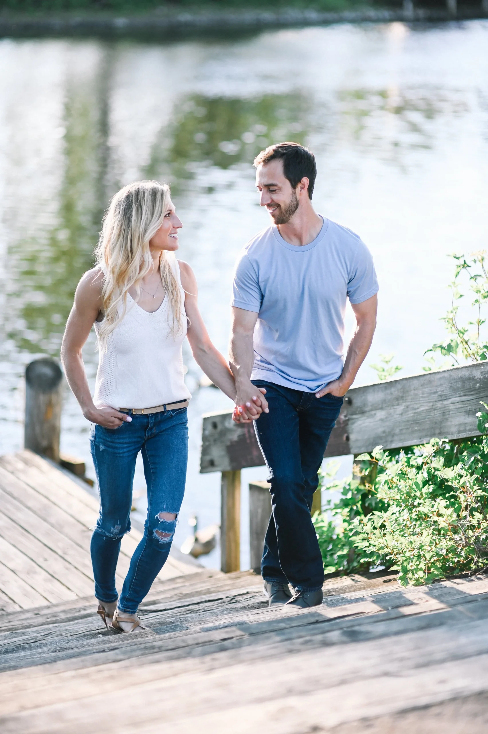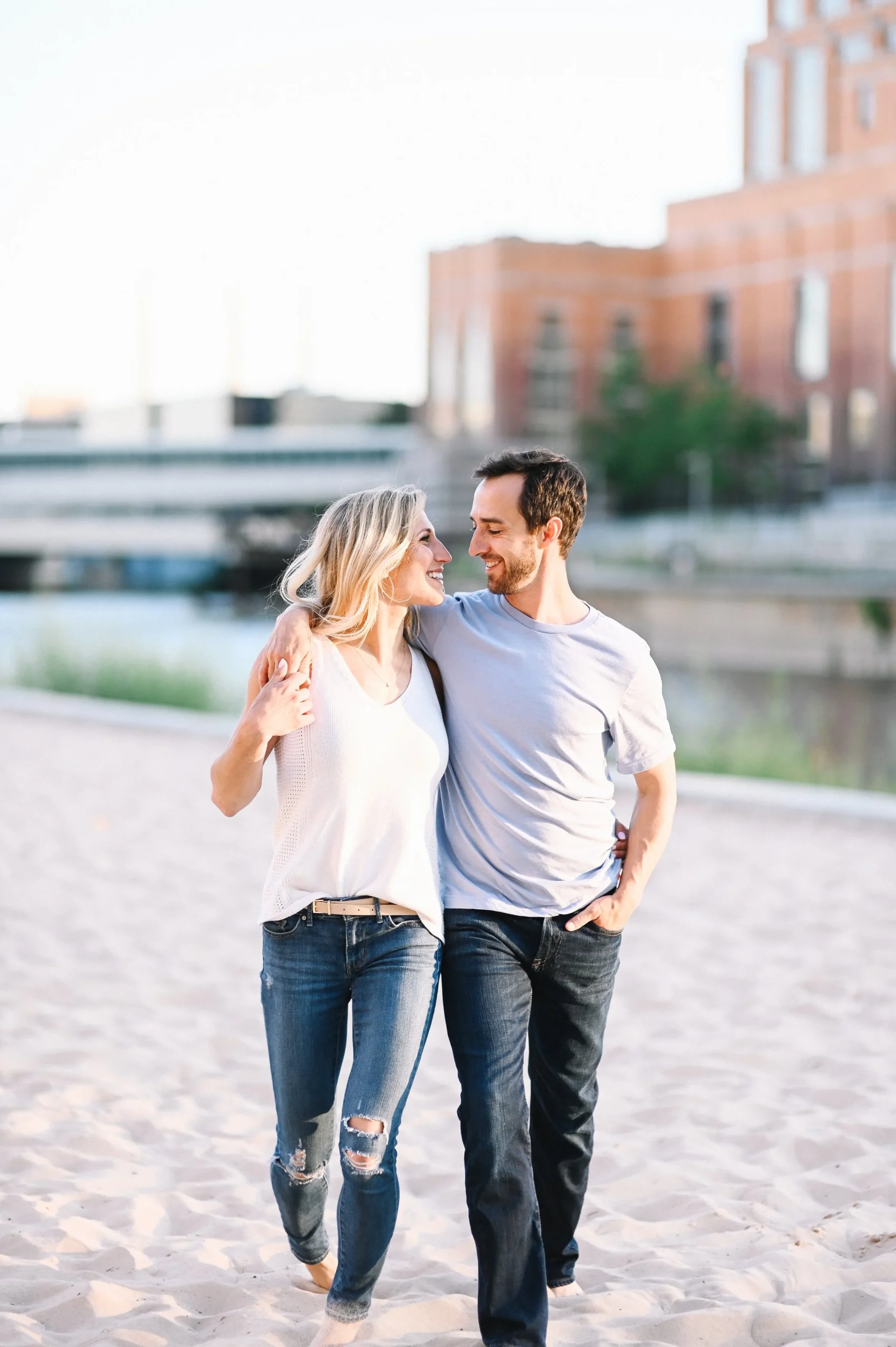 If you are looking for a beach/water summery vibe, but don’t want to drive to a lake, Rotary Park in downtown Lansing has a beach along the river! It gets a great sunset and I love how the photos turn out. It’s right on the river trail so there are lots of little nooks and a cool bridge to use too. Parking is super simple but unfortunately there aren’t public bathrooms for changing. This spot can be combined with shots at the Capitol building/downtown Lansing. Couples often start with a formal look a the Capitol and change into a casual one for the beach.