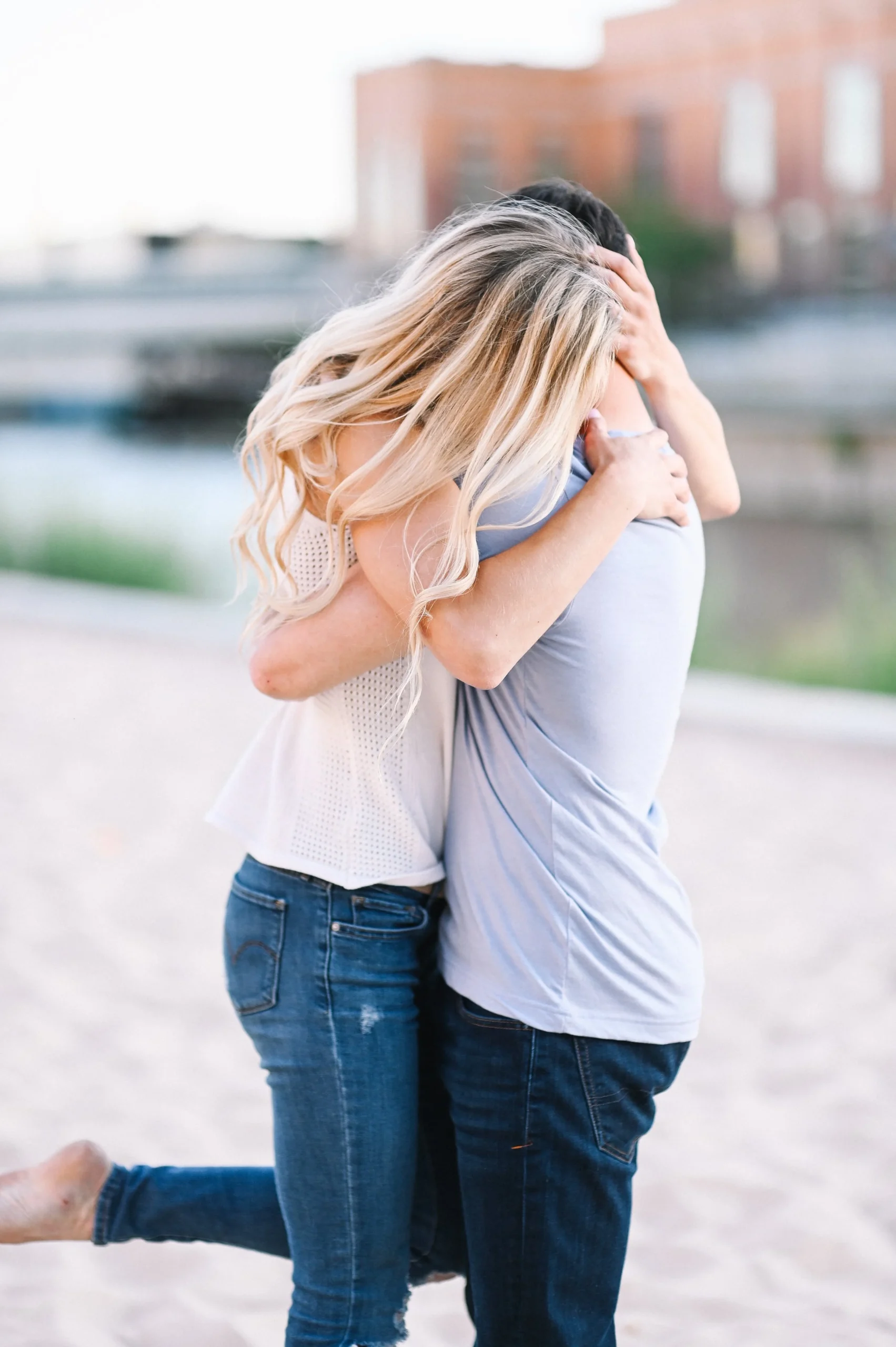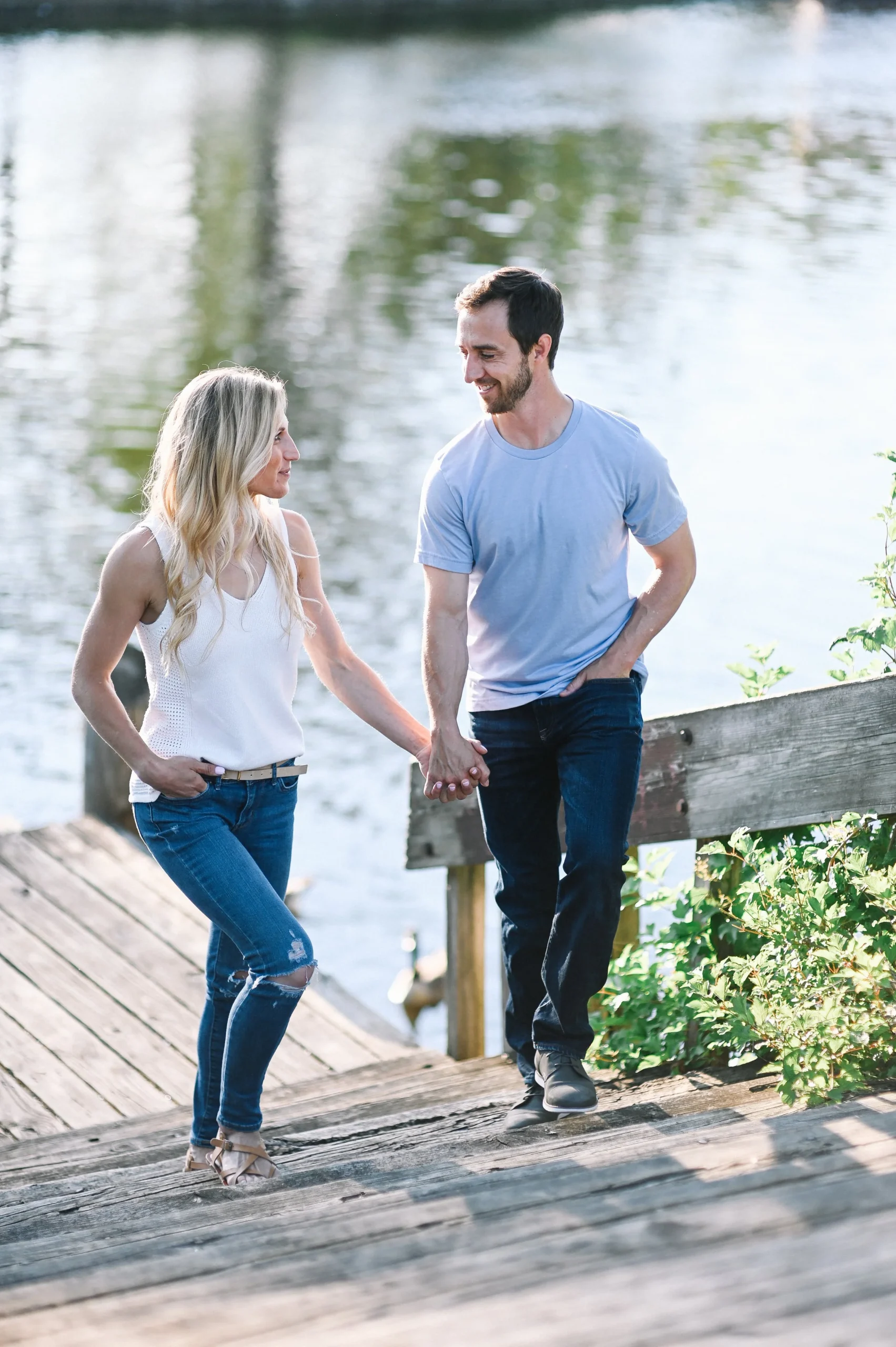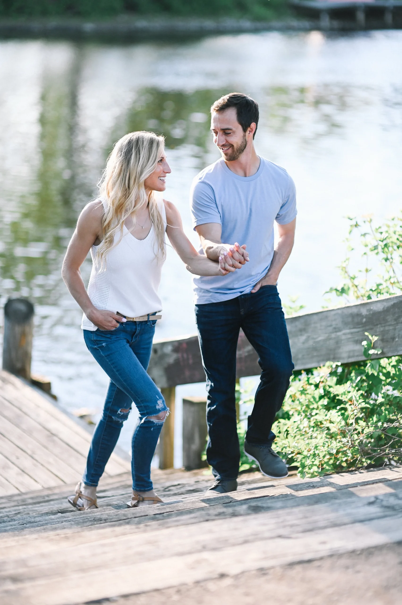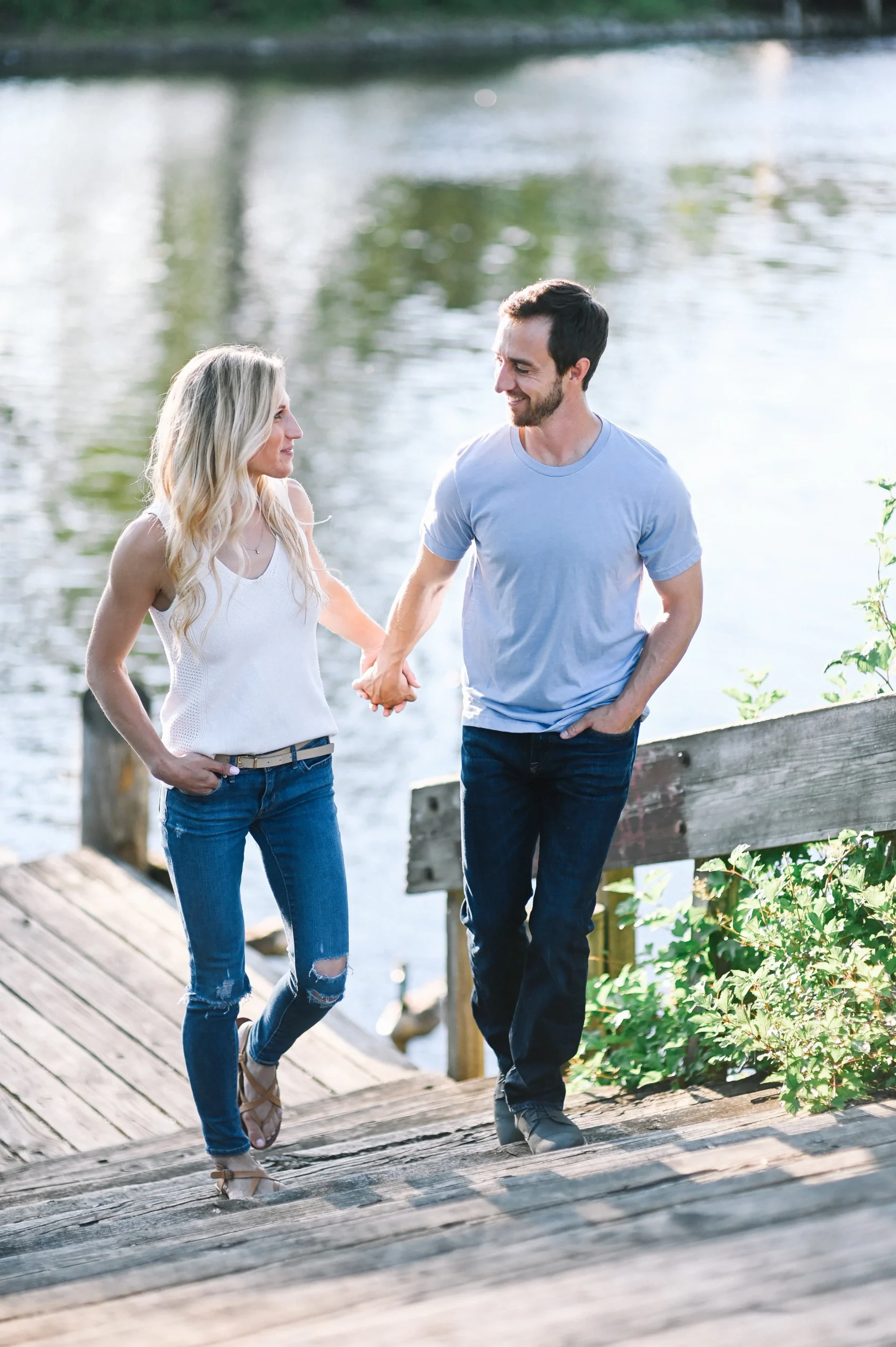 If you are looking for a beach/water summery vibe, but don’t want to drive to a lake, Rotary Park in downtown Lansing has a beach along the river! It gets a great sunset and I love how the photos turn out. It’s right on the river trail so there are lots of little nooks and a cool bridge to use too. Parking is super simple but unfortunately there aren’t public bathrooms for changing. This spot can be combined with shots at the Capitol building/downtown Lansing. Couples often start with a formal look a the Capitol and change into a casual one for the beach.