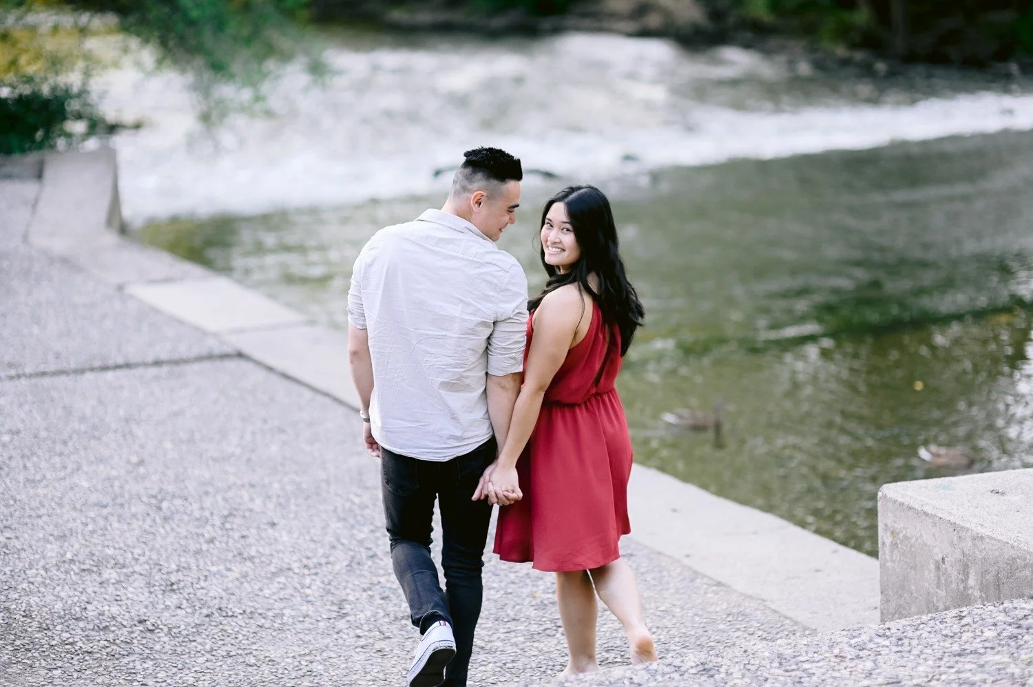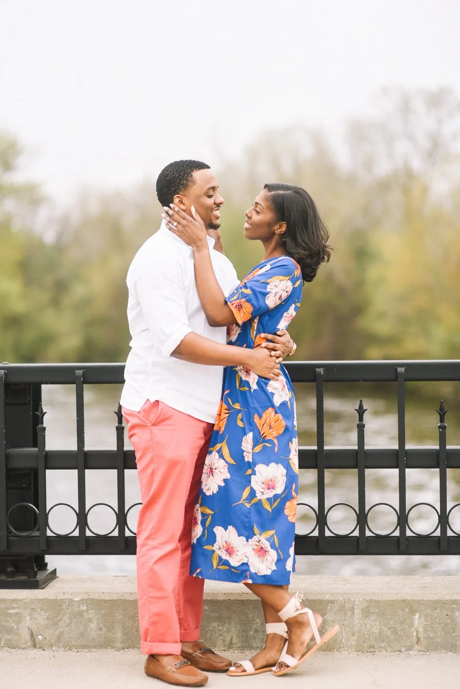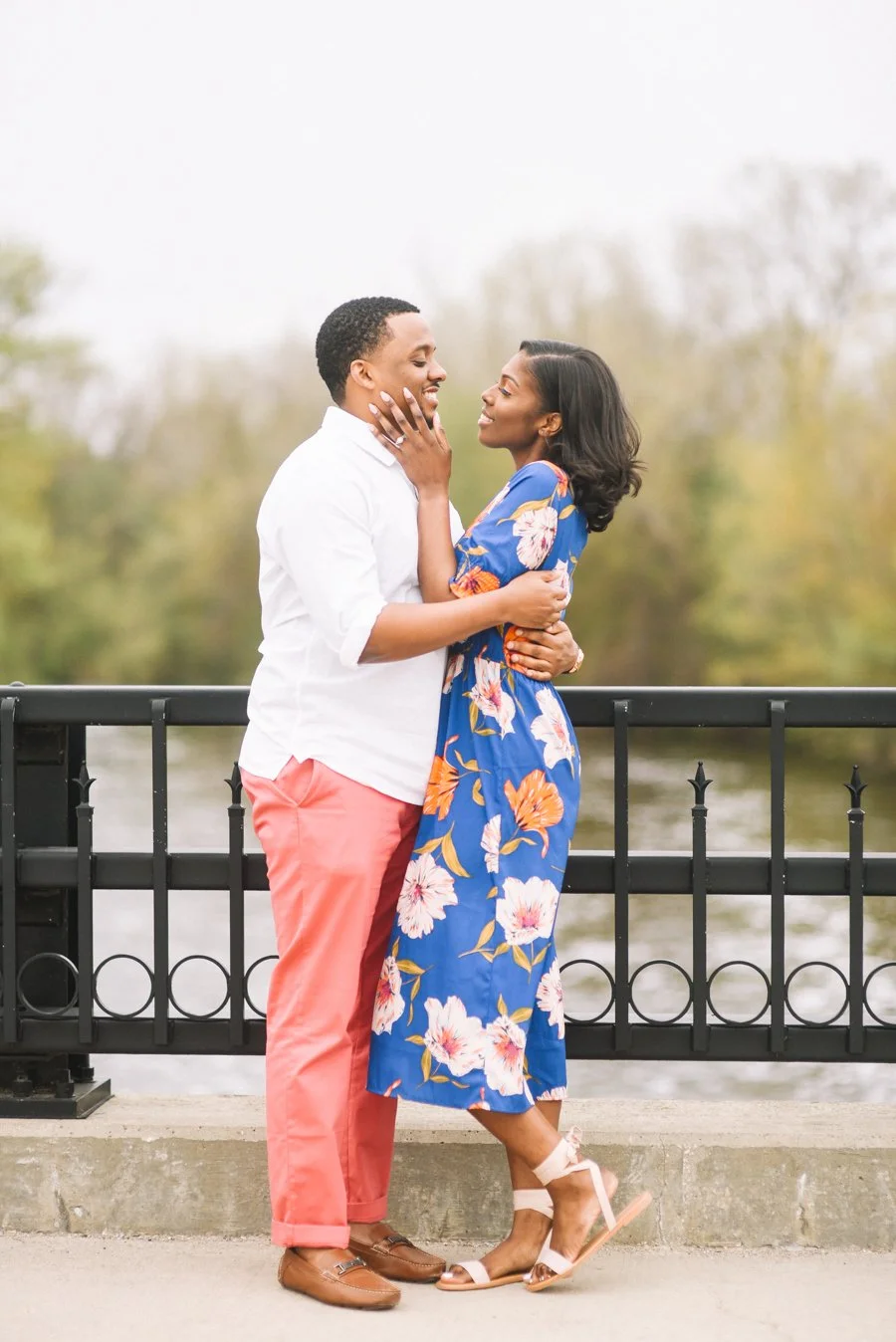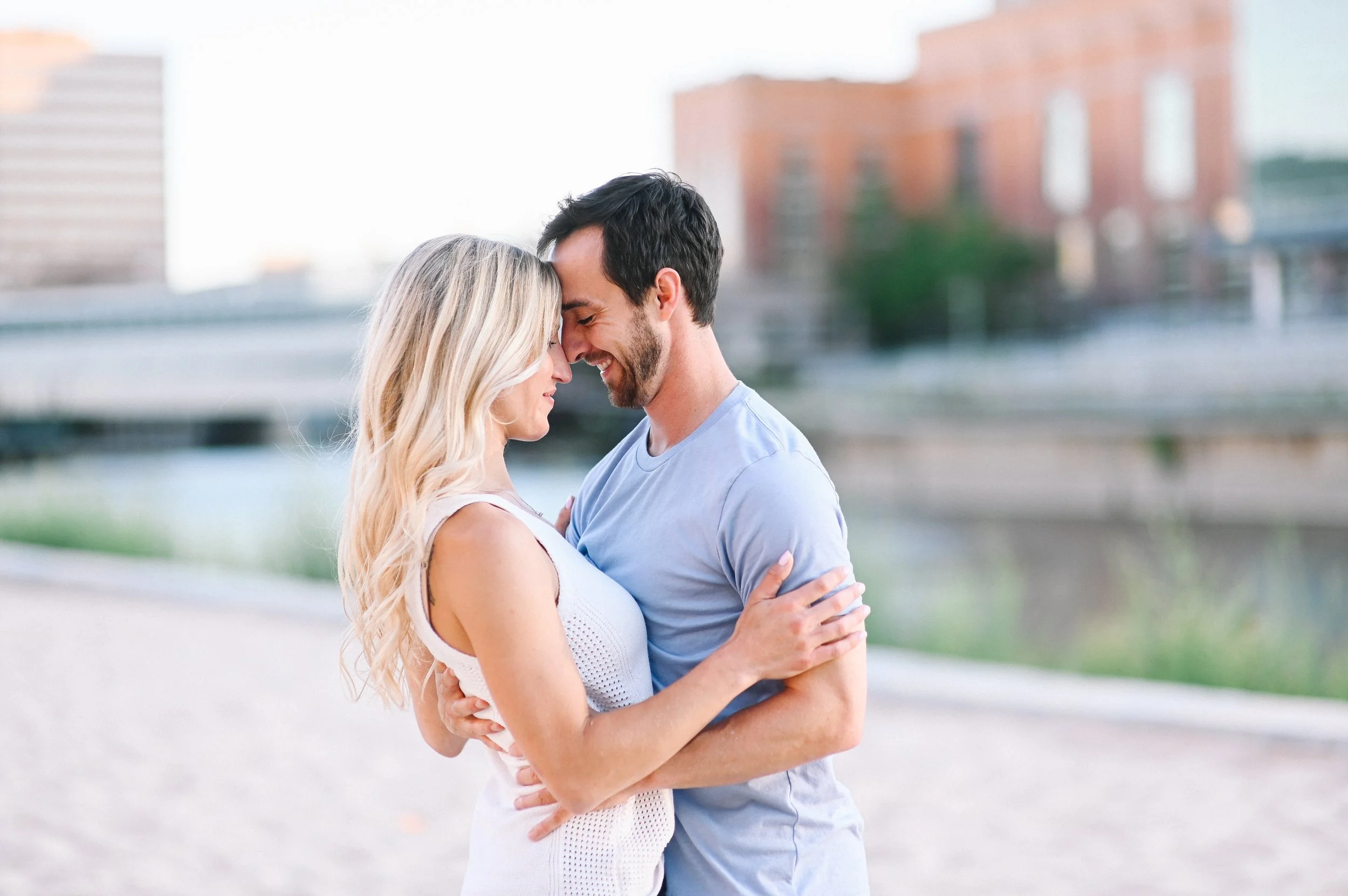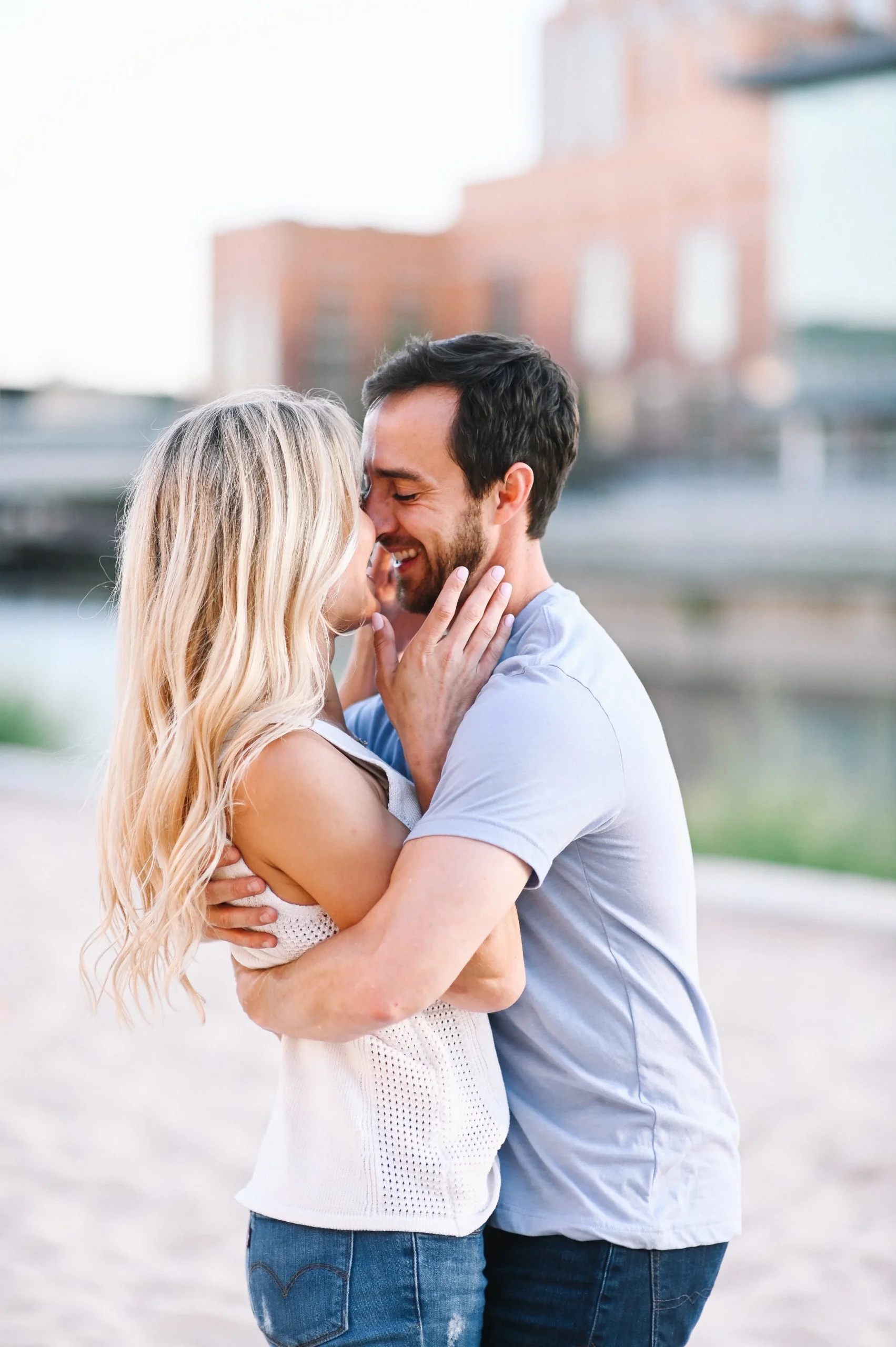 If you are looking for a beach/water summery vibe, but don’t want to drive to a lake, Rotary Park in downtown Lansing has a beach along the river! It gets a great sunset and I love how the photos turn out. It’s right on the river trail so there are lots of little nooks and a cool bridge to use too. Parking is super simple but unfortunately there aren’t public bathrooms for changing. This spot can be combined with shots at the Capitol building/downtown Lansing. Couples often start with a formal look a the Capitol and change into a casual one for the beach.