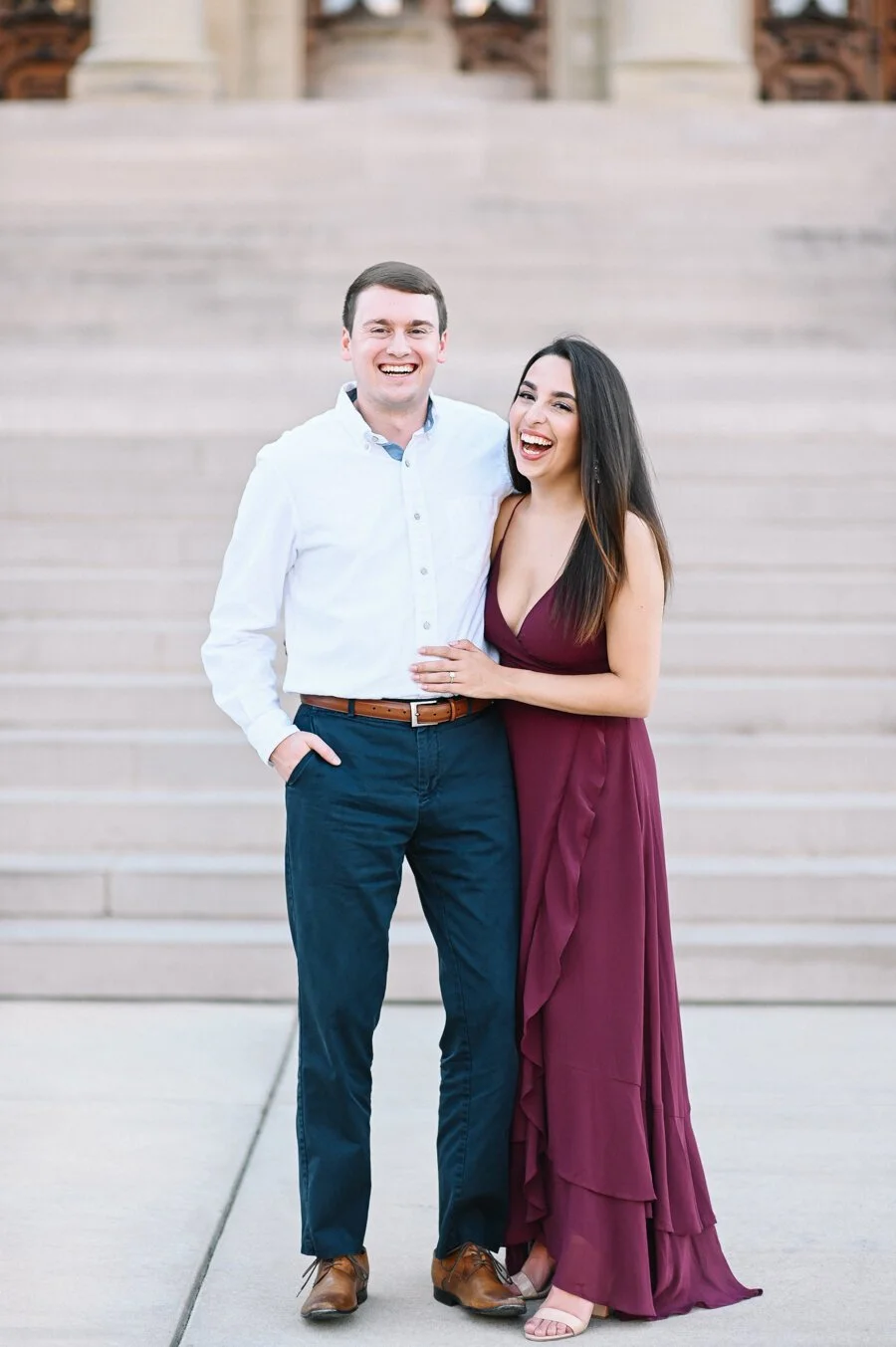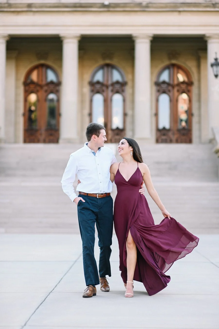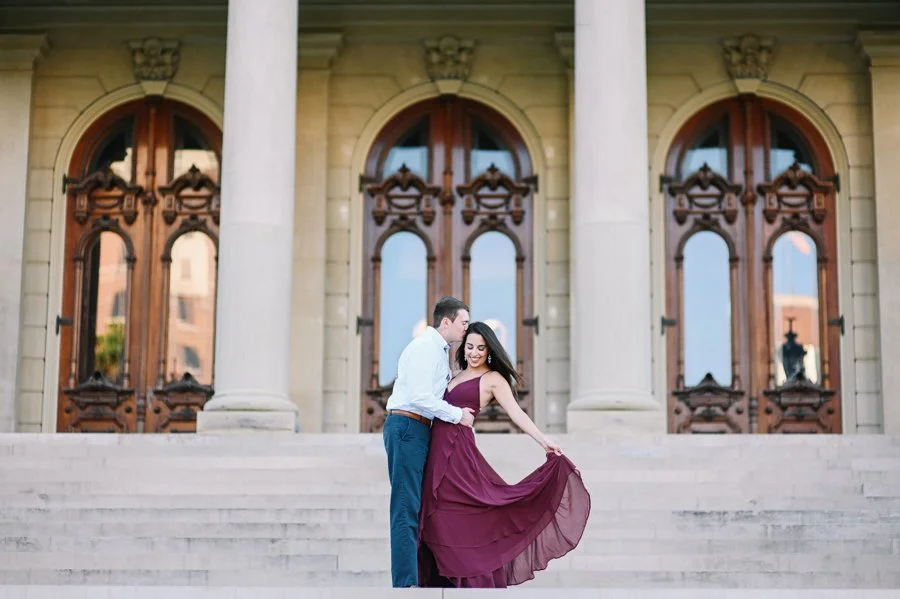 The Capitol building provides an elegant backdrop for photos and looks best dressed up. Parking isn’t too bad (you can park on the street right out front at a meter) but there are no bathrooms. Do a formal look here and then move to Rotary Park for a casual one! This location is also great in early spring/late fall when there aren’t leaves on the trees since there is beautiful architecture to use as a backdrop.