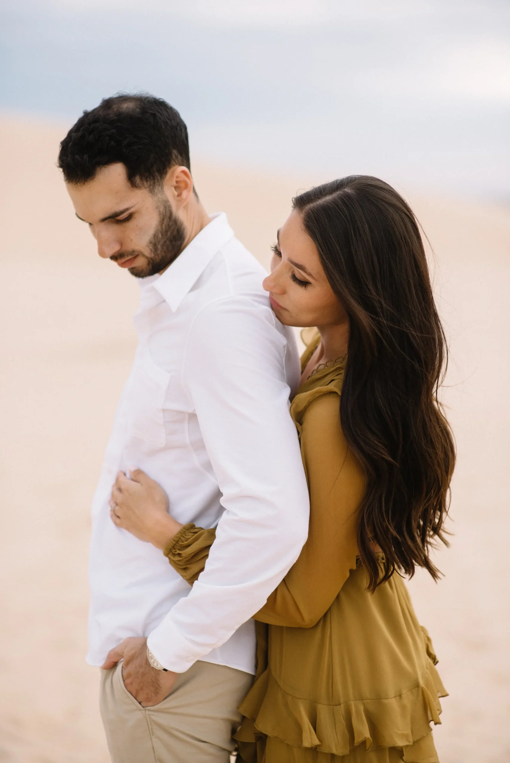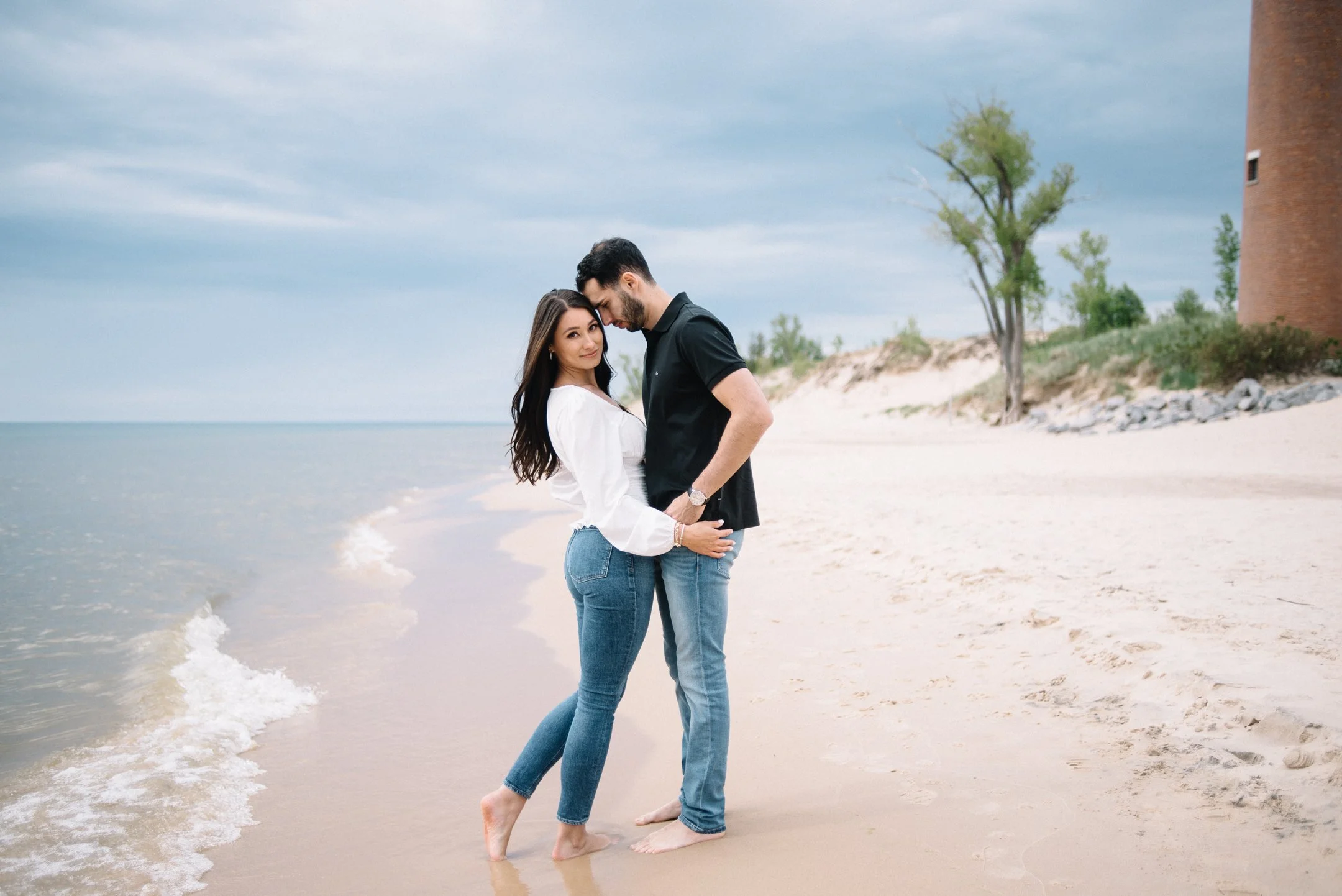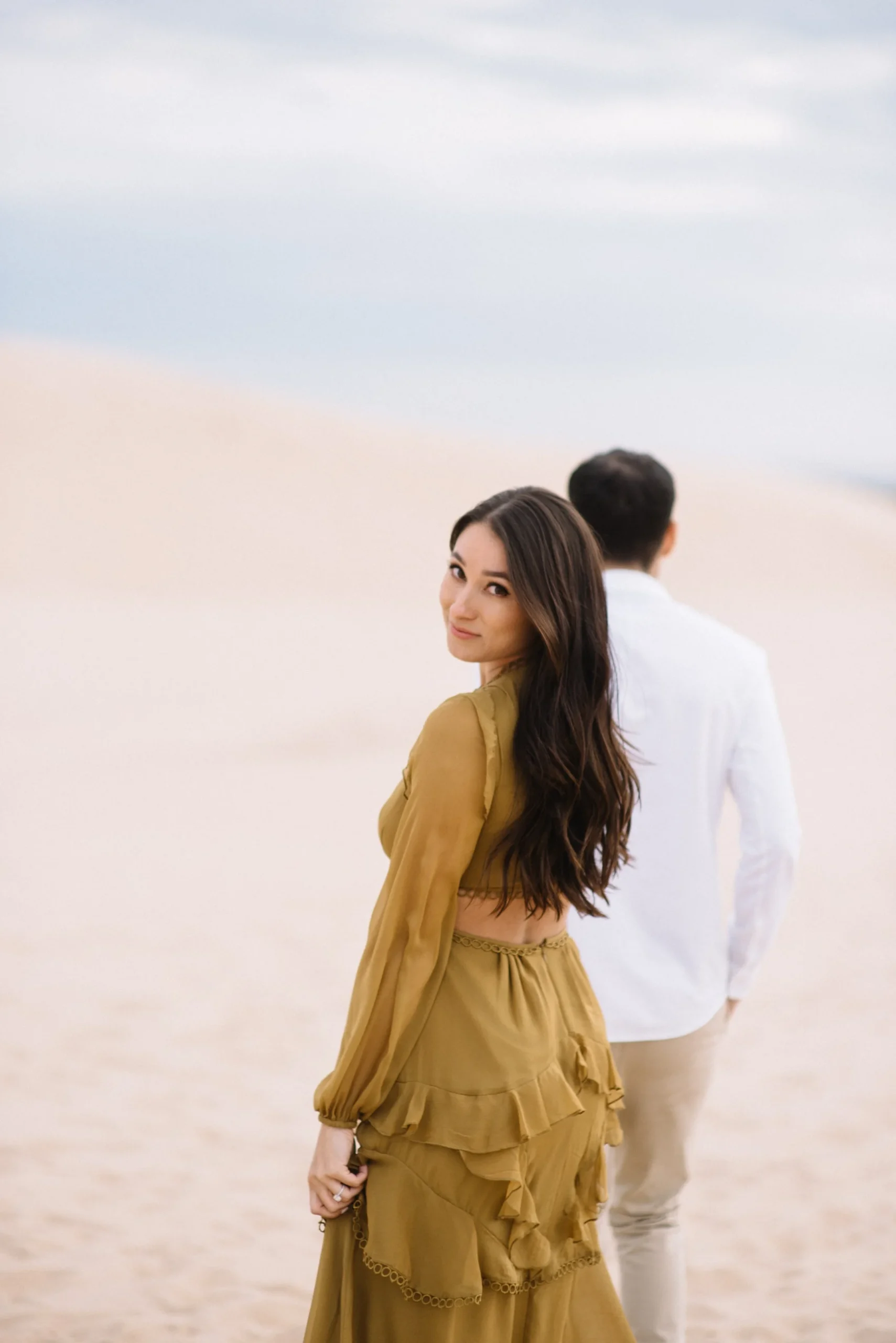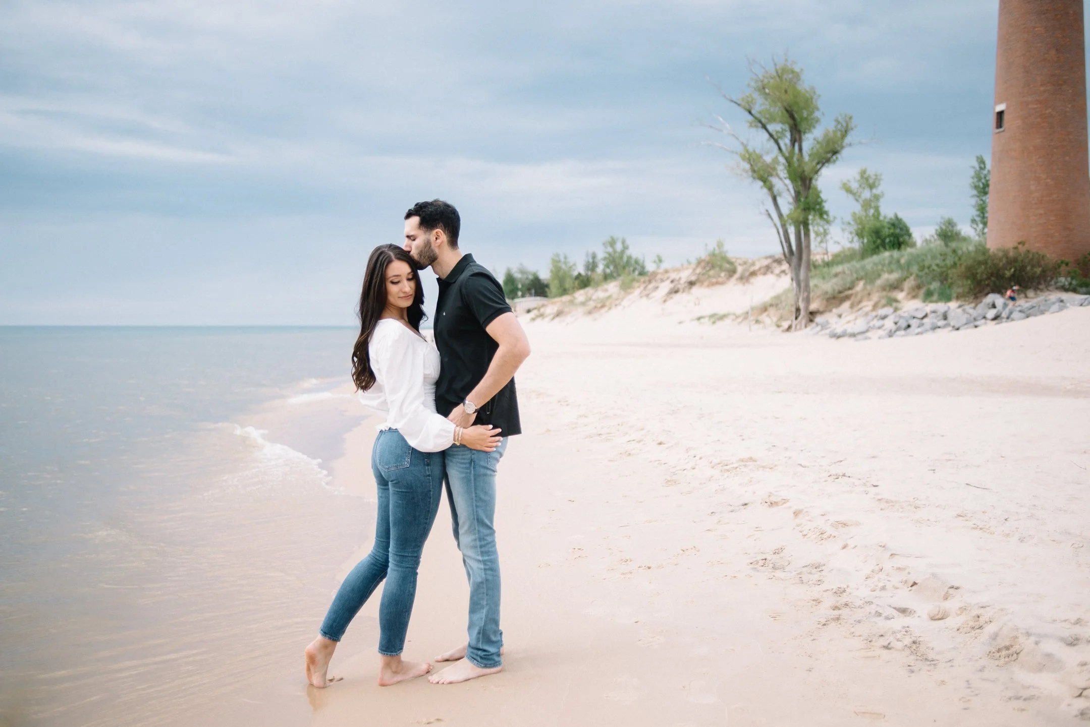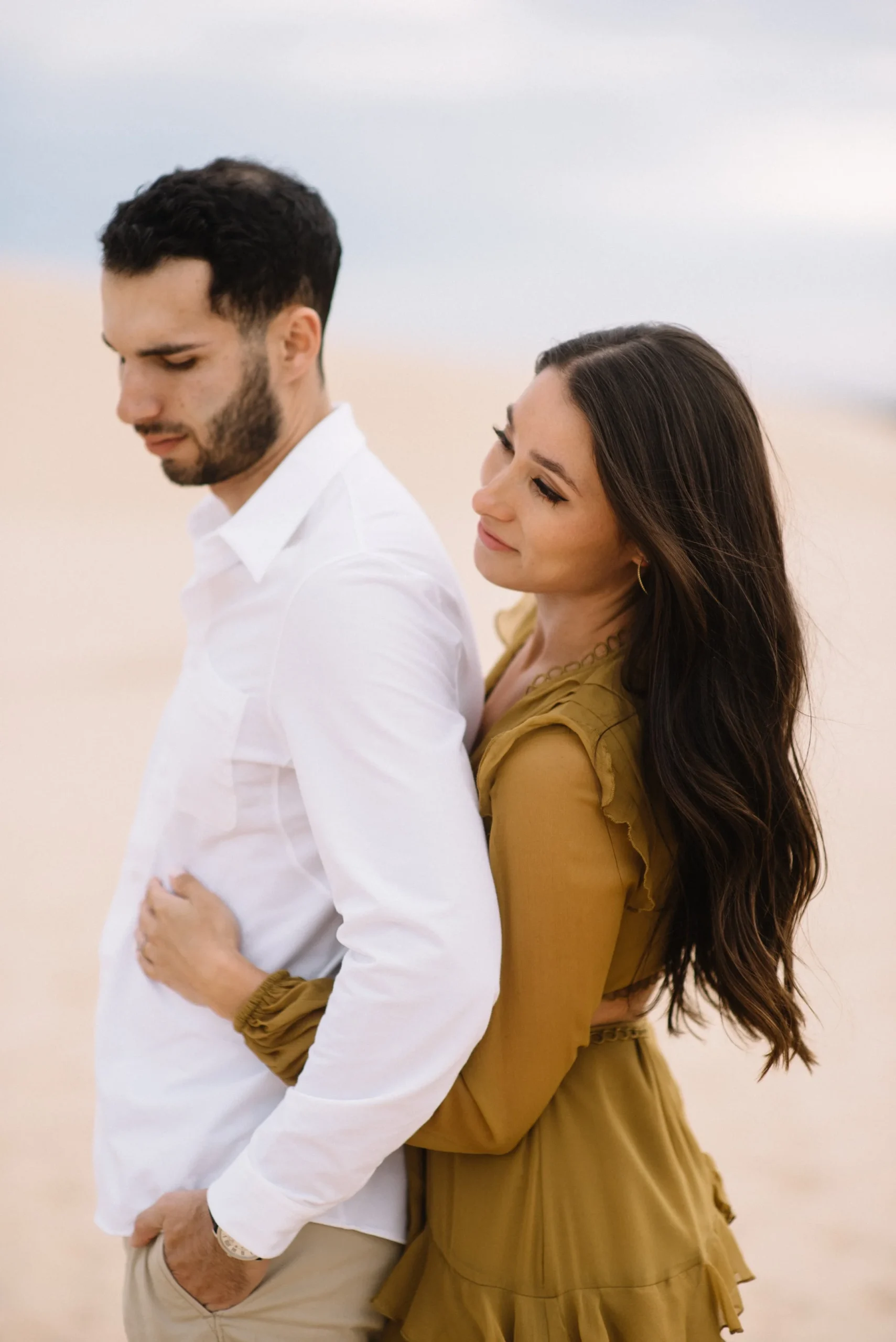 Danielle and Max were the first couple to book a 2023 wedding with me! At the time of booking, Danielle asked if they could do their engagement session at Silver Lake Sand Dunes. She loved a set of romantic dune photos she had seen on Pinterest taken in California, and wanted a similar look here in Michigan. Since they are getting married in Detroit, they wanted a totally different look for their engagement photos.