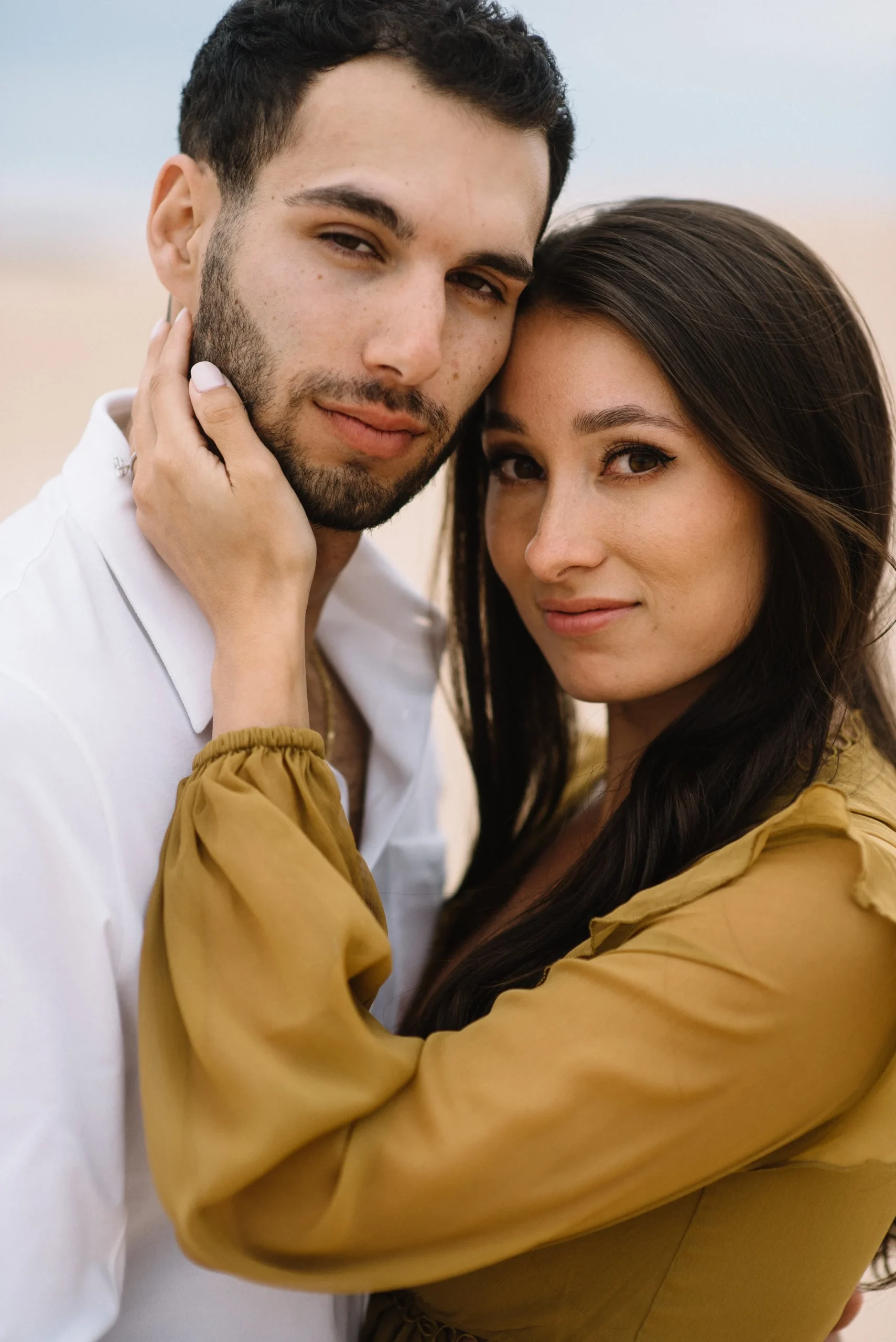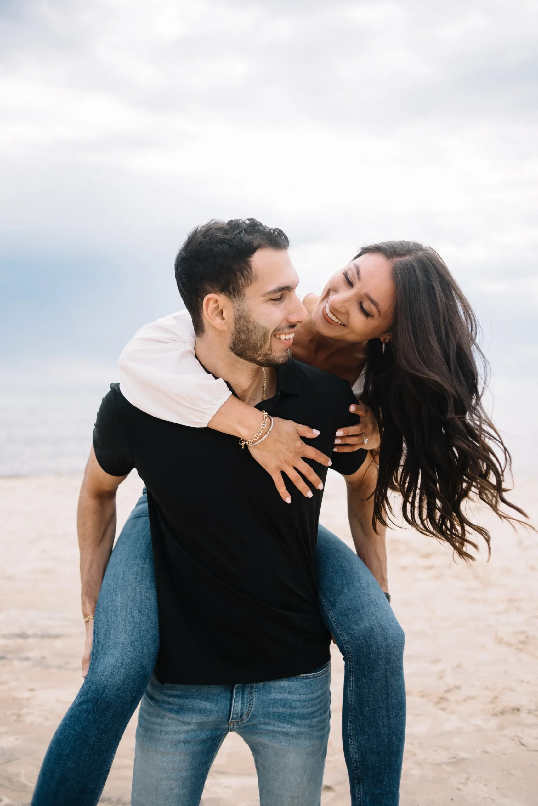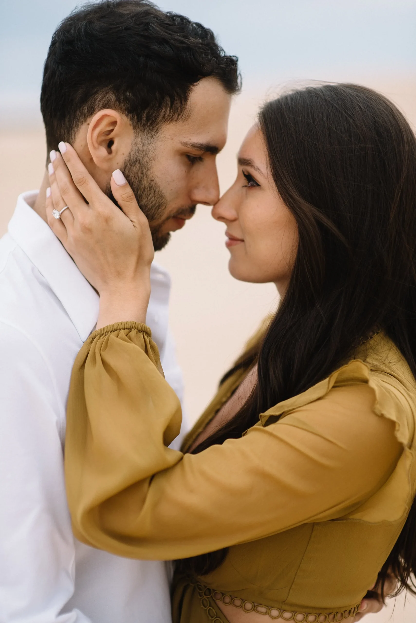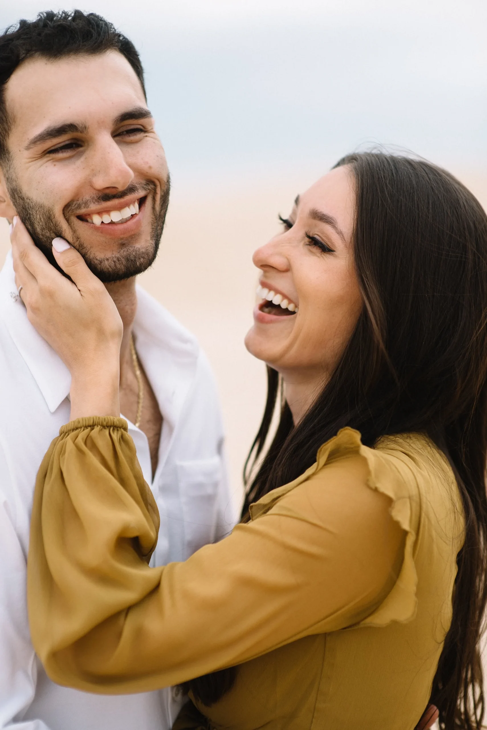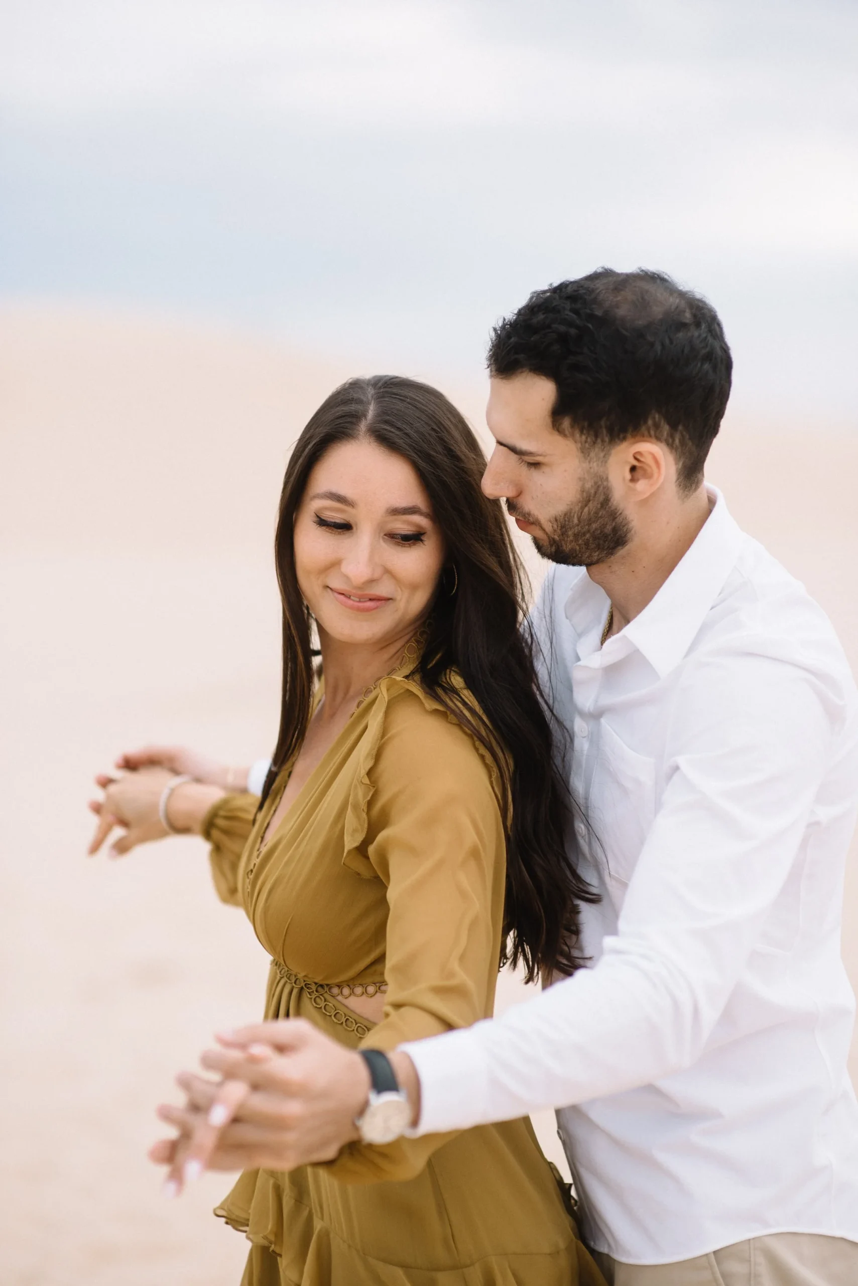 Danielle and Max were the first couple to book a 2023 wedding with me! At the time of booking, Danielle asked if they could do their engagement session at Silver Lake Sand Dunes. She loved a set of romantic dune photos she had seen on Pinterest taken in California, and wanted a similar look here in Michigan. Since they are getting married in Detroit, they wanted a totally different look for their engagement photos.