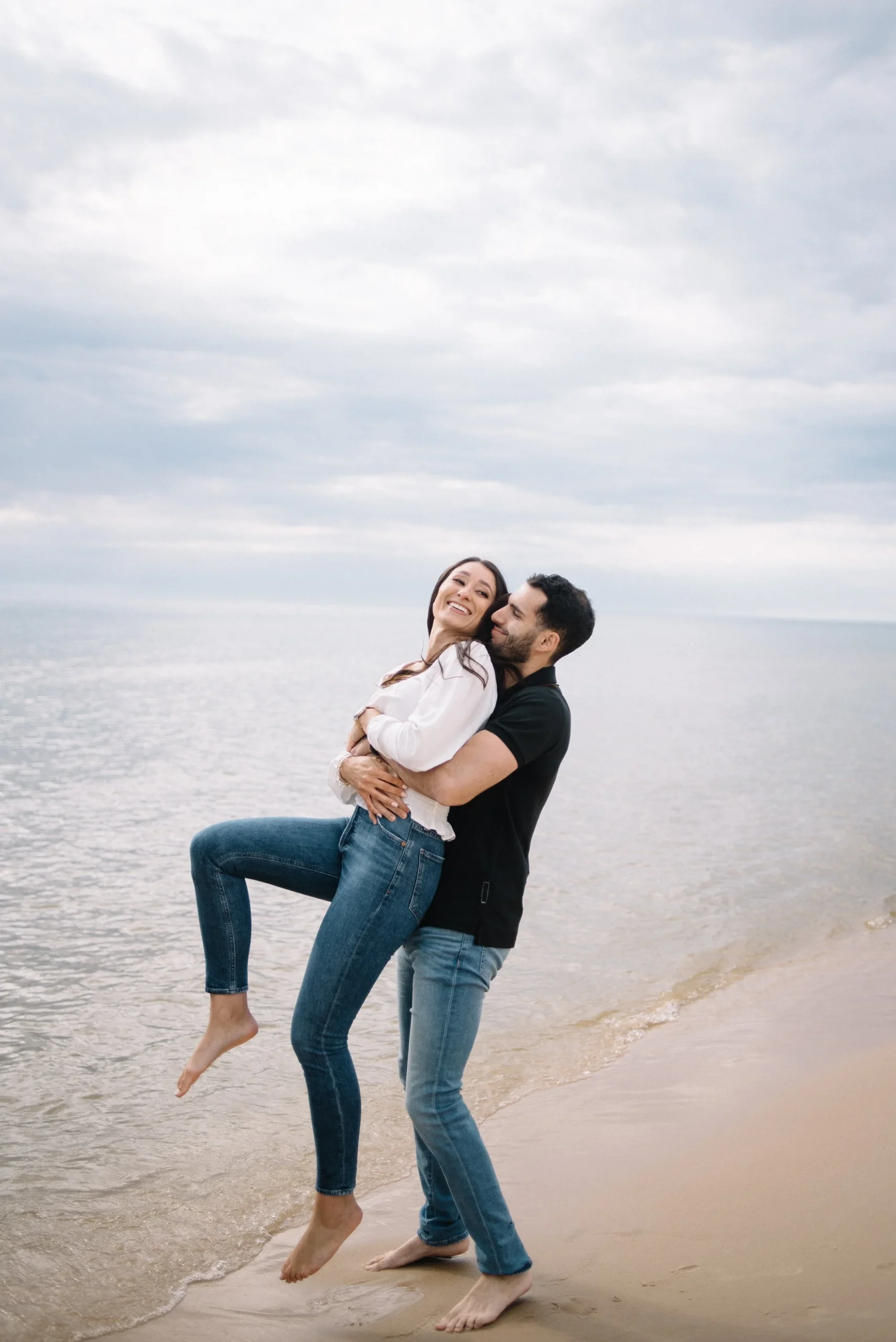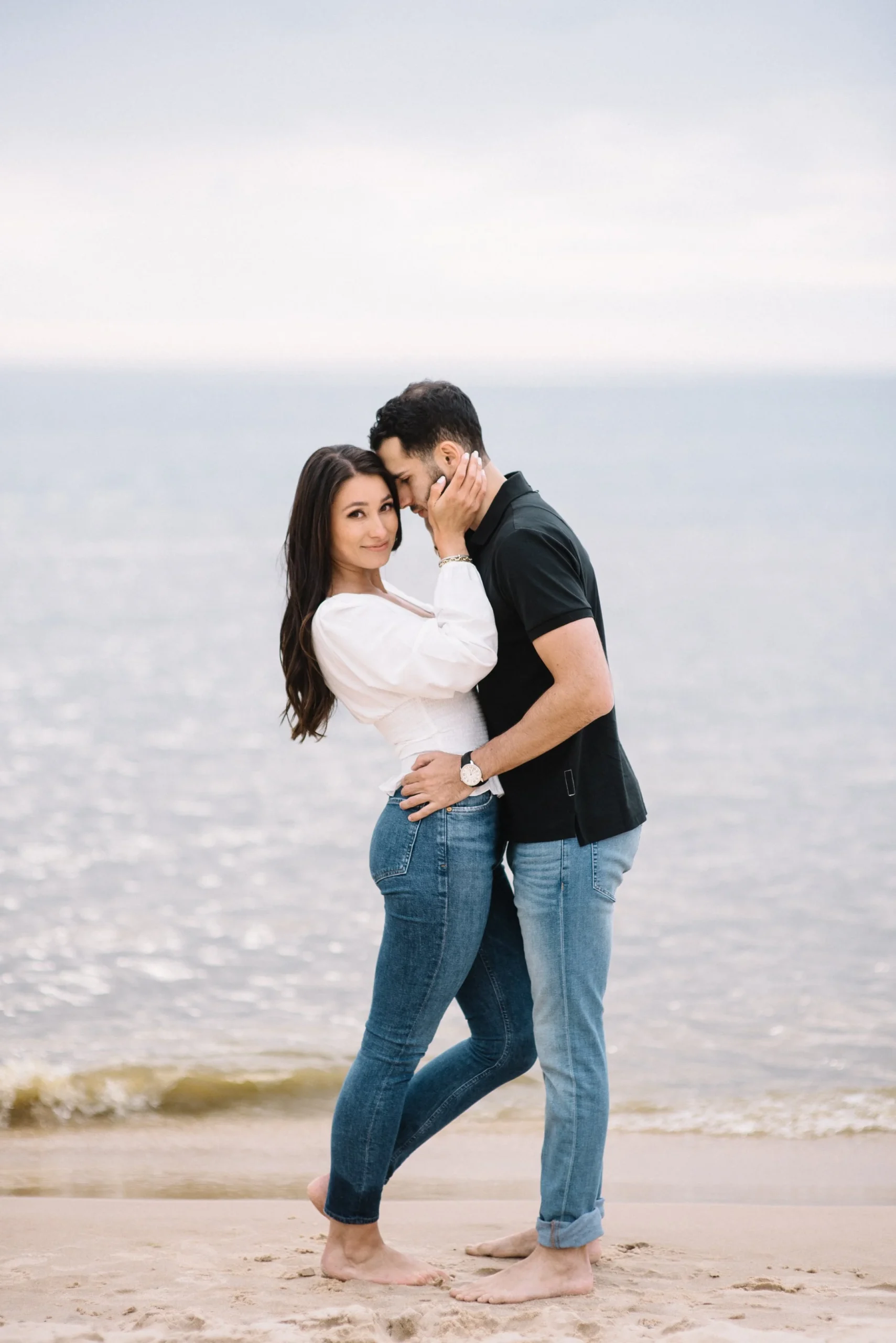 On the day of the session, we arrived at the beach and it was raining! Thankfully it stopped, and the good thing about going to the beach on a rainy day, is that it’s empty! We had nearly the whole place to ourselves! It was also cooler, so when we hiked the dunes (even though I almost died because it was so steep), we didn’t really sweat- which of course you don’t want to be sweating in photos! I absolutely love the results we got- the post-rain light and clouds were so beautiful. And honestly, you can’t beat sandy Michigan beaches…the sand is so clean and the water so clear. Here are a few of my favorites from their session!