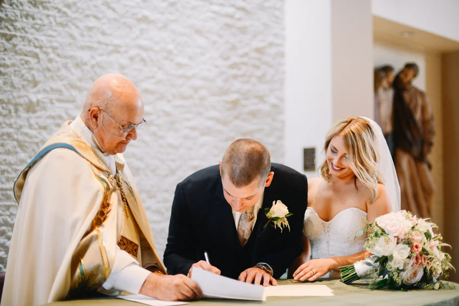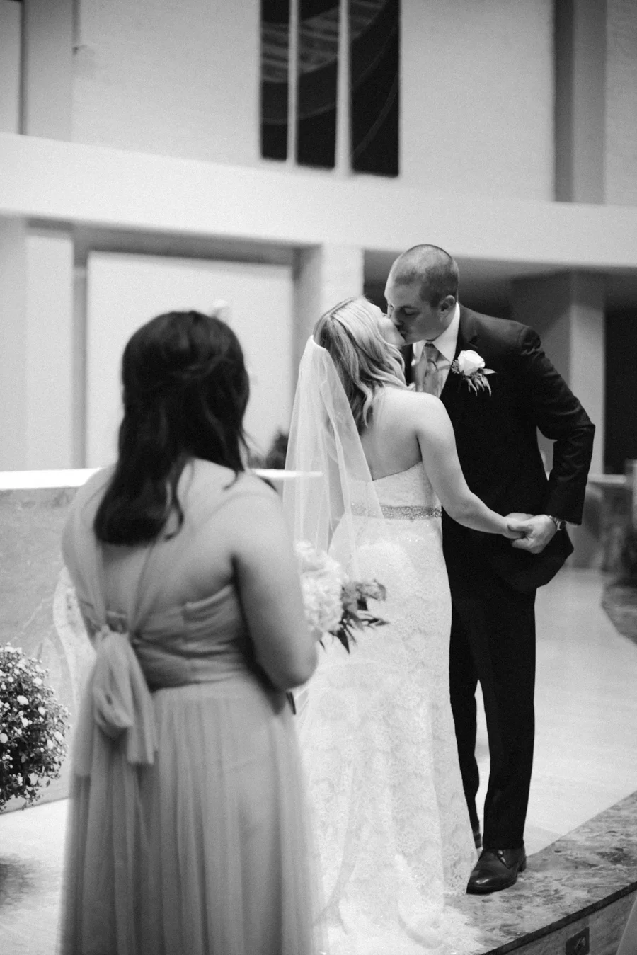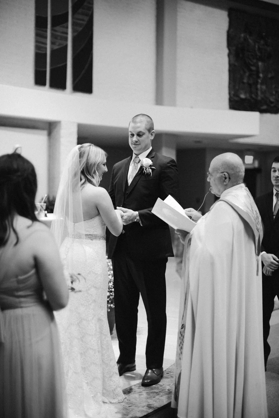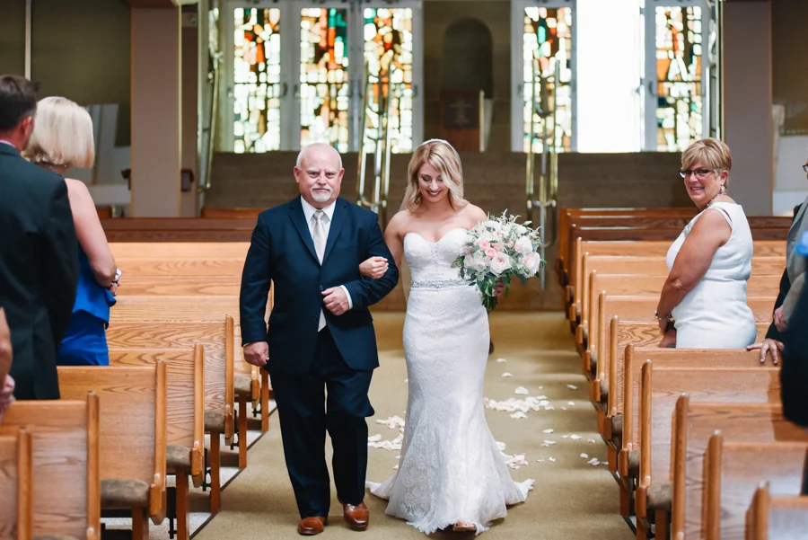Eberly + Taylor planned the most stress free wedding day! They did a first look and the majority of their portraits prior to the ceremony, and then had an hour gap in between the ceremony and reception which gave everyone a bit of time to relax before finishing the portraits during cocktail hour. Nothing felt rushed and Eberly + Taylor seemed so relaxed! For those couples seeking a stress free wedding day, doing a first look can really help relieve some of those time constraints that make everything feel so rushed. And, even though they did a first look and saw each other prior to the ceremony, both Taylor and Eberly were teary eyed and emotional during Eberly’s walk down the aisle at the church. First looks don’t seem to make that moment any less emotional or less special (at least from a photographer’s perspective when capturing these moments!).