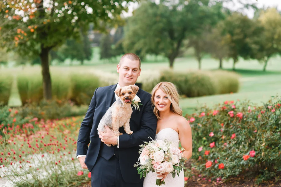 Eberly and Taylor were married at the Great Oaks Country Club in Rochester, MI. Eberly’s hair and makeup was done by Mie Salon in Rochester, and the floral and event design were by Floral Designs by Lori.