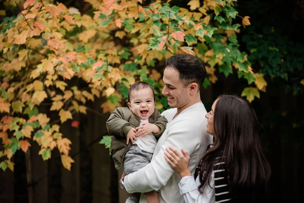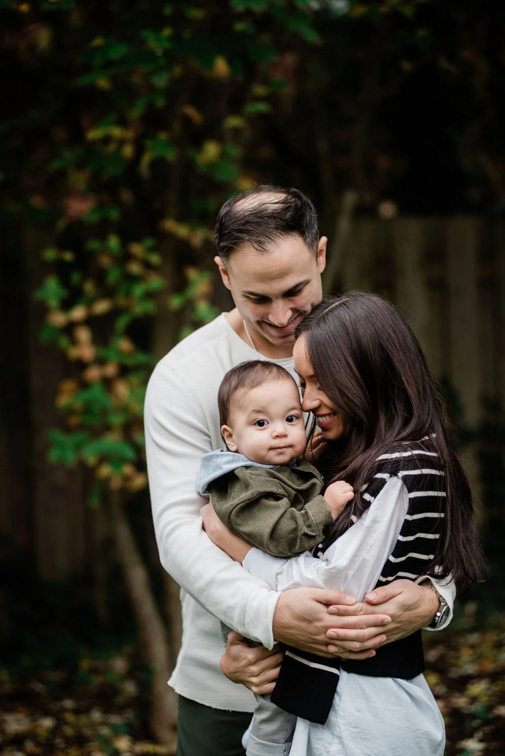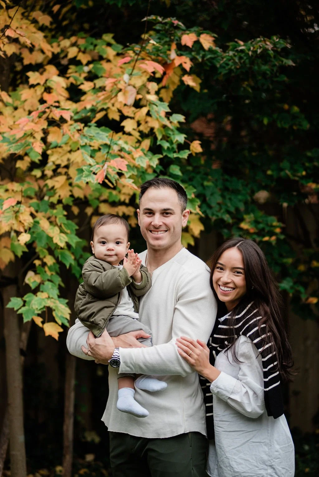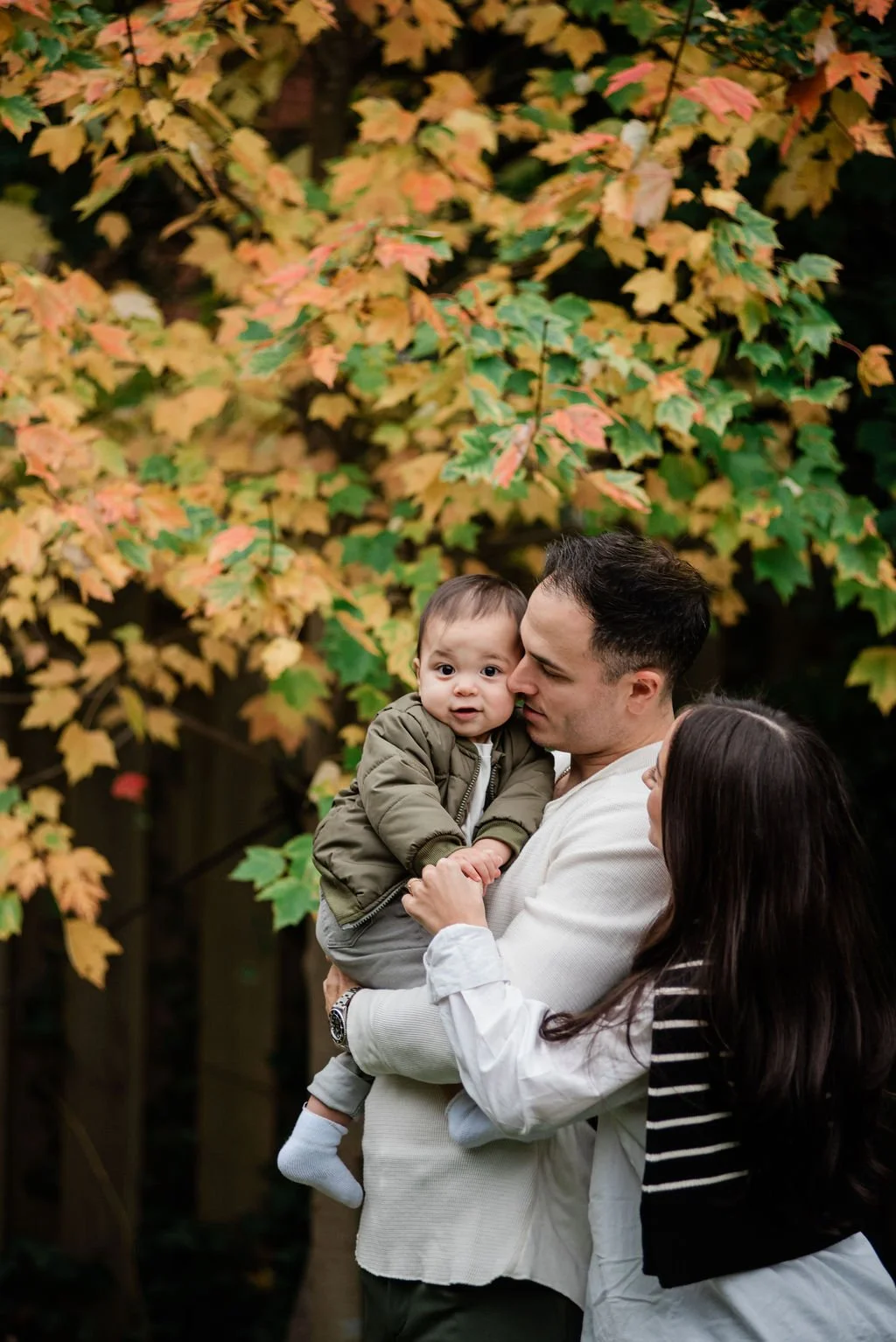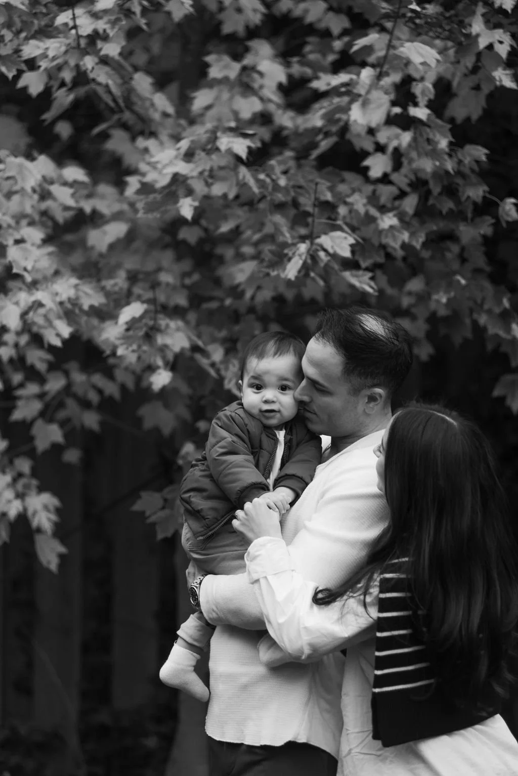 So many wonderful family sessions to share from this fall! One of my favorites was this one. I have loved watching this family grow from engagement, to wedding, to newborn, and now first year! The day of the session, the weather was not great- it was chilly and rainy. So, we opted to do them at the family home, and stepped out for a few foliage photos in the backyard in between rain sprinkles. Baby D definitely was happier inside, and so we did several inside next to the large windows for some natural light. Here are some of my favorites~