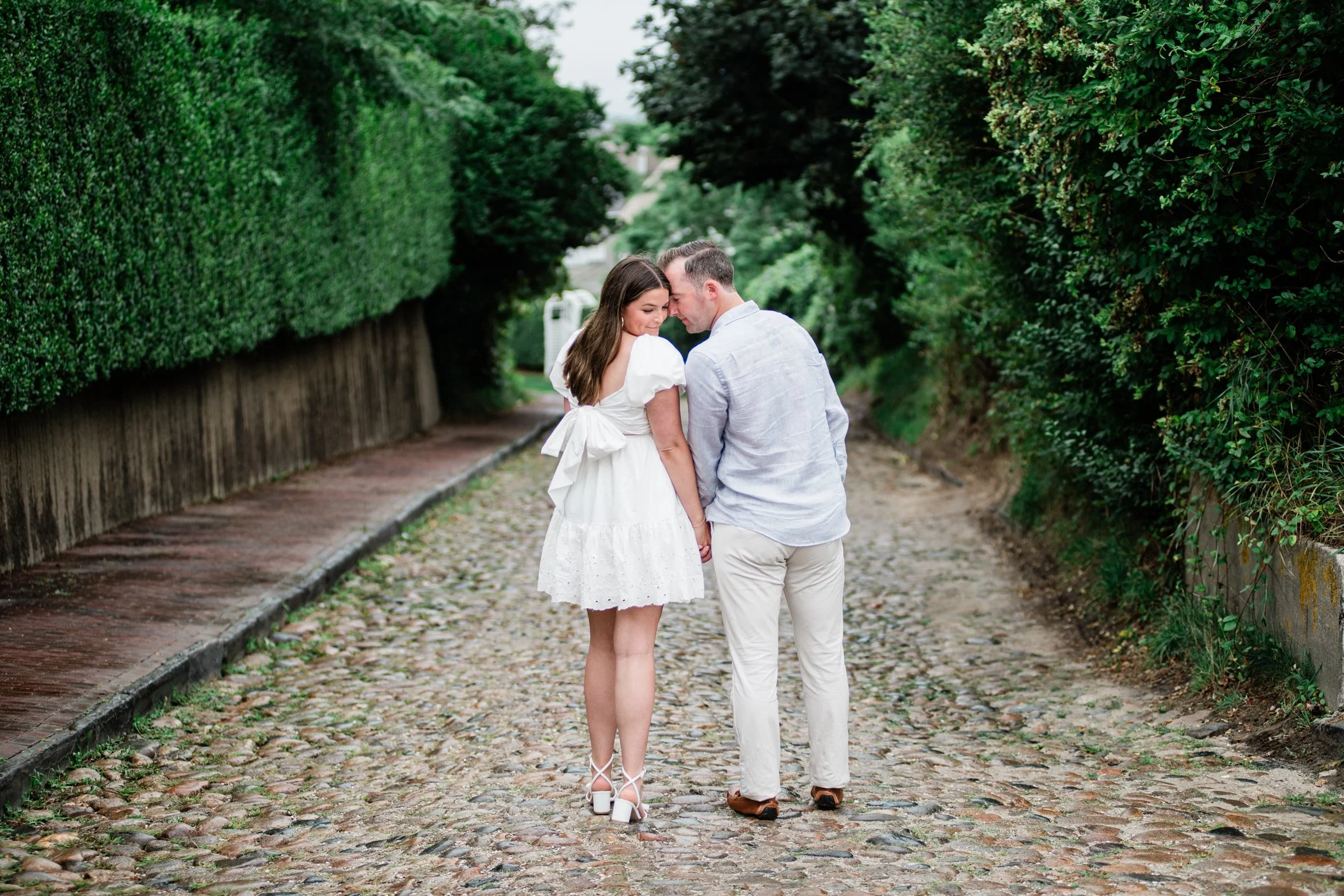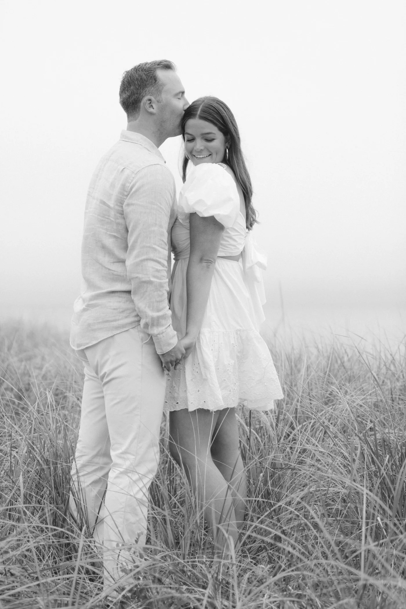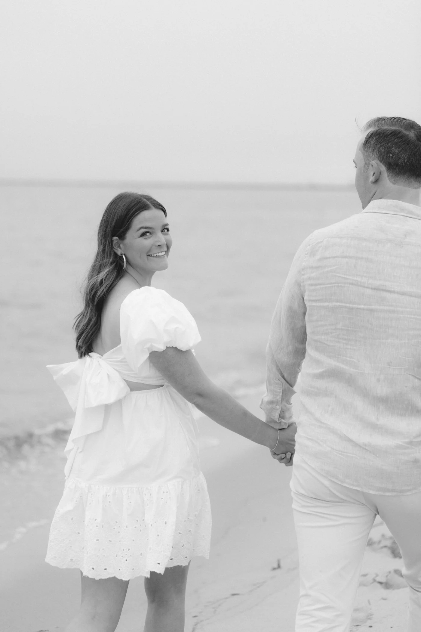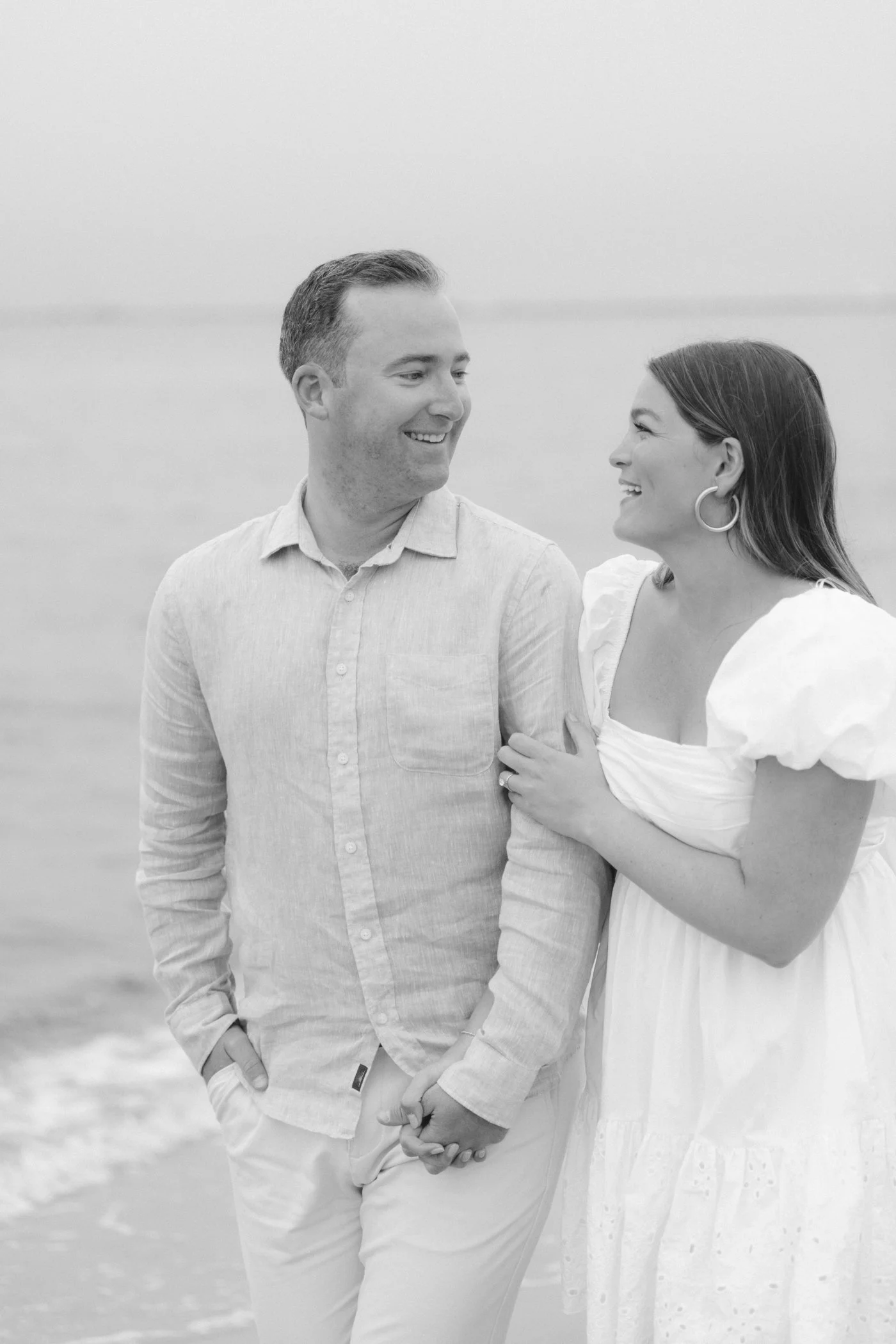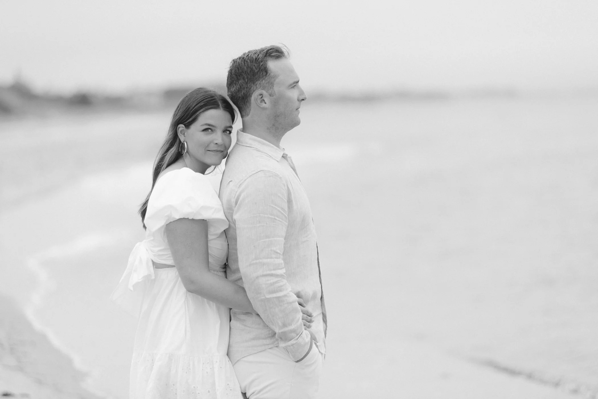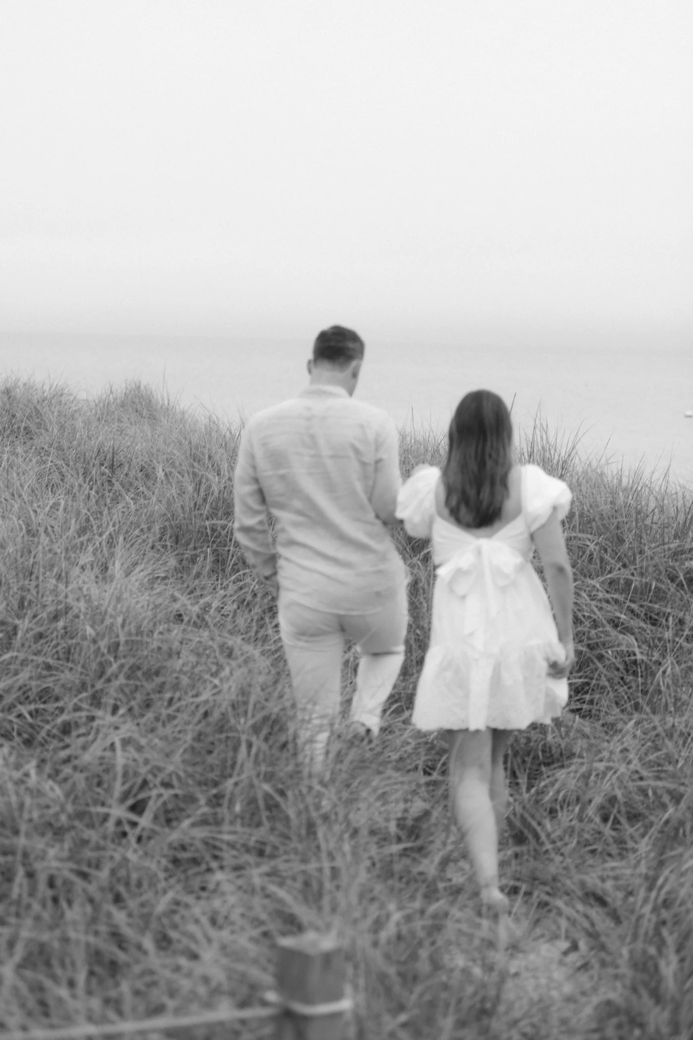 When I first chatted with Grace, one of the first things we talked about was the fact that I worked on both the East Coast and in Michigan. While she and Bo are going to get married in Grand Rapids summer of 2024, she desperately wanted engagement photos on Nantucket, where she and Bo summer every year and where Bo’s grandparents have a home. Luckily, our dates aligned and the week they were on Nantucket happened to be the week I was in Newport for a wedding, so I hopped the ferry (with the kids and nanny in tow!) and we made a day trip of it! We went to the Whaling Museum in the morning (highly recommend!), I photographed Grace and Bo in the afternoon while the nanny hung with the kids, and then we went shopping and had dinner before taking the ferry back to our hotel on the Cape. Even though it was raining, we still had an amazing day, and I LOVE how the photos turned out! A light drizzle isn’t always bad at the beach…it usually means its empty so no beach goers in the background! And no squinting because its overcast 🙂 . Here are a few of my favorites from their session!