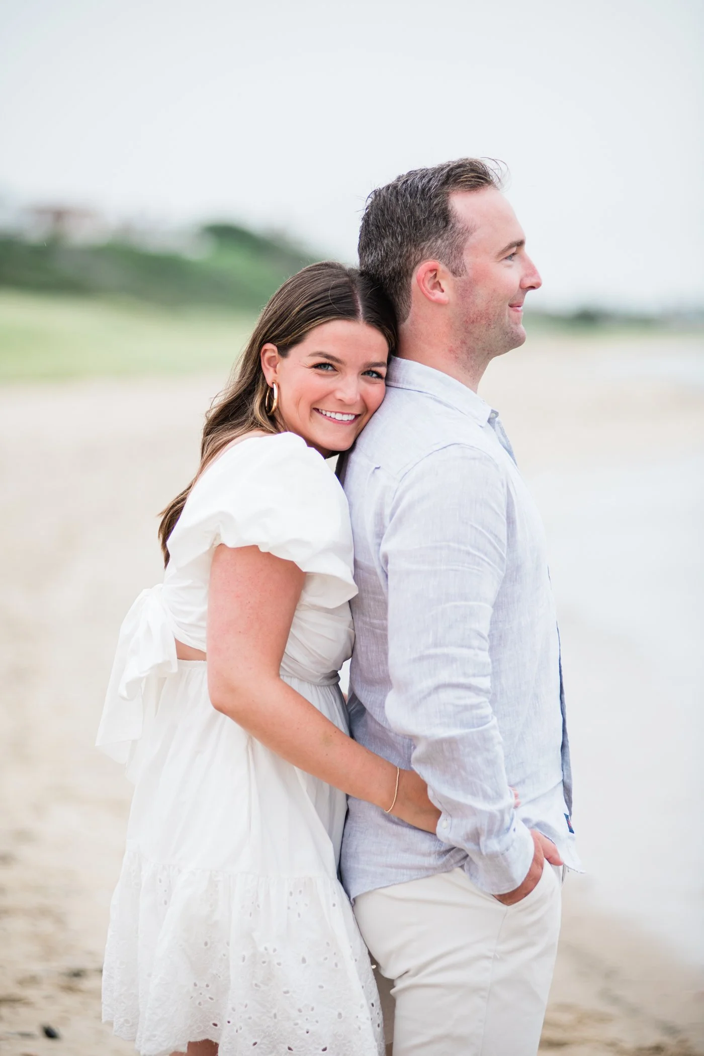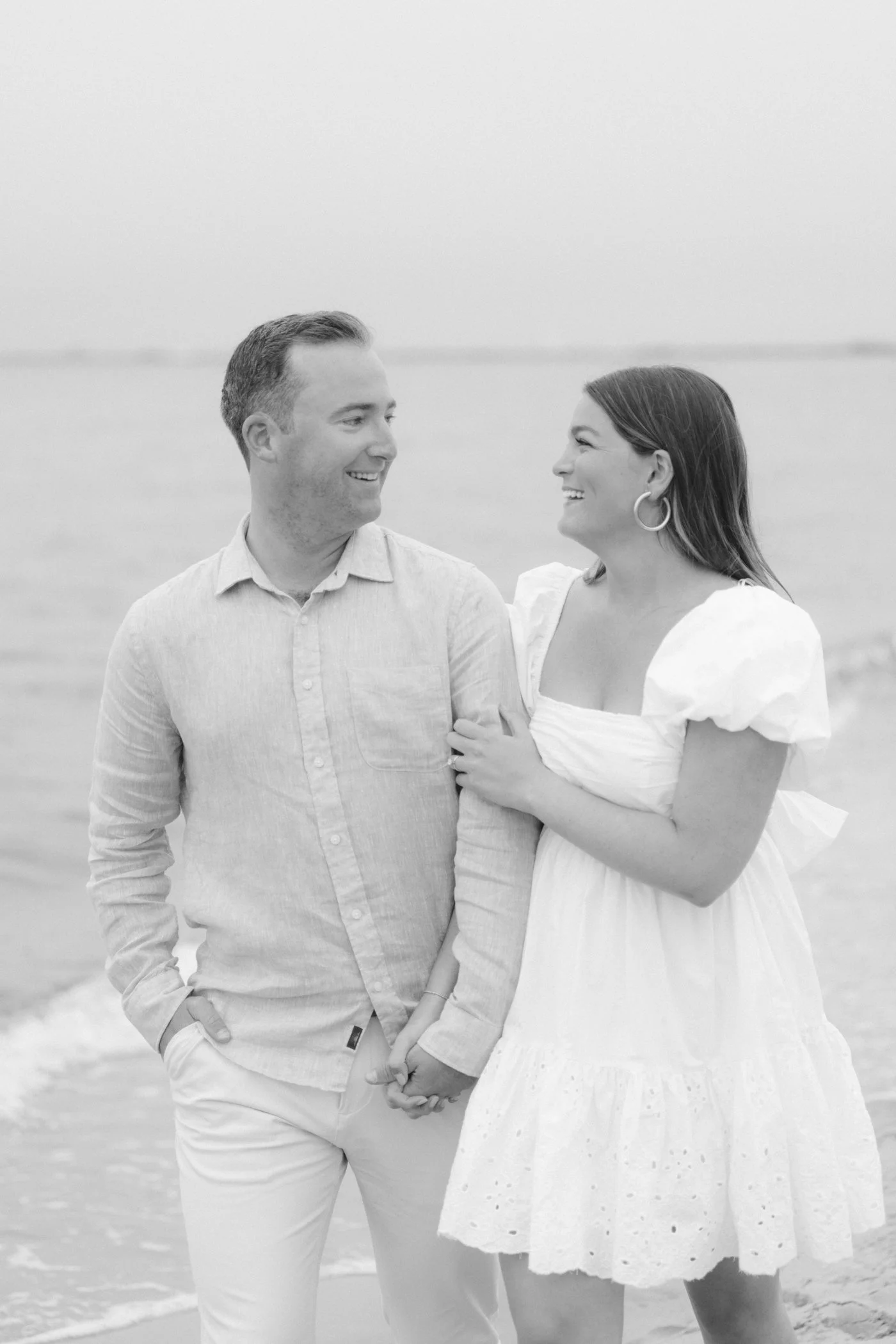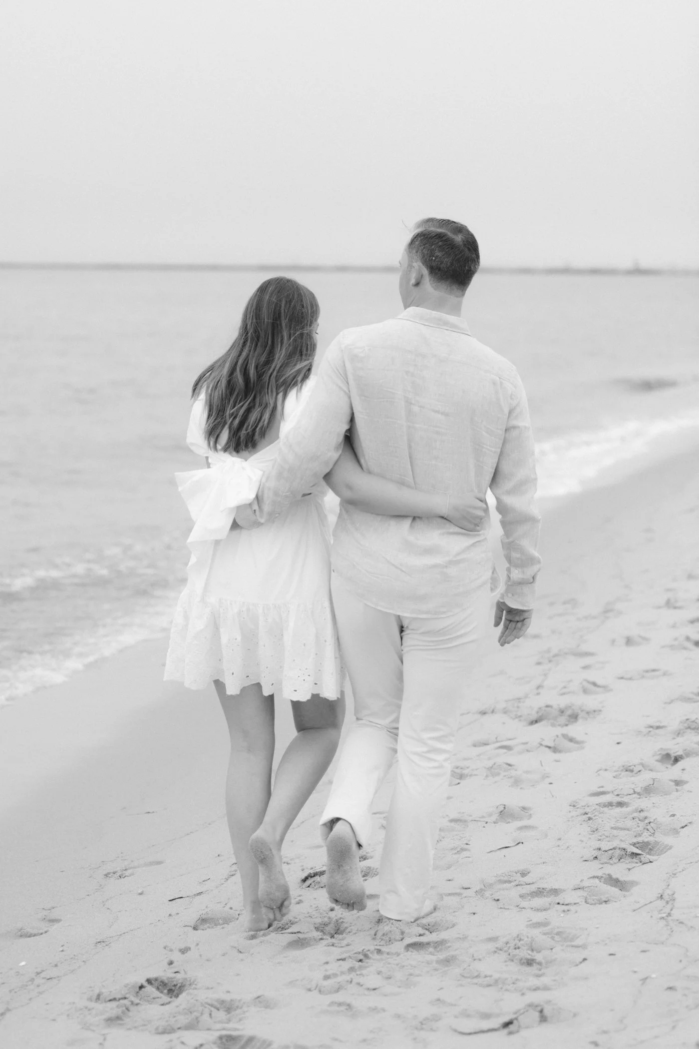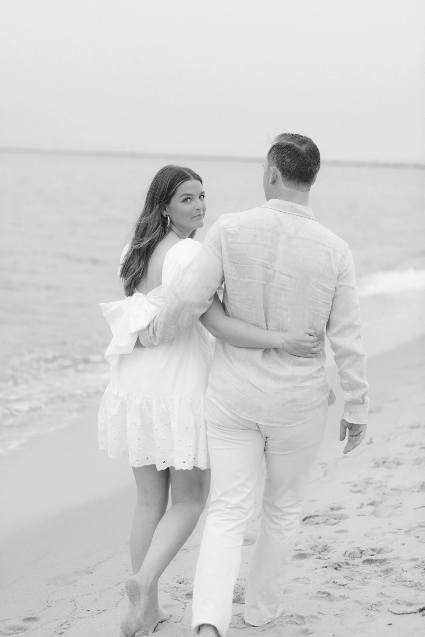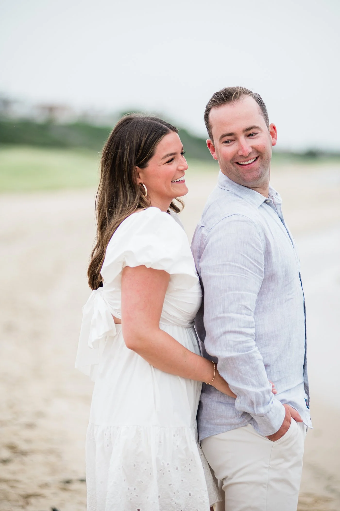 When I first chatted with Grace, one of the first things we talked about was the fact that I worked on both the East Coast and in Michigan. While she and Bo are going to get married in Grand Rapids summer of 2024, she desperately wanted engagement photos on Nantucket, where she and Bo summer every year and where Bo’s grandparents have a home. Luckily, our dates aligned and the week they were on Nantucket happened to be the week I was in Newport for a wedding, so I hopped the ferry (with the kids and nanny in tow!) and we made a day trip of it! We went to the Whaling Museum in the morning (highly recommend!), I photographed Grace and Bo in the afternoon while the nanny hung with the kids, and then we went shopping and had dinner before taking the ferry back to our hotel on the Cape. Even though it was raining, we still had an amazing day, and I LOVE how the photos turned out! A light drizzle isn’t always bad at the beach…it usually means its empty so no beach goers in the background! And no squinting because its overcast 🙂 . Here are a few of my favorites from their session!