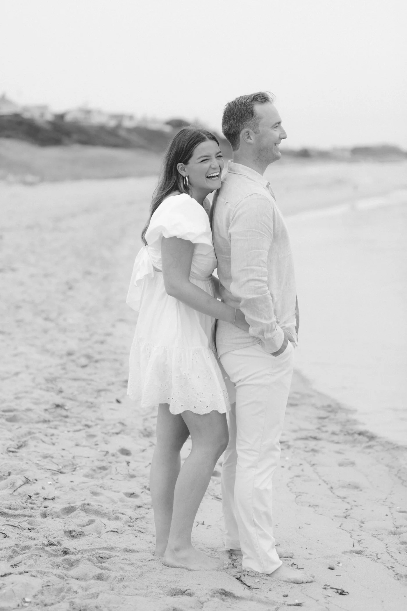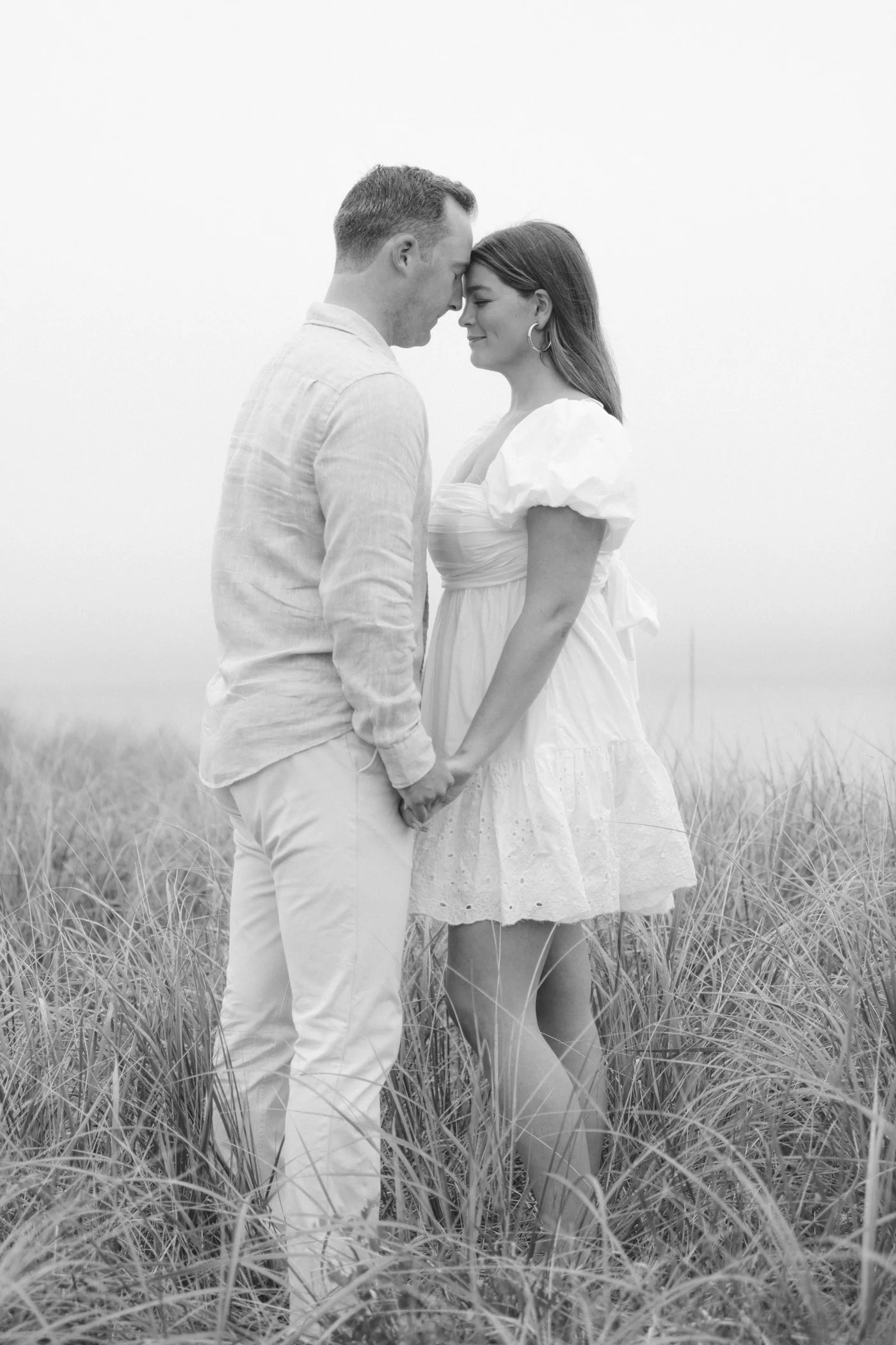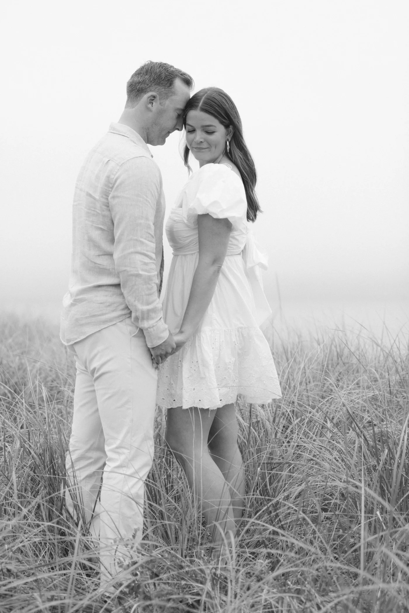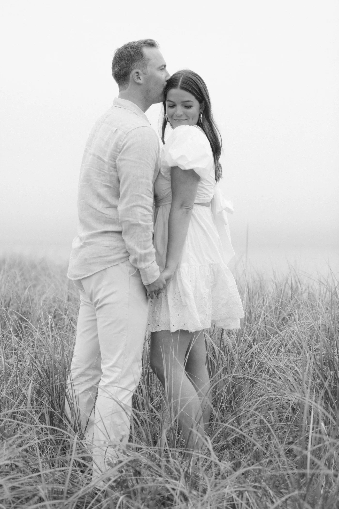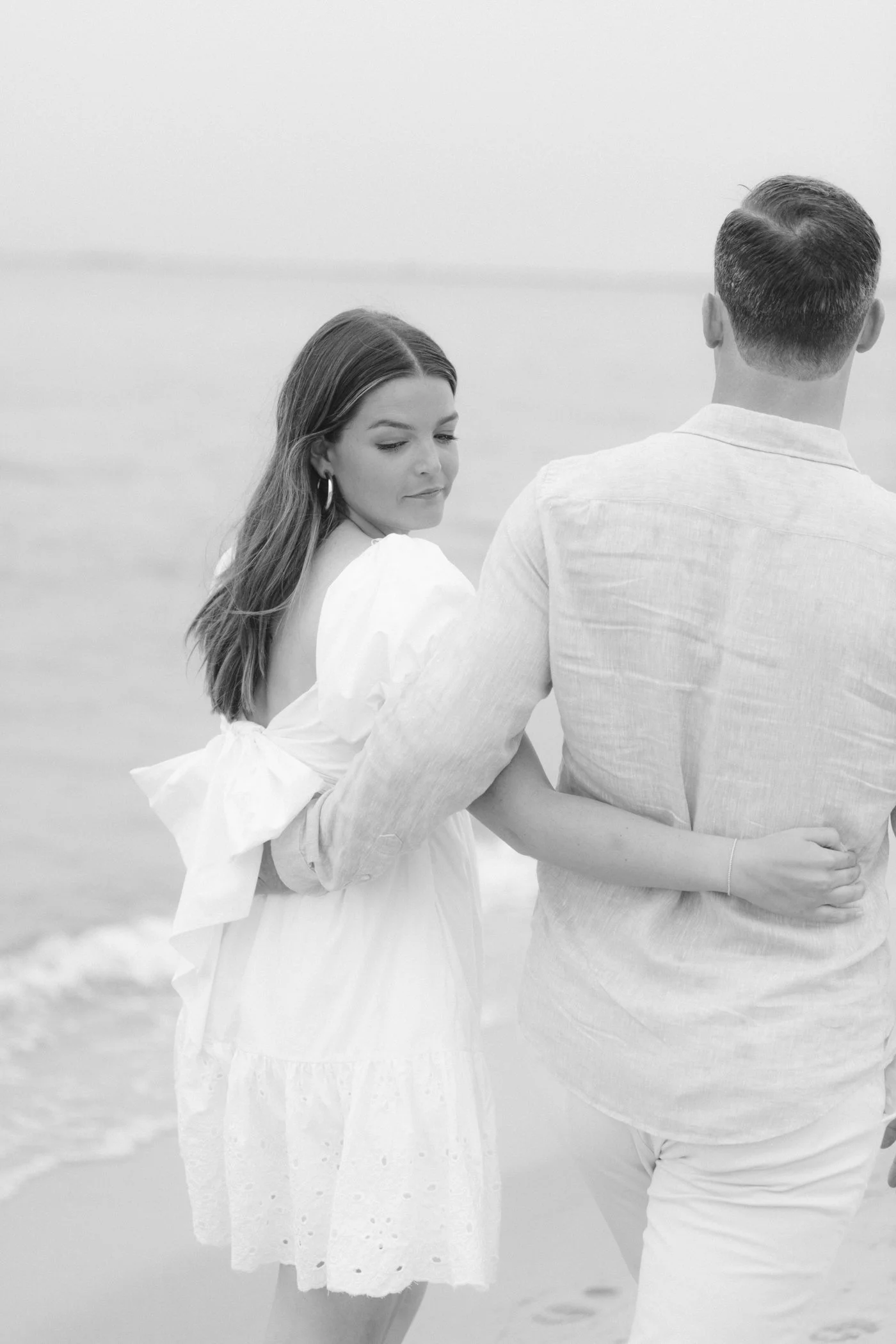 When I first chatted with Grace, one of the first things we talked about was the fact that I worked on both the East Coast and in Michigan. While she and Bo are going to get married in Grand Rapids summer of 2024, she desperately wanted engagement photos on Nantucket, where she and Bo summer every year and where Bo’s grandparents have a home. Luckily, our dates aligned and the week they were on Nantucket happened to be the week I was in Newport for a wedding, so I hopped the ferry (with the kids and nanny in tow!) and we made a day trip of it! We went to the Whaling Museum in the morning (highly recommend!), I photographed Grace and Bo in the afternoon while the nanny hung with the kids, and then we went shopping and had dinner before taking the ferry back to our hotel on the Cape. Even though it was raining, we still had an amazing day, and I LOVE how the photos turned out! A light drizzle isn’t always bad at the beach…it usually means its empty so no beach goers in the background! And no squinting because its overcast 🙂 . Here are a few of my favorites from their session!