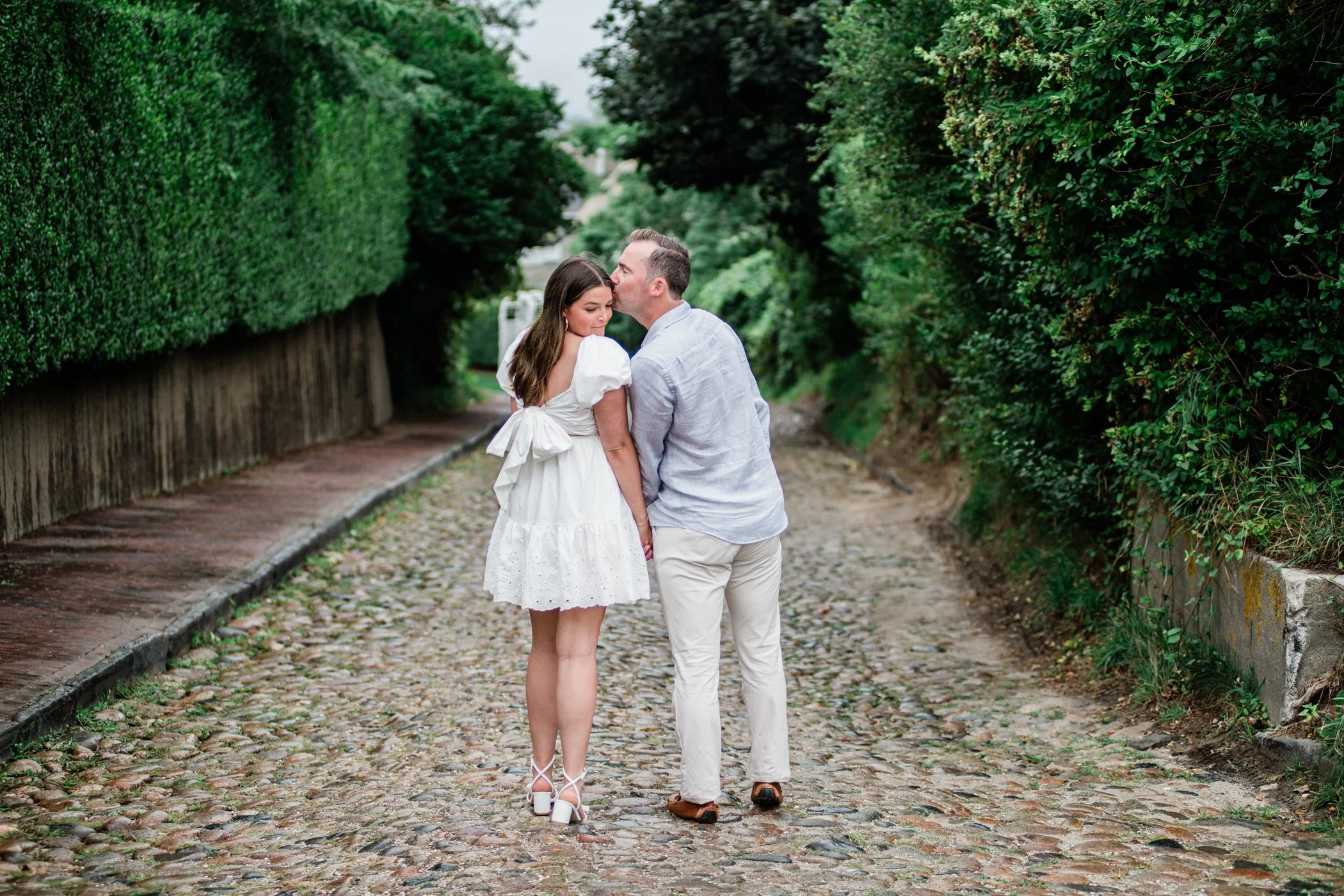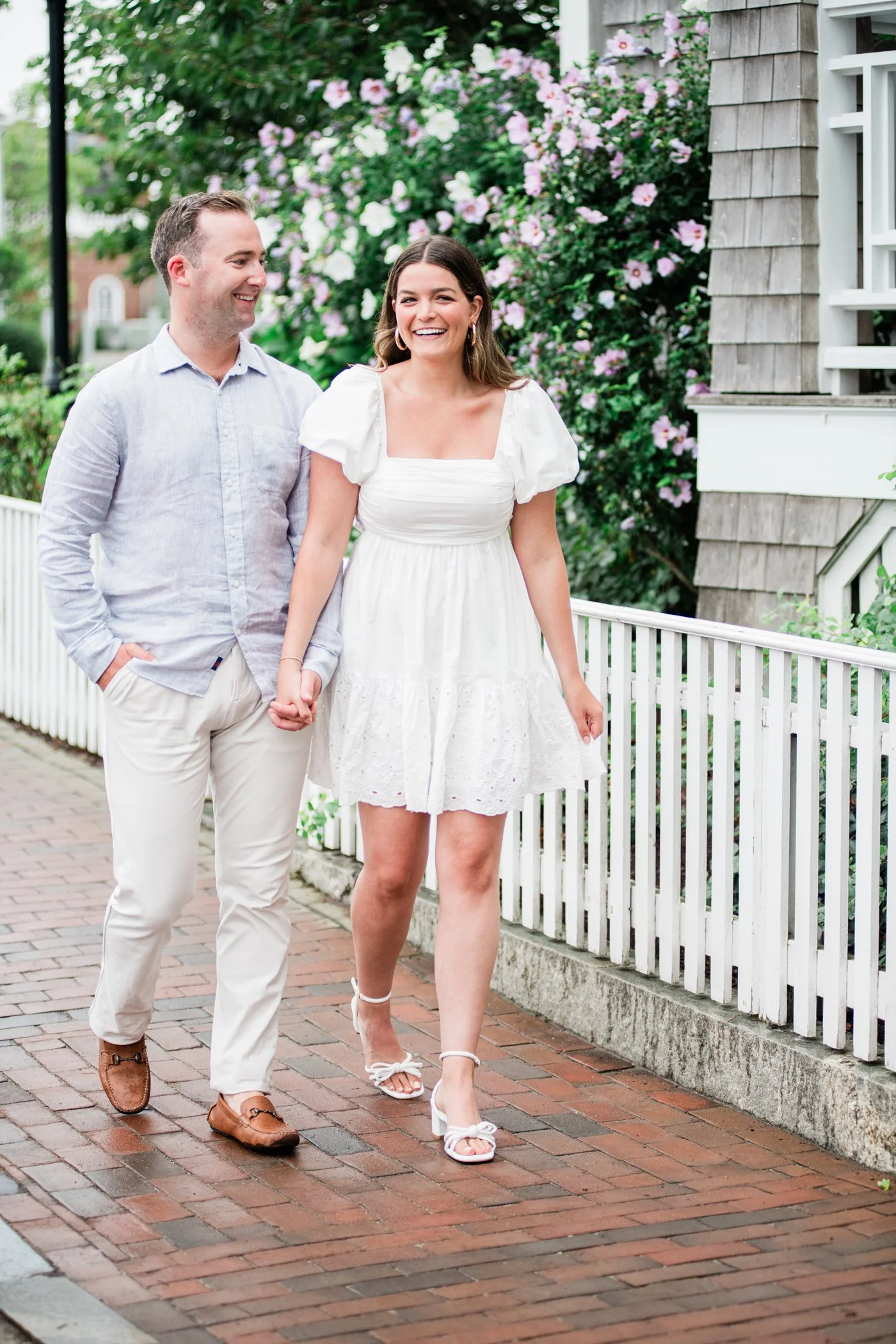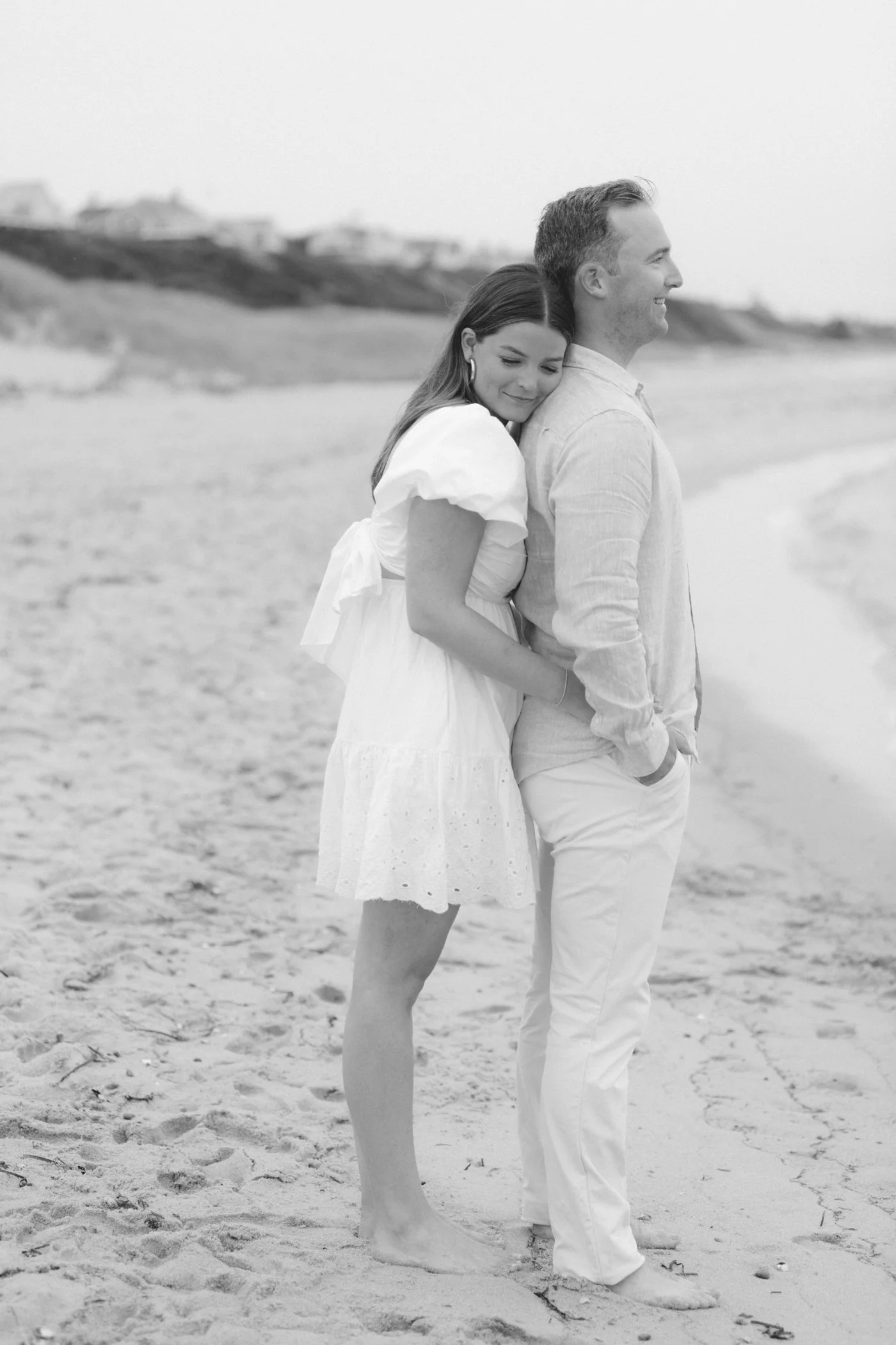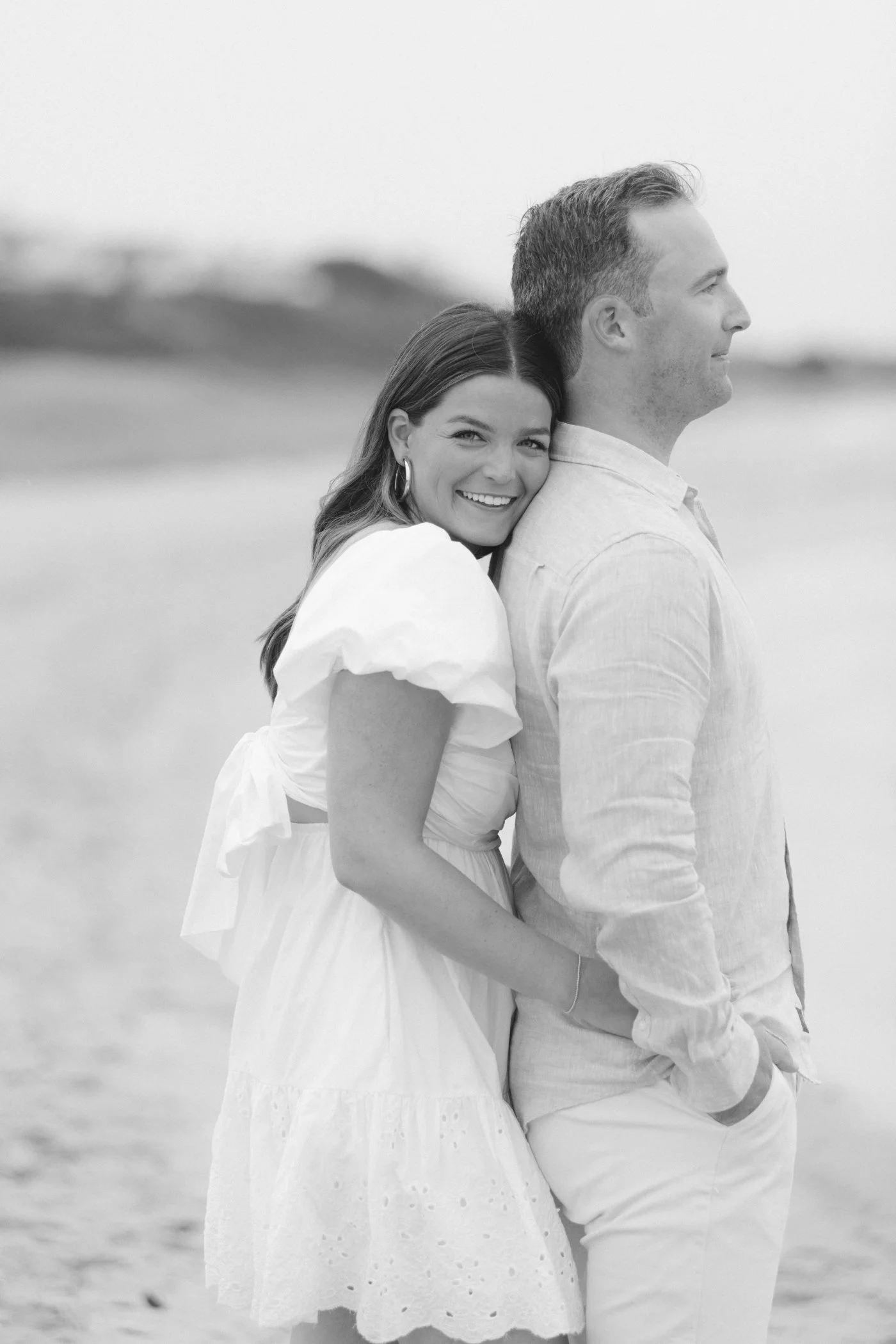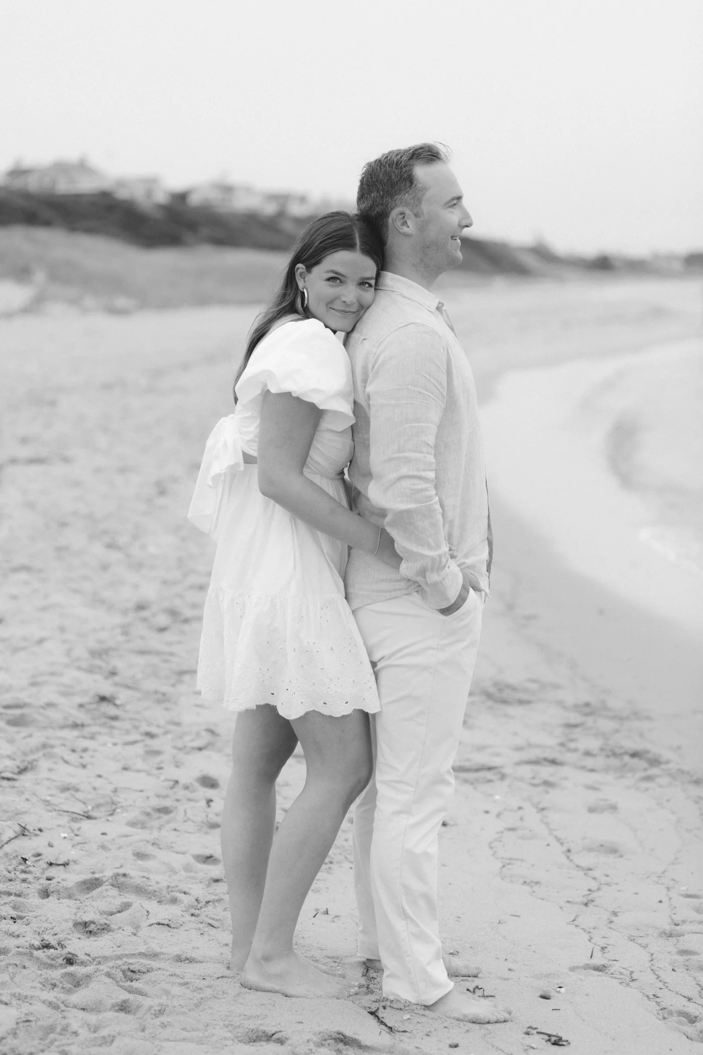 When I first chatted with Grace, one of the first things we talked about was the fact that I worked on both the East Coast and in Michigan. While she and Bo are going to get married in Grand Rapids summer of 2024, she desperately wanted engagement photos on Nantucket, where she and Bo summer every year and where Bo’s grandparents have a home. Luckily, our dates aligned and the week they were on Nantucket happened to be the week I was in Newport for a wedding, so I hopped the ferry (with the kids and nanny in tow!) and we made a day trip of it! We went to the Whaling Museum in the morning (highly recommend!), I photographed Grace and Bo in the afternoon while the nanny hung with the kids, and then we went shopping and had dinner before taking the ferry back to our hotel on the Cape. Even though it was raining, we still had an amazing day, and I LOVE how the photos turned out! A light drizzle isn’t always bad at the beach…it usually means its empty so no beach goers in the background! And no squinting because its overcast 🙂 . Here are a few of my favorites from their session!