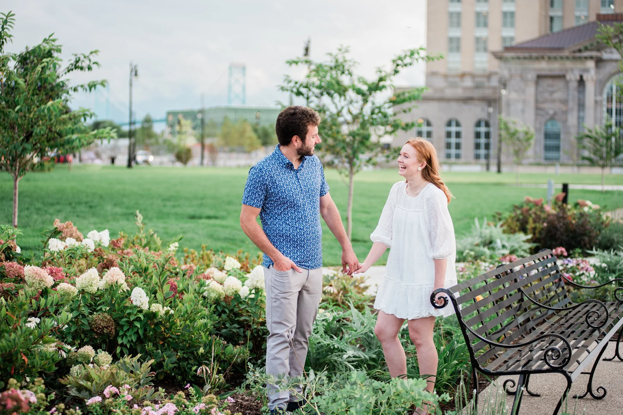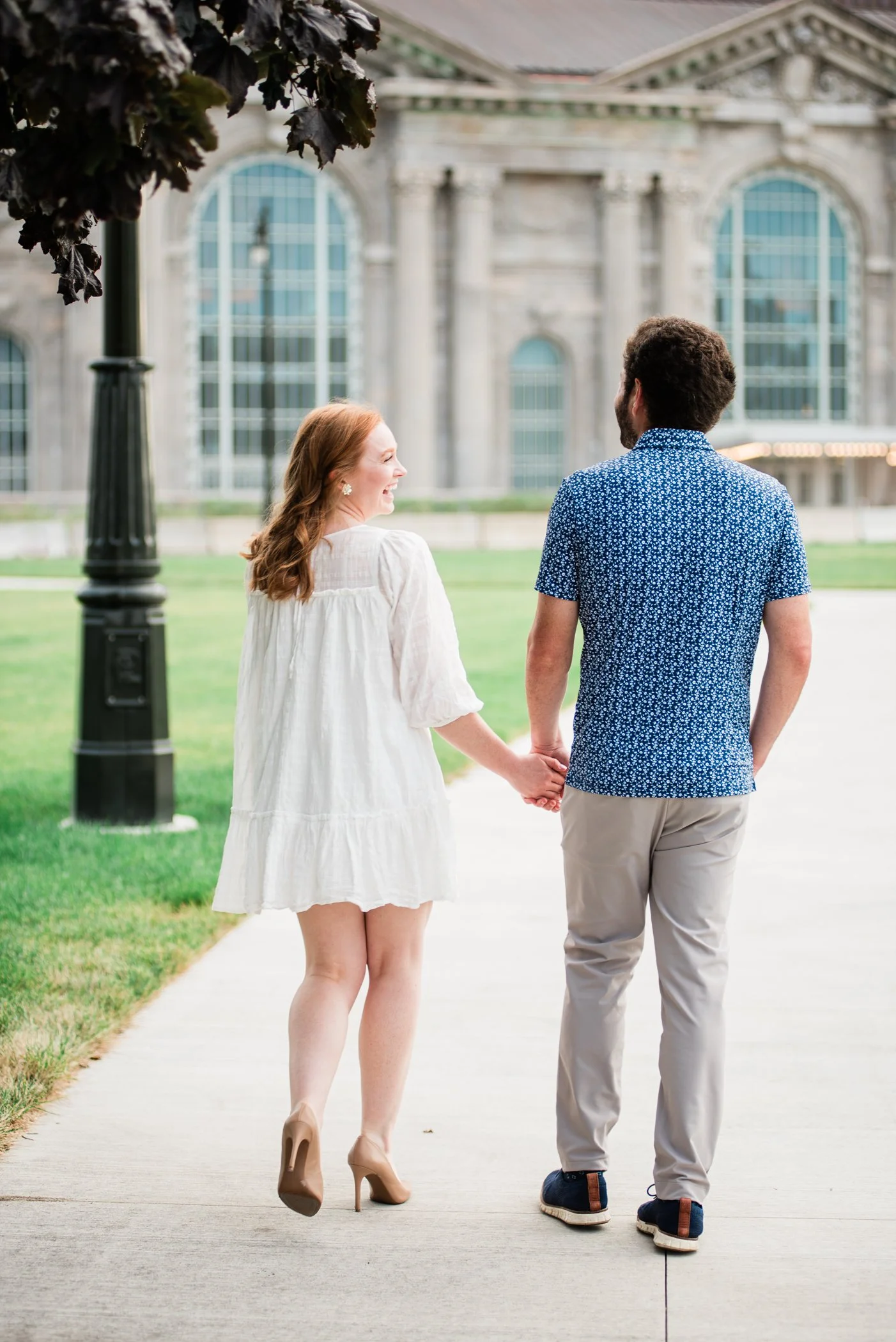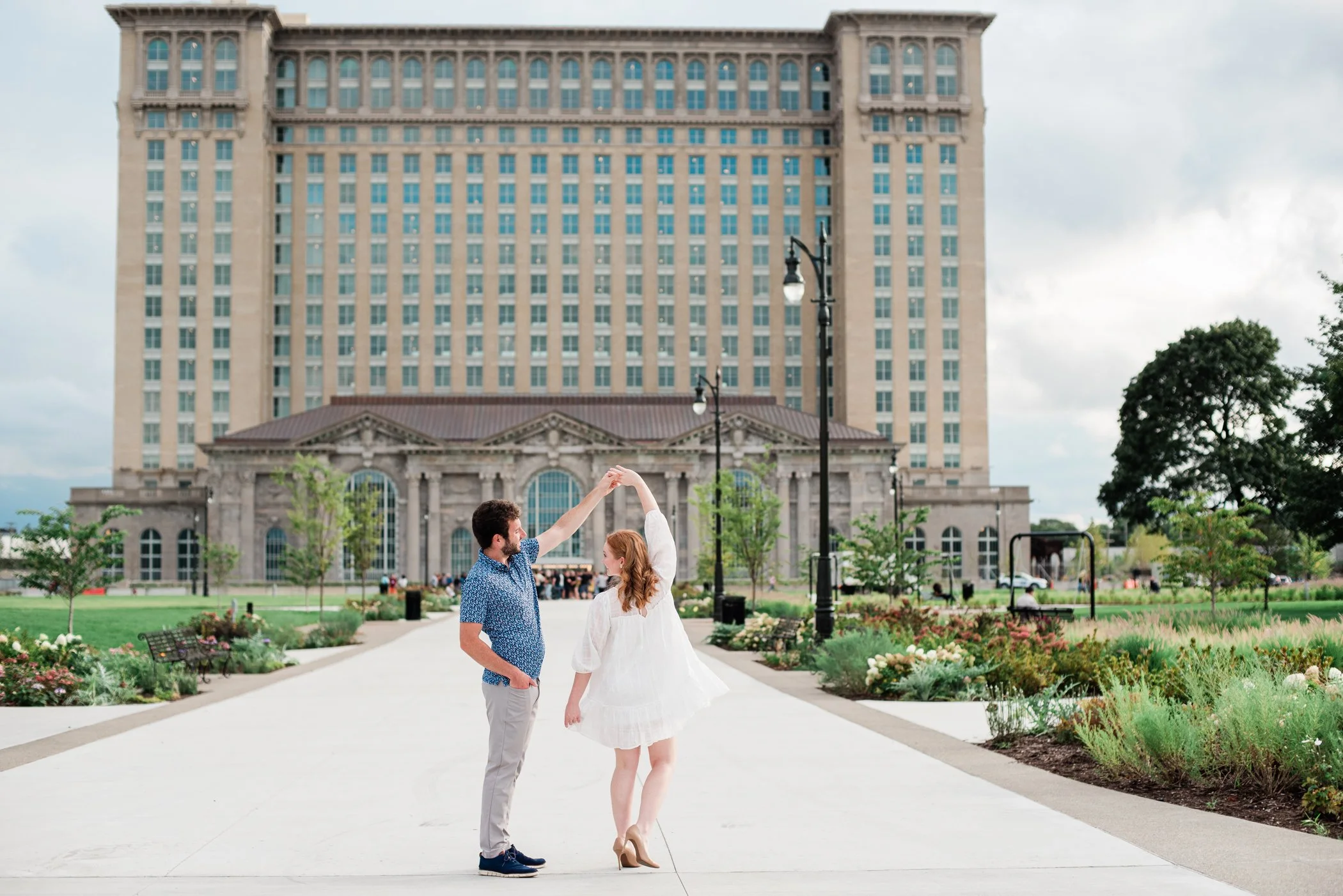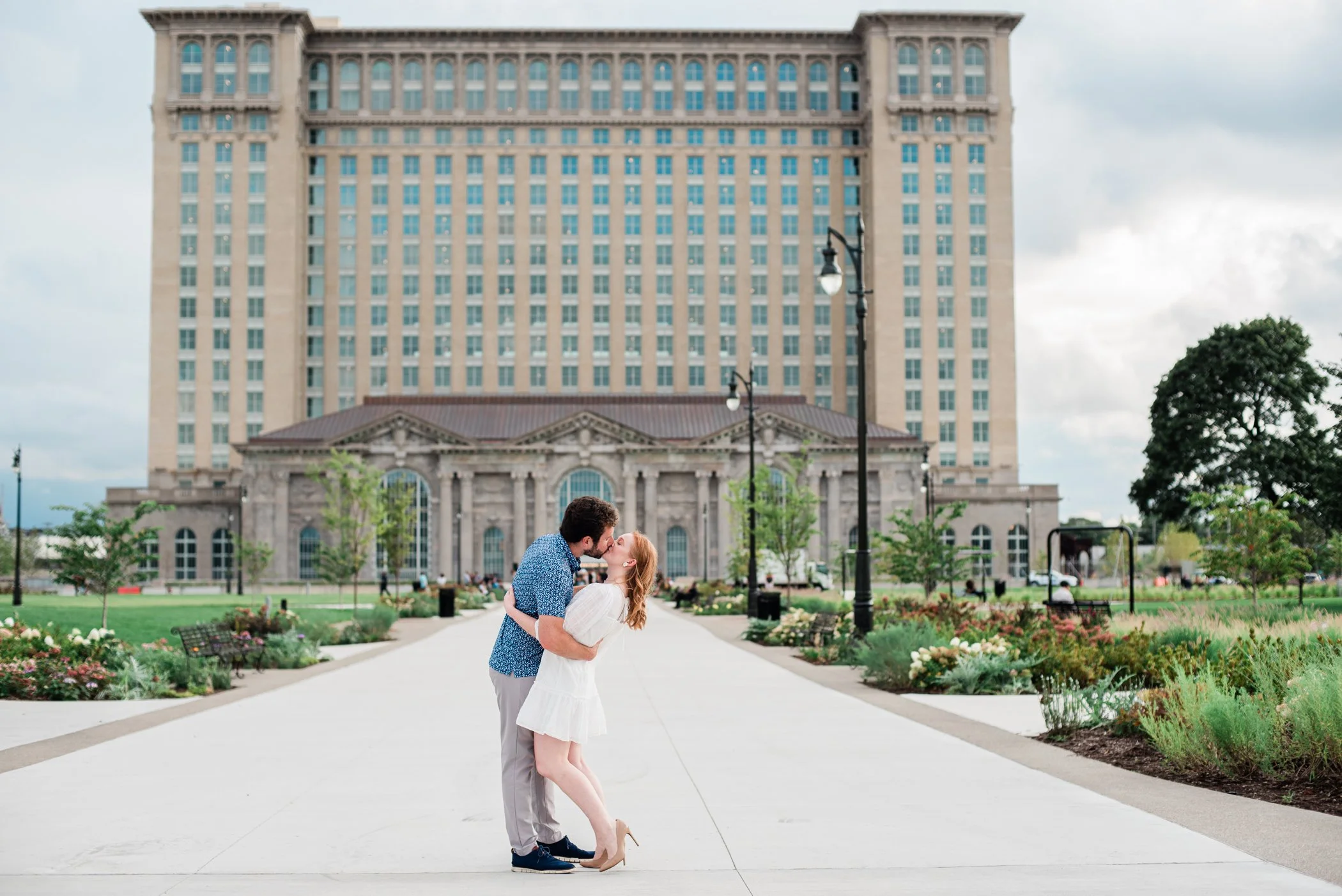 When Ashley and Jake asked to have their engagement session at the new Roosevelt Park, I was so excited! It had just re-opened a couple of weeks earlier, and its always so fun to shoot at new locations. Detroit locations like the DIA can become crowded, so its nice to have more options. They did such a nice job with Roosevelt Parkā¦.the old train station is such a landmark and then the landscaping with all of the hydrangeas was so pretty! Excited to shoot here again in the future!