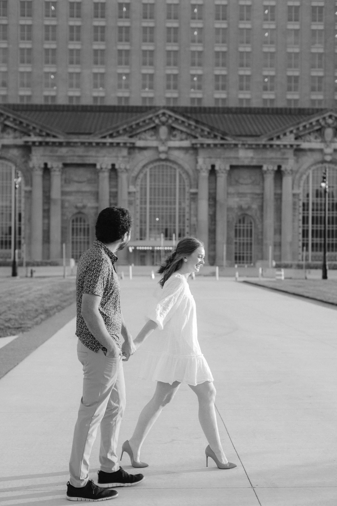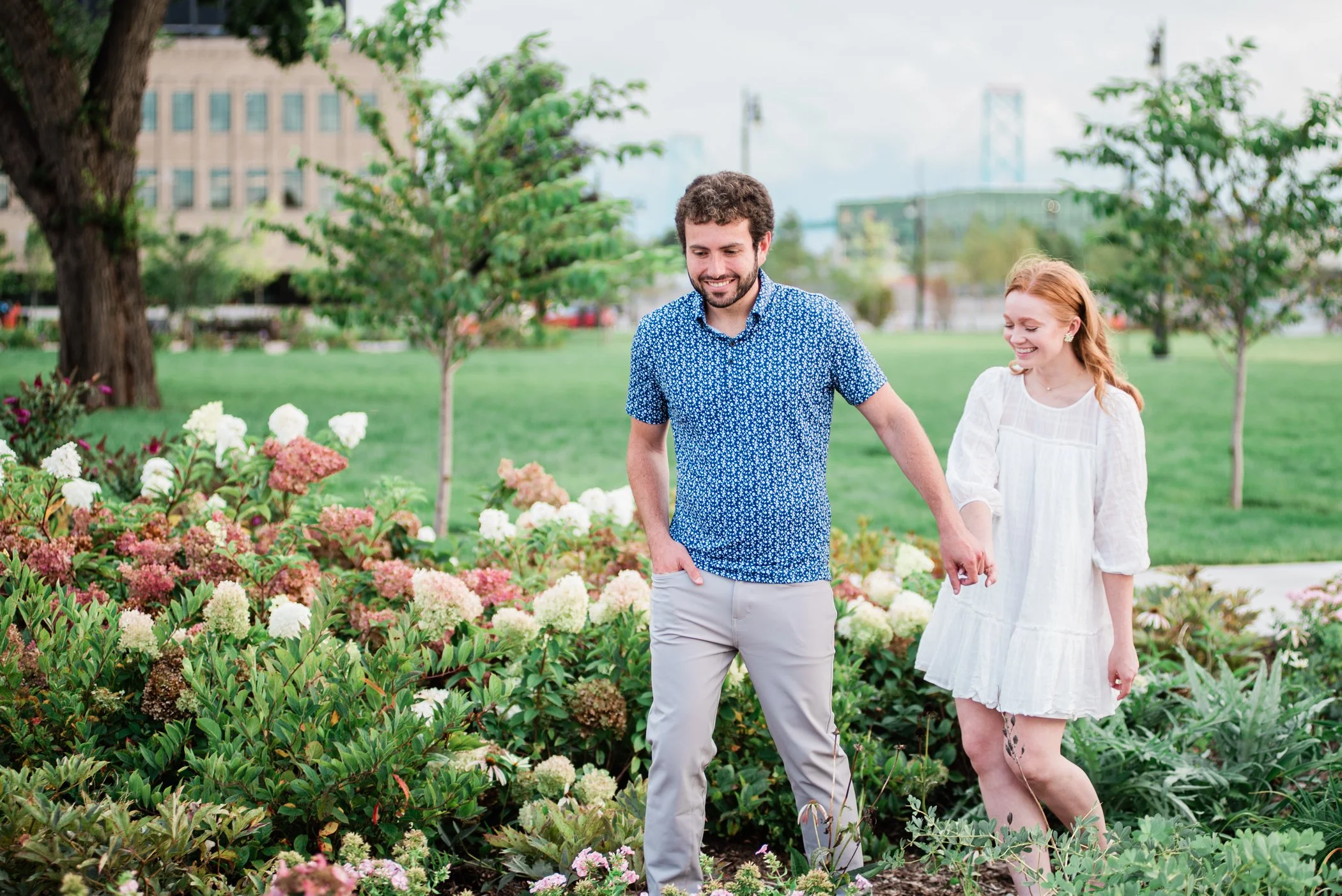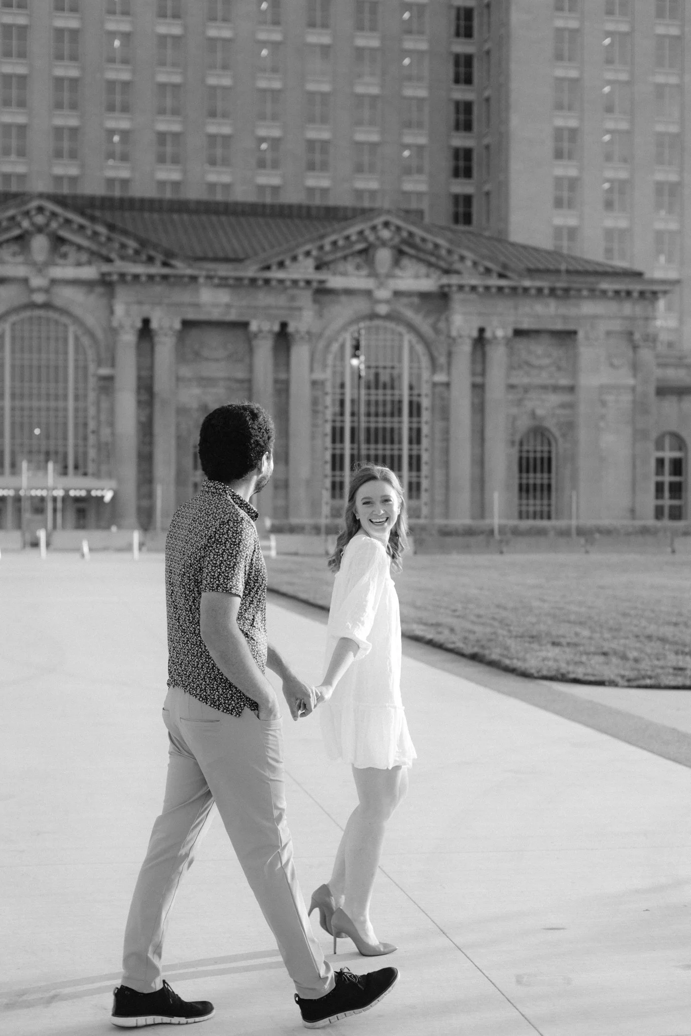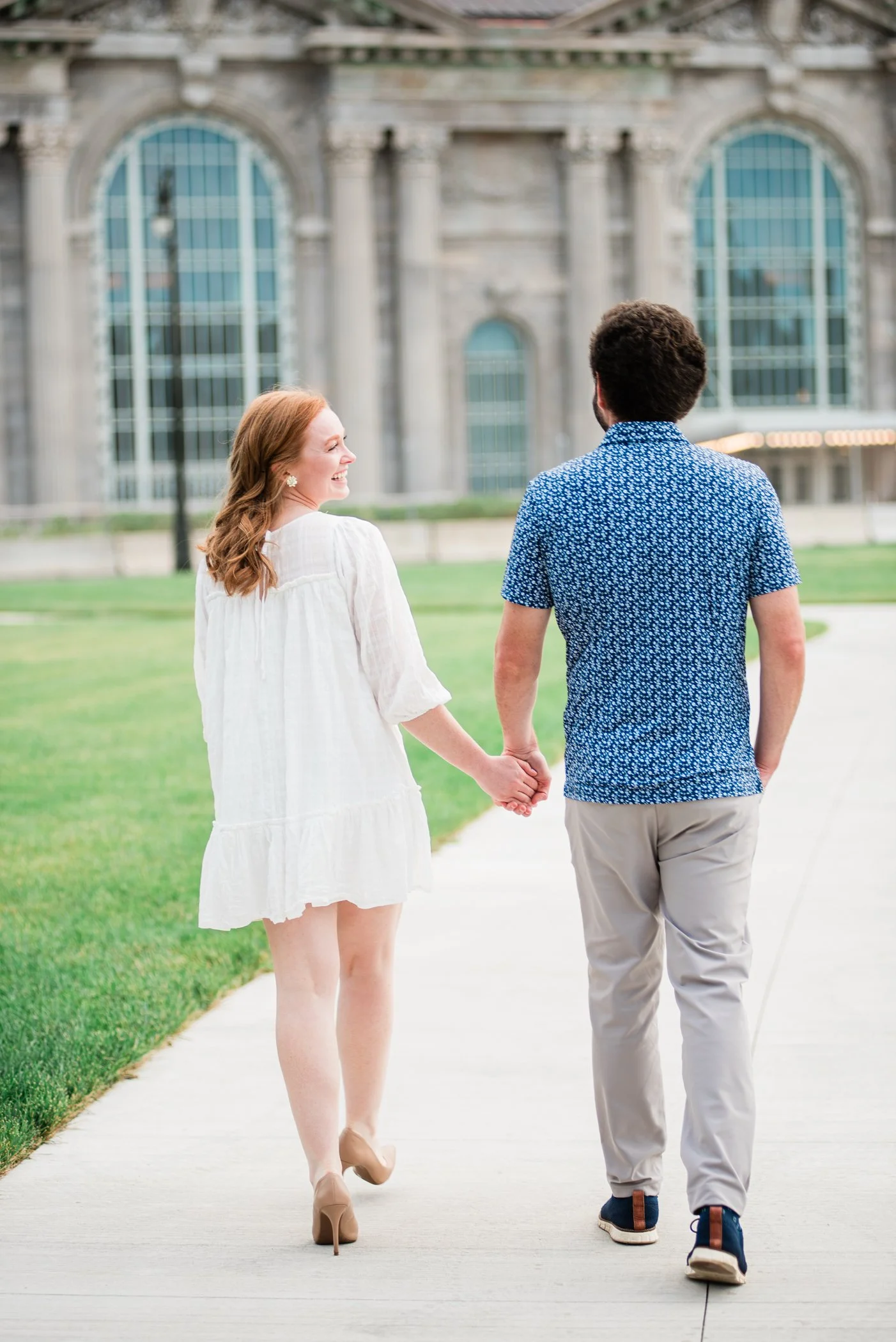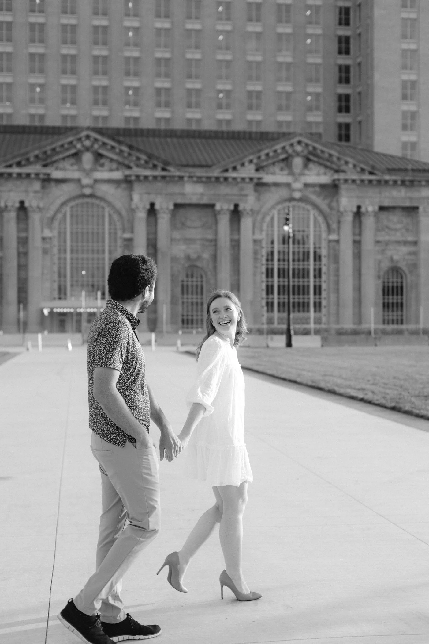 When Ashley and Jake asked to have their engagement session at the new Roosevelt Park, I was so excited! It had just re-opened a couple of weeks earlier, and its always so fun to shoot at new locations. Detroit locations like the DIA can become crowded, so its nice to have more options. They did such a nice job with Roosevelt Parkā¦.the old train station is such a landmark and then the landscaping with all of the hydrangeas was so pretty! Excited to shoot here again in the future!