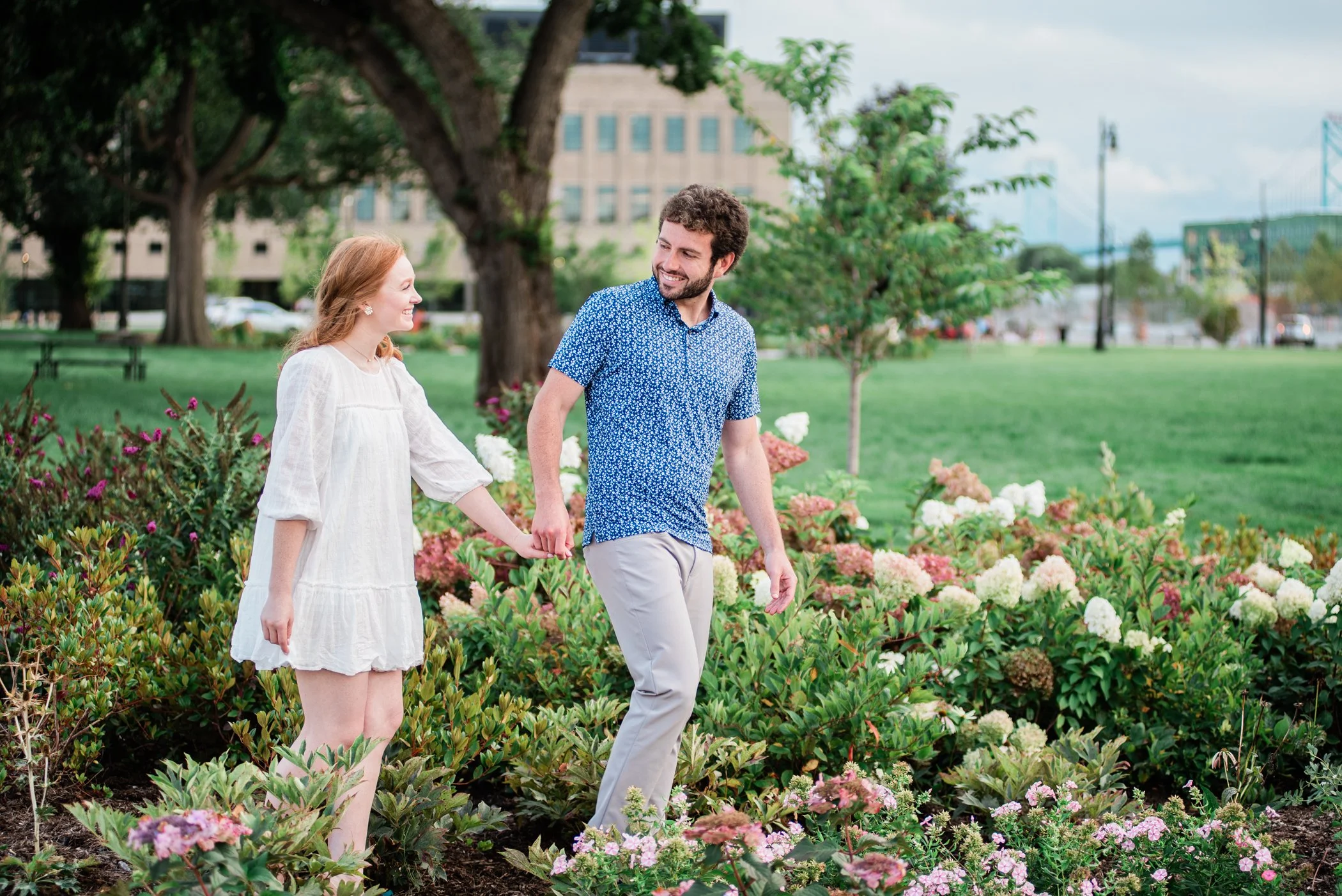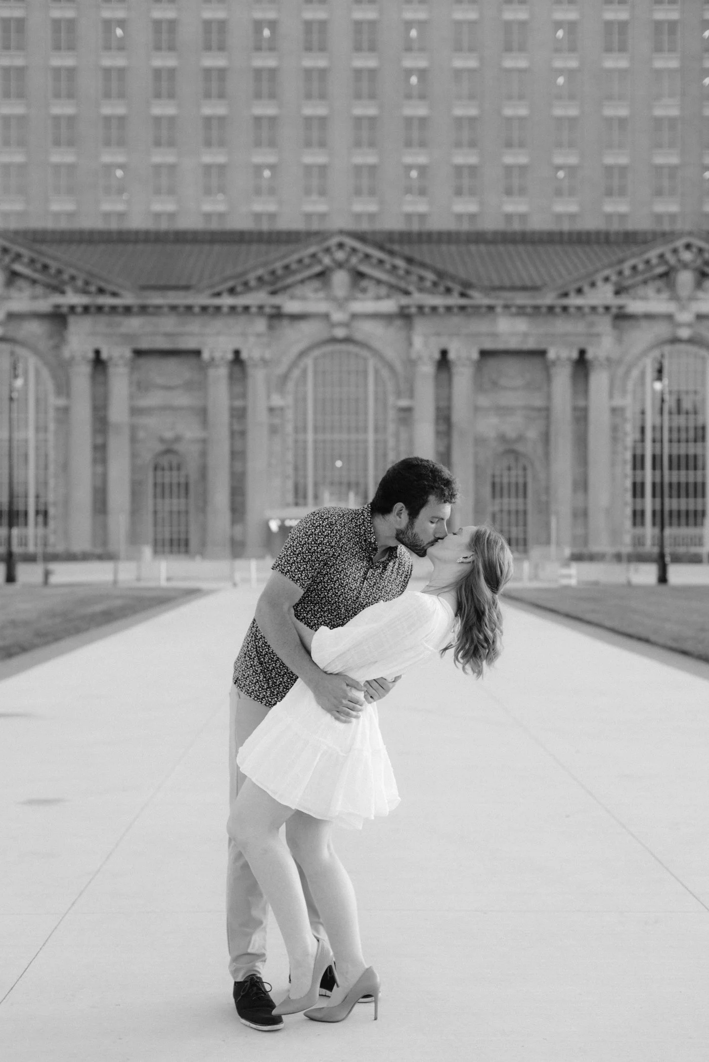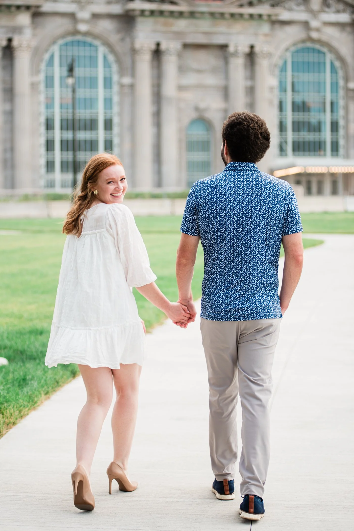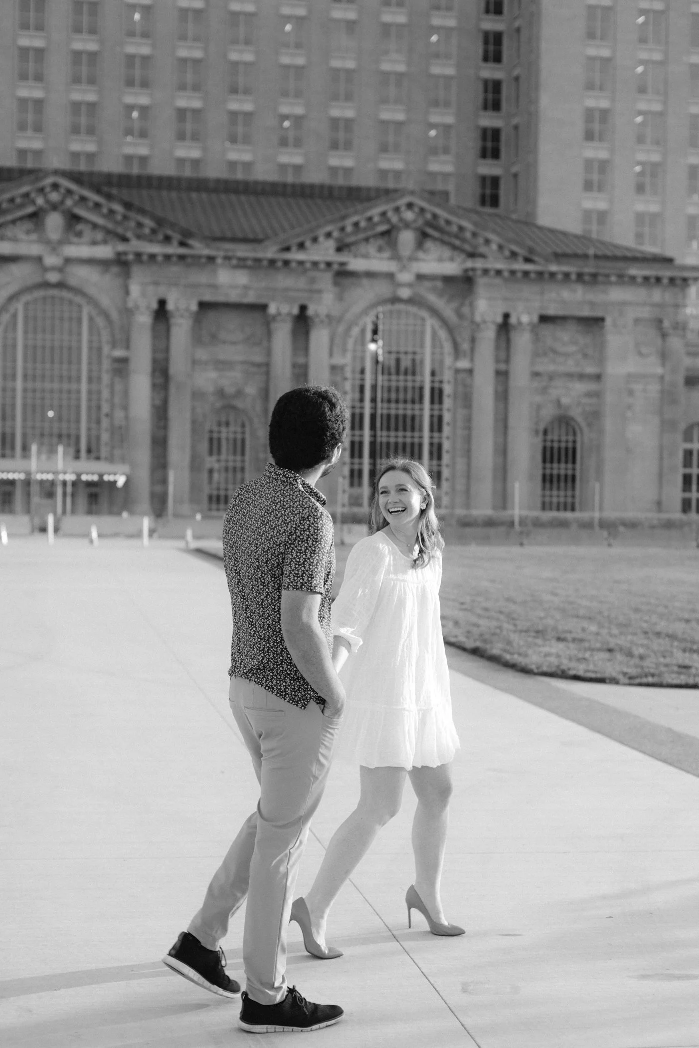 When Ashley and Jake asked to have their engagement session at the new Roosevelt Park, I was so excited! It had just re-opened a couple of weeks earlier, and its always so fun to shoot at new locations. Detroit locations like the DIA can become crowded, so its nice to have more options. They did such a nice job with Roosevelt Parkā¦.the old train station is such a landmark and then the landscaping with all of the hydrangeas was so pretty! Excited to shoot here again in the future!