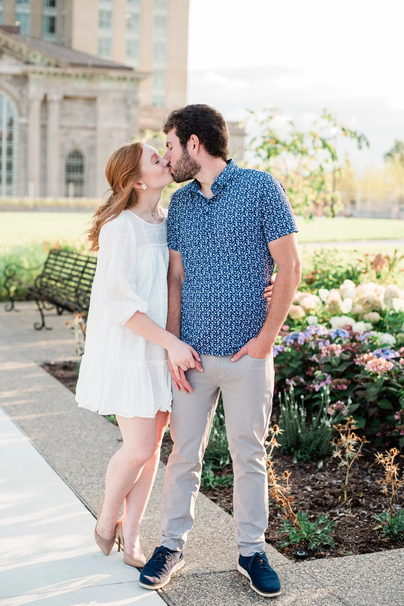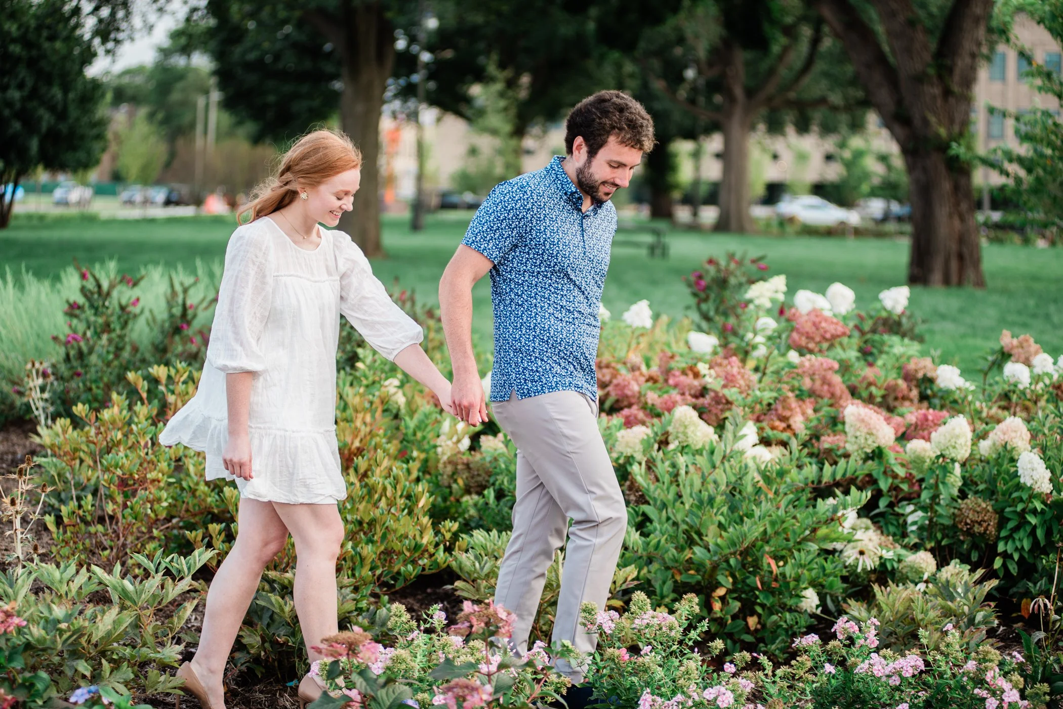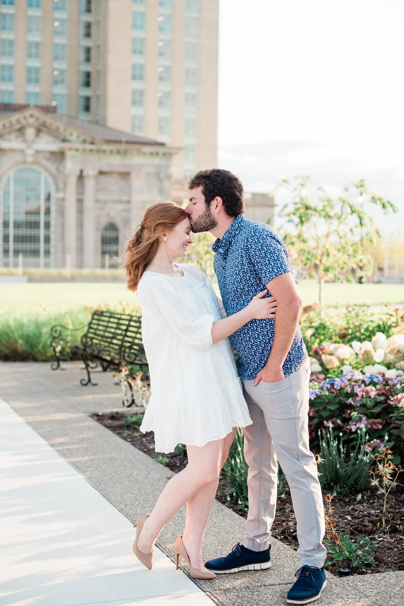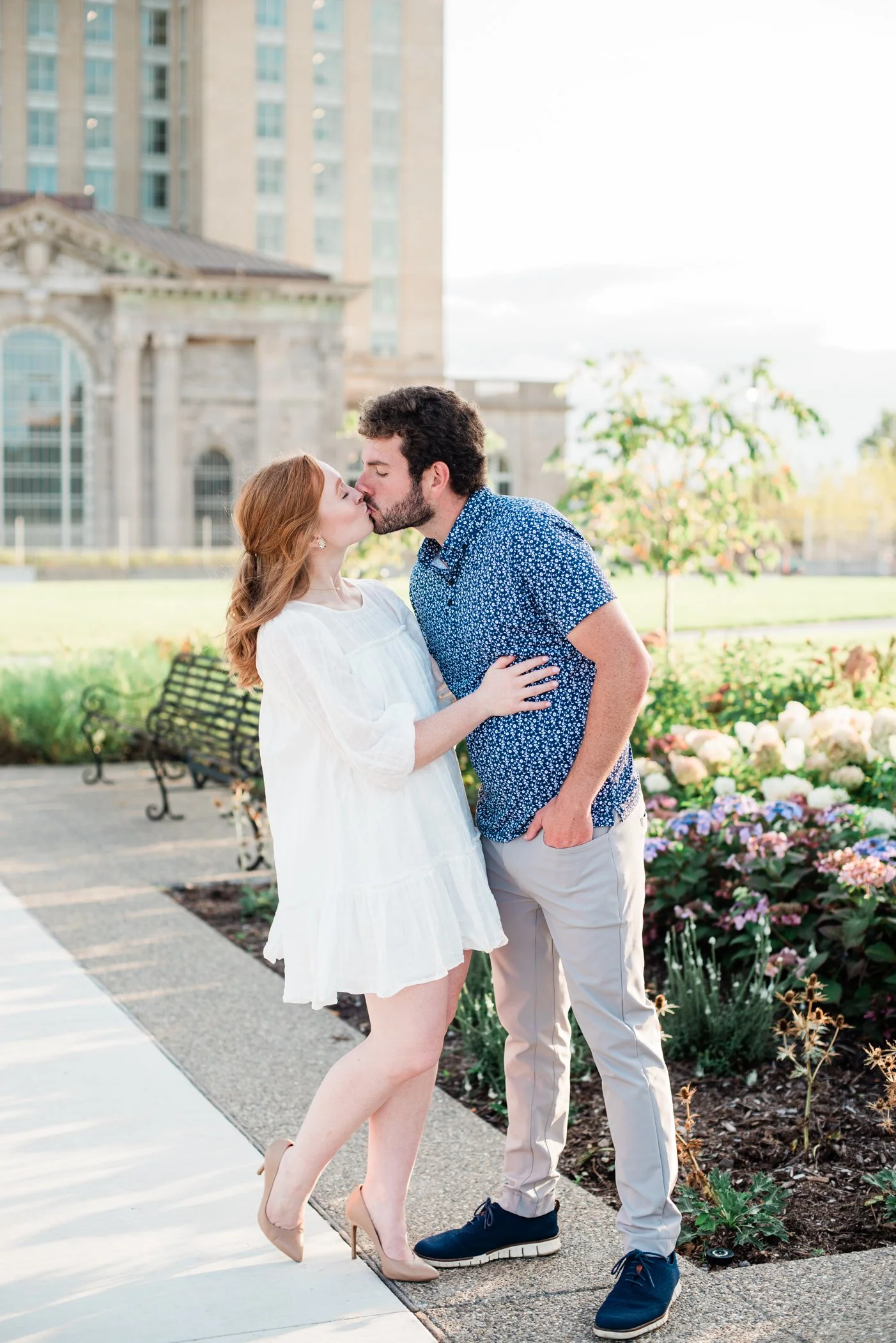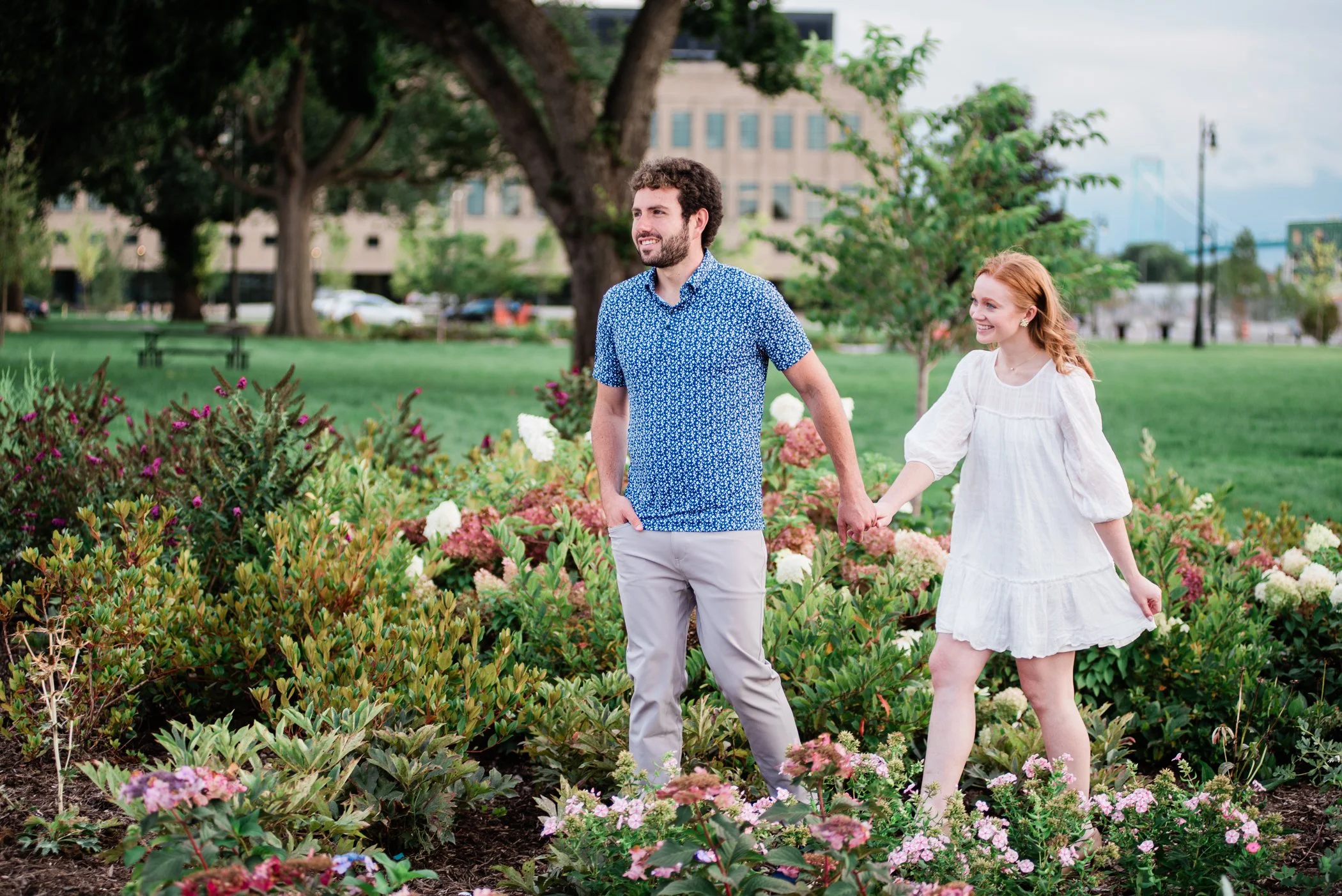When Ashley and Jake asked to have their engagement session at the new Roosevelt Park, I was so excited! It had just re-opened a couple of weeks earlier, and its always so fun to shoot at new locations. Detroit locations like the DIA can become crowded, so its nice to have more options. They did such a nice job with Roosevelt Parkā¦.the old train station is such a landmark and then the landscaping with all of the hydrangeas was so pretty! Excited to shoot here again in the future!
