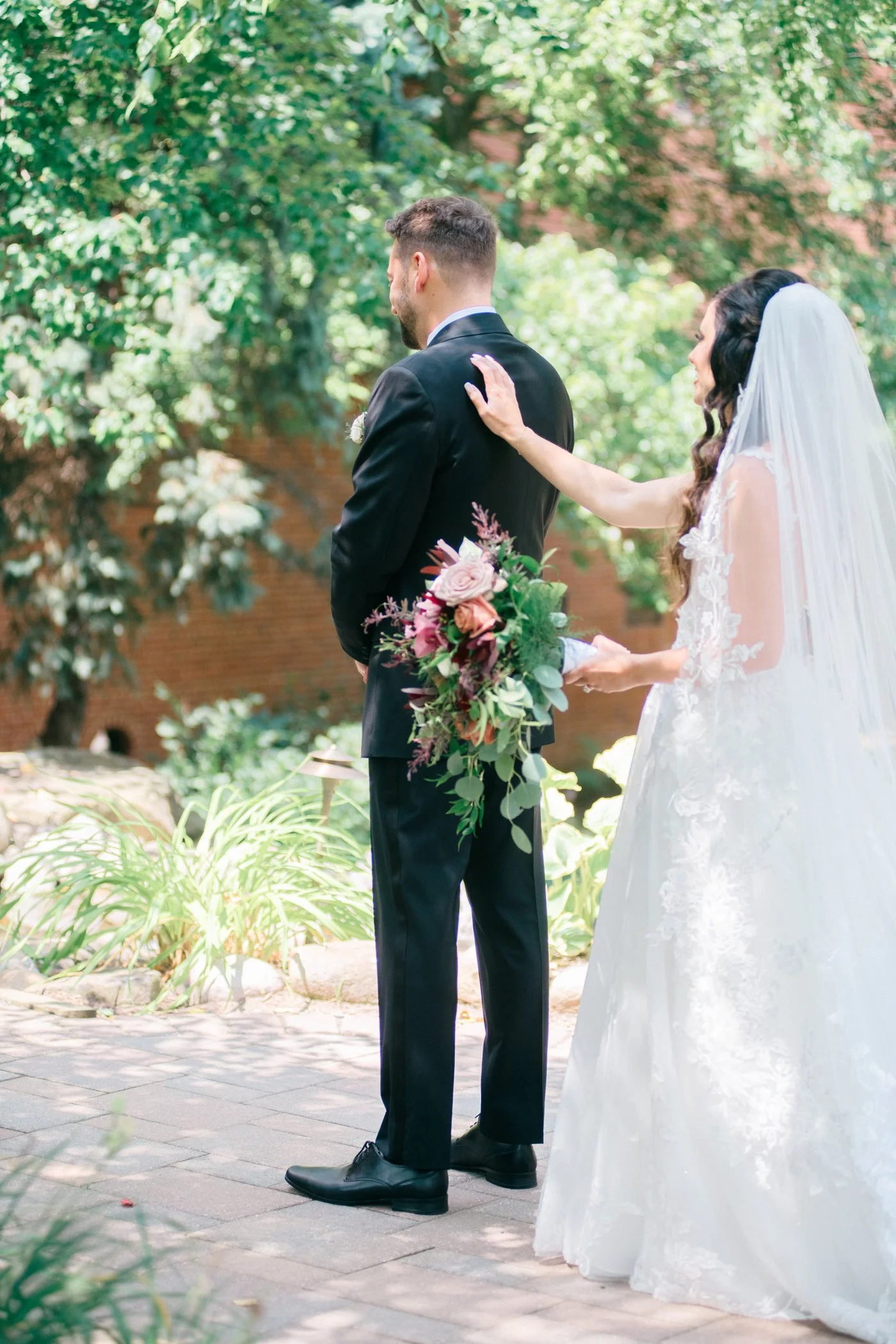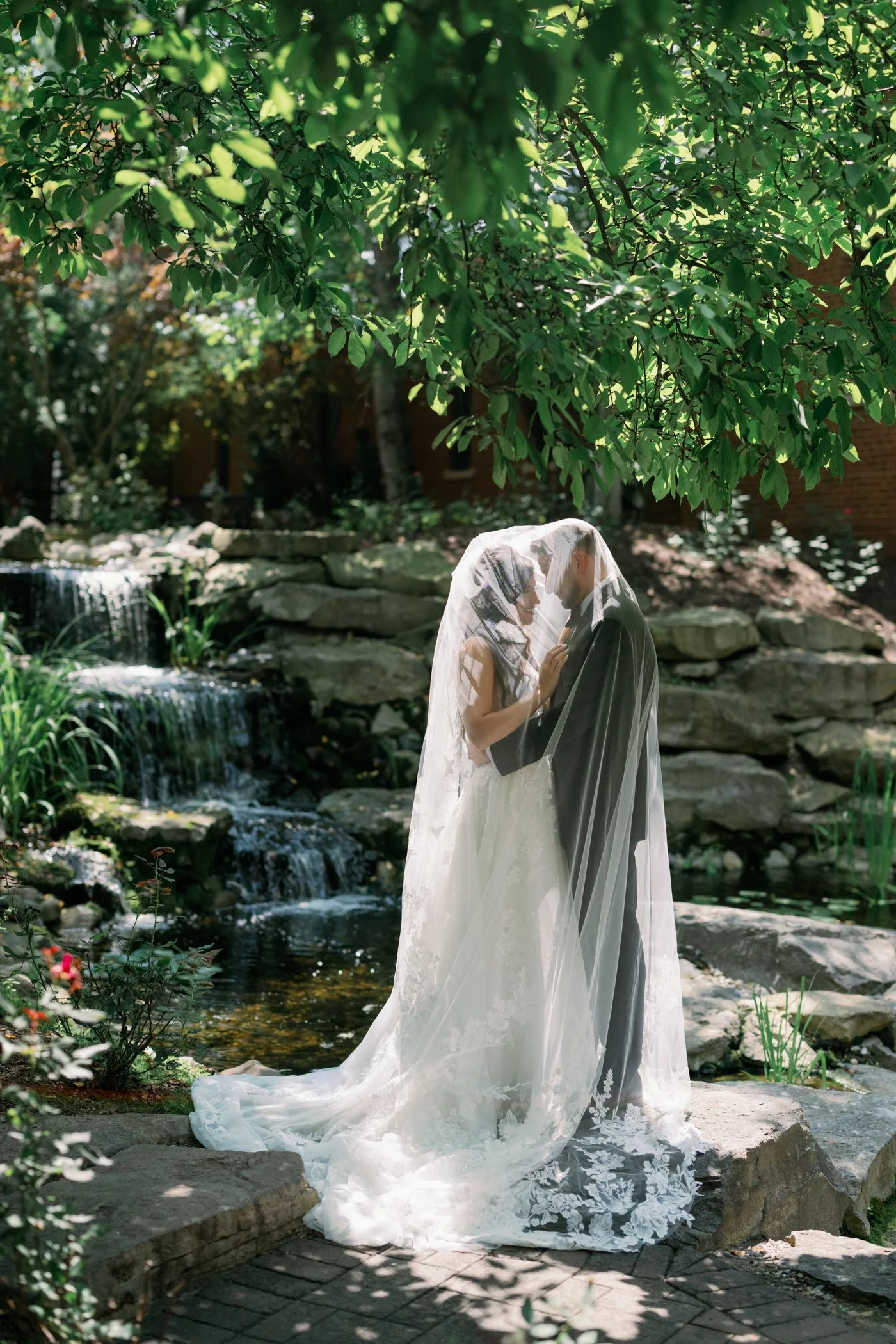Let’s face it- the economy is not the bet right now! With that, couples are always looking for ways to save on their wedding expenses. One way couples can do that, is by choosing a venue where everything can be held in one location- getting ready, portraits, ceremony, and reception. The Saint John’s Resort in Michigan is one of those venues that host it all. They have a hotel on site with large suites for getting ready, beautiful gardens with a waterfall for portraits, a chapel and indoor ceremony location, and a beautiful atrium for the reception. By having a wedding day’s events all in one location, couples can save on transportation costs and shorter days for your photographer and coordinator mean lower costs there as well. Plus- it takes so much stress off knowing you just need to head downstairs for things or can run up to your room if you forgot anything! It’s so easy!