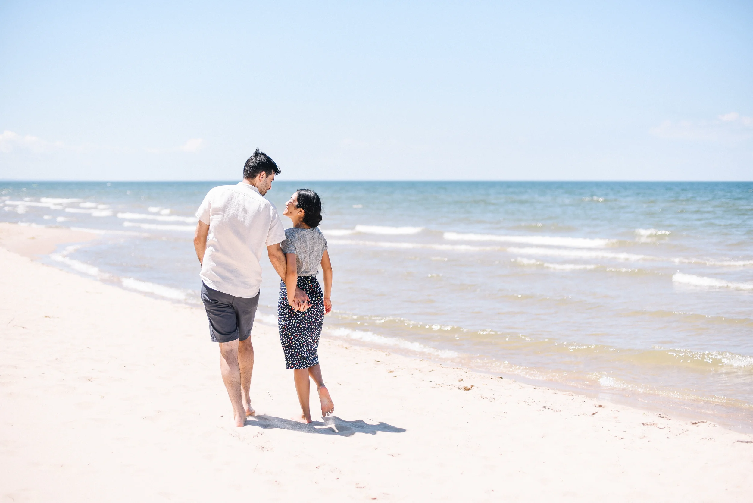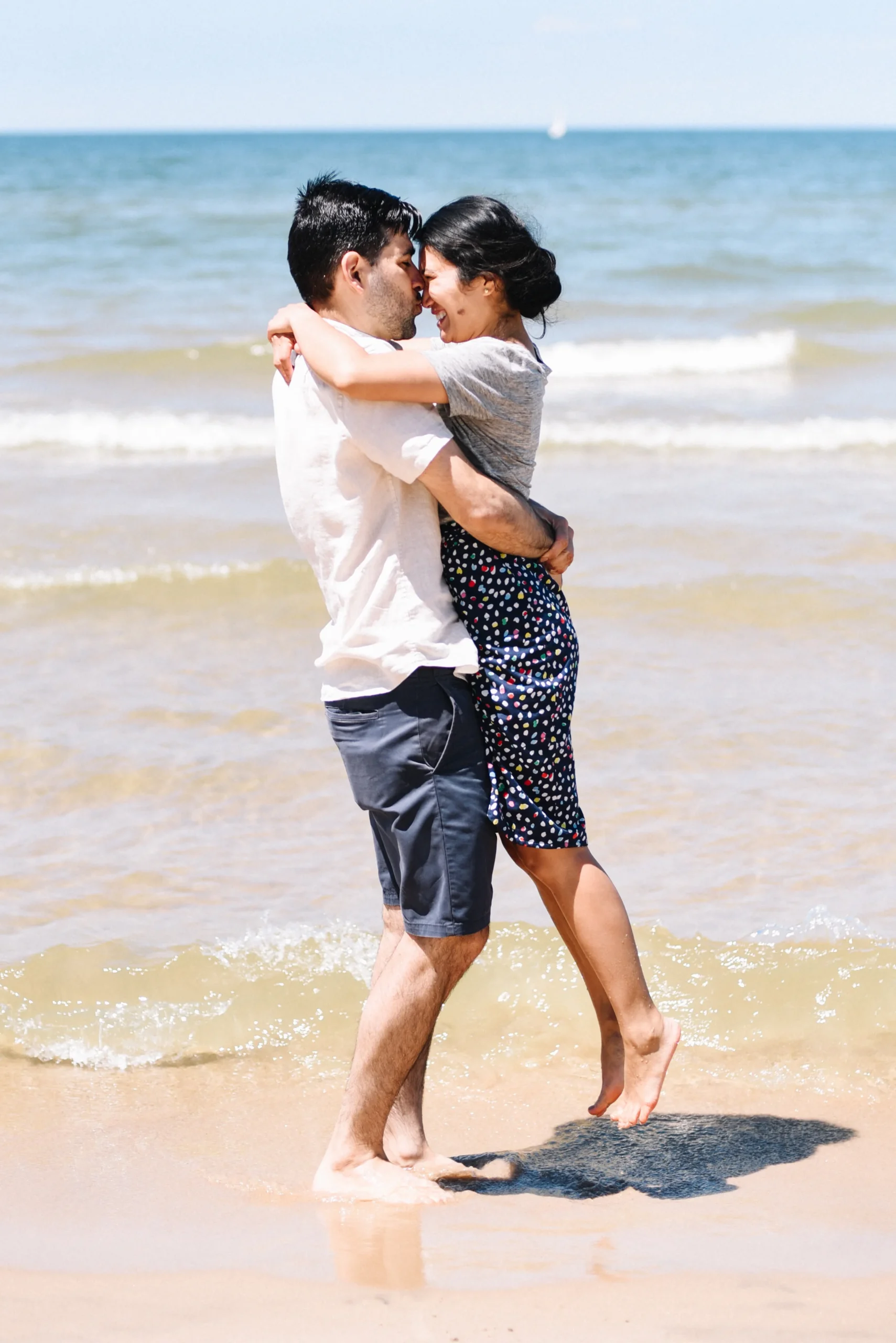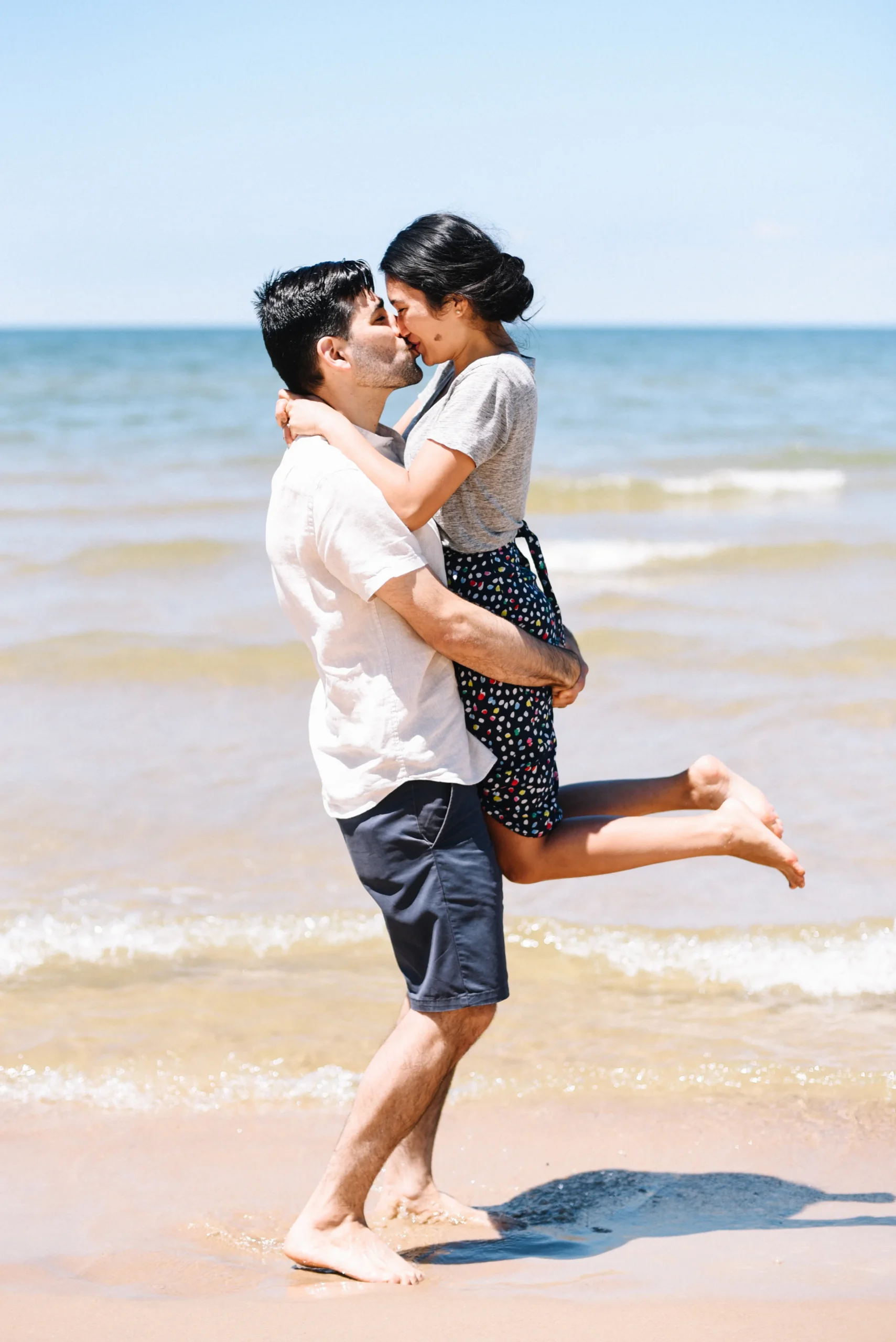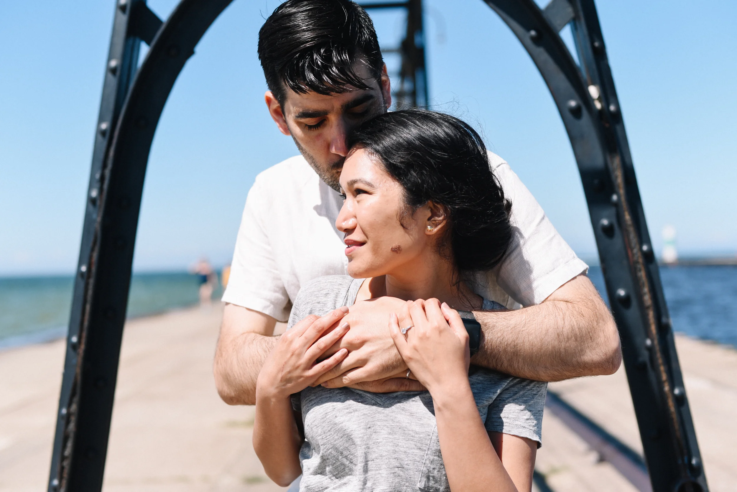 I normally shoot an hour before sunset, but since Kristine and Matt were driving in from Chicago for the shoot, and since thunderstorms were being predicted in late afternoon, we decided to play it safe and do it midday. Plus, there was supposed to be cloud cover…ummm, not so much. We worked with the sun and it was hot, but Kristine and Matt were troopers. It was so much fun exploring South Haven. It was Kristine and Matt’s first time visiting as we chose a location halfway between where they live in Chicago and where I live in mid-Michigan. And even though we had to deal with bright sun and hot temps, Kristine and Matt still rocked the photo session. Take a look at my favorites below, and if you are a Michigan bride or groom looking for a wedding photographer, check out my pricing page for a current promotion for all new 2017 wedding bookings in Michigan!