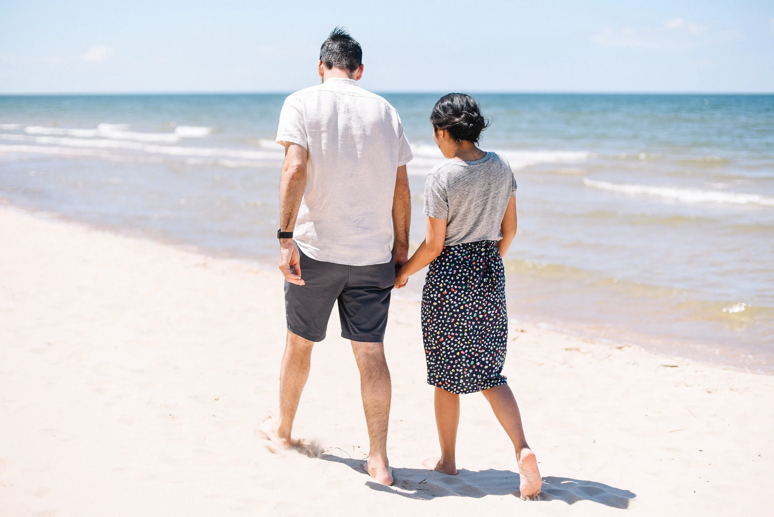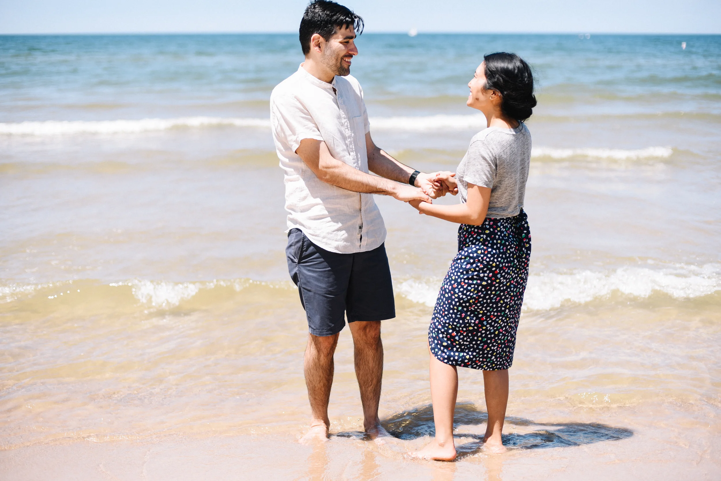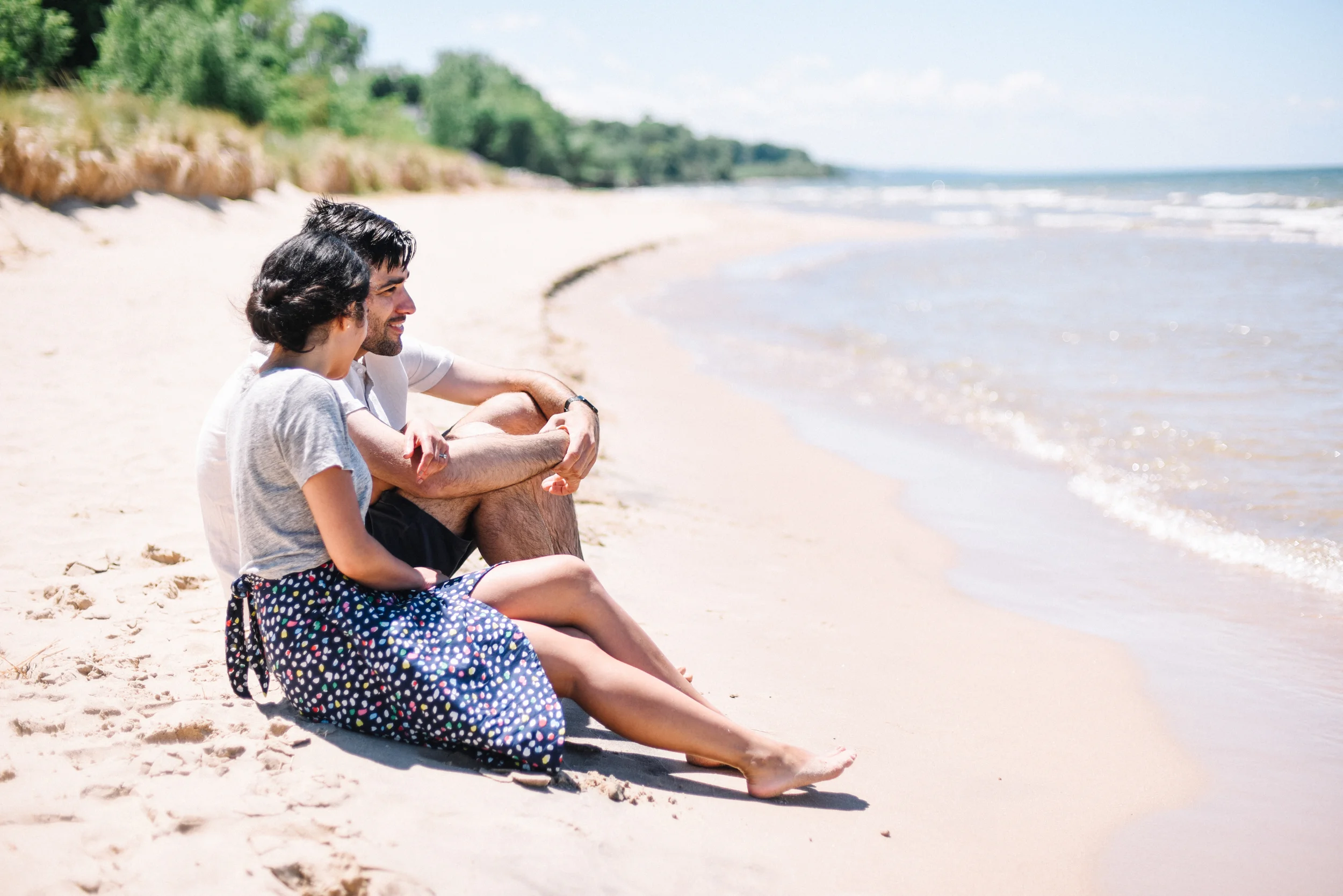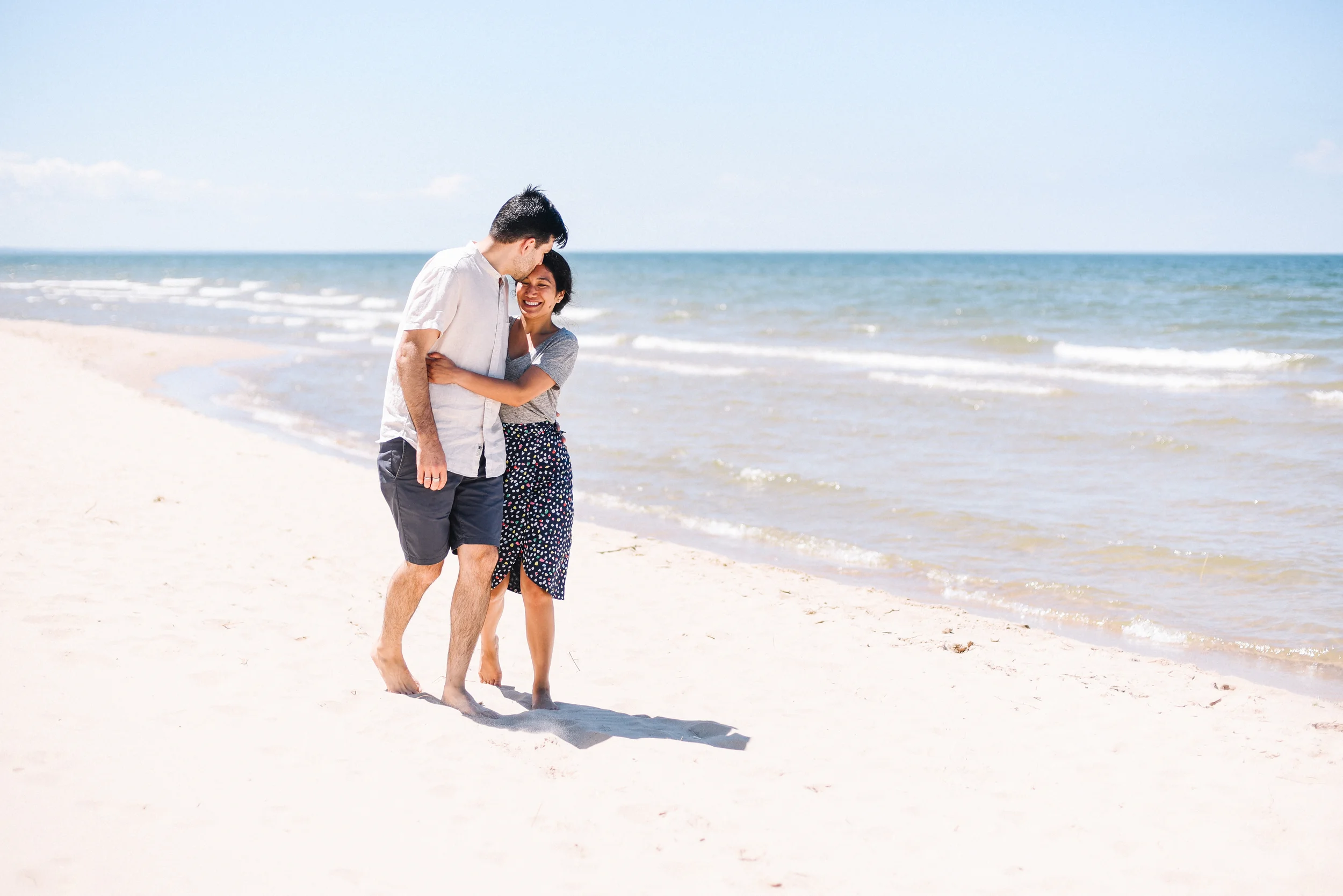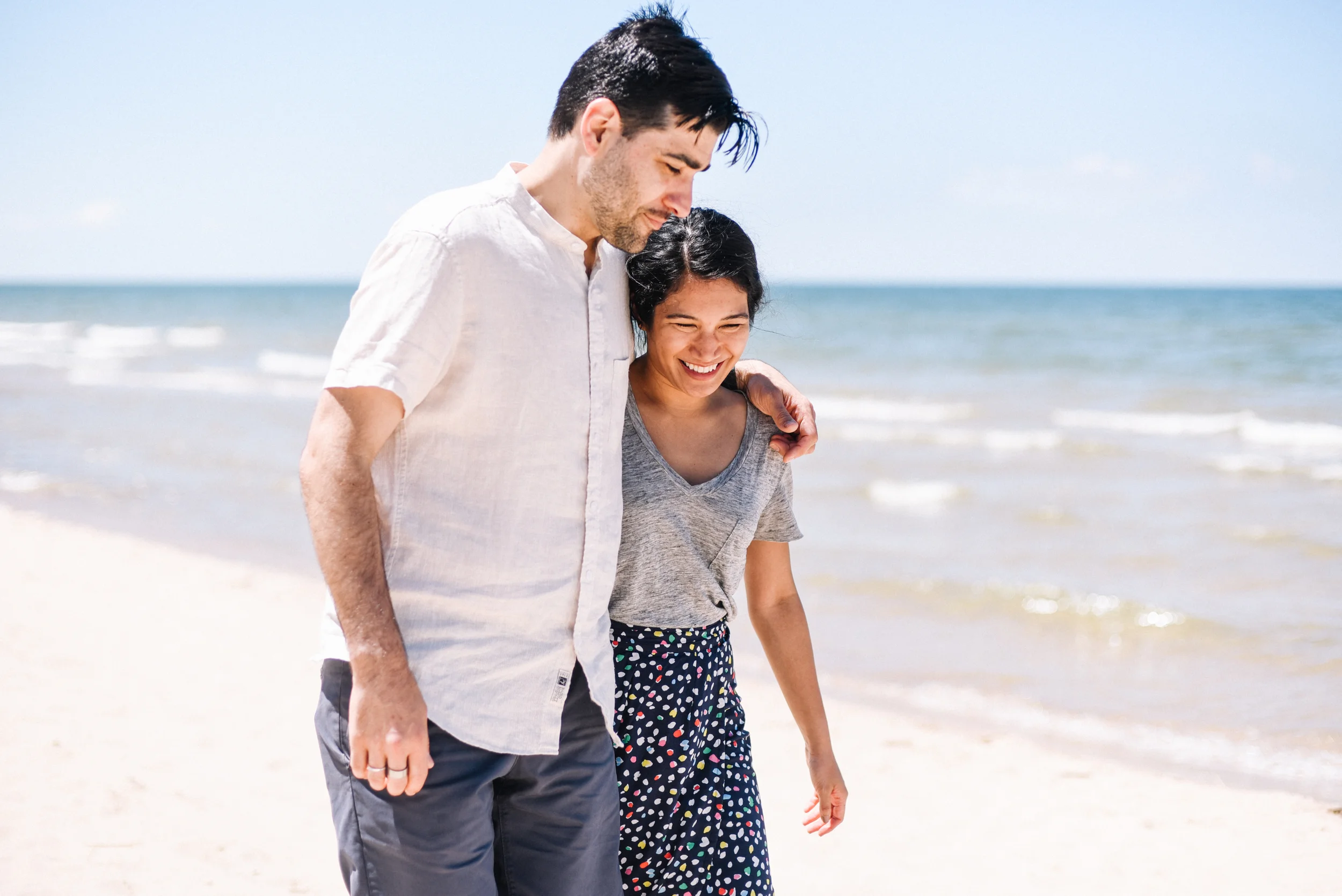 I normally shoot an hour before sunset, but since Kristine and Matt were driving in from Chicago for the shoot, and since thunderstorms were being predicted in late afternoon, we decided to play it safe and do it midday. Plus, there was supposed to be cloud cover…ummm, not so much. We worked with the sun and it was hot, but Kristine and Matt were troopers. It was so much fun exploring South Haven. It was Kristine and Matt’s first time visiting as we chose a location halfway between where they live in Chicago and where I live in mid-Michigan. And even though we had to deal with bright sun and hot temps, Kristine and Matt still rocked the photo session. Take a look at my favorites below, and if you are a Michigan bride or groom looking for a wedding photographer, check out my pricing page for a current promotion for all new 2017 wedding bookings in Michigan!